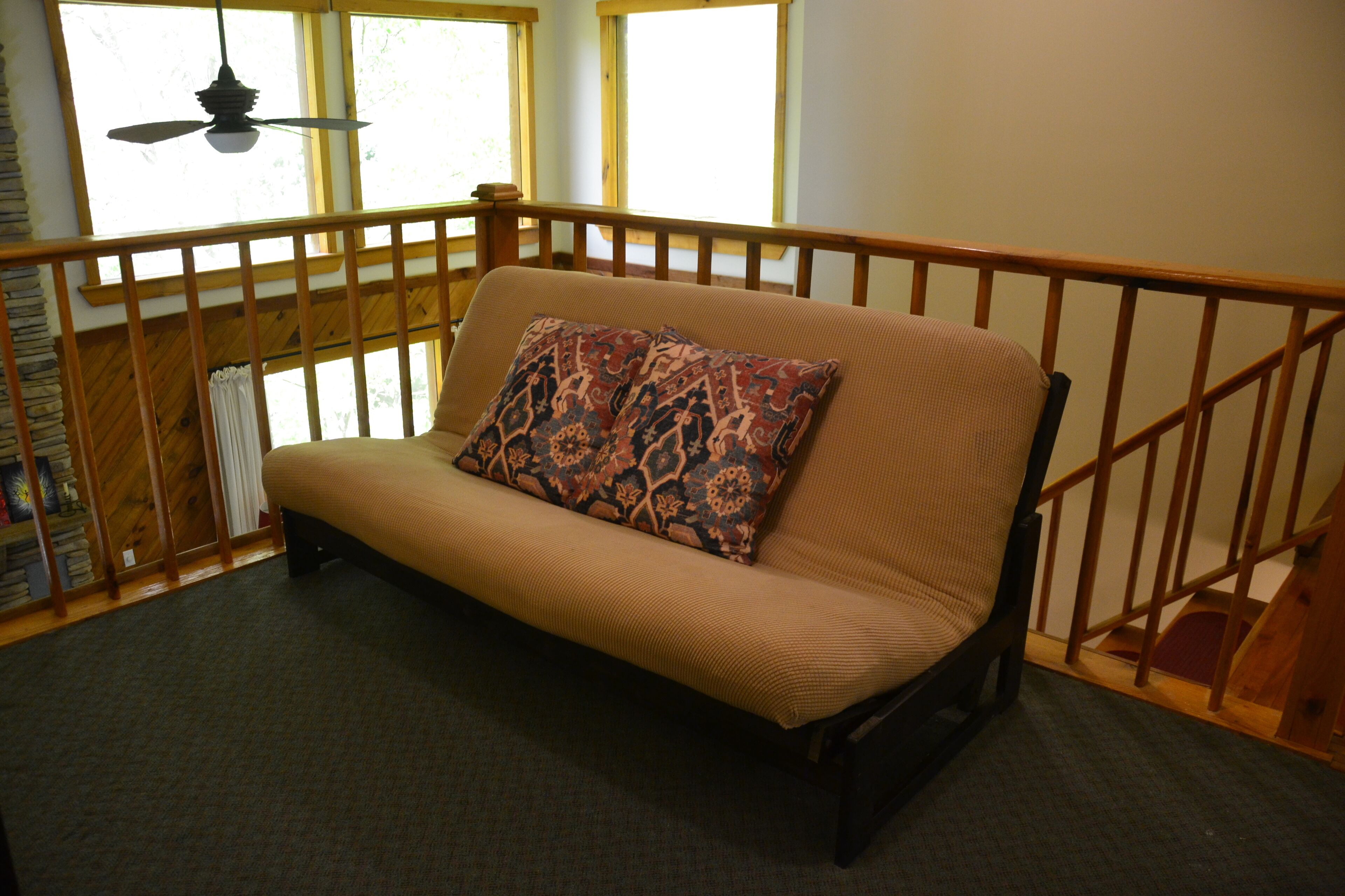 Comfortable cabin in Pine Creek Valley HIGH-SPEED INTERNET as of Oct 2! This cabin is spacious and comfortable. There is a brand-new cooling and heating system (forced air) with digital thermostat (that you can control).This property is nestled on the hillside in the heart of the Pine Creek Valley. Enjoy a high level of privacy with everything the valley has to offer still at your fingertips. Rail Trail access is directly across from the end of the driveway, and creek access is less than a mile down the road at Ross Run. You can access the Bob Webber trailhead from there as well.On the main level you'll find an open floor plan with a big, well-appointed kitchen, dining area with large table, and living area with propane fireplace and TV-watcng space. There are three couches and two chairs. The first level also includes the first bedroom with a new queen bed and adjacent full bathroom.On the second floor, you'll find two more bedrooms, a full bath, and a loft open to the living space below. The master bedroom has a new queen bed and ensuite bath. The other bedroom has two full-sized beds in sleeping cubbies.The loft has a full-sized futon bed (new and comfortable). Enjoy your morning coffee and evening libations on the covered deck in front of the propane fire pit. Or, build a wood fire in the yard fire pit (firewood sometimes included). There is parking in driveway for 5-6 cars.***High speed internet (up to 1GB download) now available as of Oct 2! There is no cell service, but you can call and text over wifi. There is also a DVD player and library of DVDs.Guest is responsive for taking away trash - there is no trash service in the valley, but dumpsters are available nearby on Sundays and Wed evening.No matter your outdoors lifestyle - hiking, biking, trail running, hunting, fishing, canoeing, kayaking, skiing, snowmobiling - you'll find this cabin a secluded and comfortable home away from home.