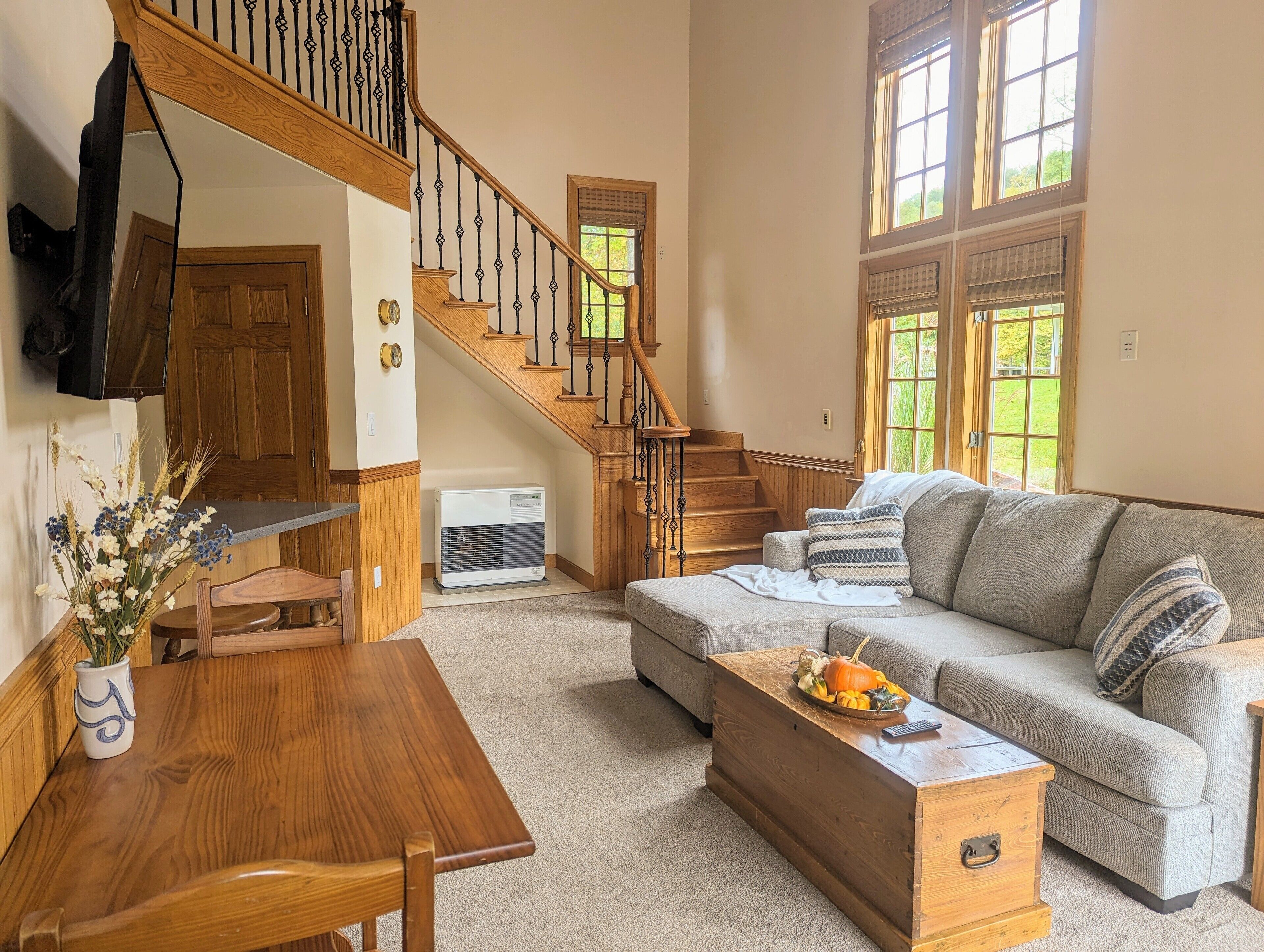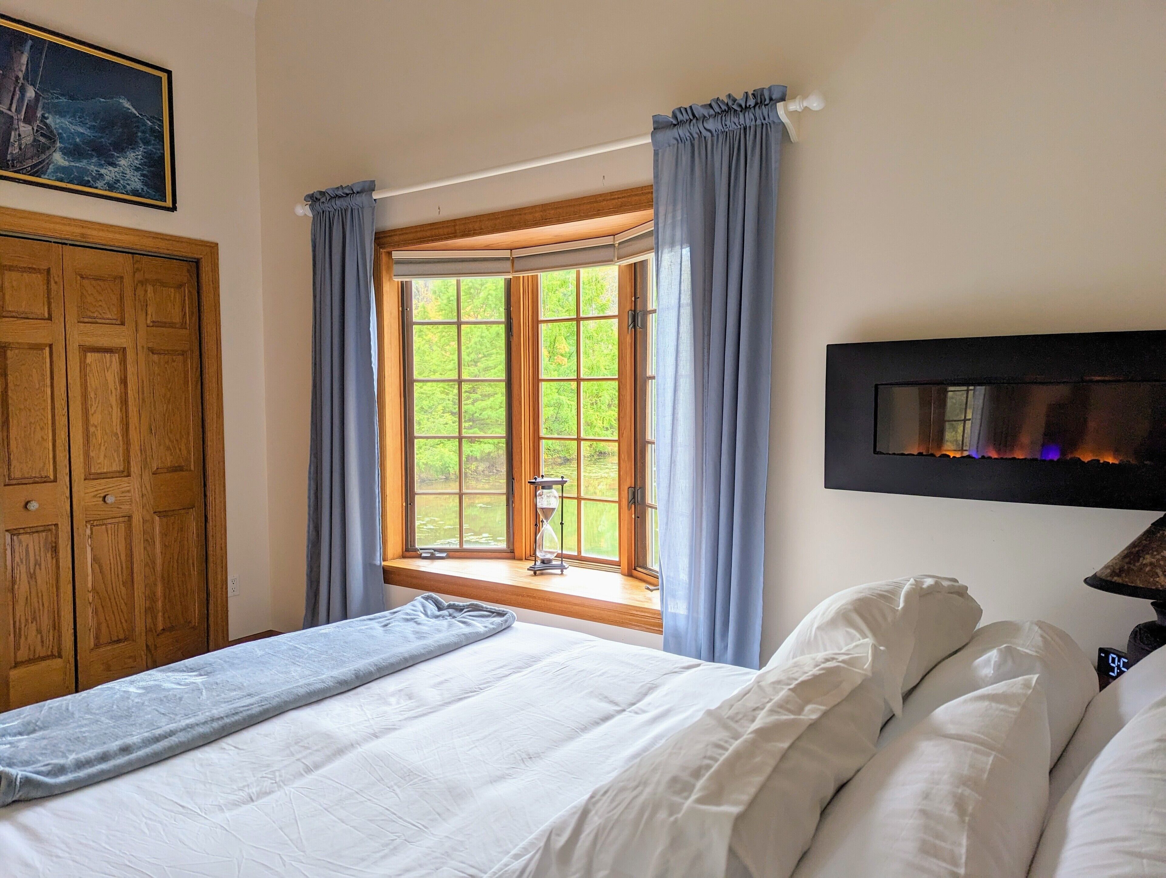 Cozy Boathouse On the Water Slow down and unwind in nature at this warm and cozy boathouse right on the water of a 3 acre pond. A wildlife lovers paradise secluded in the forest yet only 12 minutes from downtown Williamsport. Read a book after sleeping beside the electric fireplace or venture outside to take a walk around the pond to the spillway. Whether you choose to have a cup of coffee, a mug of hot cocoa, or a nice glass of wine, you're sure to feel refreshed after a relaxing stay in the serene wilderness.The boathouse is located adjacent to the main house on an 18-acre property out in the country. Surrounded by woods directly accessed from a main road; we are very secluded yet only 12 minutes from the heart of Williamsport, Pa.The boathouse is a stand-alone guest house beside the main house where my family of four resides. The driveway and the grounds are shared, but the guesthouse is private with a private entrance.Guests have private access to the entire guest house (3-story, 2 bedroom, 1 full bathroom, and 2 half bathrooms.)