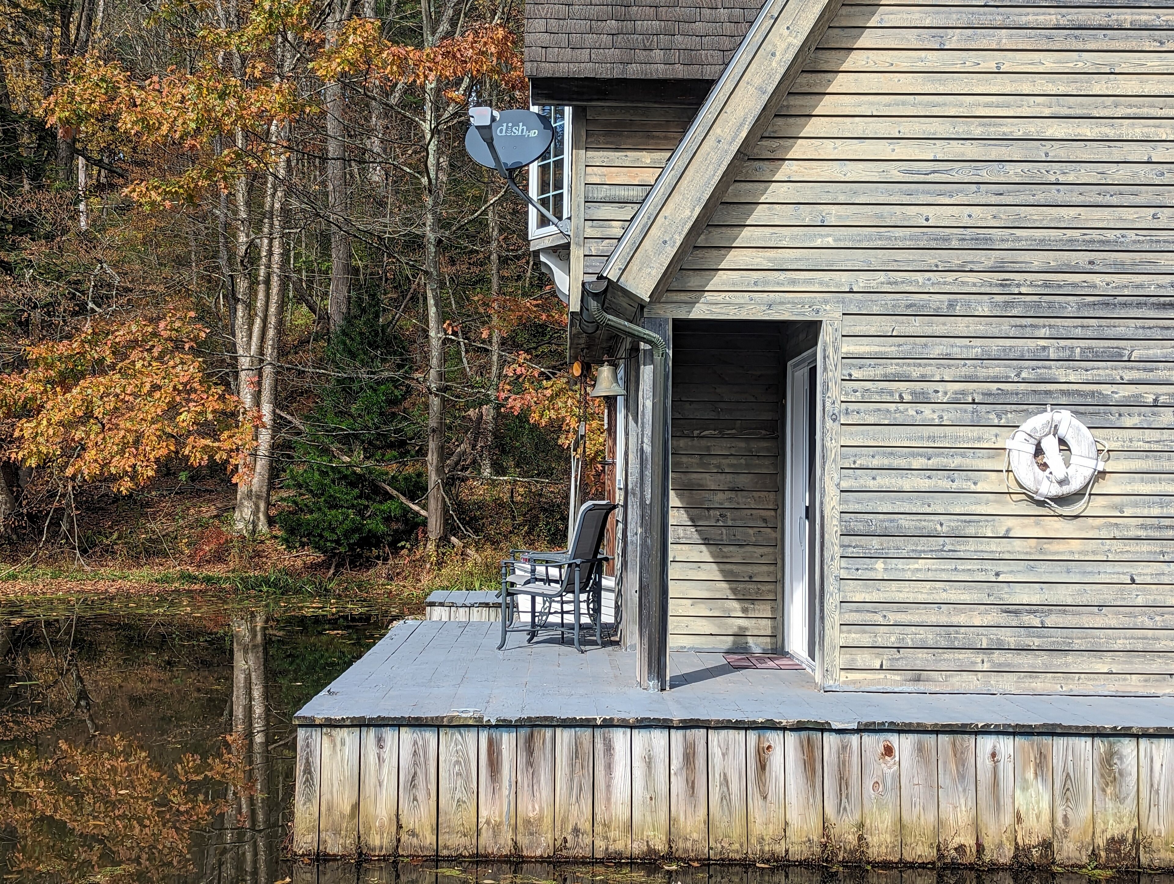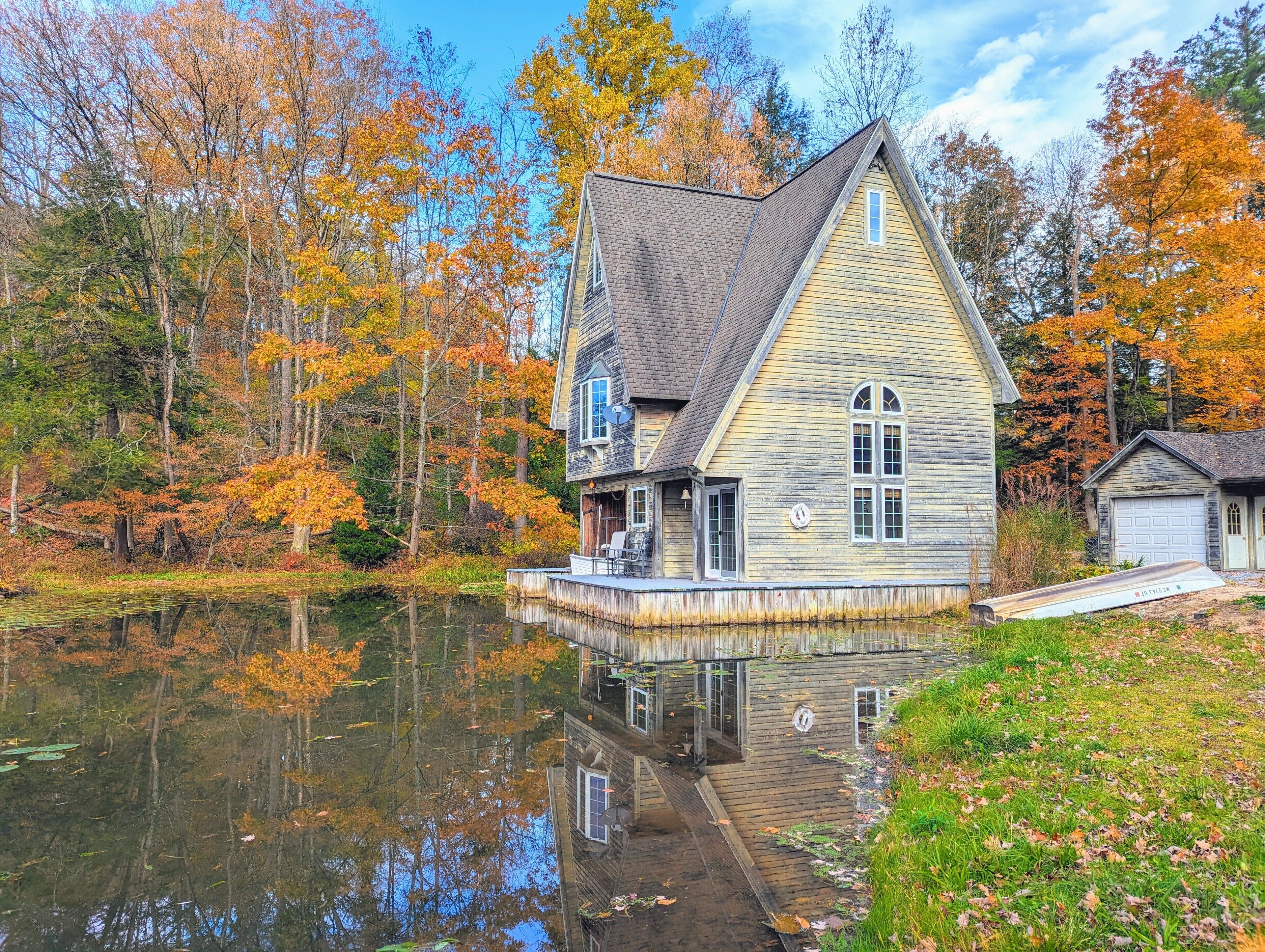 Cozy Boathouse On the Water Slow down and unwind in nature at this warm and cozy boathouse right on the water of a 3 acre pond. A wildlife lovers paradise secluded in the forest yet only 12 minutes from downtown Williamsport. Read a book after sleeping beside the electric fireplace or venture outside to take a walk around the pond to the spillway. Whether you choose to have a cup of coffee, a mug...
