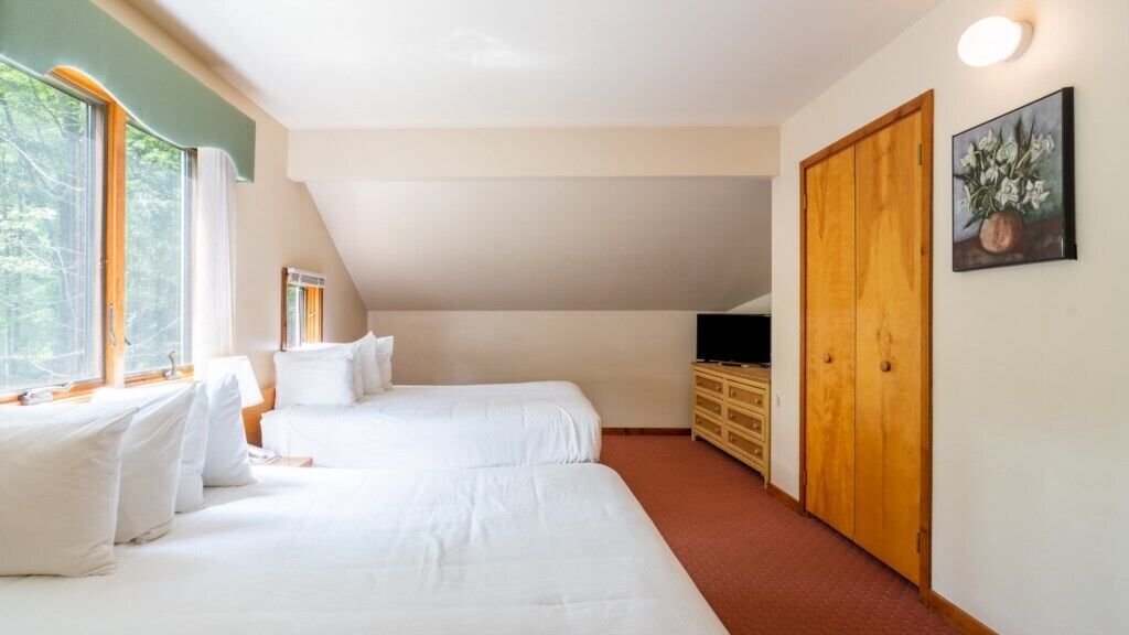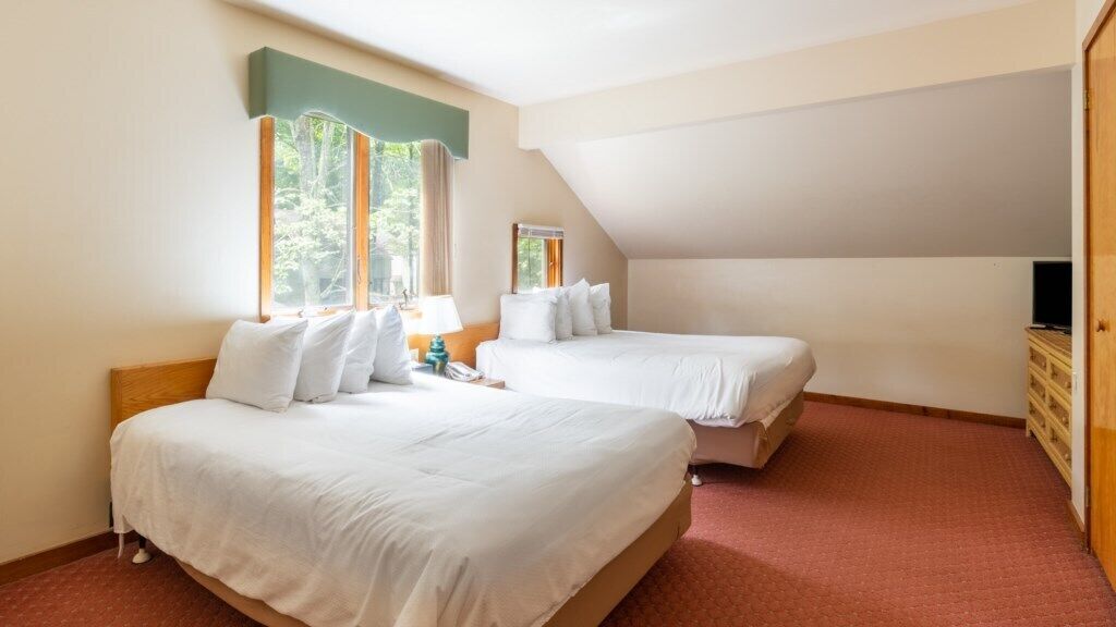 Wyndham Resorts at Shawnee Village - 2 Bedroom Villa This is a full-service resort. Your check-in procedures will model that of a hotel and your room number will be assigned during check in.WHERE SERENITY STARTS. Immerse yourself in the outdoor fun and local attractions of Club Wyndham Shawnee Village! Situated along the Poconos Mountains of Pennsylvania, it will take you to breathtaking sceneries, historic towns, beautiful state parks, vineyards and antique shops that you can explore to your hearts content.Approximately 1,100 square feet, this exquisitely spacious Two- Bedroom Villa features 1 Queen Bed in the master bedroom, 2 Double Beds in the guest bedroom, 1 Queen Sleeper Sofa in the living area including a kitchen, dining area and 2 bathrooms. Maximum of 6 occupants.Additional Amenities: Hairdryer, Washer/Dryer In Unit, DVD Player, Television, Wi-Fi Internet Access, Balcony/Patio, Fireplace and Stairs.The person checking in must be 21 years of age (or older). With this notion, please prepare a VALID ID and credit card in your name. A $100 Pre-Authorization from any major credit card upon checking in is required. After purchase you will receive an email confirmation showing your name on the reservation as the guest checking in within 14 days of check in date. However, if you would like to change the name of the person checking in after you have provided this information, there will be a $99.00 name change fee. Any damages will be charge upon check-out.The check- in time is 4 p.m. and check out time is 10 a.m. The nearest airport to Club Wyndham Shawnee Village is Lehigh Valley Int'l. Airport which is 48 miles by car respectively.Hence, if you have any concerns, our office hours are always open 24 hours respond to your requests. For here at Club Wyndham Shawnee Village, we ensure that your stay is comfortable and well-served to your satisfaction.*** Parking Policy ***Auxiliary parking is available for guests, no charge, one vehicle permitted per reservation.*** Pet Policy ***No pets allowed.*** Smoking Policy ***No smoking inside including electronic cigarettes, unless if it's in a designated area.*** Housekeeping Policy ***Daily housekeeping is not included and may be added for an additional fee.*** Other Notes ***This resort offers Braille signage (i.e. elevators, room numbers), handicap parking, first floor access ramps, and a portable pool lift.In addition, this resort may offer rooms with these special needs features:Suites include wider than typical interior doorways. All doors have lever handles, counter-height microwave, front control stove or range, roll-under kitchen sink, no lip greater than 1/4 inch on slider door to access patio from other side, roll-in shower, handheld shower head, grab bars in shower, grab bars in tub, grab bars around toilet, raised toilet (higher than typical suites), front door wide-angle wheelchair height peephole, first floor handicap accessible access and Braille signage for room numbers.Some suites include visual doorbells, visual fire alarm, visual phone alert and closed captioned TV.*** Helpful Hints ***There are no elevators available at this resort. All units have exterior stairs.Some amenities/activities are seasonal and available at an additional charge.