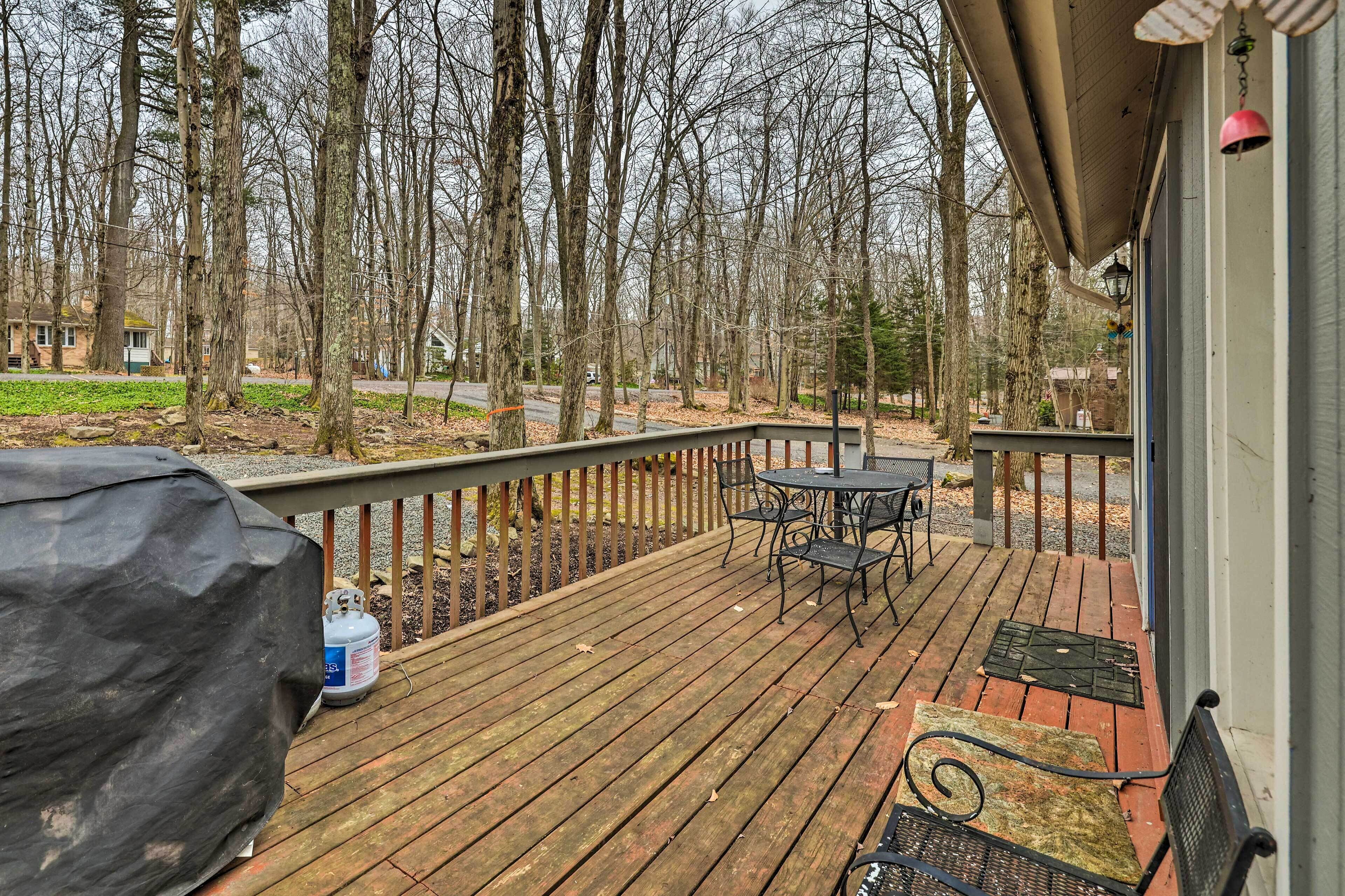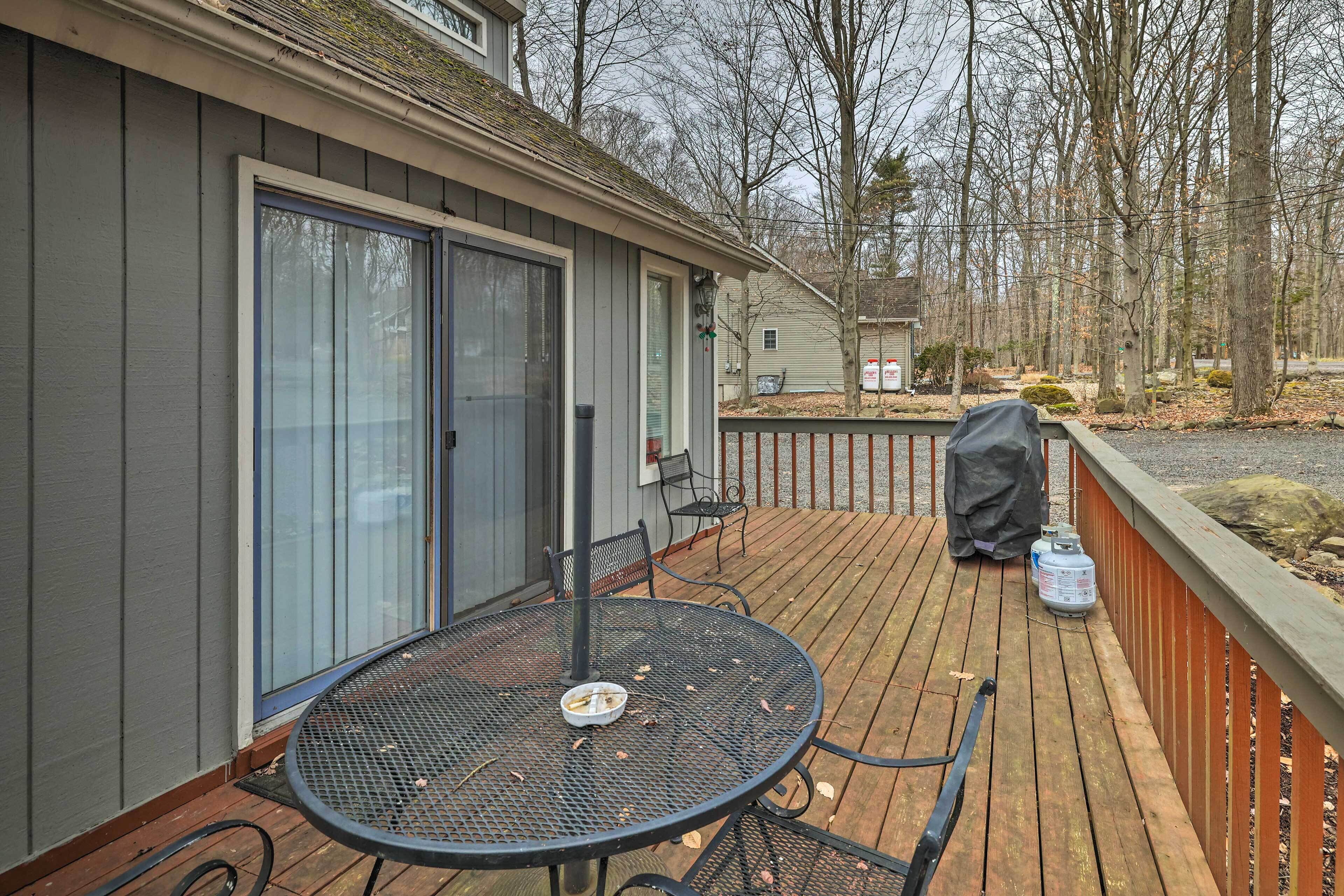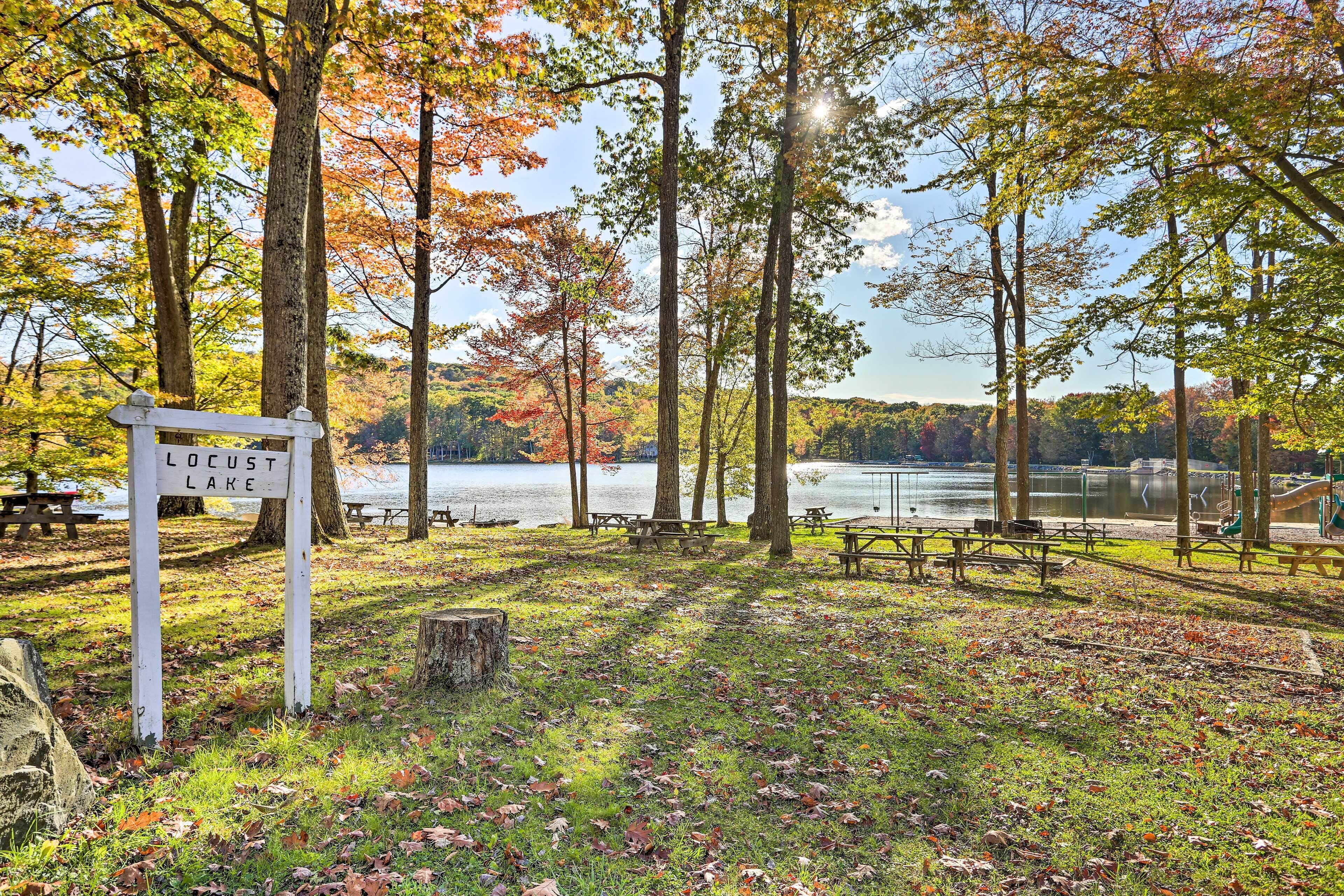 Poconos Vacation Home: Walk to Locust Lake! Adventures await in all seasons when you book this Pocono Lake vacation rental! Boasting access to Locust Lake Village's beaches and outdoor recreation facilities, this 3-bedroom, 2-bathroom home offers ample opportunities to enjoy fun-filled days. Start your mornings with breakfast in the full kitchen, then spend your days savoring quality time with you...