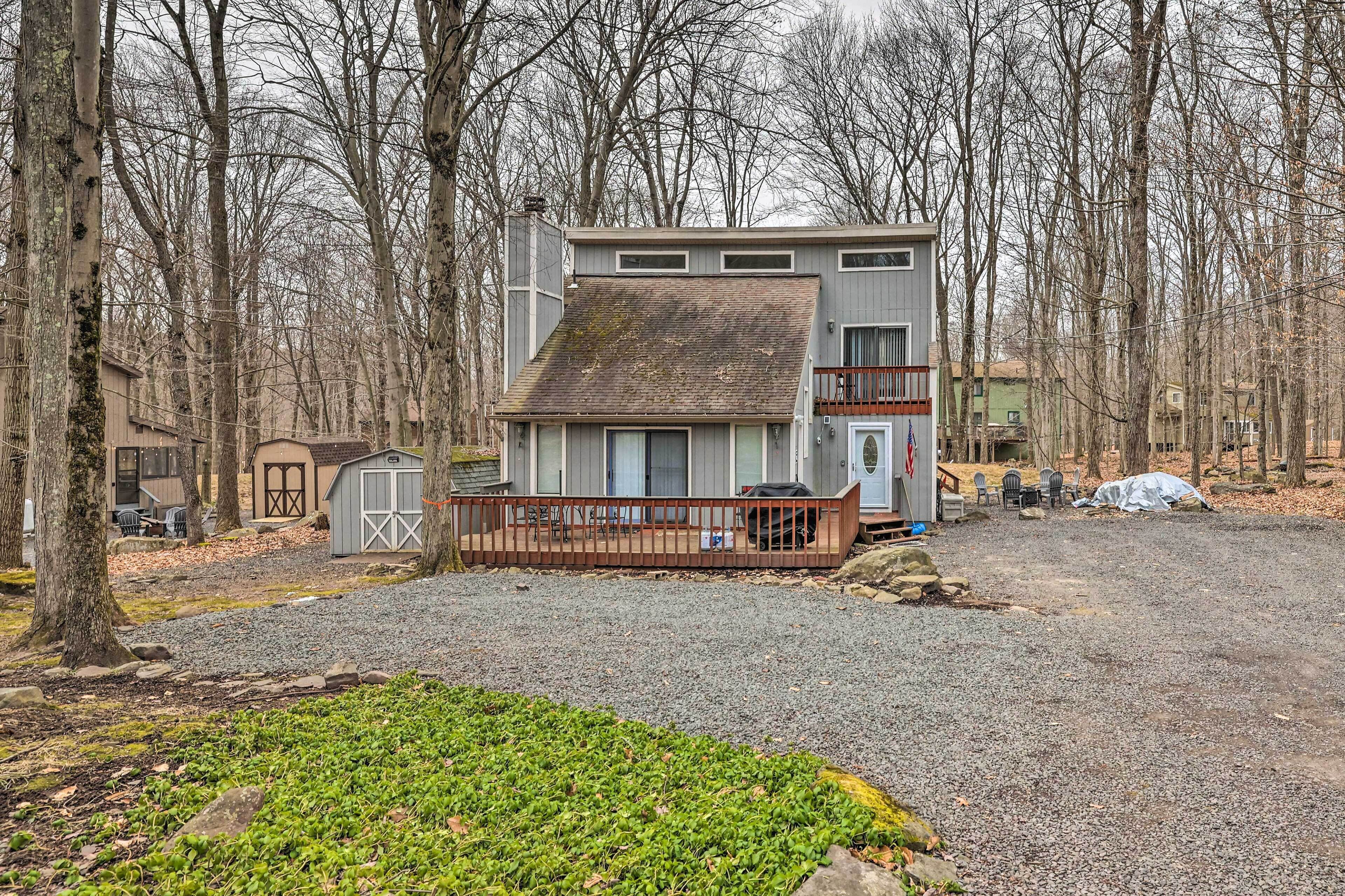 Poconos Vacation Home: Walk to Locust Lake! Adventures await in all seasons when you book this Pocono Lake vacation rental! Boasting access to Locust Lake Village's beaches and outdoor recreation facilities, this 3-bedroom, 2-bathroom home offers ample opportunities to enjoy fun-filled days. Start your mornings with breakfast in the full kitchen, then spend your days savoring quality time with your crew! Opt to venture out and you can shred the slopes at Jack Frost Ski Resort or visit area hotspots like Camelbeach Outdoor Waterpark.-- THE PROPERTY --Township Registration #007552 | Gas Grill | Washer & Dryer | Fire Pit w/ SeatingBedroom 1: King Bed | Bedroom 2: Twin/Full Bunk Bed w/ Twin Trundle | Bedroom 3: Queen Bed | Loft: Full FutonCOMMUNITY AMENITIES: 3 lakes w/ beaches, playgrounds, ski/sledding hill, tennis courts, basketball courts, volleyball courts, bocce ball, shuffleboard, horseshoesOUTDOOR LIVING: Private yard, balcony, deck w/ outdoor dining area, charcoal grill, canoe, life vests, hiking trail access on-siteINDOOR LIVING: Smart TVs w/ cable, Xbox console, gas fireplace, sunroom, dining table, board games & booksKITCHEN: Dishwasher, coffee maker, cooking basics, dishware/flatware, blender, toaster ovenGENERAL: Free WiFi, window A/C units, central heating, linens/towels, complimentary toiletriesFAQ: Stairs required for access, 1 exterior security camera (facing out), $9/person/day HOA registration fee (over 6 people, paid online, prior to check-in)PARKING: Driveway (5 vehicles)-- THE LOCATION --OPT OUTSIDE: Locust Lake (0.9 miles), Austin T. Blakeslee Natural Area (6 miles), Tobyhanna State Park (15 miles), Camelback Mountain Adventures (16 miles), Big Pocono State Park (18 miles), Hickory Run State Park (22 miles), Bushkill Falls (41 miles)FAMILY FUN: 940 Golf N' Fun (2 miles), Camelbeach Outdoor Waterpark (17 miles), Claws 'N' Paws Wild Animal Park (32 miles), Land of Make Believe (44 miles)SKI RESORTS: Locust Lake Village Ski Hill (1 mile), Jack Frost Ski Resort (10 miles), Big Boulder Ski Area (13 miles), Camelback Ski Resort (16 miles), Montage Mountain Resort (31 miles), Shawnee Mountain Ski Area (34 miles), Blue Mountain Resort (34 miles)AIRPORT: Wilkes-Barre Scranton International Airport (25 miles)-- REST EASY WITH US --Evolve makes it easy to find and book properties you’ll never want to leave. You can relax knowing that our properties will always be ready for you and that we’ll answer the phone 24/7. Even better, if anything is off about your stay, we’ll make it right. You can count on our homes and our people to make you feel welcome--because we know what vacation means to you.-- POLICIES --- No smoking- No pets allowed- No events, parties, or large gatherings- Must be at least 28 years old to book- Additional fees and taxes may apply- Photo ID may be required upon check-in- NOTE: The property requires stairs to access- NOTE: If over 6 guests will be staying at the property, a mandatory additional fee of $9/person/day must be paid to the HOA upon online pre-registration- NOTE: Your safety matters. This property features 1 exterior security camera located on the front door, facing toward the front outdoor entry. It does not look into any interior spaces. The camera records video and sound when activated by motion- NOTE: All guests must register with the HOA no later than 72 hours prior to your check-in date. Failure to do so may result in a delay to access the community