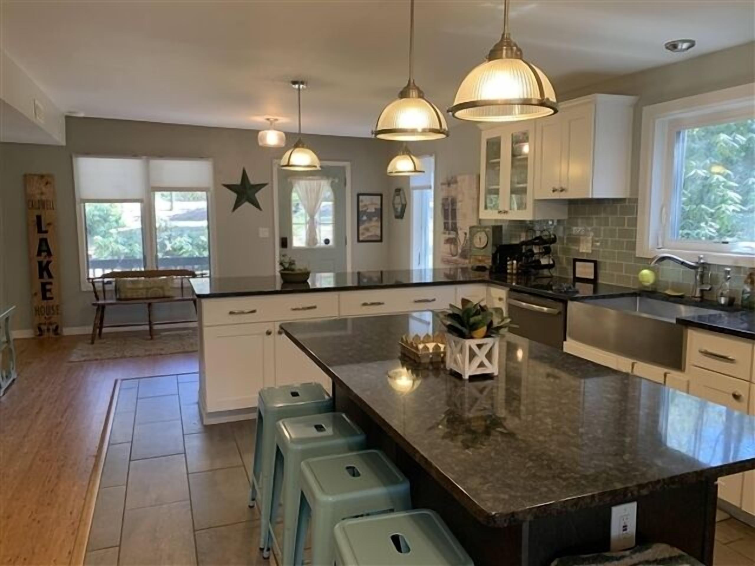 Lakefront! Large lakefront home, familyroom, sunroom, with decking to enjoy the view!