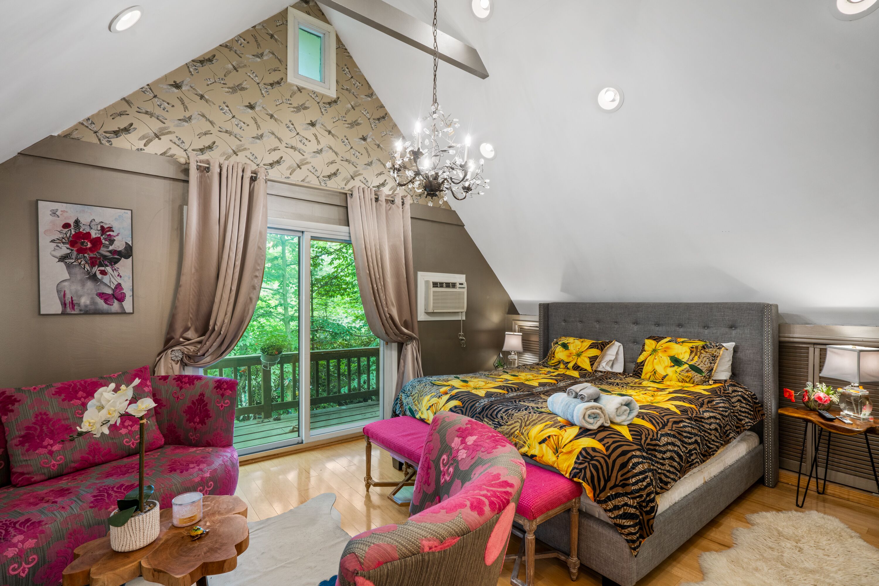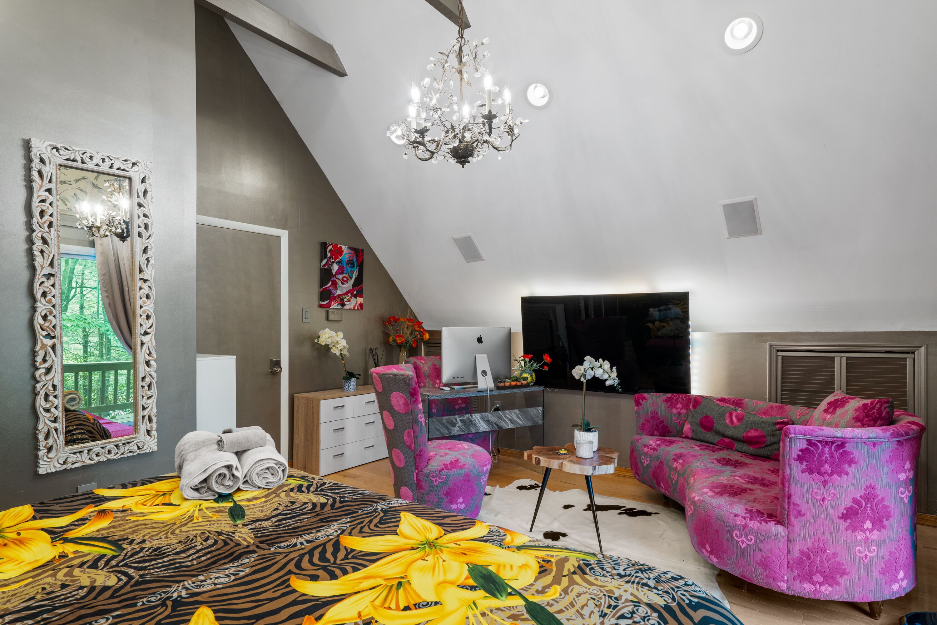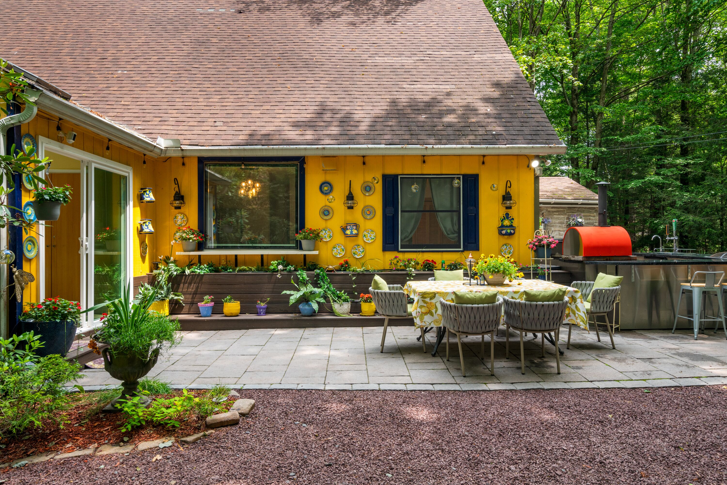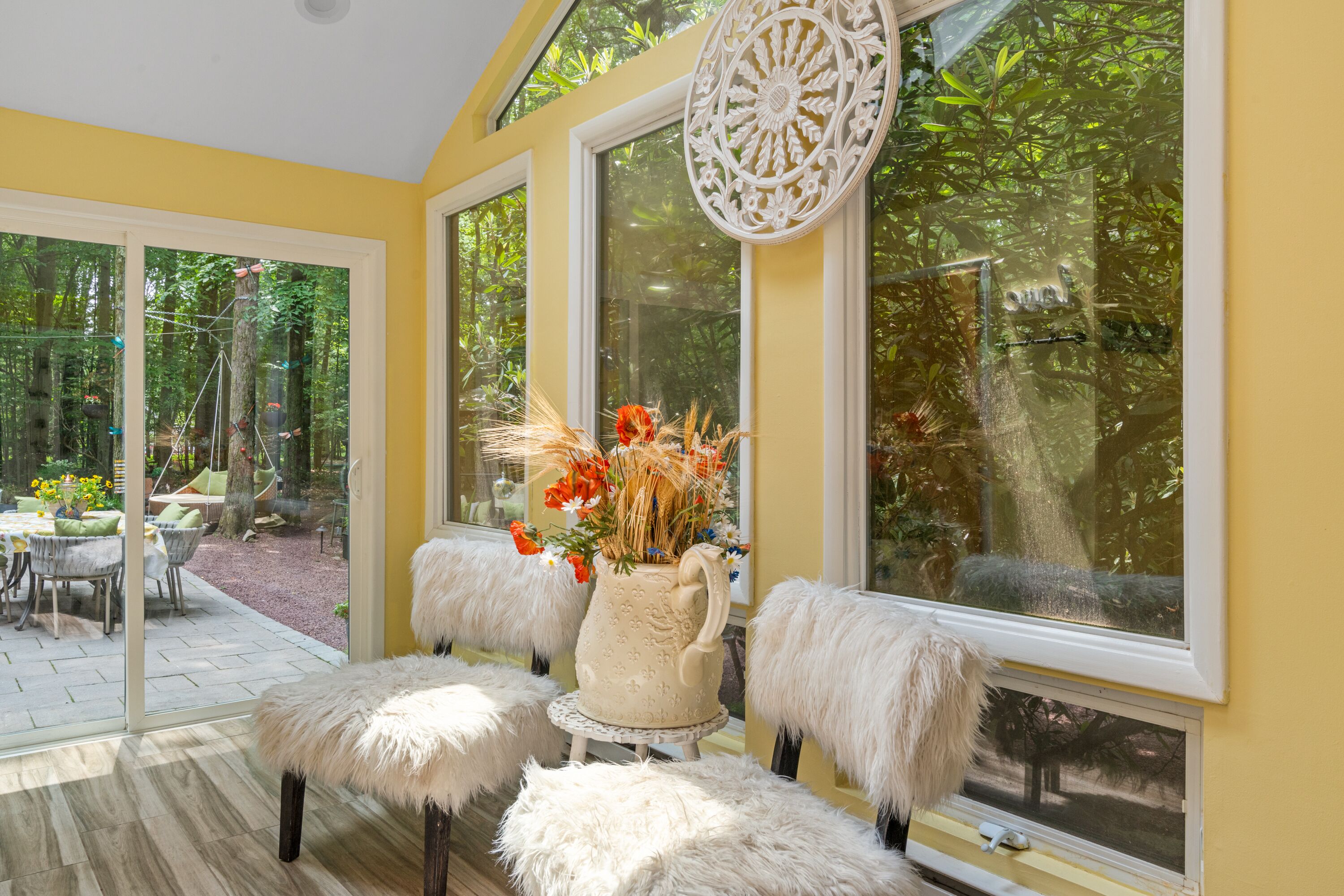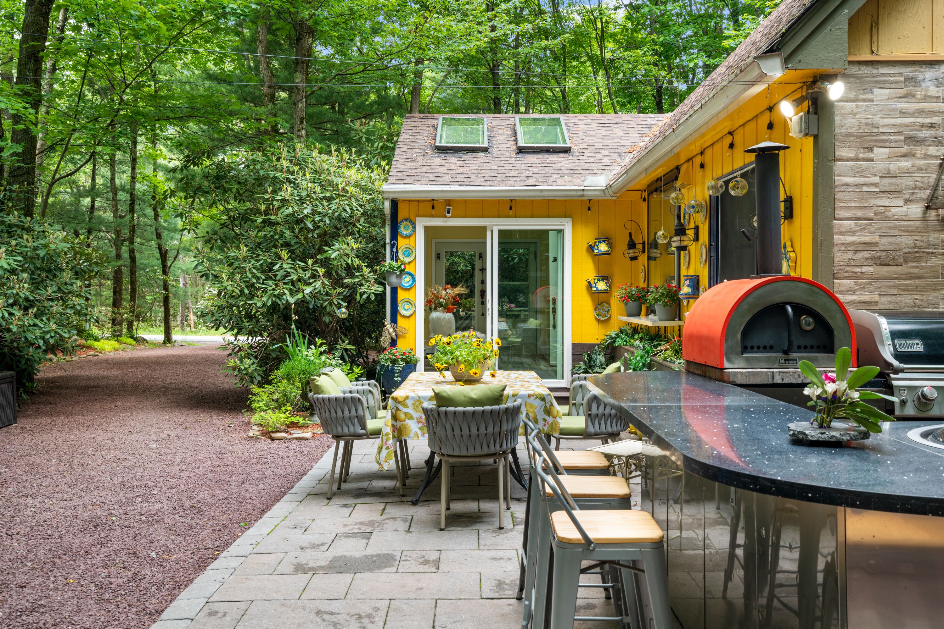 Lake Naomi Forest Oasis Retreat with Hot Tub & Lounging Galore This Modern Luxury French Country Villa in Lake Naomi, 5 minute walk or 1 min drive to the lake, Paddle board, kayaks available, has 4 King size bedrooms, 2 full BathsMarble counters, Spacious Living Room, flat screen TVs. Heos Sound System inside and outside, Large Deck, 2 Huge Fire Pit, Outdoor Bar, gas BBQ, wood burning Pizza Oven and a Beer Tap!! Hot tub and Japanese massage chair. Welcome to the exquisite Lake Naomi Modern Luxury French Country Villa, your ultimate Vrbo retreat in the beautiful Poconos. This magical vacation home offers an unforgettable escape with its luxurious amenities, including a private pool and hot tub, making it a true haven for relaxation and rejuvenation.As one of the premier Lake Naomi rentals, this lake house retreat is designed to provide a luxurious experience like no other. Nestled amidst nature's beauty, it offers a serene and enchanting ambiance, perfect for those seeking a luxury retreat.Indulge in the comforts of this magical vacation home, featuring 4 king-size bedrooms adorned with luxurious Egyptian cotton linens, ensuring a restful and indulgent stay. The villa boasts 2 full baths with elegant marble counters, adding a touch of sophistication to your daily routines.Step into the spacious living room, where you can unwind and create cherished memories with your loved ones. The well-appointed dining room sets the stage for memorable meals, while the flat-screen TVs and immersive Heos Sound System provide entertainment and enhance the atmosphere.The outdoor space is truly a gem, featuring a private pool and a soothing hot tub, inviting you to relax and enjoy the picturesque surroundings. This luxury retreat offers the perfect blend of tranquility and adventure, with easy access to the pristine lake and recreational activities.Discover the allure of this Lake Naomi rental, where luxury meets nature's beauty. Whether you're seeking a romantic getaway or a family vacation, this enchanting vacation home is the ideal choice for a magical and unforgettable experience.Book your stay at Lake Naomi Modern Luxury French Country Villa and unlock the door to a world of luxury, relaxation, and cherished memories. Explore the Poconos, indulge in the beauty of Lake Naomi, and embrace the serenity of this extraordinary retreat.Please note that a Lake Naomi Club (LNC) temporary membership is required for pool, beach, and camp access, ensuring access to a wide range of amenities and recreational activities. As a special offer, enjoy a complimentary LNC membership with a stay of 3 weeks or more.Outdoor Space has a Floating Bed, A Fire Pit, a Gazebo, This is a Wooded Shangrala!!! with access to the Lake Naomi, (Pool & Beach lounging req LNC temp Membership)