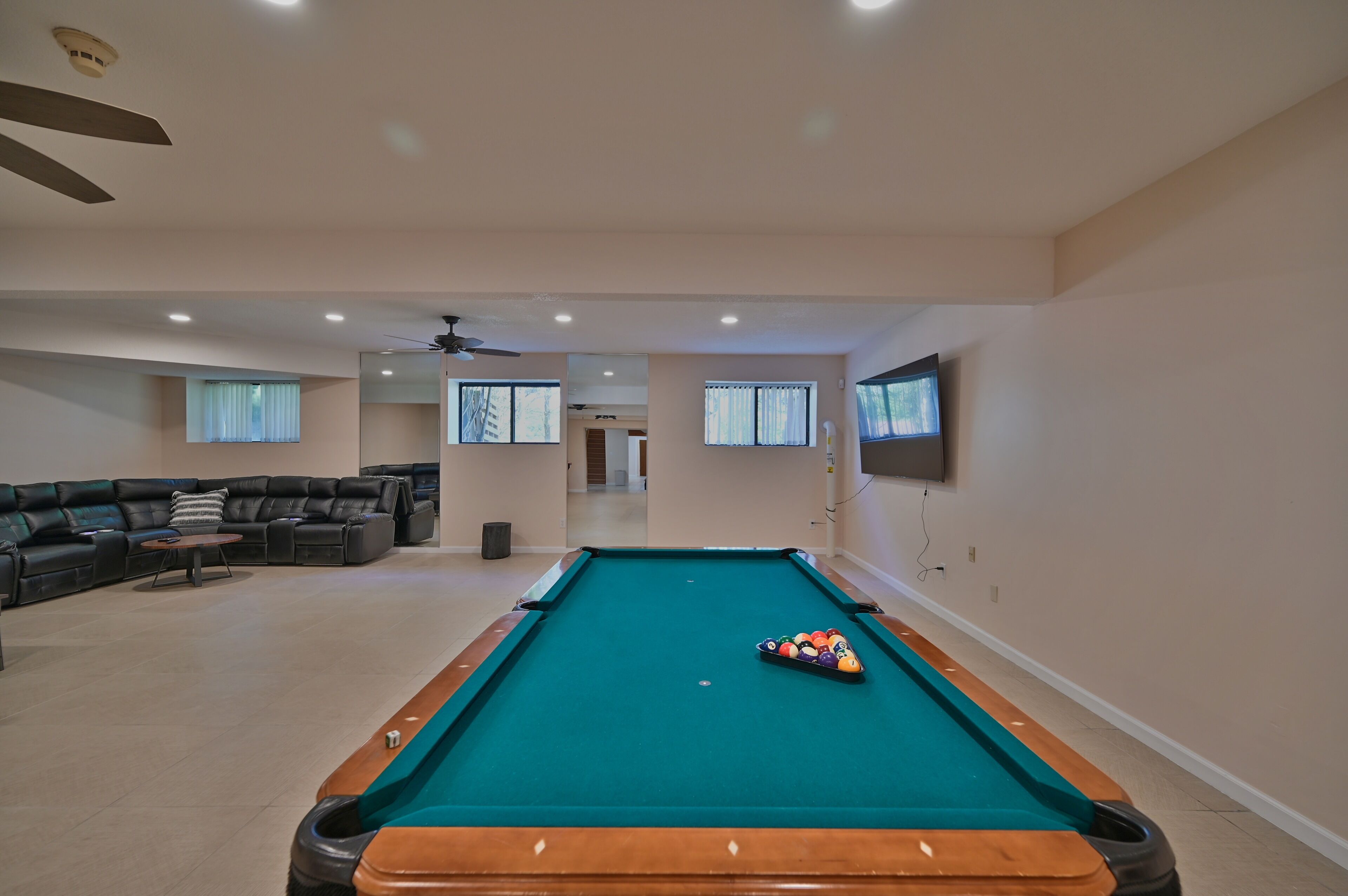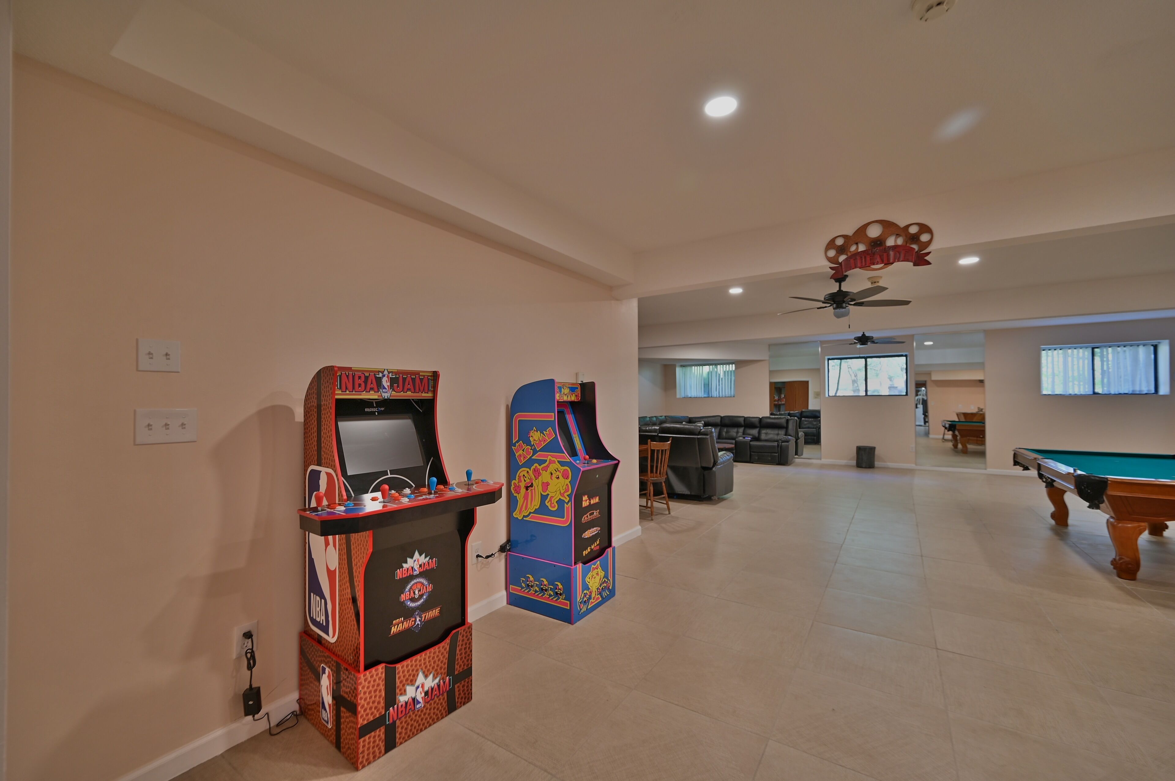 Luxury Villa in the heart of Poconos with Pool, Hot Tub, Sauna, and Game Room Revel in the comfort of this luxury 8BR 5 Full Bath & 2 Half. Villa with outstanding facilities in the serene neighborhood of the Poconos Mountains. The villa promises a relaxing, entertaining, family-friendly retreat close to numerous attractions, activities, and landmarks of the Poconos Mountains! Private outdoor pool, hot tub, sauna, and much more. eQGe8✔ 8 Comfortable Bedrooms✔ Open Design Living✔ Fully Equipped Kitchen✔ Swimming Pool✔ Backyard (Seating, Fire Pit, BBQ)✔ Game Room✔ Sauna✔ Gym✔ Smart TVs✔ High-Speed Wi-Fi✔ Free ParkingLearn more below!The space:As soon as you step foot in the luxury three-floor pool villa, you're welcomed by a very stylish yet highly comfortable open-plan living area. It is designed and decorated in an elegant manner that compliments the breathtaking vacation setting of the Poconos Mountains!The fully equipped kitchen and its adjacent dining area open onto the entertaining living room, setting the tone for many memorable evenings. Plenty of natural light coming through the large windows and glass doors makes the whole villa very bright during the entire day. Retreat to eight comfortable bedrooms, which feature 5☆-resort comforts that allow you to rest after an exciting day of adventuring throughout the region.But wait! The best is yet to come! Step outside to the private pool area equipped with luxury amenities for ultimate relaxation or come down to the spacious game room and enjoy hours of endless fun.★ LIVING ROOM ★It immediately feels like home, with comfy sofas, a coffee table for snacks and drinks, and a smart TV. ✔ Three Comfortable Leather Sofas with Pillows✔ Smart TV ✔ Coffee Table✔ Comfy Sofa Chair★ KITCHEN & DINING ★It is fully equipped with state-of-the-art cooking appliances that make it suitable for preparing any meal, whether it is a simple breakfast, quick snack, or a three-course gourmet dinner. Spacious granite countertops and a vast kitchen island provide plenty of room for you to work your MasterChef magic.✔ Microwave✔ Stove✔ Oven✔ Refrigerator/Freezer✔ Dishwasher✔ Coffee Maker✔ Toaster✔ Blender✔ Sink - Hot & Cold Water✔ Trays✔ Glasses✔ Silverware✔ Pots & PansThe dining area is perfectly nestled by the backyard entrance allowing you to gaze at the gorgeous natural surroundings while having delicious homemade meals. Another ✔ Custom Wood Slab Dining Table with Seating for 16★ SLEEPING ARRANGEMENTS – 8 BEDROOMS ★After an exciting day of adventuring throughout the Pocono Mountains, you will be looking to rest for an equally entertaining tomorrow. Once you are ready to relax, please make your way to these comfortable bedrooms. ♛ Master Bedroom 1 - King-Size Bed + Sofa Bed♛ Master Bedroom 2 - King-Size Bed + Crib♛ Bedroom 3 - Queen-Size Bed + Bunk Bed (Twin over Twin)♛ Bedroom 4 - Two Bunks Beds (Double over Double) ♛ Bedroom 5 - Queen-Size Bed♛ Bedroom 6 - Bunk Bed (Double over Double)♛ Bedroom 7 - Bunk Bed (Twin over Twin)♛ Bedroom 8 - Queen-Size BedEach bedroom is equipped with a similar set of amenities.✔ Smart TV (only in Master Bedrooms)✔ Pillows, Linens, and Sheets✔ Closet with Hangers and Shelves✔ Cabinet with Spacious Drawers✔ Night Stands with Reading Lights★ BATHROOMS ★A total of seven full bathrooms can be found within the villa. All are stocked with fresh towels and essential toiletries, so you don't have to worry about bringing your own. ✔ Bath with a Shower✔ Shower Cabin✔ Vanity✔ Mirror✔ Toilet✔ Towels✔ Hair Dryer✔ Essential Toiletries★ GAME ROOM ★Enjoy playing with your family and friends in the fully furnished basement floor used as a game room. We have prepared an abundance of entertaining activities that will make you lose track of time. The large comfortable sofa and the smart TV are perfect for unforgettable family movie nights!✔ Pool Table✔ Ping-Pong Table✔ Arcade Machines✔ Bar Area✔ Smart TV✔ Large U-Shaped Leather Sofa★ BACKYARD + POOL AREA ★The outdoor swimming pool opens on Memorial Day Weekend and closes on Labor day, if the weather permits we keep it open till the first week of October Soak up the sun in complete privacy, surrounded by many entertaining and comfortable amenities for children and adults. Besides the luxurious pool area, you can enjoy the serenity of the lush green surroundingsThe hot tub is open throughout the year except for extreme weather conditions in the winter. The heating element cannot keep up if the weather gets below 24 degrees. ✔ Swimming Pool ✔ Fire Pit✔ BBQ Grill✔ Sun Lounges✔ Covered Seating Area with Table and ChairsGuest access The entire villa is exclusively yours, without interruption for the duration of your stay, so relax, unwind, and make yourself at home.Other than the already mentioned amenities, the house also features:✔ Sauna✔ Gym✔ High-Speed Wi-Fi✔ Air Conditioning✔ Heating✔ Washer+ Dryer✔ Free Parking
