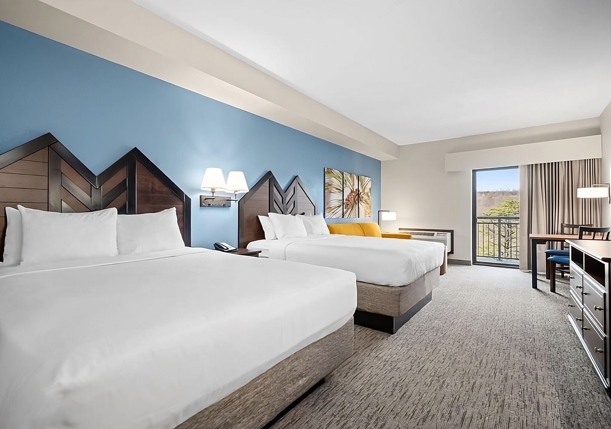 3 Amazing Units Close to Sullivan Express Ski Lift! Shuttle, Waterpark, Parking! Enjoy a relaxing stay in spacious accommodations, each equipped with Wi-Fi, flat-screen TVs, microwaves, and mini-refrigerators. Take the little ones for a dip in the indoor waterpark with a lazy river and waterslide. For some apres ski time, make the most of the onsite hot spring bath and fitness center, or enjoy a meal at the restaurant or a drink at the pool bar. The property also has an arcade or game room for absolute enjoyment. And for events, the venues in the property are readily available to cater for any meeting, occasion, and celebration. All these surely guarantee an unforgettable experience!PLEASE NOTE:This listing is specifically for a hotel room located within a hotel, distinguishing it from typical residential or apartment accommodations.- These are THREE separate hotel rooms. Rooms are individually unique and may not be adjoining or adjacent, allocated based on availability upon arrival. The price is for all rooms.- The property requires a damage deposit of USD 50/night/unit on the credit/debit card provided. The deposit is required for EACH UNIT and is refunded IN FULL upon check-out.- Early check-in is subject to availability upon arrival.- Following property rules, the minimum age required for check-in is 21 years old.We're delighted you're considering RoomPick’s curated selection of boutique hotels, condo hotels, and resorts worldwide. This room comes with:THE SPACESEach 420sf Double Queen features:- 2 Queen Beds;- Living area with sofa bed;- Mini refrigerator and microwave;- Dining table;- Flat-screen TV with cable channels;- Daily housekeeping;All linens, towels, and bathroom essentials are provided. You don’t need to bring a thing!!THE PROPERTYOur family-friendly property provides the following on-site amenities:- 24-hour front desk and security;- Concierge service, tour/ticket assistance;- Indoor swimming pool/waterpark with lazy river and waterslide;- Loungers and towels by the pool;- Hot spring bath;- Onsite restaurants & bars;- Shuttle service;- Ski-in/ski-out access;- Ski pass vendor;- Ski equipment rental;- Ski storage (Additional charge);- Billiards;- Darts- Arcade/game room;- Fitness center;- Meeting/banquet facilities;- Vending machines;- Pets are not allowed;- Self-parking is available (parking slot reservation is not required in advance) and costs USD 25 per day.