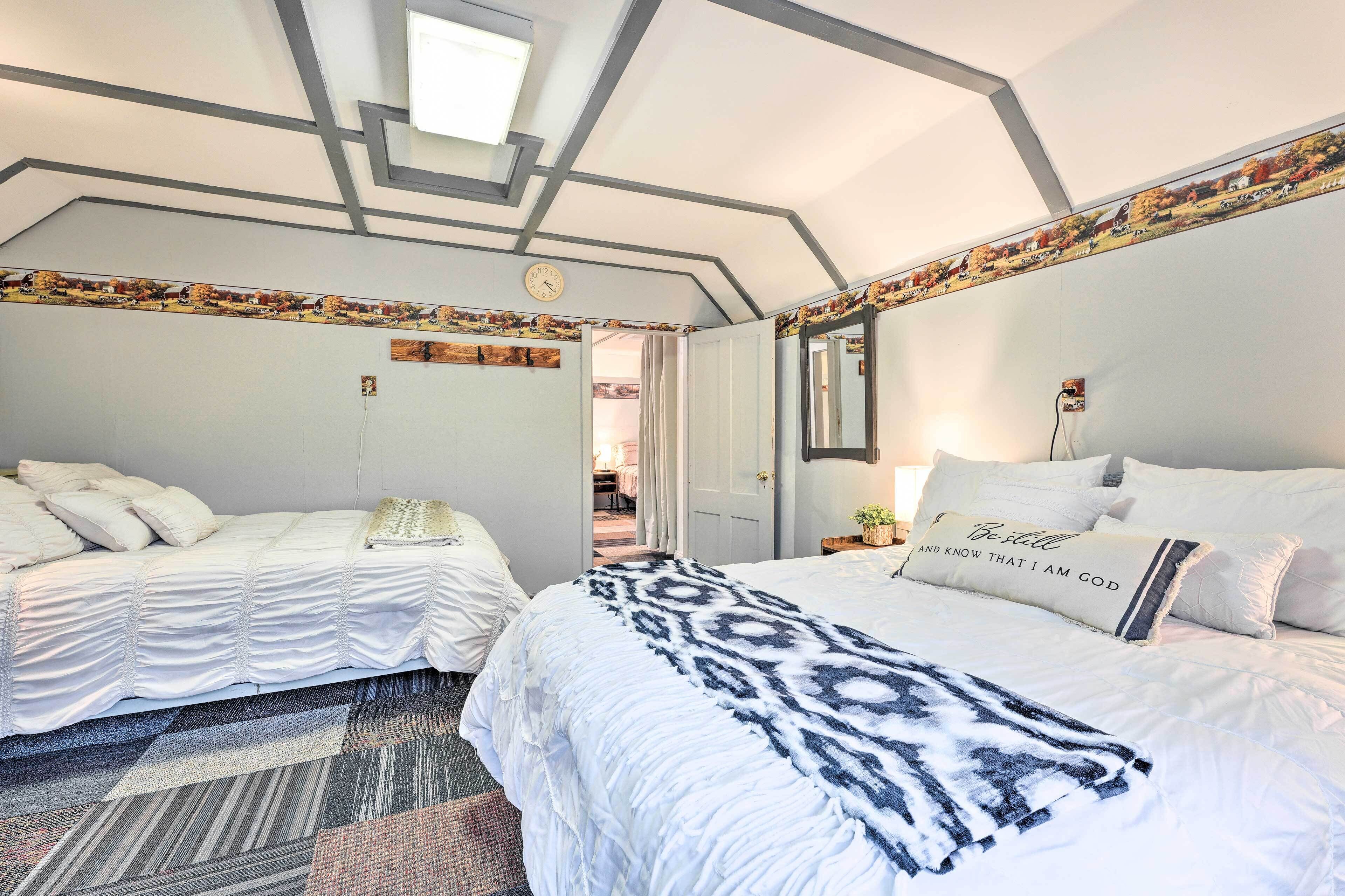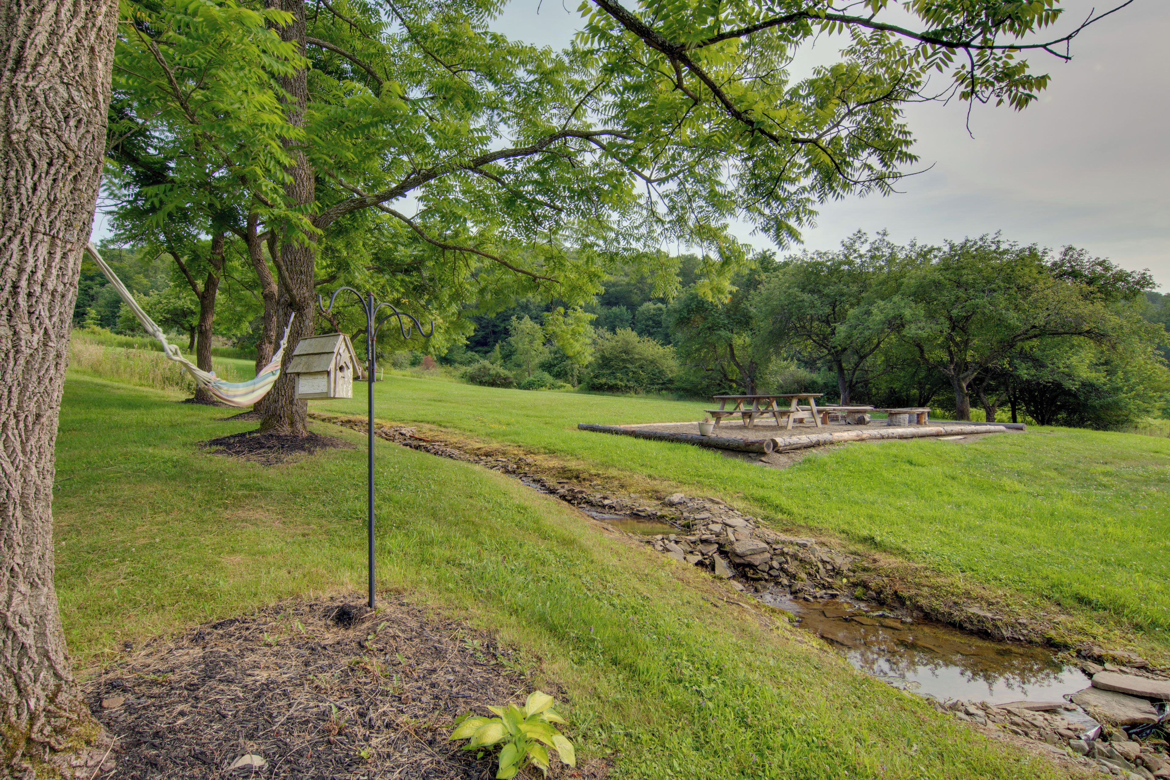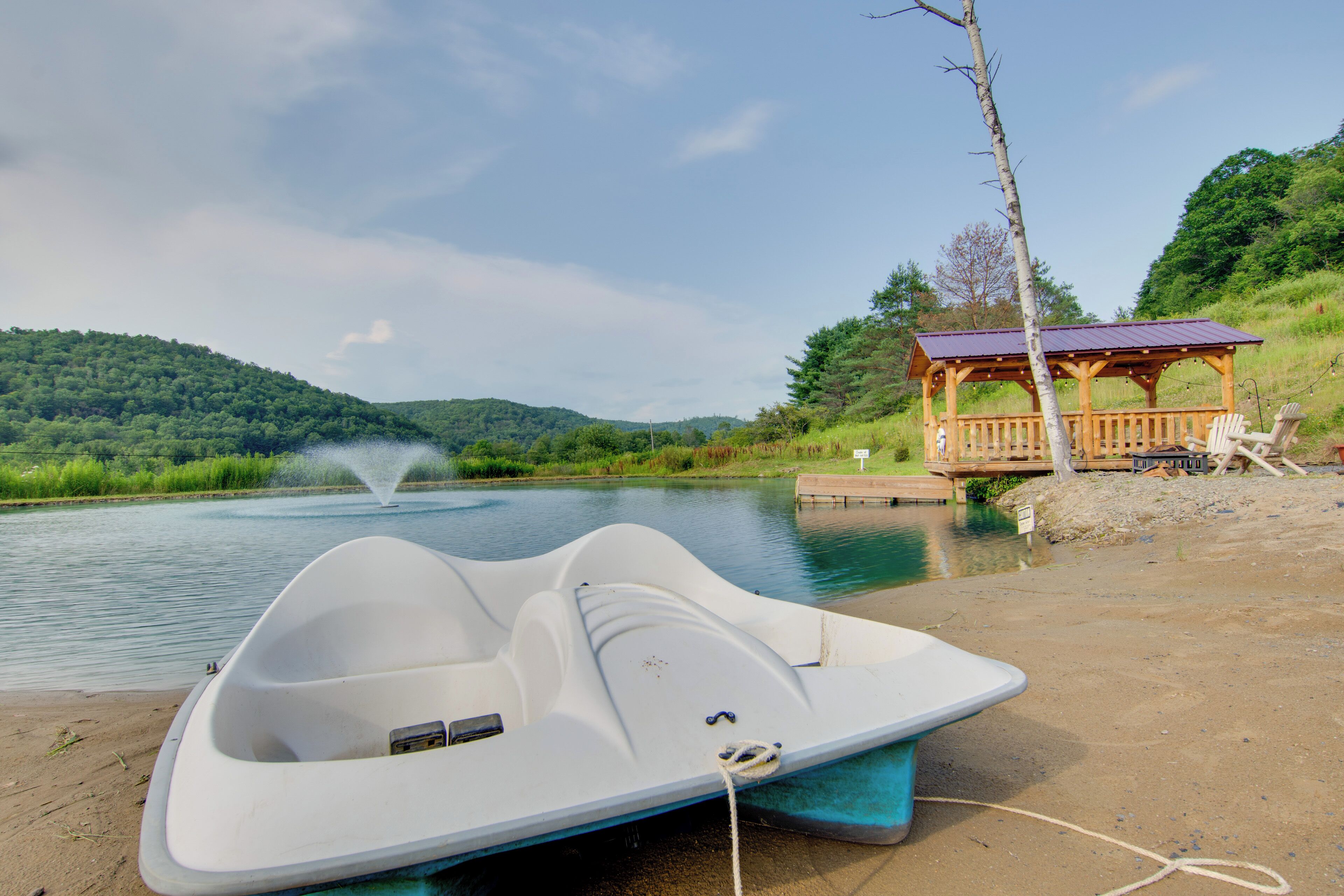 ‘The Olde Homestead’ w/ Fire Pit & Mountain Views! With a pond, mountain views, and abundant wildlife right outside the door, this charming Roulette vacation rental is a serenity seeker’s dream! Perfect for a family getaway or a weekend trip with friends, this 5-bedroom, 2-bath home provides plenty of opportunities to enjoy the fresh air. Bring your pup along and explore Cherry Springs State Park, or venture out to the State Game Lands for a hunting trip. Cap off your day with s’mores around the fire pit and enjoy stargazing in the night sky!-- THE PROPERTY --Gas Grill | Pond w/ Pedal Boat | Free WiFi | Pet Friendly w/ Fee | Newly Updated KitchenPerfect for family getaways or reunions with friends, this well-appointed vacation rental provides a peaceful countryside location and all of the comforts of home!Bedroom 1: Full Bed | Bedroom 2: Full Bed | Bedroom 3: Full Bed, Twin Bed | Bedroom 4: Full Bed, Twin Bed | Bedroom 5: 2 Full Beds | Additional Sleeping: Pack ‘n PlayOUTDOOR LIVING: Wraparound porch, fire pit (firewood provided), picnic table, hammock, mountain views, spike ball, corn hole, cub game, pondside seatingINDOOR LIVING: Flat-screen TV, dining table, ceiling fansBRAND NEW KITCHEN: Fully equipped w/ stainless steel appliances, dishwasher, cooking basics, Keurig & drip coffee makers, toaster, blender, Crock-Pot, knife set, complimentary coffee, tea & K-Cups, dishware & flatwareGENERAL: Keyless entry, washer & dryer, linens & towels, complimentary toiletries, high chair, hair dryer, trash bags & paper towelsFAQ: 2 exterior steps required, bedroom & bathroom on 1st floor, pet fee (paid pre-trip), quiet hours (9 PM - 8 AM), 1 exterior security camera (facing out), no A/CPARKING: Driveway (15 vehicles)-- THE LOCATION --OUTDOOR RECREATION: State Game Lands Number 59 - hunting (7.0 miles), Summit Trail Rides (18.9 miles), Hamlin Lake Park (19.4 miles), Austin Dam Memorial Park (19.9 miles), Patterson State Park (22.1 miles), Prouty Place State Park (23.7 miles), Cherry Springs State Park (26.6 miles), Lyman Run State Park (27.5 miles), Kinzua Bridge State Park & Sky Walk (30.7 miles)ATTRACTIONS: Cinco C's Alpacas (5.4 miles), Eliot Ness Museum (11.5 miles), Coudersport Ice Mine (15.5 miles), Gary's Putter Golf & Jiffy Pup Restaurant (15.9 miles), Pennsylvania State Line (29.0 miles), Wildlife Center at Sinnemahoning State Park (35.4 miles), Holiday Valley Resort (54.0 miles)LOCAL EATERIES: The Friendly Inn (2.7 miles), A&W West End Grill (9.8 miles), Fox's Pizza Den (10.6 miles), Mosch's Country Tavern (11.1 miles), Olga Gallery, Cafe, & Bistro (11.6 miles)AIRPORTS: Bradford Regional Airport (29.6 miles), Greater Rochester International Airport (121 miles), Pittsburgh International Airport (188 miles)-- REST EASY WITH US --Evolve makes it easy to find and book properties you’ll never want to leave. You can relax knowing that our properties will always be ready for you and that we’ll answer the phone 24/7. Even better, if anything is off about your stay, we’ll make it right. You can count on our homes and our people to make you feel welcome--because we know what vacation means to you.-- POLICIES --- No smoking - Pet friendly w/ $200 fee (+ fees & taxes, 2 pets max)- No events, parties, or large gatherings- Please observe quiet hours from 9:00 PM to 8:00 AM- Must be at least 21 years old to book- Additional fees and taxes may apply- Photo ID may be required upon check-in- NOTE: The property does not offer A/C- NOTE: While there is a bedroom and bathroom on the 1st floor, the property requires 2 exterior stairs to enter and may be difficult for guests with limited mobility- NOTE: Your safety matters. This property features a Blink Doorbell device with an exterior security camera facing the front outdoor entry. The camera does not look into any interior spaces. The camera actively records video when motion is detected by the device (including devices linked to the camera such as the alarm system’s motion detector) or when the video doorbell button is pressed