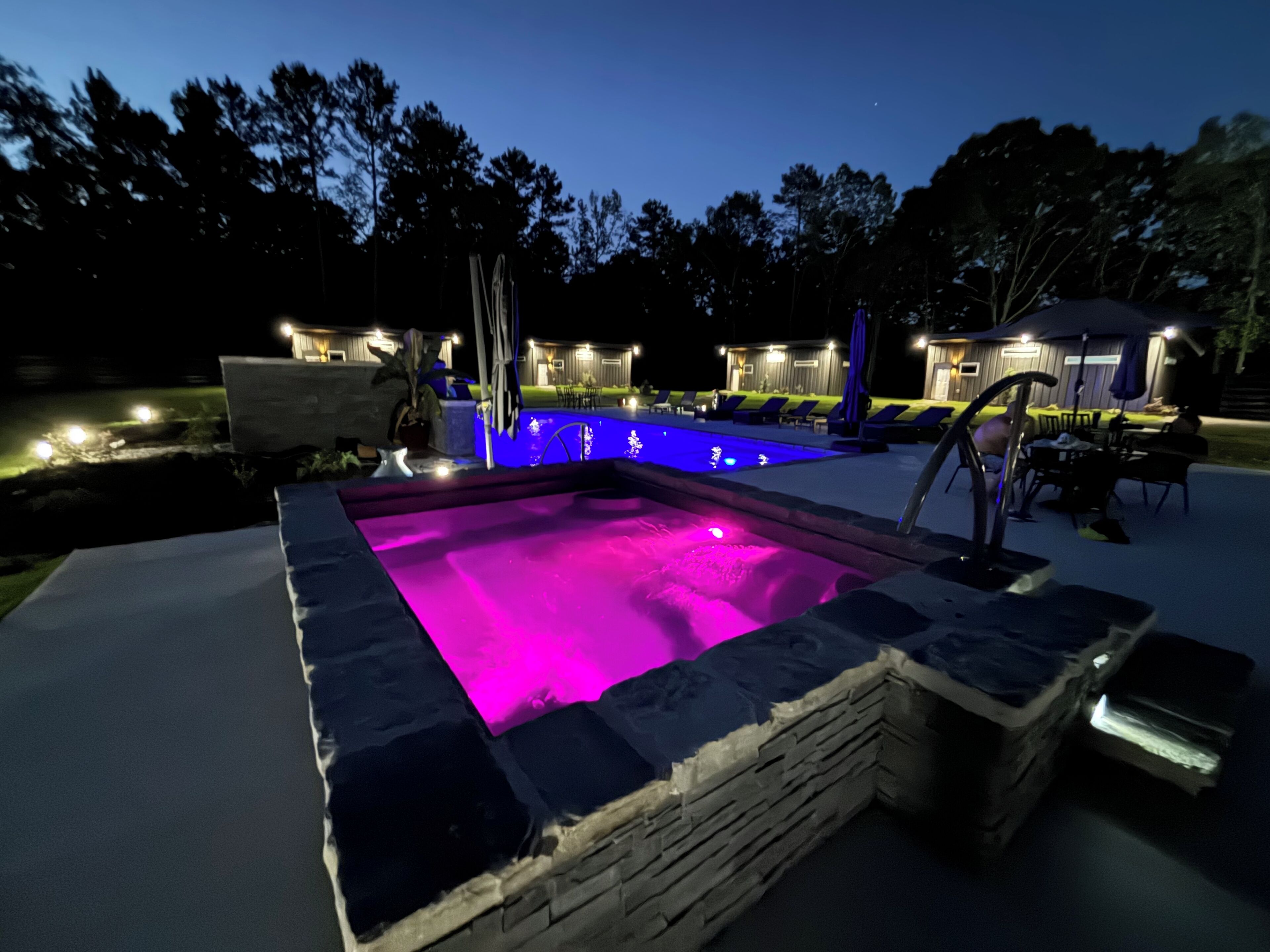 Romantic 1-bedroom tiny home in a resort style property. Adult-Only Welcome to our romantic, adults-only resort in Royal, where relaxation and luxury await. Nestled in a serene setting, our cozy retreat offers a comfortable queen bed in the bedroom, a modern bathroom with a shower, and a charming living room with a sofa bed for additional comfort.During your stay, unwind by the pool or in the hot tub, surrounded by the soothing sounds of waterfalls. For a unique experience, indulge in a shower under the stars or gather around the fire pit, immersing yourself in the tranquil sounds of nature.To cater to your culinary desires, we provide a community kitchen equipped with a Blackstone grill and a gas grill, perfect for preparing delicious meals at your leisure.Book now and embrace everything our resort has to offer. Whether you're seeking relaxation, romance, or simply a peaceful getaway, you'll find it all here at our exclusive adults-only retreat in Royal.