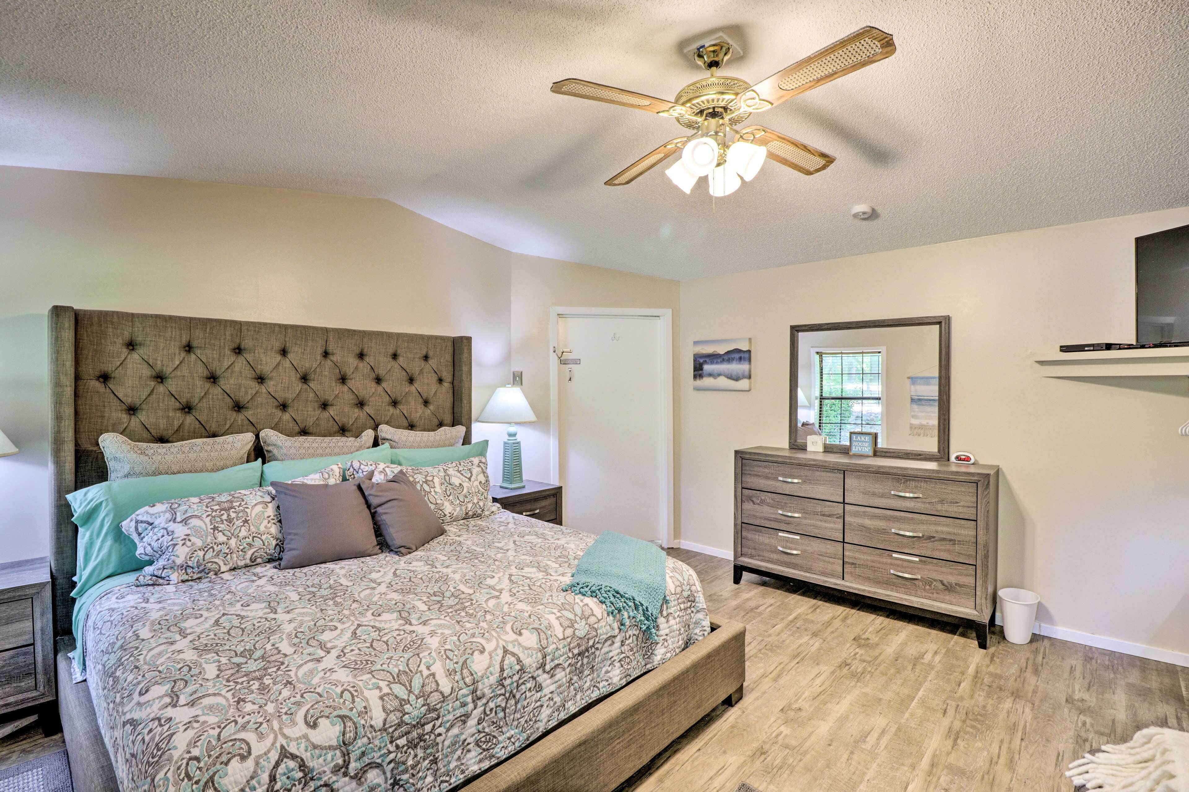 Quiet Home in Royal w/ Deck: 13 Mi to Hot Springs! Whether you’re seeking the ultimate lake retreat, or a relaxing getaway filled with spa days, this 4-bedroom, 2-bathroom vacation rental house in Royal is the perfect destination. Rent a boat and cruise around on Lake Hamilton or Ouachita River soaking up the sun and swimming or fishing. For a slower pace, visit the Buckstaff Bathhouse, or the Quapaw Baths & Spa, both less than 13 miles for a rejuvenating experience. At the end of each day, bring a cocktail out to the covered deck and grill.-- THE PROPERTY --Dock/Boat Slip | Step-Free Access | Washer/DryerThis property is great for travelers who enjoy living large, where they don’t have to sacrifice luxurious amenities or proximity to attractions. Bedroom 1: King Bed | Bedroom 2: Queen Bed, Twin Bed | Bedroom 3: 2 Full Beds | Bedroom 4: Twin/Full Bunk Bed INDOOR LIVING: Smart TV w/ Roku (guest mode), central heat & air conditioningOUTDOOR LIVING: Expansive covered deck, gas grill, patio furniture, outdoor dining, ceiling fans, fire pit, private yard, one tandem & one single sit on top kayaks provided KITCHEN: Fully equipped, dishwasher, blender, coffee maker, Crockpot, cooking basics, spices, waffle maker, ice cream makerGENERAL: Free WiFi, linens/towels, beach chairs, complimentary toiletries, pet fee (paid pre-trip)PARKING: Driveway (8 vehicles)-- THE LOCATION --LAKE HAMILTON/OUACHITA RIVER (17 miles): Boat ramp, Paradise Cove Marina (11 miles), Hill Wheatley Boat Ramp (12 miles), Entergy Park (17 miles), swimming, fishing, boating, beaches, watersports equipment rentalsSPAS: Buckstaff Bathhouse (13 miles), Quapaw Baths & Spa (13 miles), The Springs Hotel & Spa (13 miles), The Thermal Bathhouse & Spa at the Arlington (13 miles), Ablution Day Spa & Salon (15 miles)FAMILY FUN: Mid-America Science Museum (9 miles), Arkansas Alligator Farm and Petting Zoo (12 miles), Pirate's Cove Adventure Golf (15 miles), Magic Springs Theme and Water park (15 miles)PARKS: Hot Springs National Park (13 miles), Lake Ouachita State Park (17 miles), Garvan Woodland Gardens (21 miles), Lake Catherine State Park (25 miles), Crater of Diamonds State Park (54 miles) AIRPORTS: Hot Springs Memorial Field Airport (11 miles), Bill and Hillary Clinton National Airport (70 miles)-- REST EASY WITH US --Evolve makes it easy to find and book properties you'll never want to leave. You can relax knowing that our properties will always be ready for you and that we'll answer the phone 24/7. Even better, if anything is off about your stay, we'll make it right. You can count on our homes and our people to make you feel welcome — because we know what vacation means to you.-- POLICIES --- No smoking- Pet friendly w/ $50 fee (+ fees & taxes, 2 pets max)- Please clean up after your pets indoors and outdoors and kennel your pets if left unattended. Kennel not provided- No events, parties, or large gatherings- Must be at least 25 years old to book- Additional fees and taxes may occur- Photo ID may be required upon check-in- NOTE: There is an adjacent vacation rental on-site; other travelers may be present during your stay- NOTE: The water level of the lake is lowered when time changes in the Fall and raised when time changes in the Spring. The Spring/Summer water level at this dock is 8-10 feet- NOTE: The steps to the dock and operation of the kayak pulley lifts may be too strenuous for some guests
