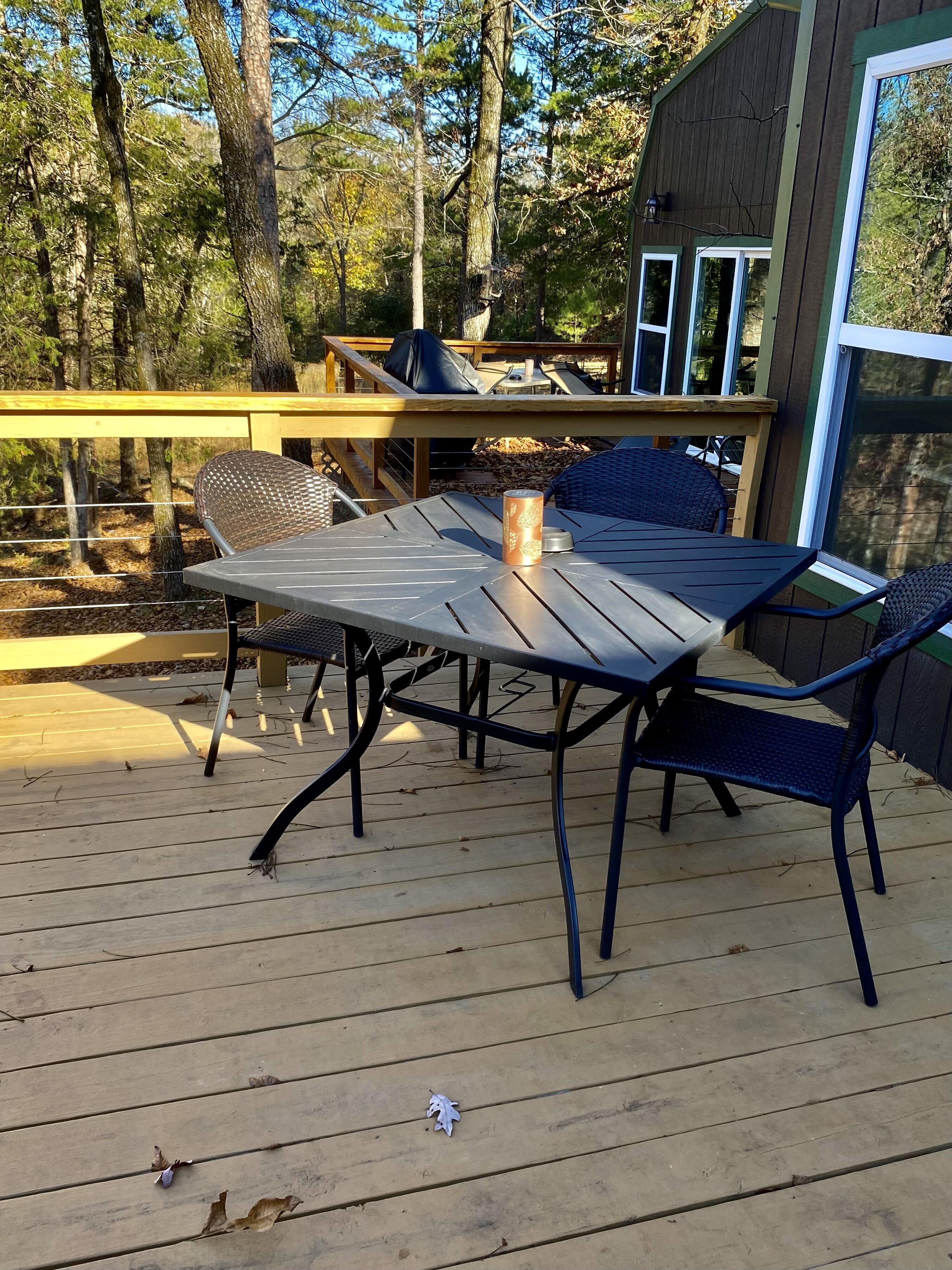 Cabin #2 - The Metropolitan on the Lake! Archery Season opens this weekend 9/7-9/9. Book one cabin and receive 2nd one for 1/2 off! Mention promo code EARLY BUCK to book!Located on property with 20 stylish, upscale lake-front cabins and within easy walking distance of our brand-new, state-of-the-art venue, which can be rented for weddings, family reunions, business training classes, etc. Message us for all the exciting details!All cabins have two bedrooms - one downstairs and one loft bedroom, and one bathroom. This cabin comes equipped with:Bedroom 1: 1 King - 2 guests Loft: 1 King, 1 Twin - 3 guestsBathroom: Walk-in ShowerAlexa & Wi-Fi is set up in all cabins. Every TV is set up with Netflix, YouTube & Prime. 50"-55" TV downstairs, 32 " TV upstairs. Our cabins are beautifully decorated and supplied with everything you need, including luggage racks. This cabin also has a washer/dryer for guests’ convenience. All cabins have decks overlooking the lake where you can enjoy watching the geese fly away each morning and return each evening, or watch boats cruise by as you enjoy the fresh air and beautiful landscape. Sunsets are breathtaking, and can be seen from every deck, allowing you to enjoy the sun shimmering off the lake! Outside, you'll find a table with chairs on the deck. Relax and watch the birds come to the bird feeders. There is a shared firepit at one end of the cabins with a deck overlooking the lake for all our guests to use, as well as swimming and boat docks. Enjoy playing horseshoes and walking our trails.Kayaks are located at our private boat dock. They are available for a small fee, and they are yours for the entire day. First come, first serve. Contact us after booking for more details.We have boat slips and boat docking stations. Ask about bringing your boat when you book. Your safety is important to us! Each cabin has lighting at the front door and our ample parking lot is very well lit. We have security cameras located on the premises to give our guests a sense of security. They are located in all exterior areas: parking area, boat docks area, entryways/exits, and exterior of the cabins. The cameras are always recording for the safety of all our guests. Our on-site caretaker is available to help with anything you may need as well.Lake Hamilton has four locations where you can park your boat and grab a bite to eat, play volleyball, and swim in coves off the lake. We also have boats with a captain to cruise you around the lake, which can be rented during your stay. We will be more than happy to give you rates after you have booked your stay with us. If you have an electric vehicle, we have you covered - we also offer EV charging stations.The Sunshine Store and Café is located 3 miles from our cabins. They offer homemade sandwiches and yummy desserts. The store and café are open six days a week, Monday through Saturday 6AM-4PM, except Friday where they are open until 8PM. They're closed on Sunday.Our cabins are located 25 minutes from historic downtown Hot Springs, where you can stroll down Bathhouse Row, shop at the many unique shops, grab a bite to eat, have a spa day at one of Hot Spring's famous bathhouses, and even sit on the porch in a rocker and watch the people go by.Oaklawn Racing and Casino is located 25 minutes away. Enjoy live horse racing from December to May or visit their non-smoking casino, open year-round.Magic Springs Amusement Park & Waterpark is located 35 minutes from the cabins. This is a seasonal attraction that offers thrilling rides, concerts, and lots of fun activities.**Check In – 3:00 pm (local time) **Check Out – 11:00 am (local time)