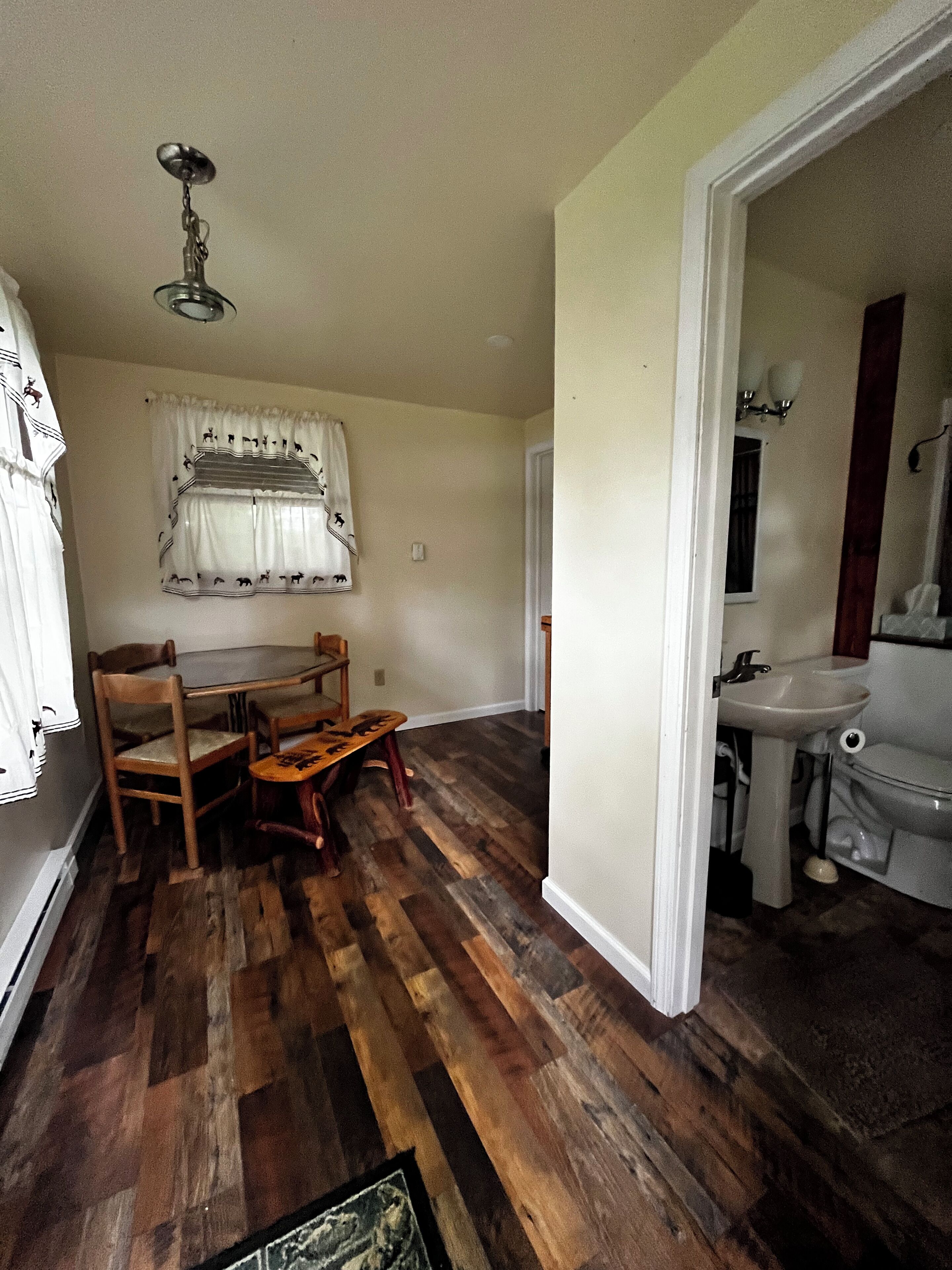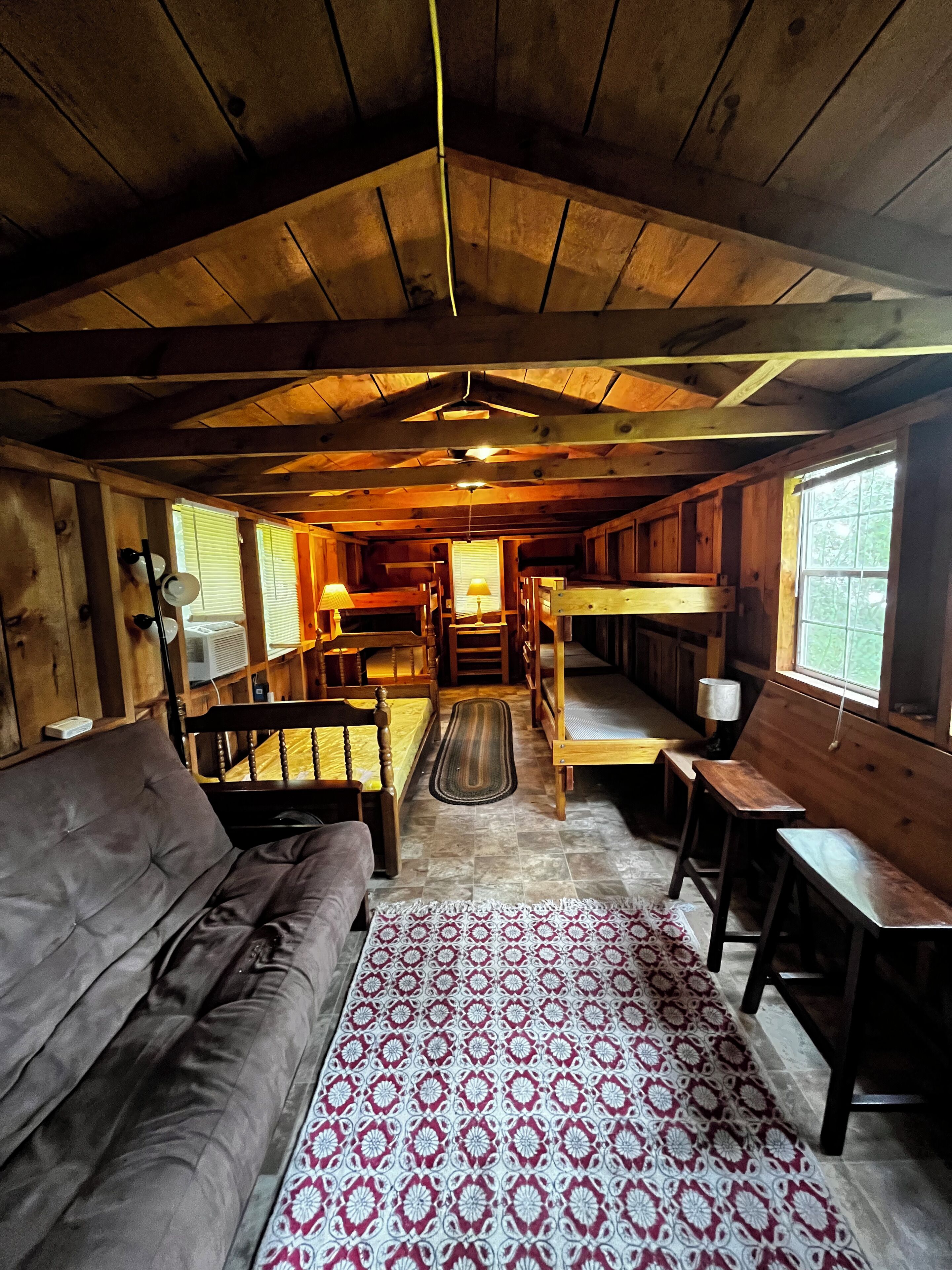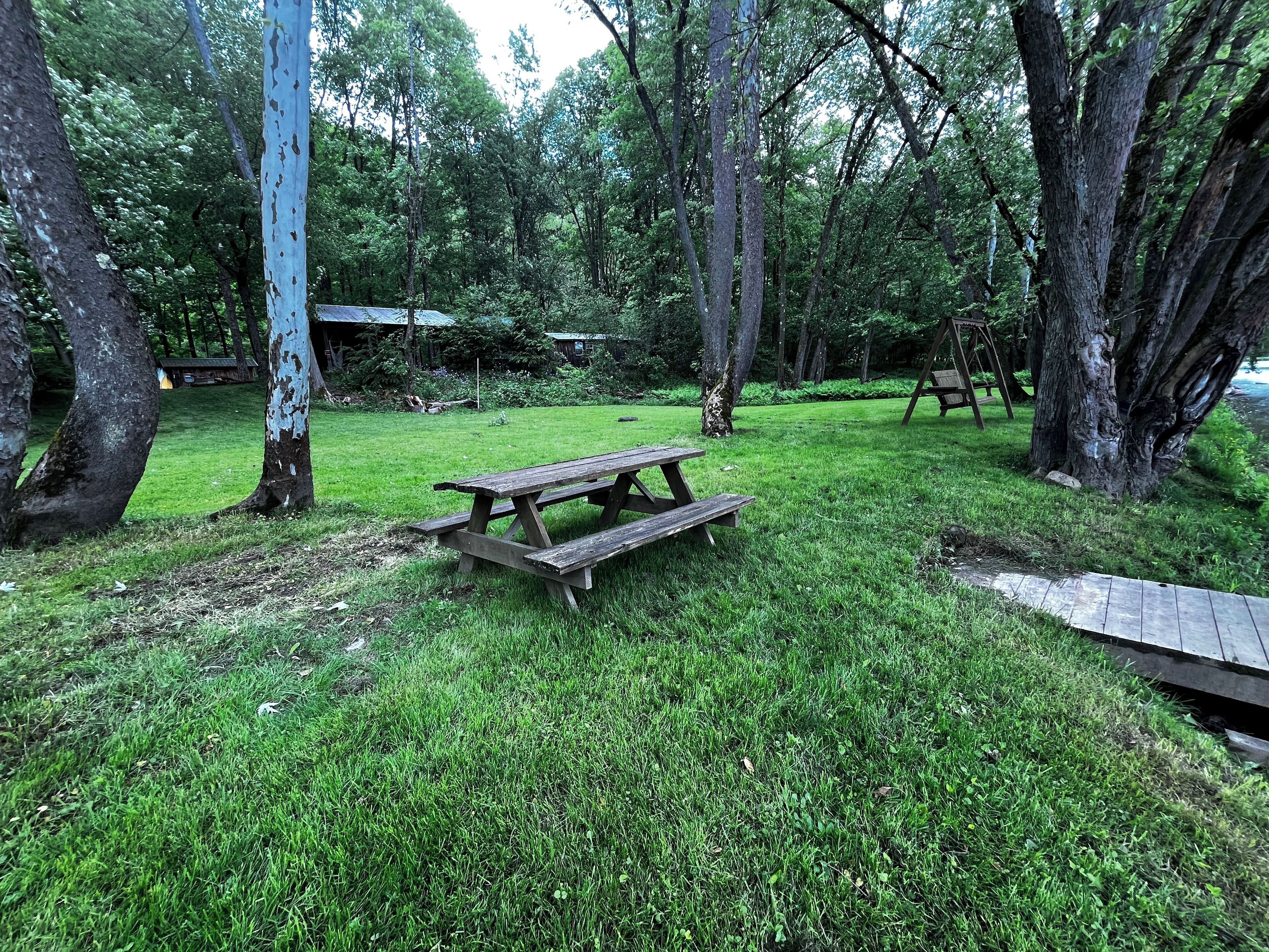 Riverside Retreat on 425' of Allegheny River frontage with large, flat area Come and experience the perfect blend of rustic charm and modern amenities at our Riverside Retreat on the Allegheny. Whether you're seeking a peaceful solo retreat, a romantic getaway, or a fun-filled family vacation, our property has something for everyone. Book your stay today and create unforgettable memories along the beautiful Allegheny River. Main Cabin:Step into comfort in our spacious 1-bedroom cabin, designed for both coziness and convenience. With dimensions of 24x20 and 10x19, this cabin features electricity and a charming wood stove, perfect for a cozy evening. The newly remodeled bedroom provides a restful sanctuary, while the full bath ensures modern amenities at your fingertips. The open kitchen and living area is highlighted by a newly built prep island, making meal preparation a breeze. Enjoy your morning coffee or an evening drink on the back deck and porch, soaking in the serene views of the river.Pavilion:Our large 22x22 pavilion, equipped with electricity, opens towards the river, offering an ideal spot for gatherings, meals, or simply unwinding while enjoying the scenic beauty.Bath House:Recently remodeled, the 12x16 bath house is heated and includes a full bath and kitchenette ensuring you have everything you need for a comfortable stay.Bunk House:For larger groups, the bunk house provides additional sleeping quarters for up to eight guests, with electricity to keep everyone comfortable.Camper Stations:Traveling with an RV or camper? We have two dedicated camper stations complete with water and electric hookups, offering flexibility and convenience for all types of travelers.Outdoor Amenities:The property’s expansive flat outdoor space along the river is perfect for games, picnics, or simply lounging by the water. A dock on the river invites you to enjoy fishing, boating, or simply watching the river flow by.List of Amenities:FurnitureMain Cabin• Double bed• 2 bench beds• Couch• Recliner• Chair• Ottoman• Table with 6 chairs• Bench• Prep island with 6 stools• Patio table with 4 chairs – front deck• Rocking chair- front deck• TV with Firestick• DVD player• Full bathroom• Wood Stove• 2 AC UnitsBunk House• 3 bunk beds with rails on top• Single bed• Futon• Breakfast table with 2 stools• 2 Chairs• 1AC UnitBathhouse• 48” Table • 3 Chairs and bench• Full bathroomPavilion• 2 Picnic tables• Patio table with 5 chairs• 2 Adirondack chairs• 4 Folding chairs• 8-foot serving station• 6-foot wooden table• ClotheslineRiverside• 3-person bench swing• Picnic table• DockCooking Main Cabin• Propane Stovetop• Outdoor propane grill• Microwave• Toaster oven• Toaster• Refrigerator• Coffee Pot• Electric Water Kettle• Plates• Glasses• Mugs• Serving ware• Silverware Bathhouse• Microwave• Coffee Pot• Toaster Oven• Mini refrigerator Pavilion• Camp fire grill• Hot dog sticks• RefrigeratorGames• Cornhole• Ladder Ball• Bocce• Croquet• Ping Pong• Board games• Puzzles• Playing cardsWater Fun• 4 Round blowup rafts• 5 Kayaks (unregistered)• 4 Canoes (unregistered)• Paddles• Oars• Life Preservers• Slip N’ Slides• Manual Air PumpsFirewood• First bundle of wood free. • Additional bundles are $5 each.• Please do not burn boxes that firewood bundles are in.• Deposit cash in firewood deposit box in main cabin.• Using firewood without cash deposit will result in payment coming from security deposit.Please note that the list of amenities is subject to change without notice to tenant or reimbursement. However, we will do our best to maintain this list of items at a minimum.NOTE: Toilet paper, toiletries, pillows, blankets, and linens are not included in the rental. Please bring your own when staying at the lodge.