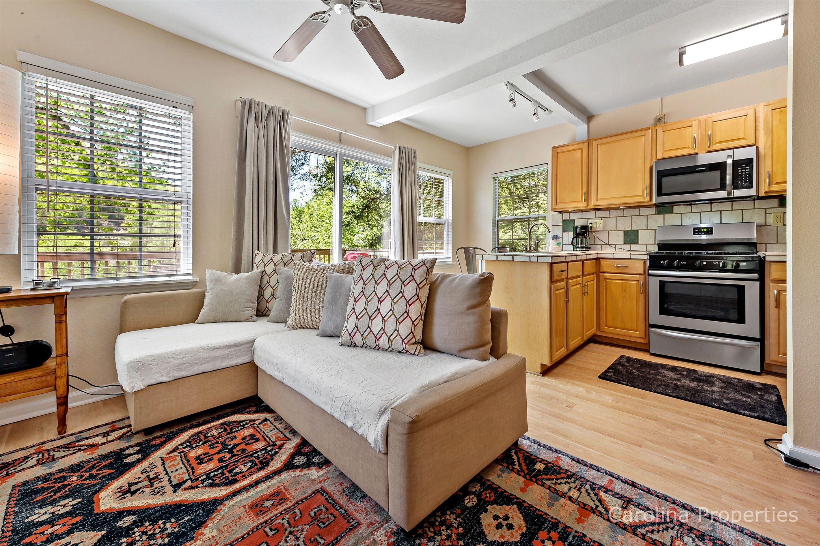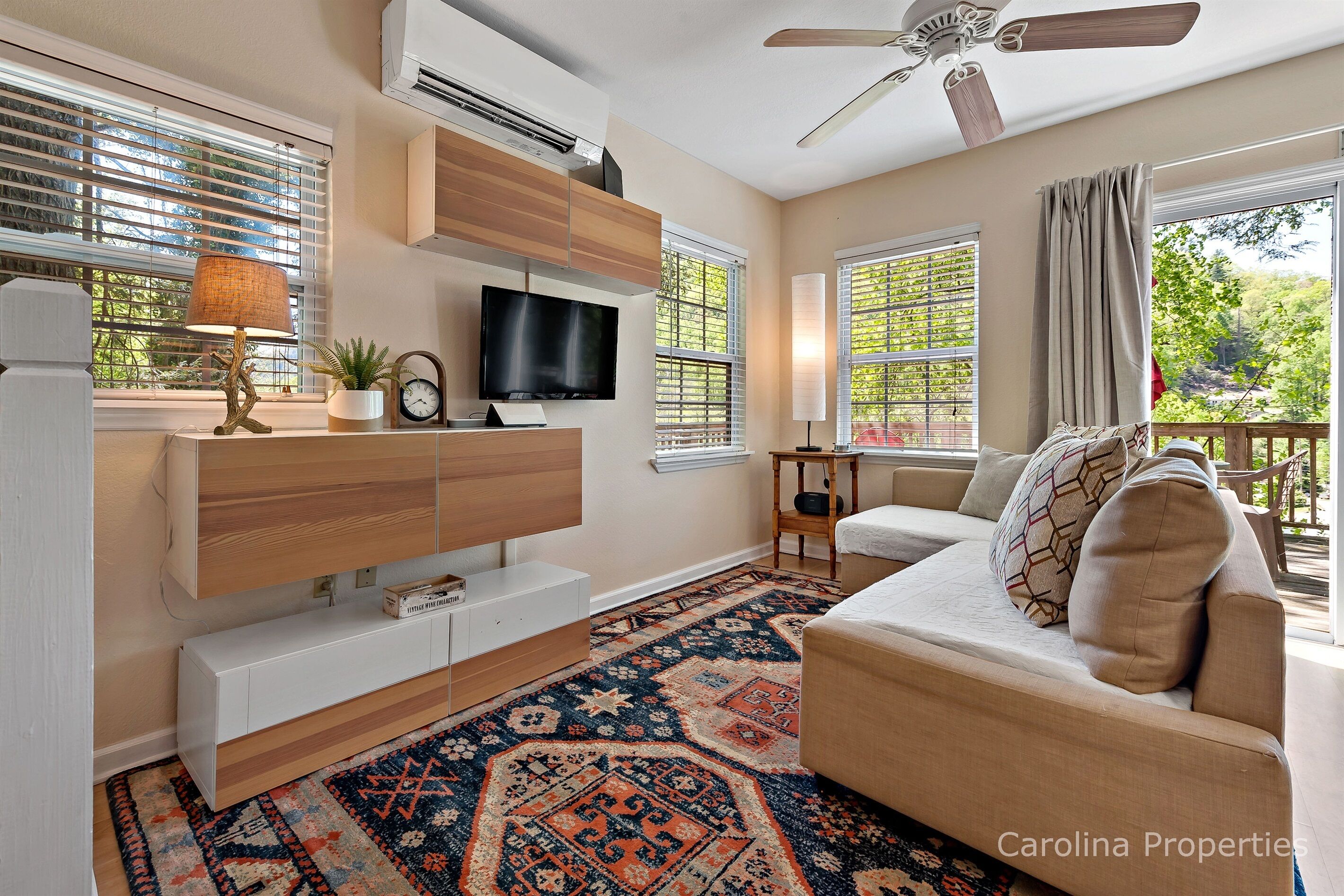 Southfork Cottage - Big Mountain and River Views! No PetsMOUNTAIN AND RIVER VIEWS ~ GREAT LOCATION TO HEAD IN ANY DIRECTIONSouthfork Cottage is conveniently located! Have plans to go to Biltmore? Want to spend a day at Chimney Rock State Park or the beach at Lake Lure? Looking to scout out some waterfalls? Want to shop in downtown Hendersonville? Excited to eat ice cream in Black Mountain? South Fork is a great little cottage to be your landing spot. It offers a comfortable stay in a very central location. This view has been described as "...fun, beautiful, peaceful, and stimulating all simultaneously!"Offering two bedrooms and two baths. The upstairs bedroom has a set of twin bunk beds and a bathroom, a kitchen, a living room, and a fabulous deck. The downstairs has an open bedroom, a private bathroom, and a laundry area. The lower level and lower level deck are both slightly lower than standard ceiling heights. This small cottage was built long ago, but a recent remodel has made it very modern and simplistic. It's a stylish little property that is perfect for up to four people. There's parking for one vehicle, and from the parking area, it is approximately a 50-foot walk to the home. A modern, stylish appeal and a nice upper deck with super cool views are the main draws to this property.For All SeasonsThis home can be enjoyed throughout the year with the area's temperate climate and beauty. Springtime brings the blooming of the dogwood and redbud trees as well as the azaleas, rhododendrons, and mountain laurels. Summer brings lush greenery, and the autumn colors are extraordinary. Winters are mild, and with less tree obstruction, the views are incredible. Add the year-round sounds of the Rocky Broad River, and you have peaceful perfection!The Lake Lure/Chimney Rock area and surrounding communities offer several entertainment and activity options. See the Amenities and Notes for just a sampling of what is available. Just pack your clothes, pick up some groceries, and then sit back, relax, and enjoy all this area and Southfork Cottage has to offer. We hope to see you soon and welcome you to be our guest!Smoking is prohibited in all of our vacation rental homes.AREA WIDE NOTICE: Lake Lure will undergo a drawdown from January 1st, 2024, through the first quarter of 2024(March 31st). The lake will begin to be lowered by approximately 1 foot per day until 12 feet have been reached. Infrastructure maintenance, dredging, and dam projects will be expedited during this time frame. These efforts by the Town of Lake Lure may affect access to the lake and restrict any lake usage. For more information, click here. The lake will likely be back up to normal levels by mid to late April. While we understand this is an inconvenience, this does allow you to enjoy the full beauty of Lake Lure in the fall and holiday season. This will not affect the smaller lakes in the area, only Lake Lure itself.Parking for one (1) vehicle. Only one parking space for this home.Check-in time is 4:00 p.m. local time or anytime later.Check-out time is 10:00 a.m. local time or anytime earlier.Note: Cancellation policies may vary on various marketing sites, but it is ALWAYS most affordable to book directly with us at Carolina Properties. Booking direct also enables a guest loyalty discount, available across our many properties upon your second stay.