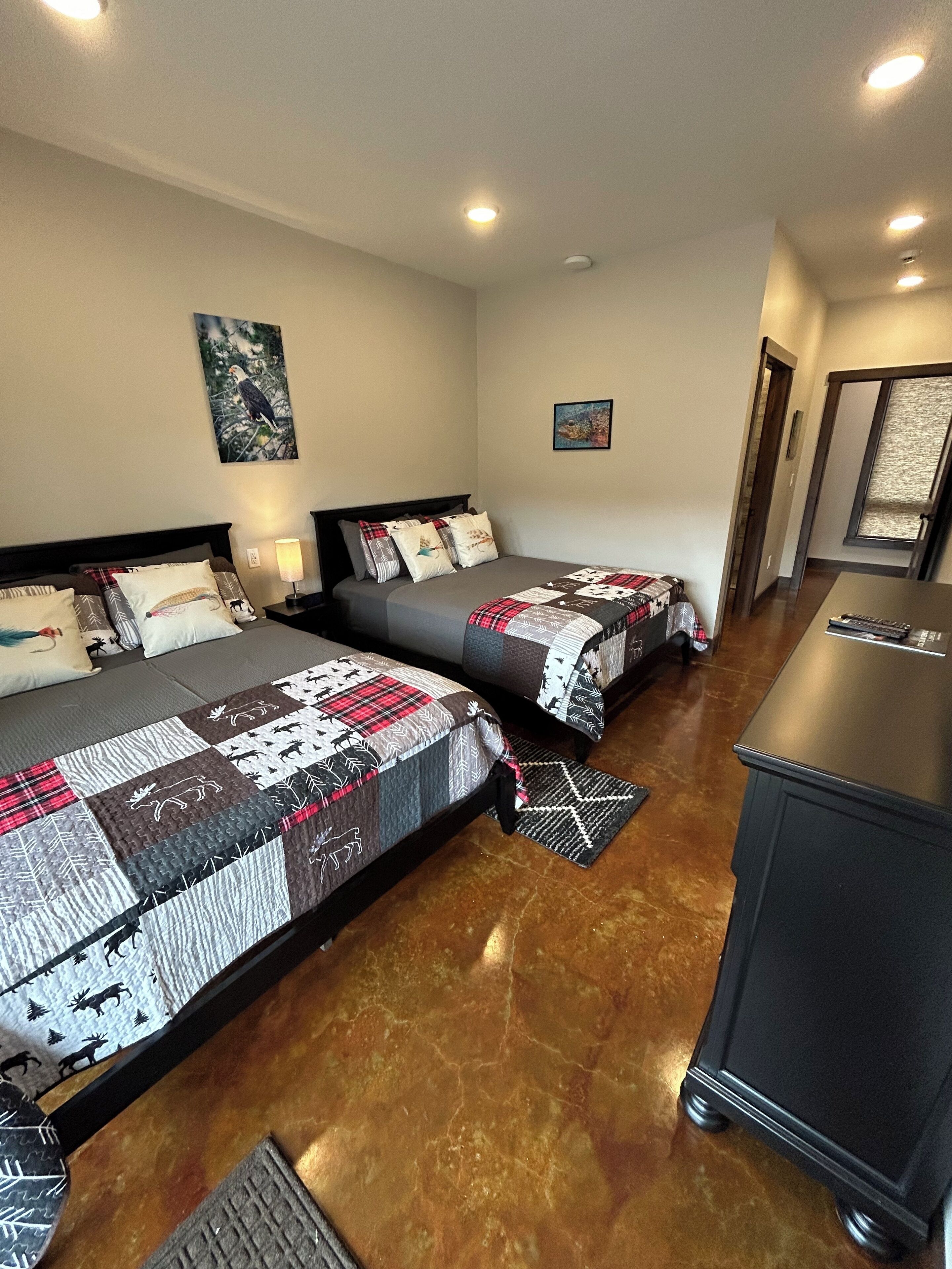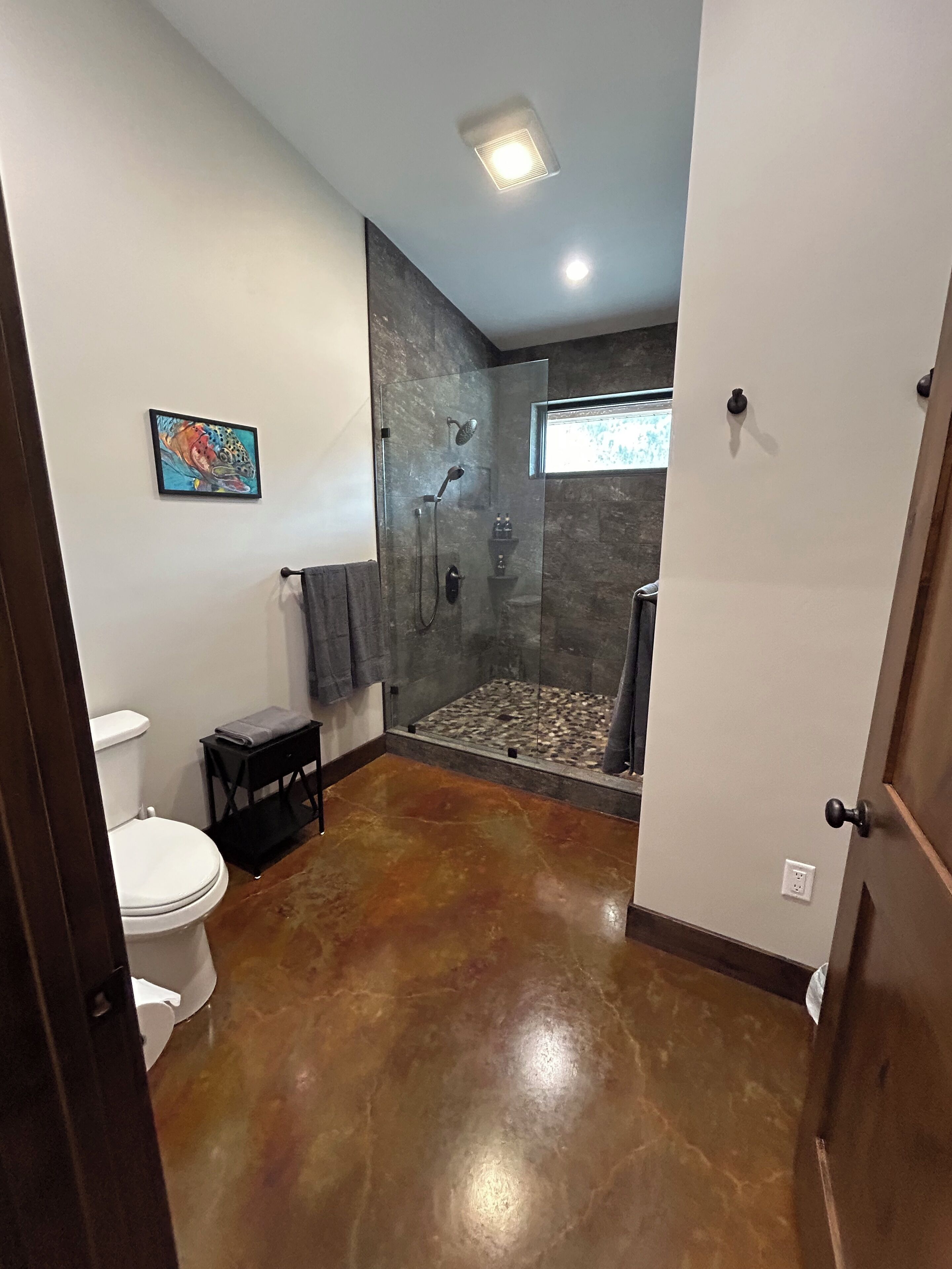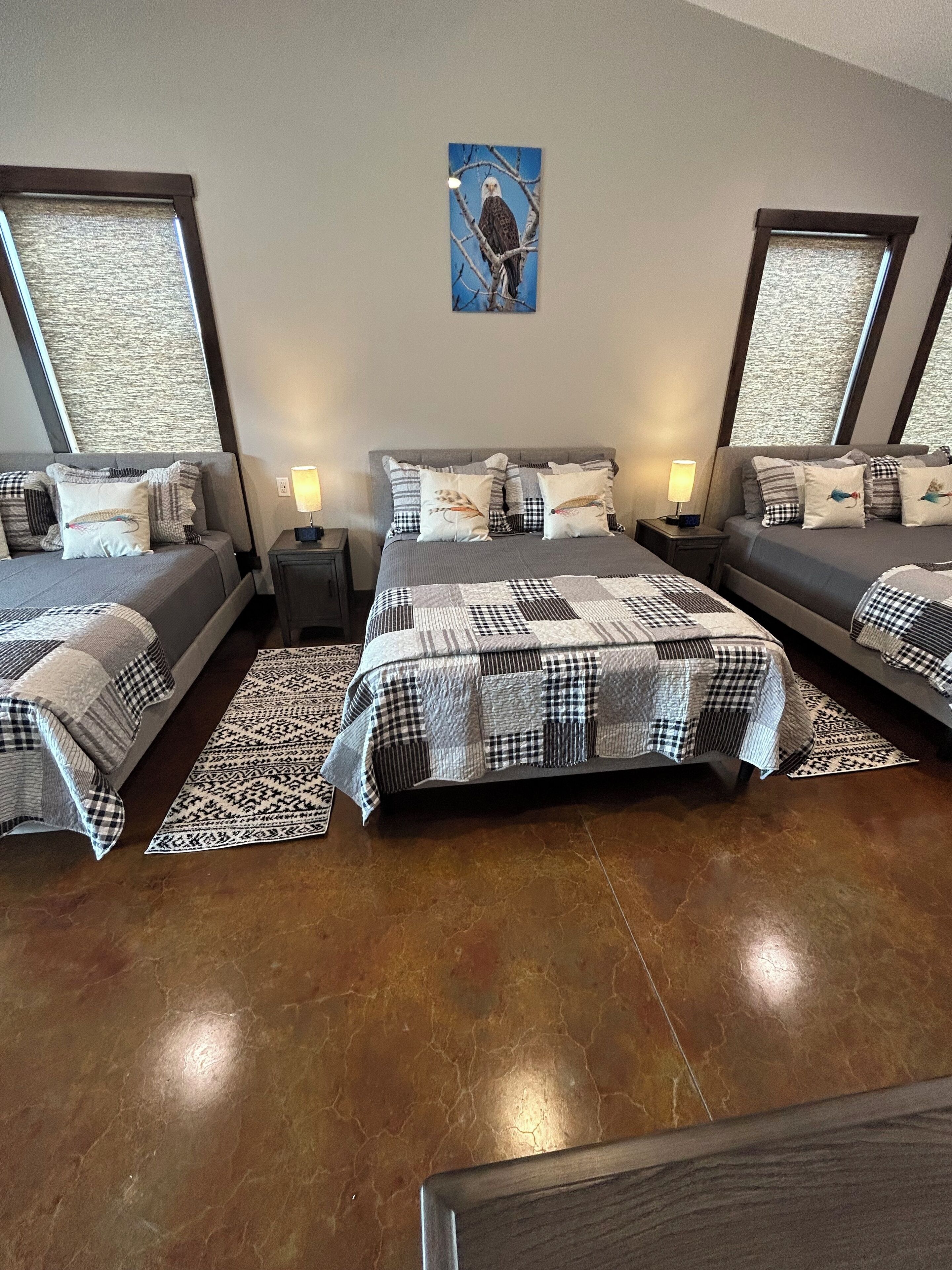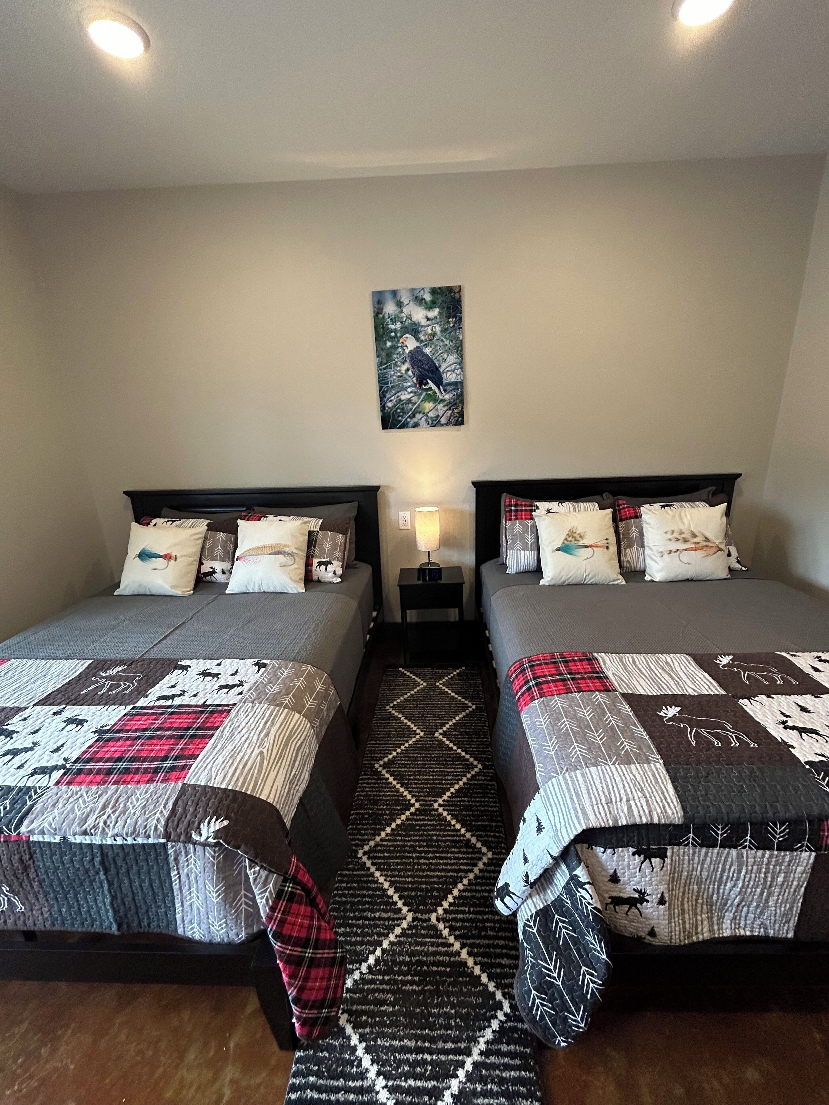 Trout House, sitting on the banks of Rock Creek, is brand new as of 2024! Stay comfortably on Rock Creek at this lovely ranch style house! This quaint property offers a cozy and marvelous retreat for guests. Trout House is brand new as of summer of 2024! It resides on the banks of Rock Creek upstream from our other cabins by several miles. Trout House is our biggest place with four bedrooms and four bathrooms. There are a total of 9 queen beds. We went all out on this incredible house and are getting excellent feedback from our first few guests that we've had. Lots of big windows on both sides of the house because wherever you look out, the views are amazing! Large kitchen and bar area for big groups. Open living room with a gas fireplace. Infloor heat, WiFi, TVs in the living room and all four of the bedrooms. Each bedroom has its own sliding door to go outside to the patio area and creek. Living room and Patio speakers for playing music. Really cool Butler's Pantry for storing all your extra things, plus it has another sink, refrigerator, and the washer and dryer. Covered seating in the front and back of the house. Beautiful landscaped yard with trees and shrubs, and concrete patios and sidewalks. Whether you're here to exploring the charming little town of Philipsburg, or here to Trout fish, or simply relaxing, this house is a great place to call homebase while you're away. We hope you enjoy your stay.
