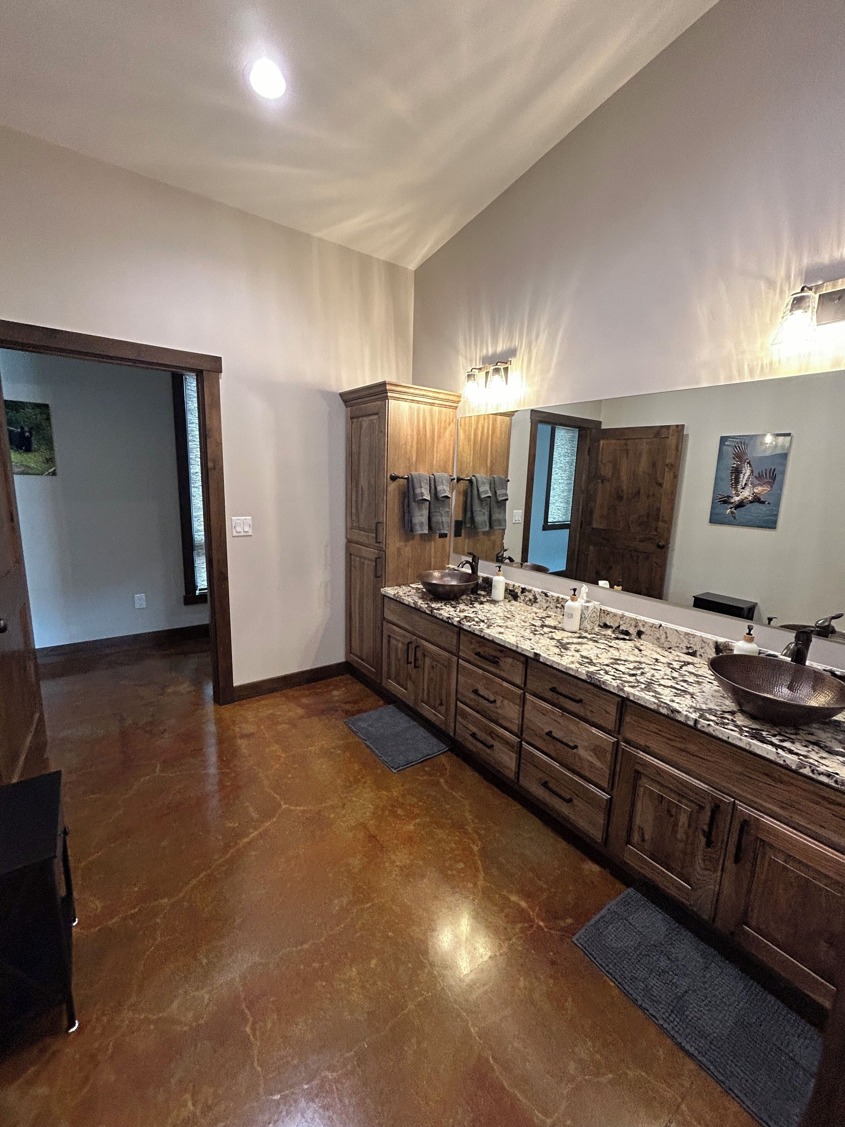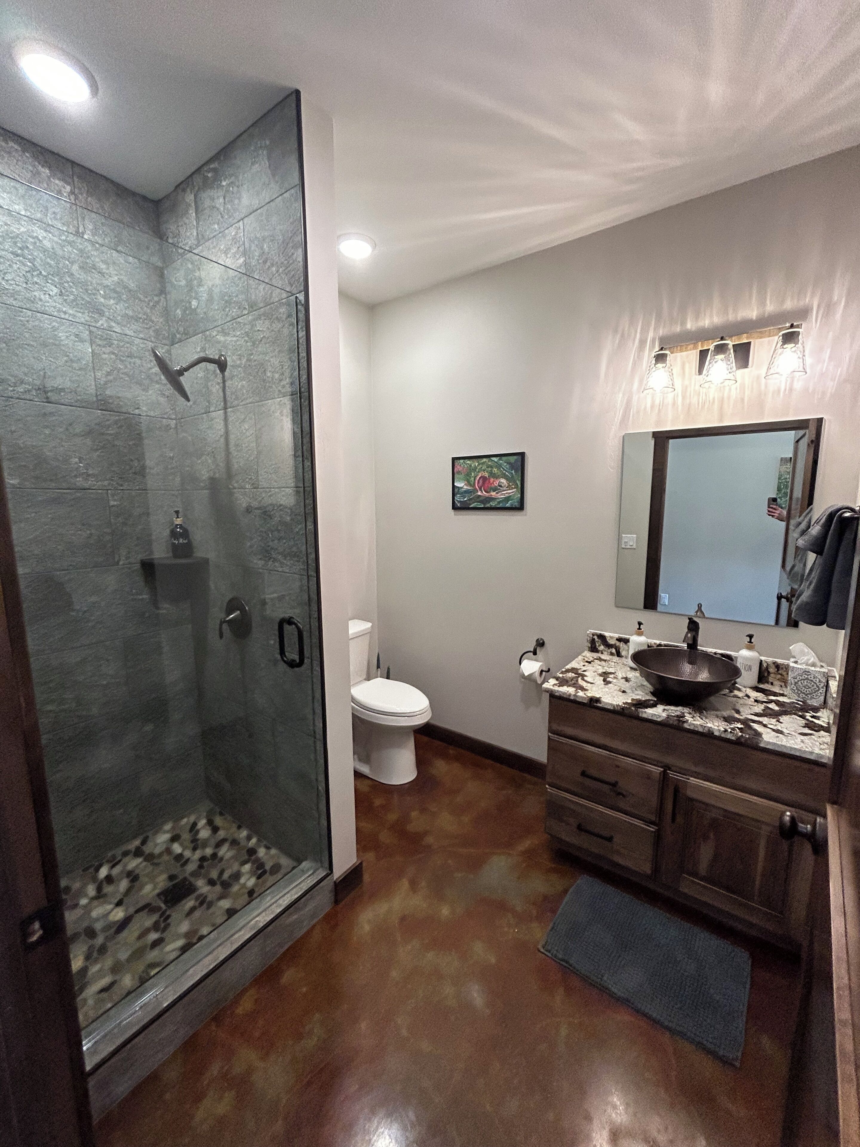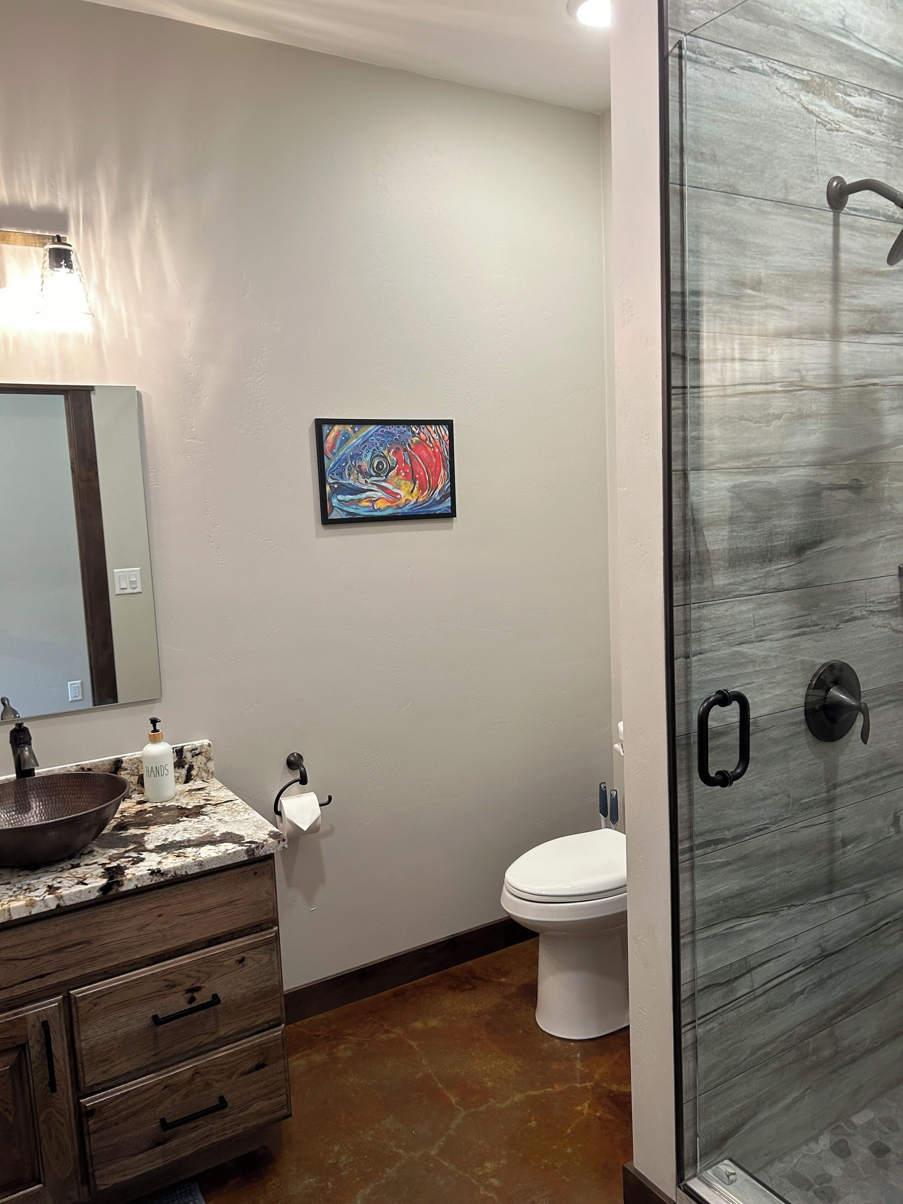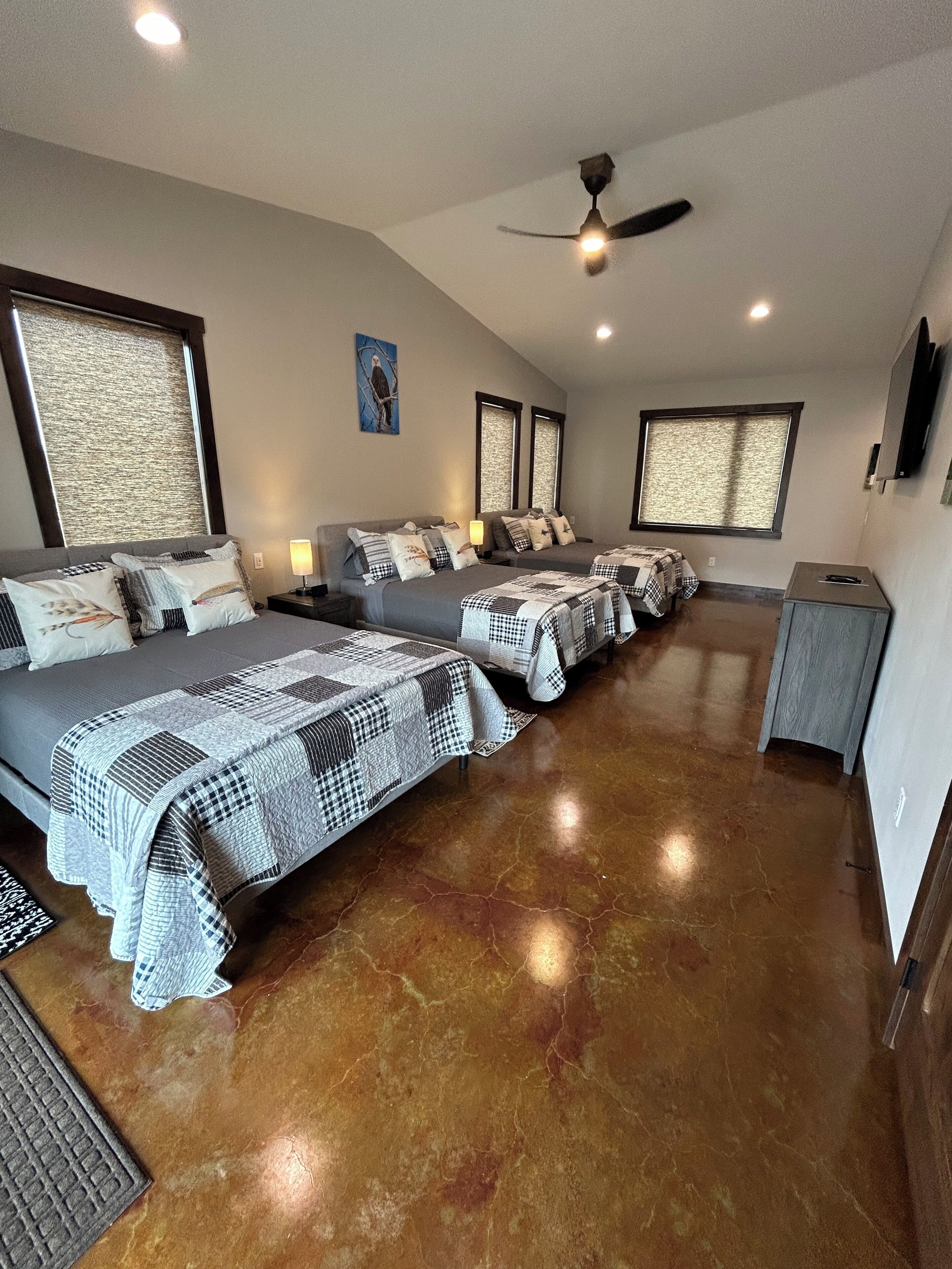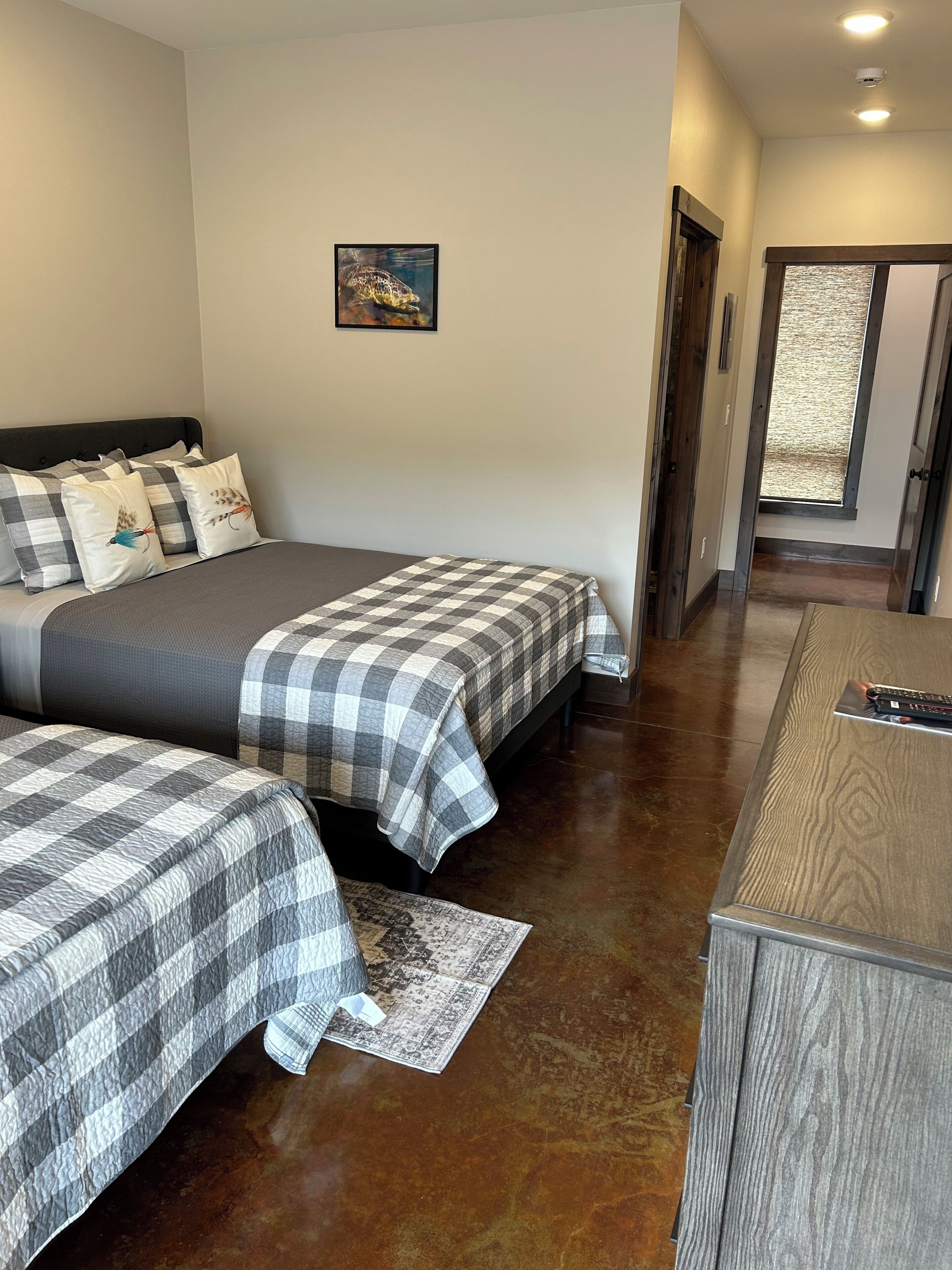 Trout House, sitting on the banks of Rock Creek, is brand new as of 2024! Stay comfortably on Rock Creek at this lovely ranch style house! This quaint property offers a cozy and marvelous retreat for guests. Trout House is brand new as of summer of 2024! It resides on the banks of Rock Creek upstream from our other cabins by several miles. Trout House is our biggest place with four bedrooms and four bathrooms. There are a total of 9 queen beds. We went all out on this incredible house and are getting excellent feedback from our first few guests that we've had. Lots of big windows on both sides of the house because wherever you look out, the views are amazing! Large kitchen and bar area for big groups. Open living room with a gas fireplace. Infloor heat, WiFi, TVs in the living room and all four of the bedrooms. Each bedroom has its own sliding door to go outside to the patio area and creek. Living room and Patio speakers for playing music. Really cool Butler's Pantry for storing all your extra things, plus it has another sink, refrigerator, and the washer and dryer. Covered seating in the front and back of the house. Beautiful landscaped yard with trees and shrubs, and concrete patios and sidewalks. Whether you're here to exploring the charming little town of Philipsburg, or here to Trout fish, or simply relaxing, this house is a great place to call homebase while you're away. We hope you enjoy your stay.