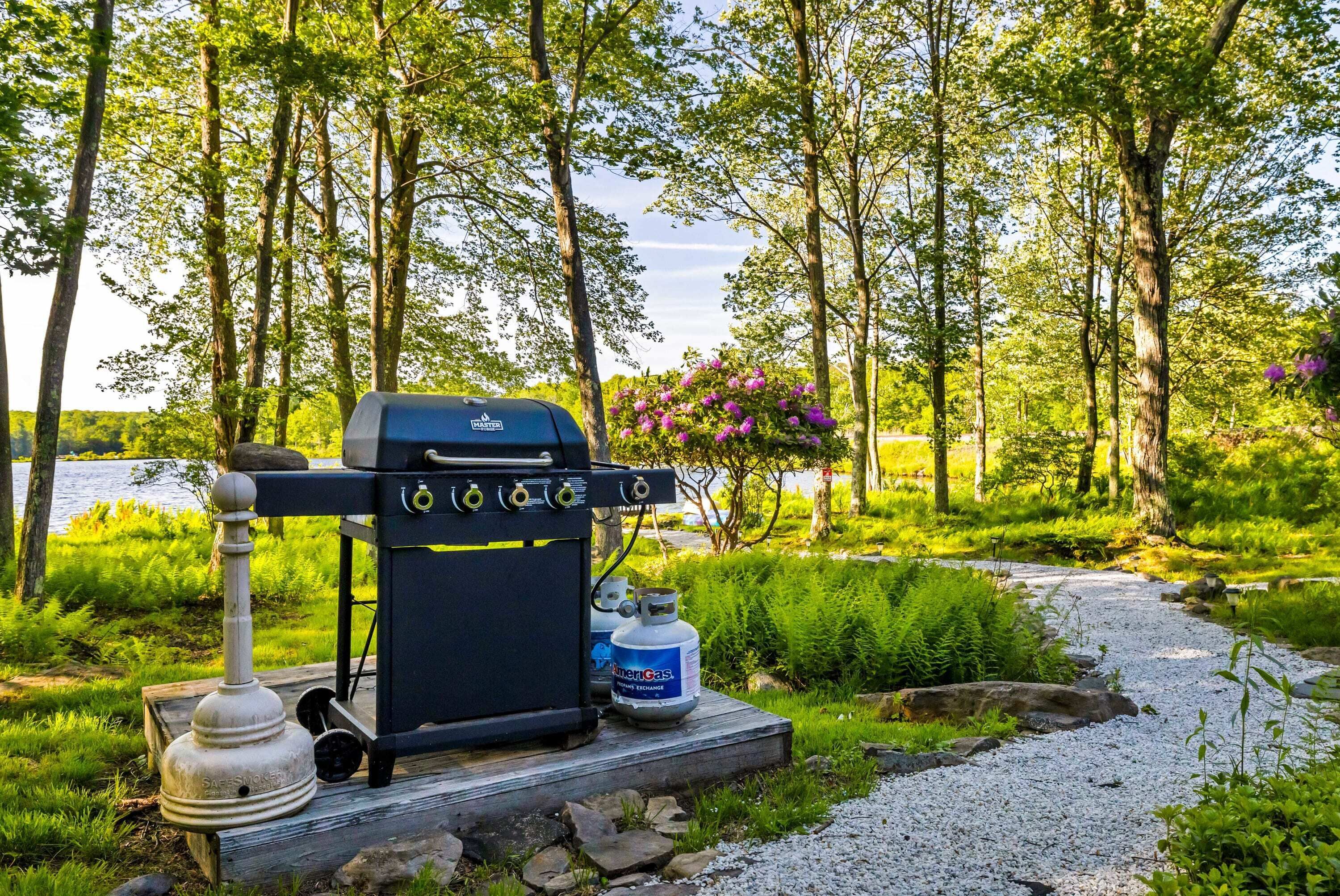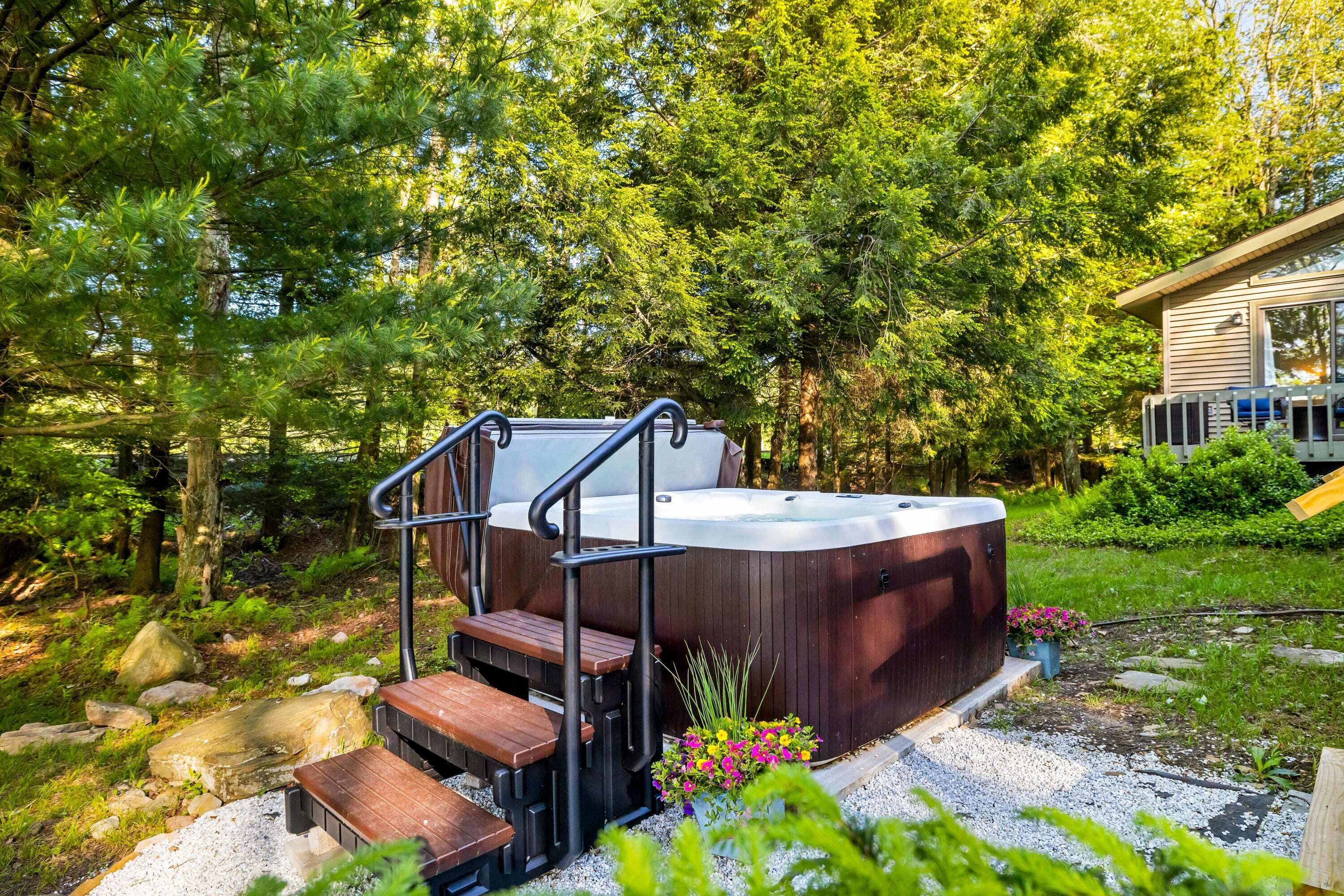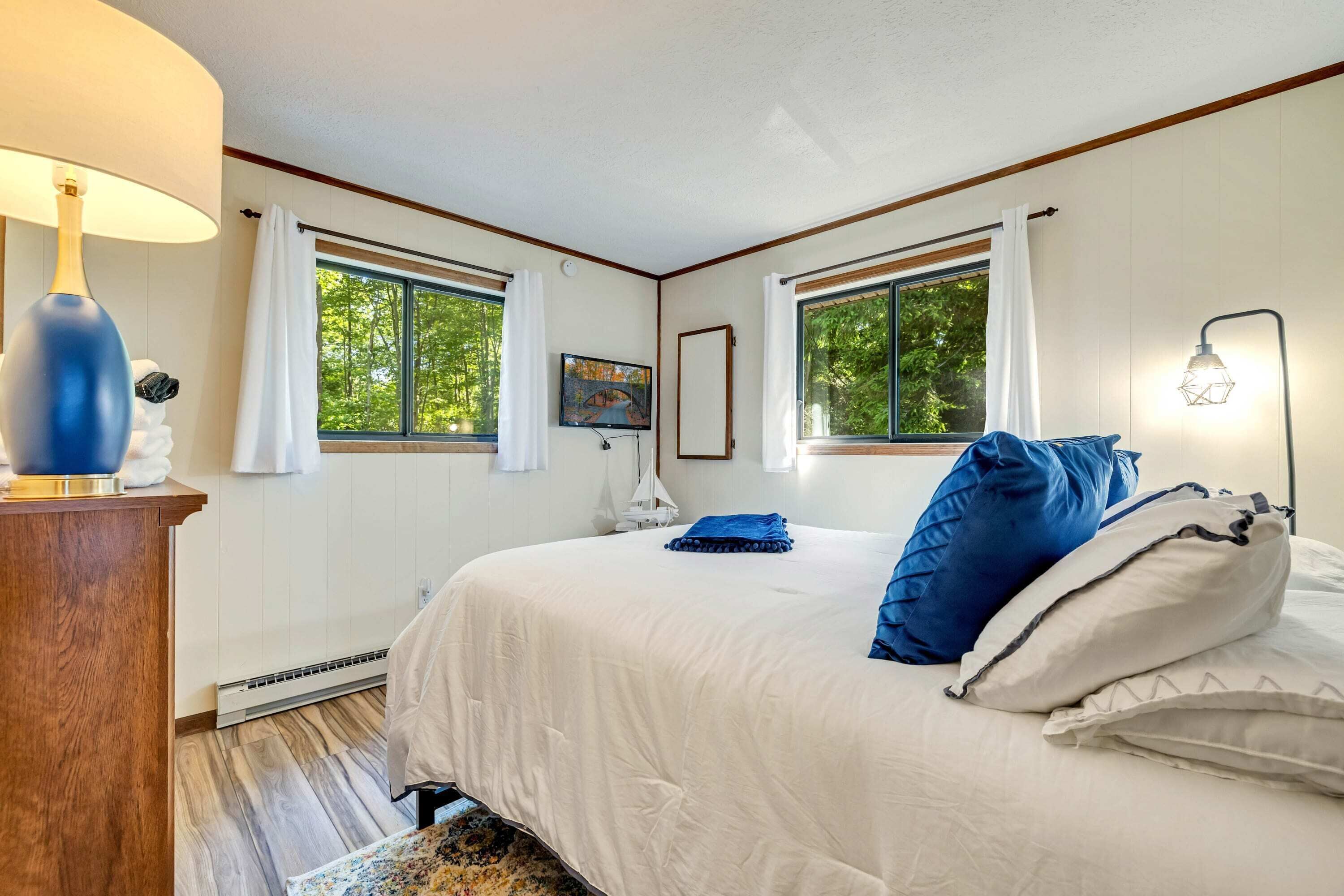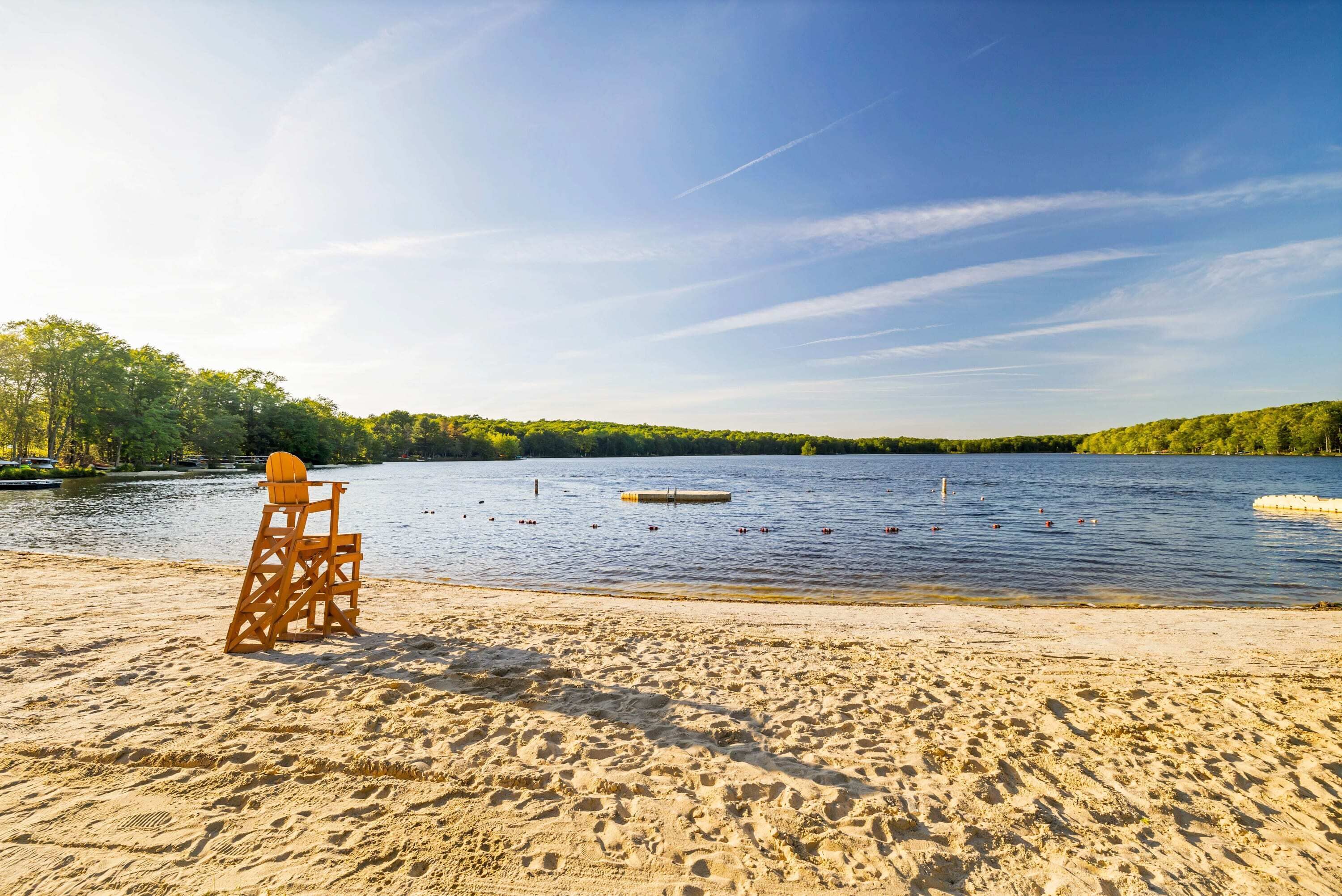 Lakefront, Hot Tub, Pet Friendly, Resort Amenities Summary:Wander over to Lakehouse Q, your serene Poconos retreat! This lakefront house offers the perfect blend of relaxation and adventure. Unwind in the hot tub or gather around the lakeside fire pit for cozy evenings. Enjoy exclusive private lake access, as well as admission to the top-notch Big Bass Lake community amenities. With water views throughout the property, your getaway promises unforgettable moments in a tranquil setting. Book now for a memorable lake life experience!The Space:LAKEFRONT! Breathtaking views & natural beauty on Larsen LakeSPECIAL AMENITIES & SPACES:*Private lake access w/ beach area*Lakeside fire pit w/ firewood provided*Hot tub w/ views of the lake!*Big Bass Lake community amenity access (see Other Things To Note section for MANDATORY REGISTRATION and FEES) including indoor pool, sled hill & fitness center! (see full list below)*Dogs welcome! ($150 fee per dog)*Private deck w/ outdoor dining*Kayaks & canoes w/ life-jackets (seasonal - available starting May 1, 2024)*Electronic pellet stove fireplace*Combo Keurig w/ pot and single-serve*Cornhole + horseshoes*Karaoke machineBIG BASS LAKE COMMUNITY ACCESS:Seasonal amenities include:*2 beaches, lake, recreation center (indoor pool, dry sauna, pool table, Tree Top Lounge & fitness center), snow-tubing/sledding hills, picnic areas, playgrounds, marina, boat rentals, clubhouse (outdoor pool and splash pad), full basketball court, 4 tennis courts, 4 pickleball courts, new tot lot, volleyball area, heated swimming pool and parksOTHER FEATURES:*High-Speed Wi-Fi*TVs w/ Roku sticks in living room + all bedrooms - stream all your favorite apps!*A/C in living room + all bedrooms*Heat in all rooms*Master suite w/ private deck*Bright, inviting sunroom*Office w/ work desk & books*Board games, puzzles & books*Fully stocked & equipped kitchen w/ breakfast bar*Gas grill (propane refills not provided)*Washer + dryer*Ceiling fans*Free parking for up to 5 vehiclesSLEEPING ARRANGEMENT:*Master Bedroom: King Bed*Bedroom 2: Full Bed*Bedroom 3: Full Bed*Office: Sleeper Sofa*Living Room: CouchKITCHEN:*Fridge/Freezer*Electric Stove/Oven*Dishwasher*Microwave*Toaster*Dual Keurig machine*Tea kettle*Blender*Cooking Basics*Tableware and cutlery*Dog bowls*Ice trays*Water filterBABY GEAR:*Pack 'N Play*Padded high chair w/ trayESSENTIALS:*Linens, pillows & towels *Shampoo, conditioner & body wash*Laundry detergent, dishwasher detergent & dishwashing soap*Clothing storage: closets, dressers & luggage racks*Iron + Ironing Board*Hangers*Room darkening shades*Hair dryers*Vacuum*Snow shovel*Smoke alarms*Carbon monoxide detectors*Fire extinguisher*First aid kitGuest Access:● You are welcome to use the lake at your own risk. Do not allow children near the lake without adult supervision.● Parking for up to 5 vehicles● Self check-in with keyless entry● Big Bass Lake amenities access with small fee● Trash site access● Early check in and late check out may be accommodated with a fee. Please contact us to see if we can accommodate your request.● Early check in - $75● Late check out - $75● Payment will only be collected once we confirm that your request can be accommodated. *Late check-out without our approval will be subject to a penalty of $100● When drought, weather or other conditions present an unusual fire risk, a burn ban may be imposed by the community without prior notice.The Neighborhood:Highly amenitized (seasonal) Big Bass Lake community:- 3 lakes (fishing, boating, ice skating), 2 beaches, recreation center (indoor pool, dry sauna, pool table, Tree Top Lounge & fitness center), snow-tubing/sledding hills, picnic areas, playgrounds, marina, boat rentals, clubhouse (outdoor pool and splash pad), full basketball court, 4 tennis courts, 4 pickleball courts, new tot lot, volleyball area, heated swimming pool and parks5 minute drive to:-Big Bass Lake-Gouldsboro State Park15 minute drive to:-Tobyhanna State Park-Hemlock Sanctuary20 minute drive to:-Kalahari Indoor Waterpark-Stillwater Lake-Nay Aug Park-Pocono Gardens-The Lookout-Hungry Hill30 minute drive to:-Jack Frost Ski Resort-Pocono Raceway-Promised Land State Park-Big Pocono State Park-Great Wolf Lodge Water Park -Camelback Resort & Indoor Waterpark-The Shoppes at American Candle-Steamtown National Historic Site-The 'Pioneer' Gravity Rail CarLots of hiking, fishing, hunting, and area/community activitiesGetting Around:Car, bike, or walk within the community. You will need a car to go anywhere outside of the community. Uber and taxi cabs are available in the area, but can have long wait times or be difficult to find.We strongly recommend that you travel in an AWD/4WD vehicle. We are located in the mountains and roads tend to be sloped and can get very icy.Other Things to Note:Guests are REQUIRED to register with the Big Bass Lake Community Association. REGISTRATION FEE:● $50● It will be collected separately through the booking platform after the reservation is confirmed.OPTIONAL community amenities (seasonal) pass:● Weekdays: $8 per person per day● Weekend: $10 per person per dayPlease note, the fees listed above are not our fees as the hosts, but fees the community requires all guests to pay to cover the costs associated with operating and maintaining all the great amenities and facilities at Big Bass Lake. Dog fee is $150 per dog. Please let us know how many dogs you will be bringing so we can request the appropriate fees.IMPORTANT!● We cannot accommodate same-day check-in registrations.● Registration forms must be submitted to the office no later than three (3) business days before check-in.● To enter the community, you must go and register at the Main Gate House as our GUEST. All adults and children must be named at the main gate.Wander Home requires that all guests have their profile 100% verified. Please upload government issued ID and payment method in your account settings, as well as sending us a photo of 