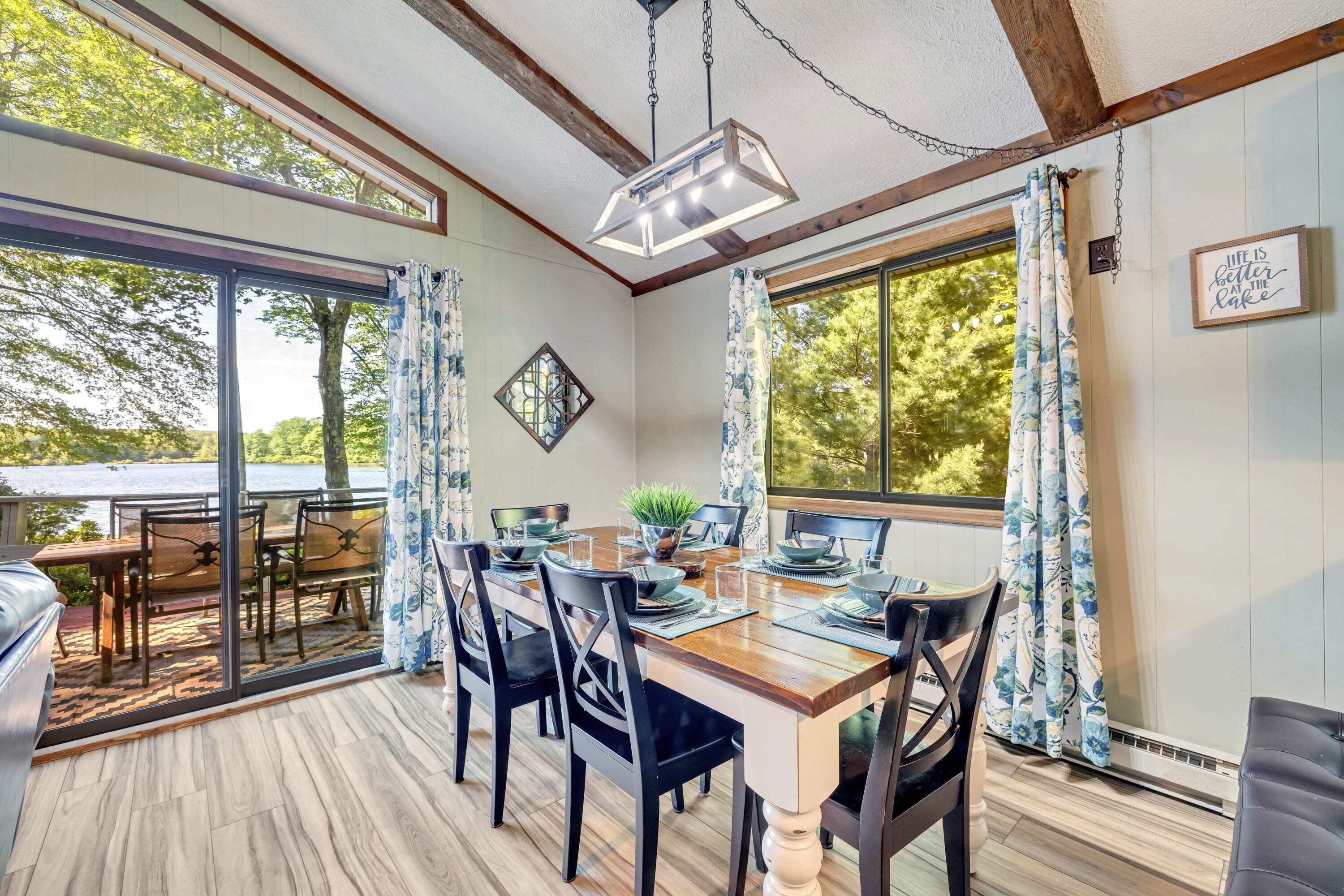 Lakefront, Hot Tub, Pet Friendly, Resort Amenities Summary:Wander over to Lakehouse Q, your serene Poconos retreat! This lakefront house offers the perfect blend of relaxation and adventure. Unwind in the hot tub or gather around the lakeside fire pit for cozy evenings. Enjoy exclusive private lake access, as well as admission to the top-notch Big Bass Lake community amenities. With water views th...