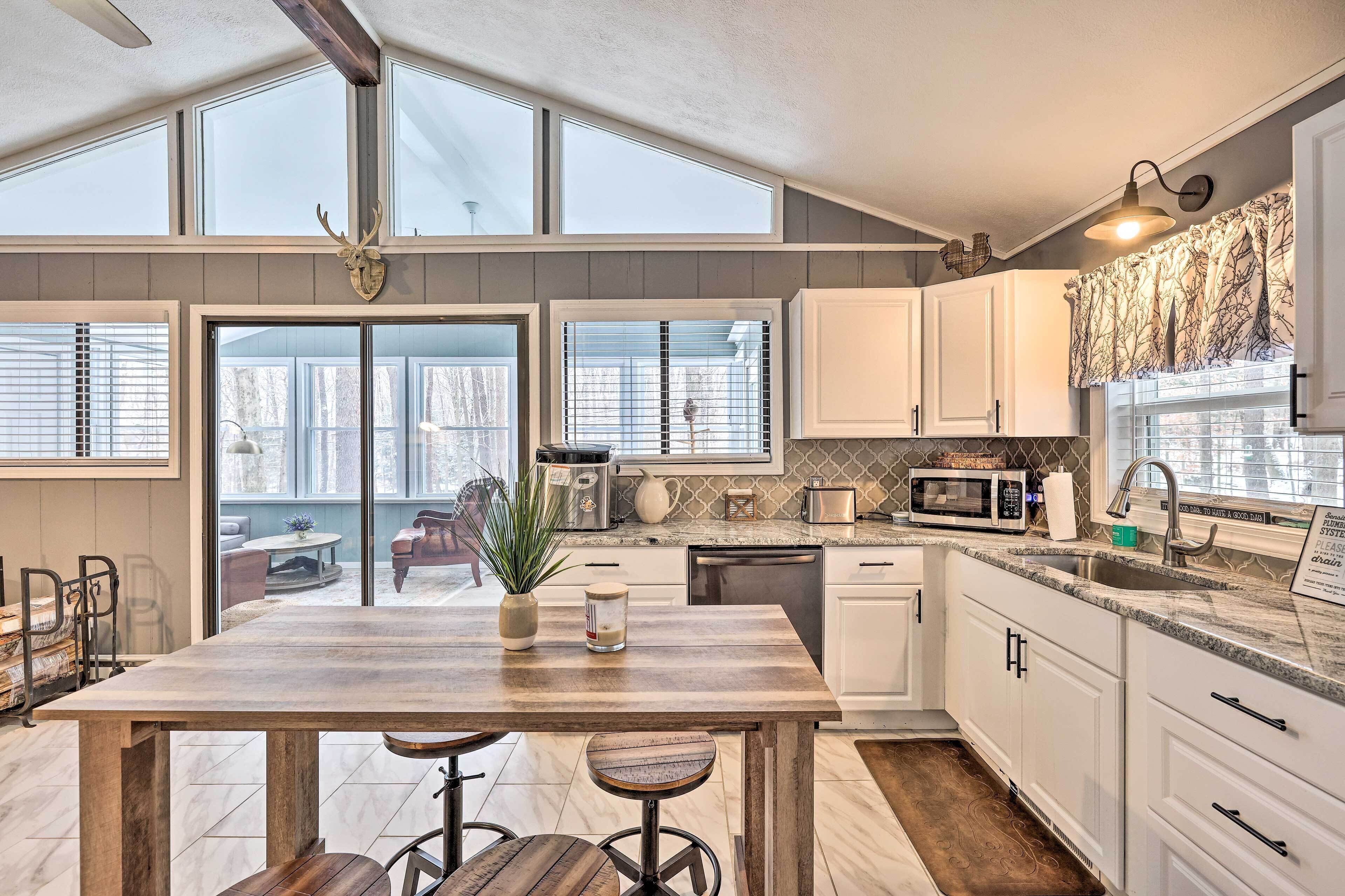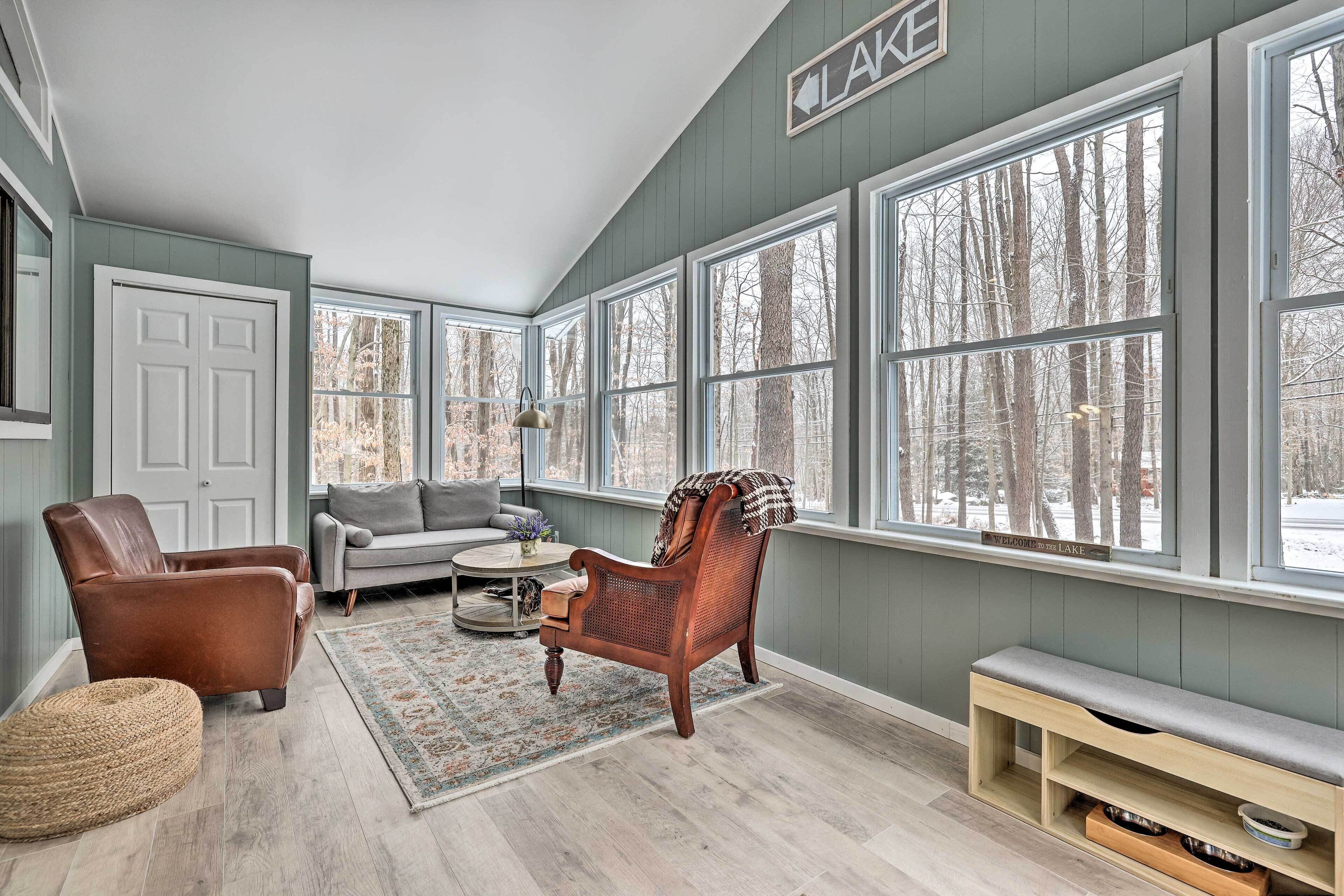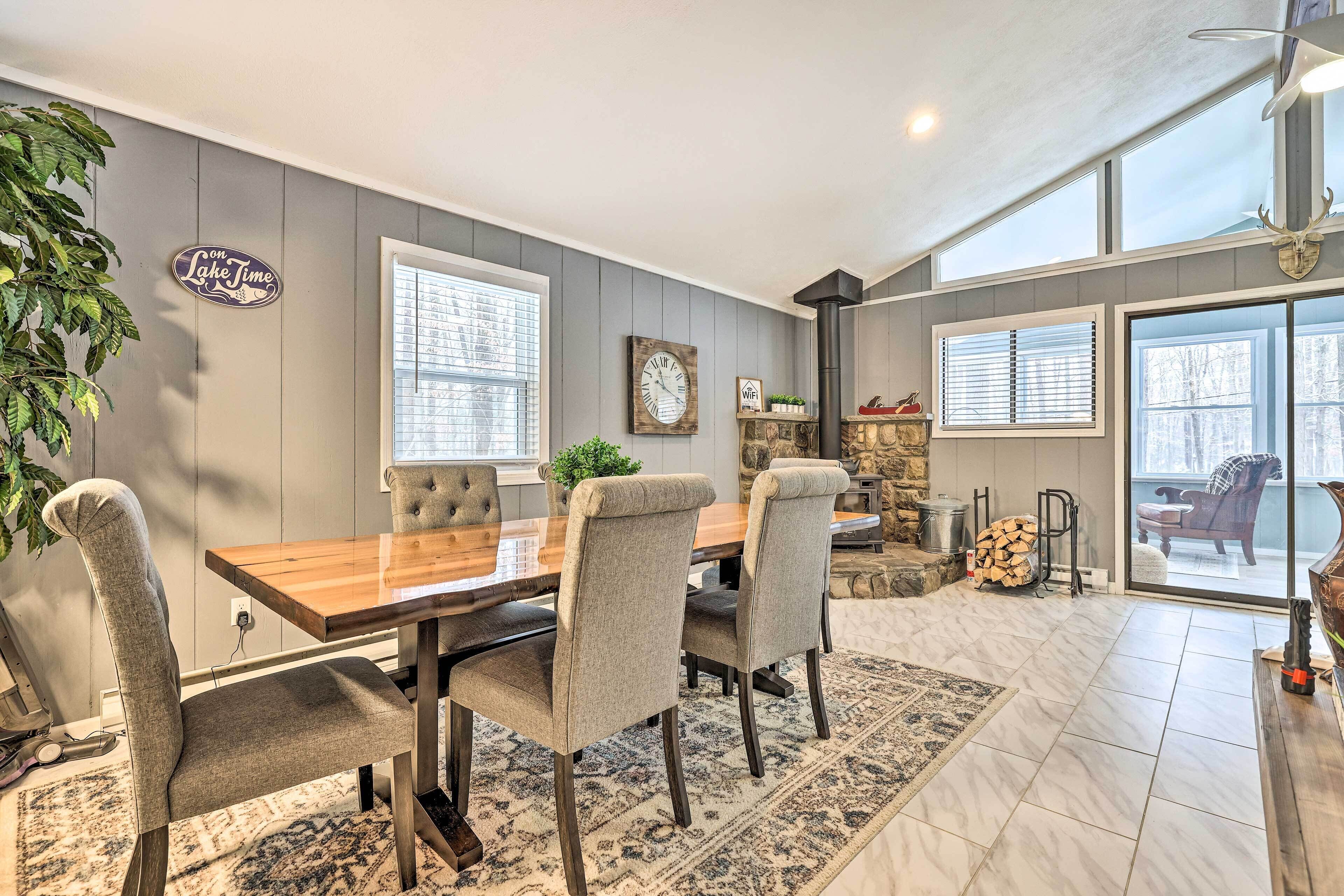 Pet-Friendly Poconos Cabin w/ Deck & Fire Pit! Enjoy the quaint forested region of Gouldsboro, Pennsylvania when you stay at this 3-bedroom, 2-bathroom vacation rental! Just 11 miles from Tobyhanna State Park and within walking distance of Big Bass Lake, this well-appointed cabin is the perfect home base to reconvene after your outdoor adventures. Brew your favorite cozy drink at the coffee bar, c...