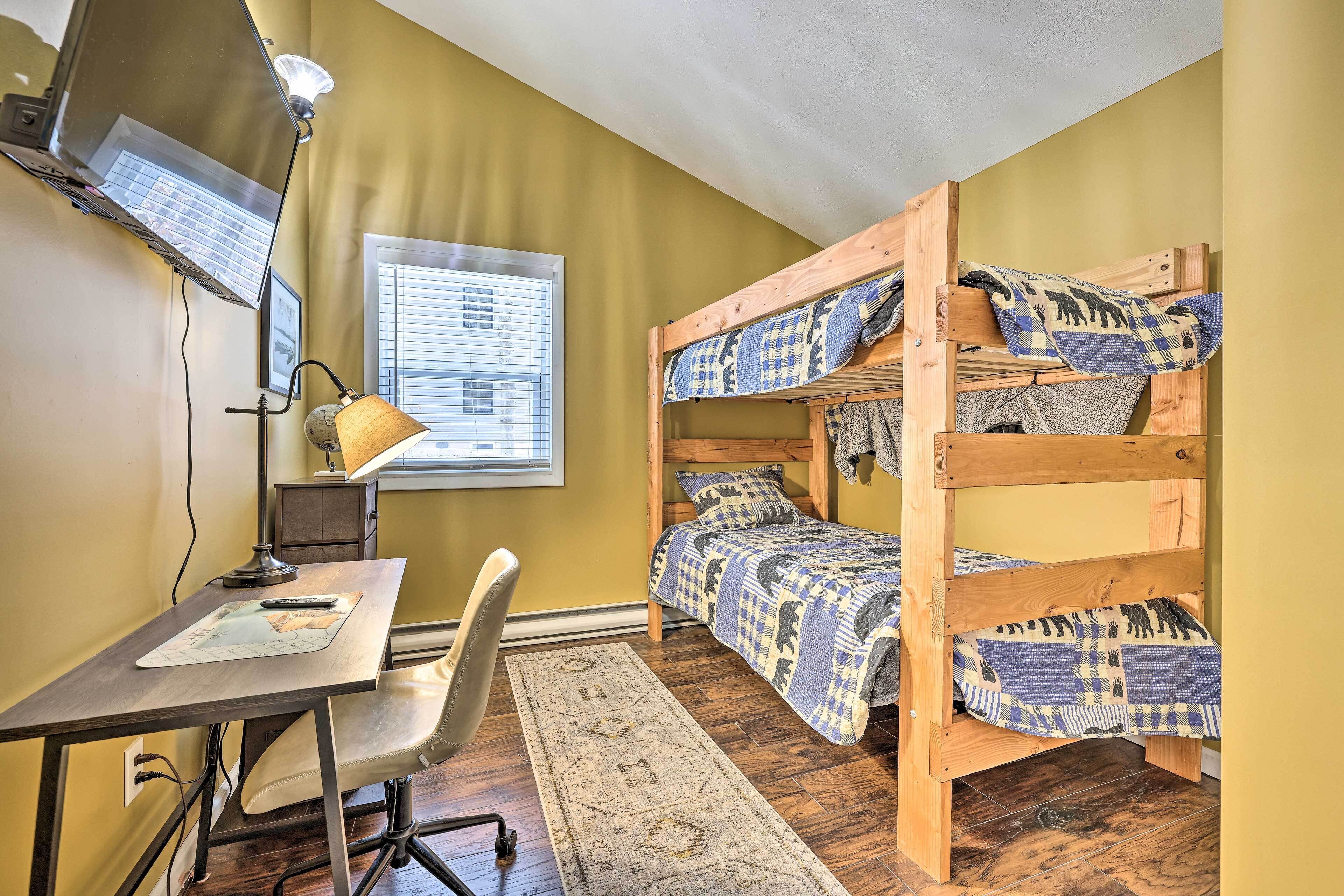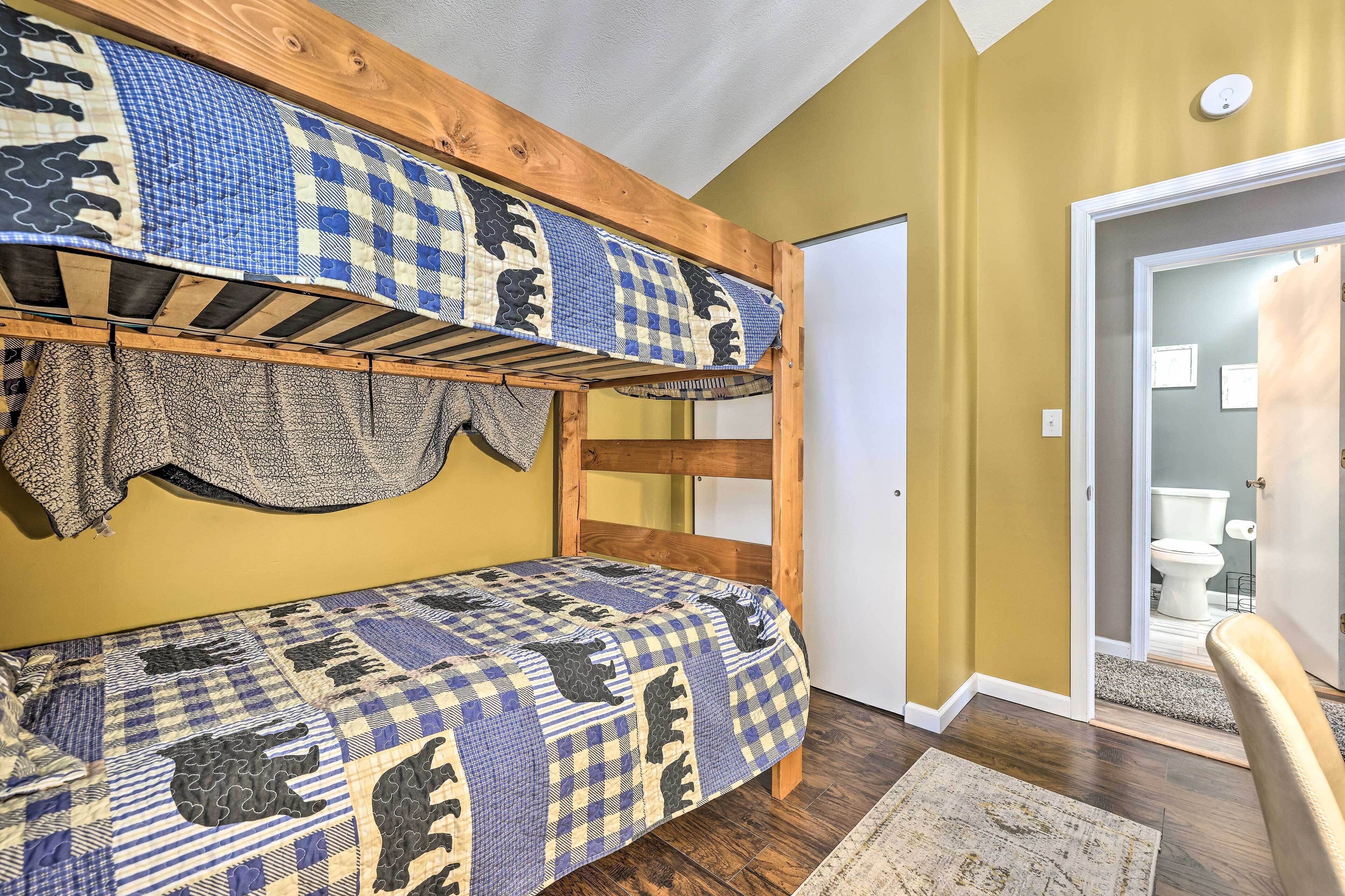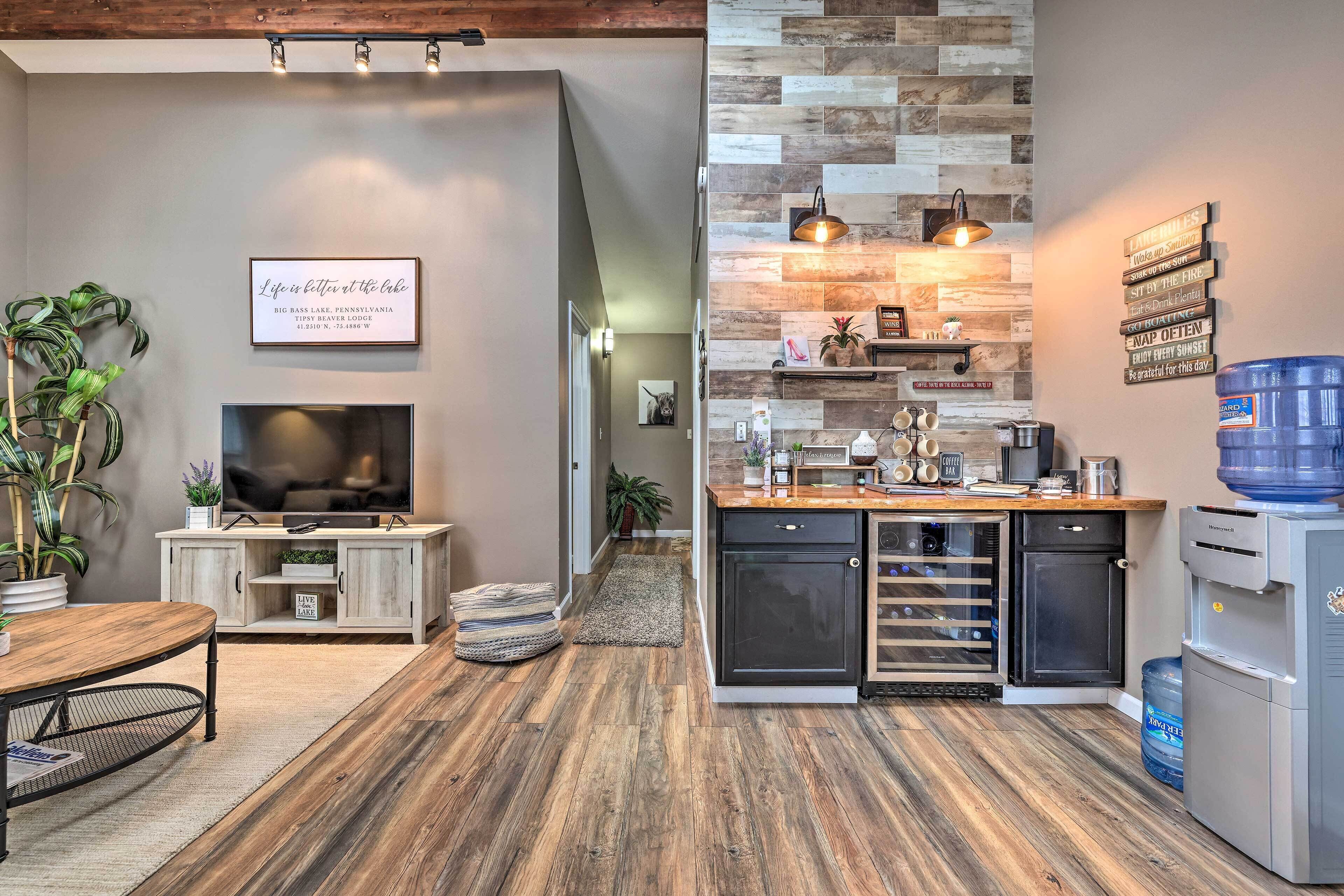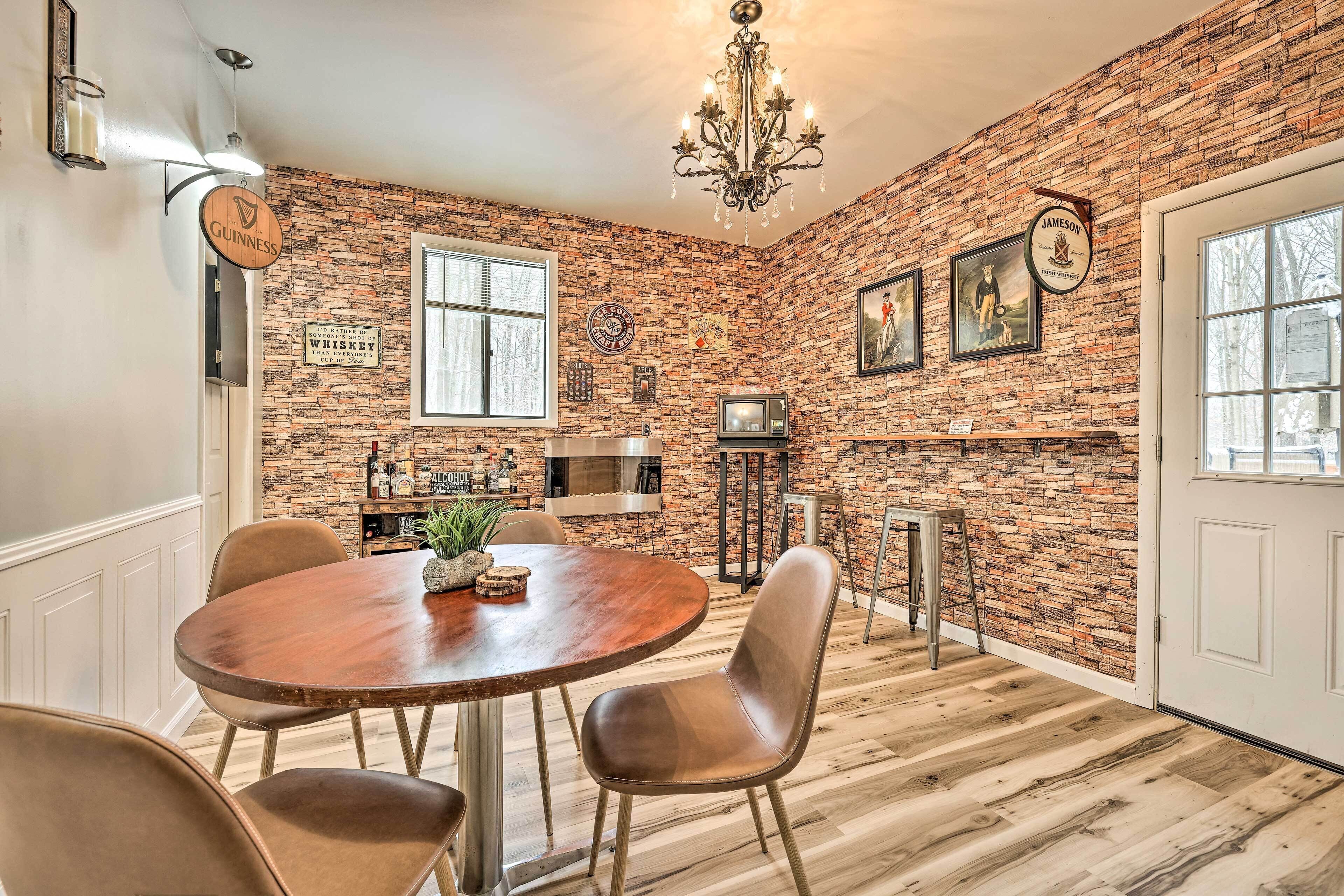 Pet-Friendly Poconos Cabin w/ Deck & Fire Pit! Enjoy the quaint forested region of Gouldsboro, Pennsylvania when you stay at this 3-bedroom, 2-bathroom vacation rental! Just 11 miles from Tobyhanna State Park and within walking distance of Big Bass Lake, this well-appointed cabin is the perfect home base to reconvene after your outdoor adventures. Brew your favorite cozy drink at the coffee bar, curl up next to the fireplace with family and friends, or play a game of darts in the game room - this cabin is sure to please your entire group!-- THE PROPERTY --4-Season Living Room | Private Deck | FireplaceThis Big Bass Lake cabin is in a private and tranquil location, perfect for your next family vacation or couples’ outing in the Pocono Mountains! Bedroom 1: Queen Bed | Bedroom 2: Queen Bed | Bedroom 3: Full Bunk BedCOMMUNITY AMENITIES: Indoor pool, outdoor pool, fitness center, game room, basketball court, playgroundINDOOR LIVING: 4 Smart TVs w/ cable, 6-person dining table, coffee bar w/ wine cooler, dry bar, game room, mini-fridge, dartboard, ceiling fans, books, desk w/ chairOUTDOOR LIVING: Outdoor dining area, gas grill, fire pit, firewoodKITCHEN: Fully equipped, dishware/flatware, full knife set, cooking basics, spices, island w/ seating, wood-burning stove, Keurig coffee maker, microwave, toaster, toaster oven, air fryer, Crock-Pot, blender, ice maker, water filterGENERAL: Free WiFi, 3 window A/C units (seasonal), electric heating, linens/towels, iron/board, trash bags, paper towels, washer, dryer, hair dryerFAQ: Pet fee (paid pre-trip), 1 exterior security camera (facing driveway), step-free access to enter, 2 stairs required to access outdoor fire pit, seasonal A/C units, no shampoo, toothpaste, or other toiletriesPARKING: Driveway (5 vehicles)-- THE LOCATION --OPT OUTSIDE: Gouldsboro State Park (2.4 miles), Tobyhanna State Park (10.7 miles), The Knob (14.8 miles), Kurmes Preserve (15.0 miles), Indian Ladder Falls (19.8 miles), Camelback Mountain Adventures (21.2 miles), Big Pocono State Park (23.0 miles), Delaware Water Gap National Recreation Area (33.5 miles)ATTRACTIONS: Kalahari Indoor Waterpark (15.4 miles), Mount Airy Casino Resort (16.3 miles), Great Wolf Lodge Water Park (19.5 miles), Pocono Raceway (20.5 miles), Camelbeach Mountain Waterpark (21.8 miles)LAKEFRONT FUN: Big Bass Lake (0.2 miles), Tobyhanna Lake & Beach (10.3 miles), Dresser Lake (13.6 miles), Locust Lake (13.6 miles), Pines Lake (13.8 miles), Pocono Summit Lake (15.0 miles)SKIING: Camelback Mountain Resort (20.5 miles), Jack Frost Ski Resort (21.6 miles), Big Boulder Mountain (24.6 miles)TEE OFF: Timber Trails Golf Course (15.2 miles), Pocono Manor Resort (15.7 miles), Mt Airy Golf Club (16.3 miles), Buck Hill Golf Club (21.9 miles)AIRPORT: Wilkes-Barre Scranton International Airport (20.0 miles)-- REST EASY WITH US --Evolve makes it easy to find and book properties you’ll never want to leave. You can relax knowing that our properties will always be ready for you and that we’ll answer the phone 24/7. Even better, if anything is off about your stay, we’ll make it right. You can count on our homes and our people to make you feel welcome--because we know what vacation means to you.-- POLICIES --- No smoking- Pet friendly with a $50 fee (+ fees & taxes)- No events, parties, or large gatherings- Must be at least 25 years old to book- Additional fees and taxes may apply- Photo ID may be required upon check-in- NOTE: Your safety matters. This property features 1 exterior security camera located on the front porch facing towards the driveway. It does not look into any interior spaces. The camera records video and sound when activated by motion and will be on during your stay to monitor driveway conditions, especially during the winter months- NOTE: The A/C units are seasonal and only available from Memorial Day through Labor Day- NOTE: There is no shampoo, toothpaste, or complimentary toiletries at the property