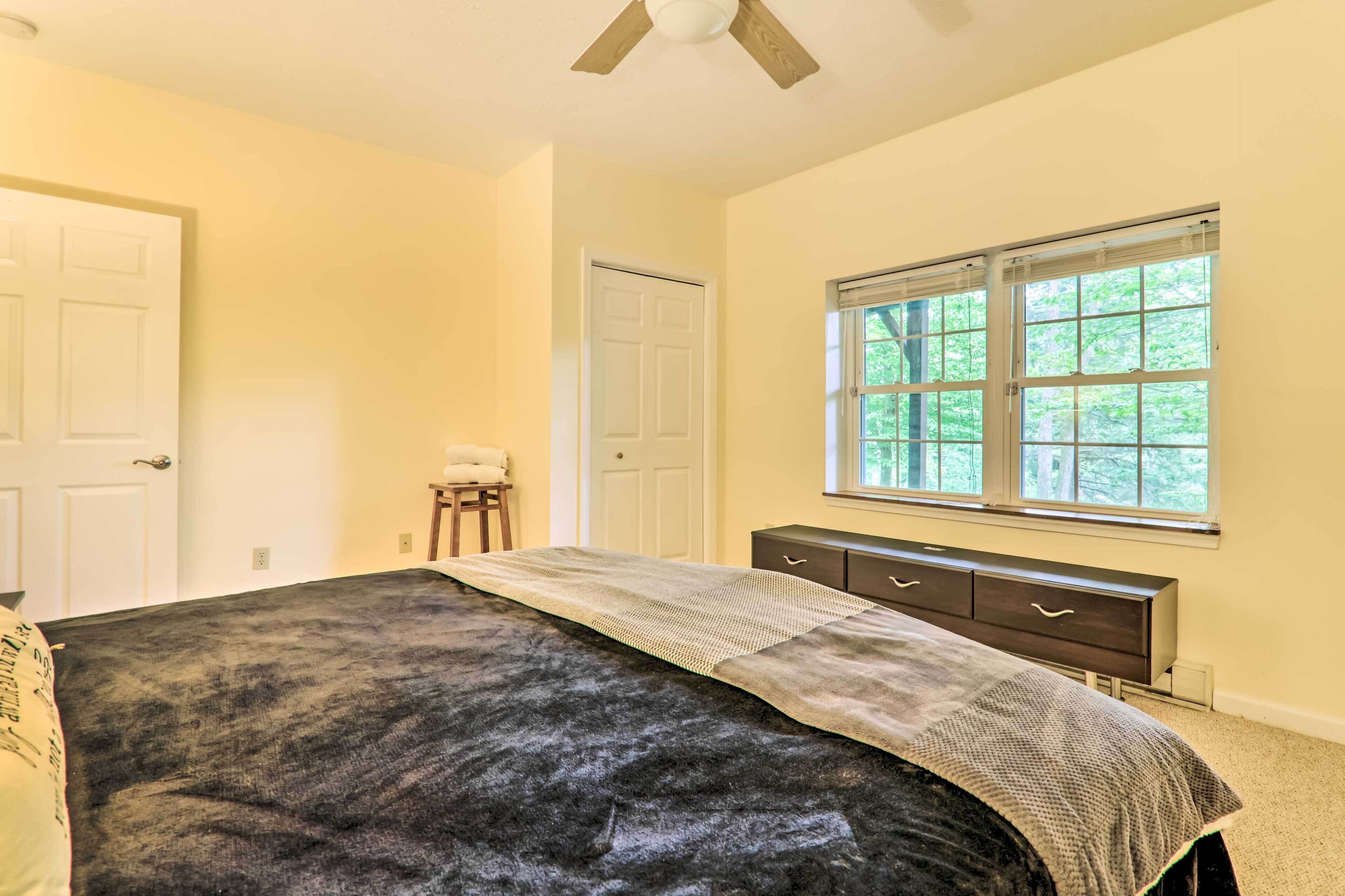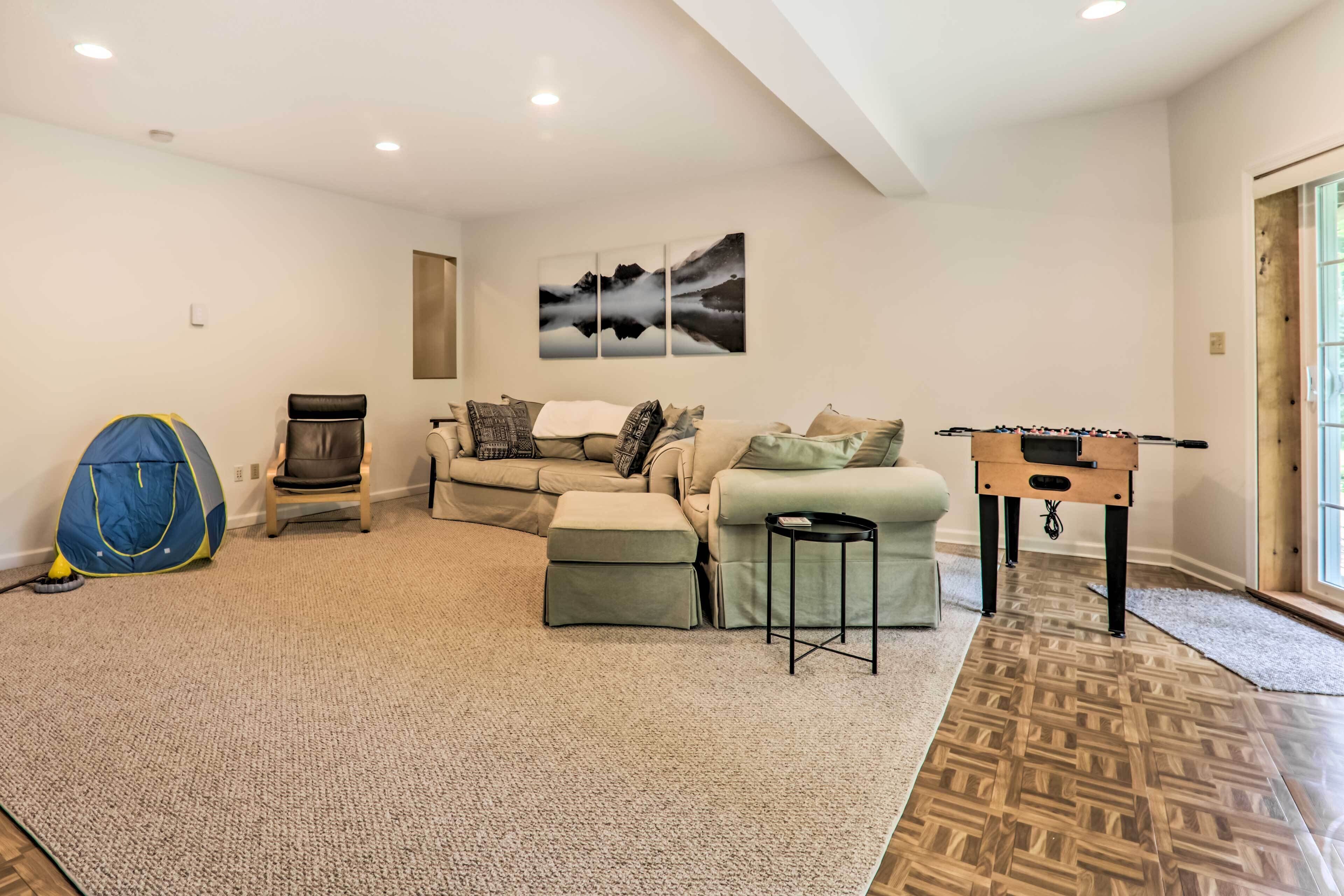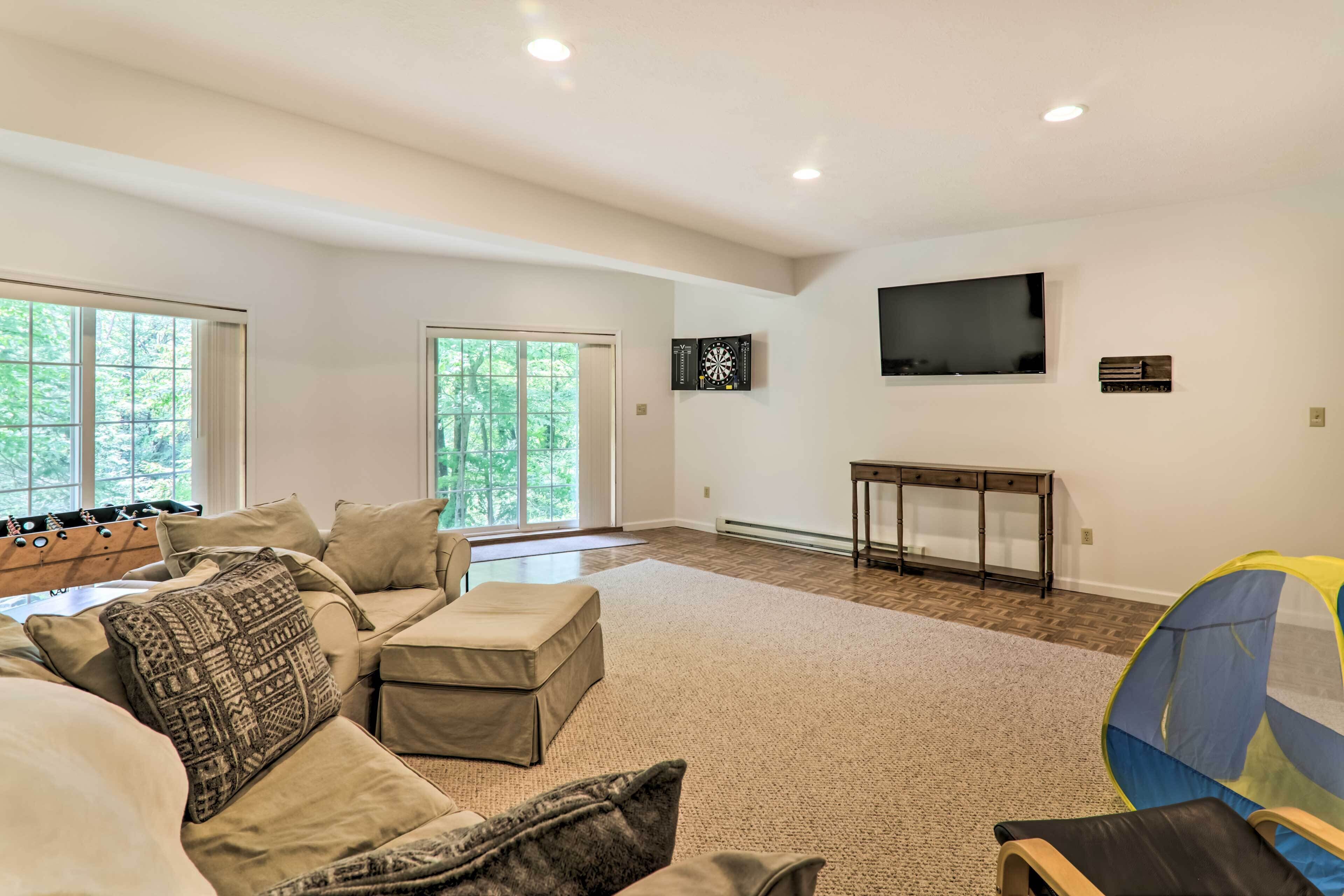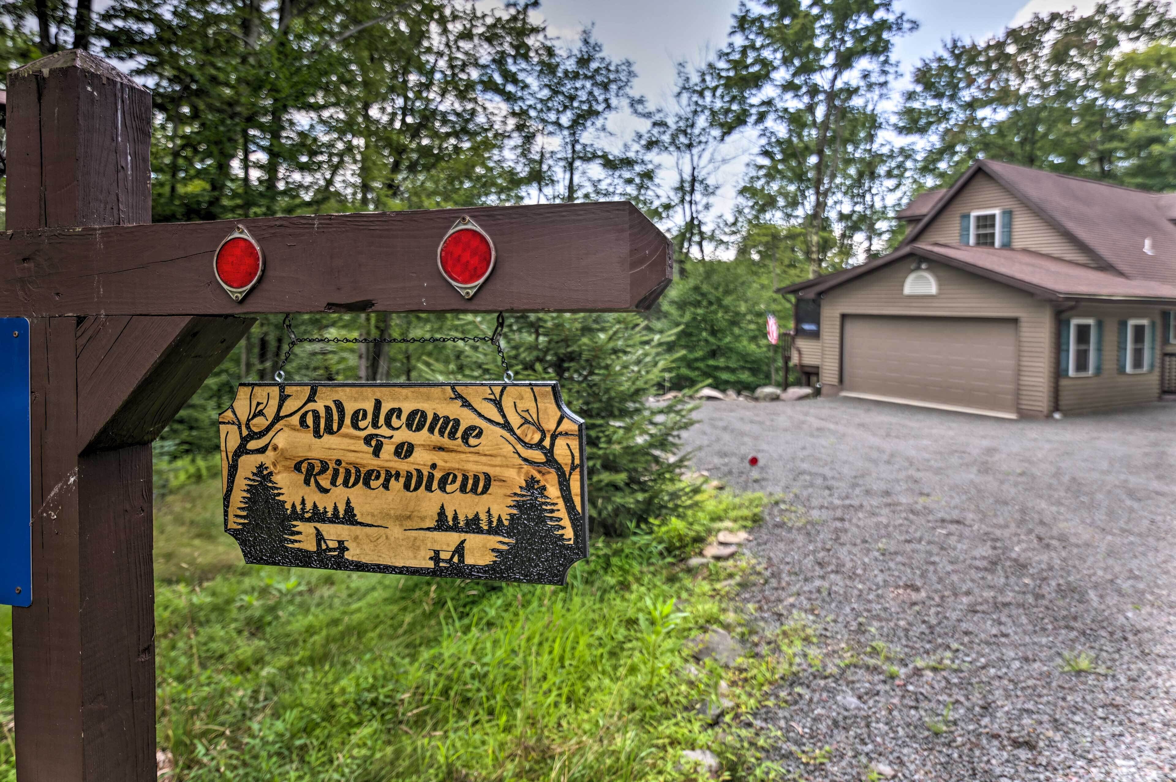 Big Bass Lake House w/ Grill - Steps to River! Dip your toes in the water and let the current wash your worries away at this Gouldsboro vacation rental, better known as 'Riverview.’ Located in the Big Bass Lakes community, this impressive 7-bedroom, 4-bathroom house offers ample entertainment for kids and adults alike. With 3 Smart TVs, tons of board games, a foosball table, a riverfront fire pit,...