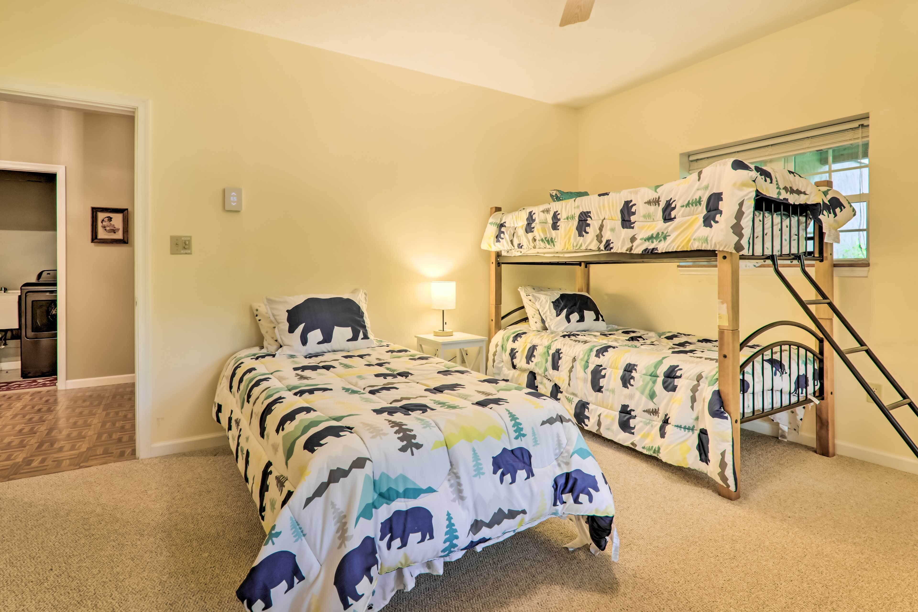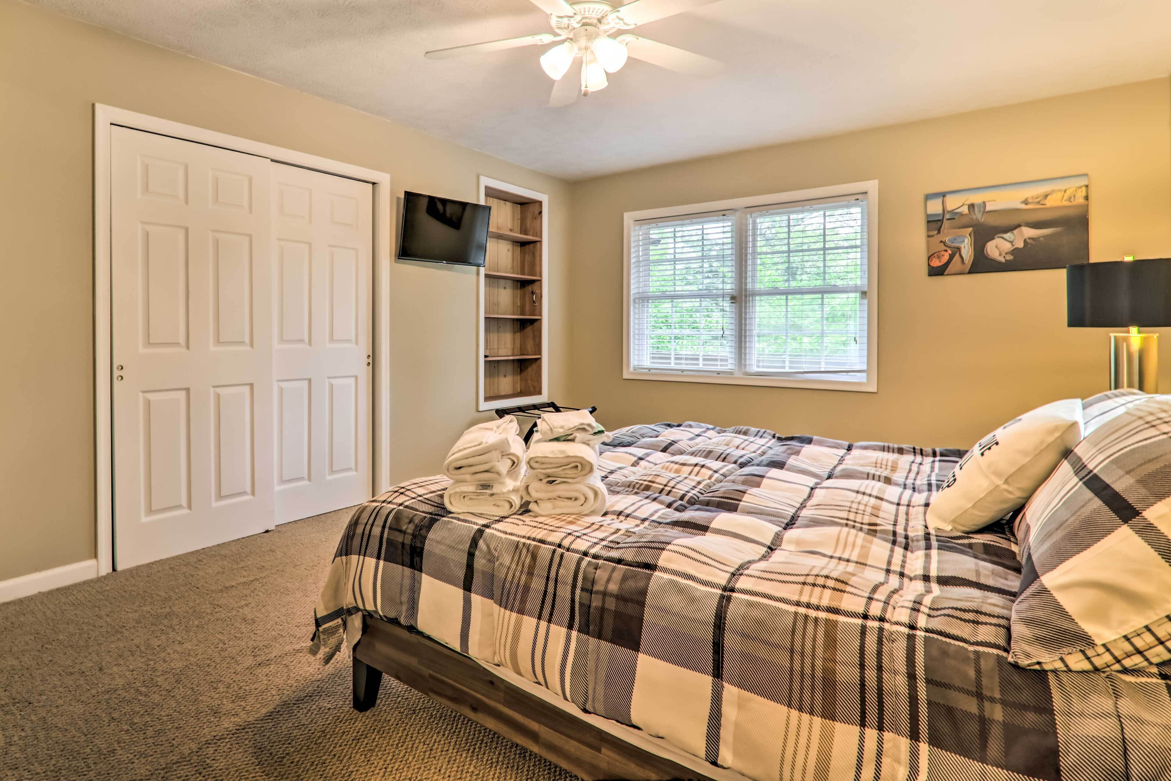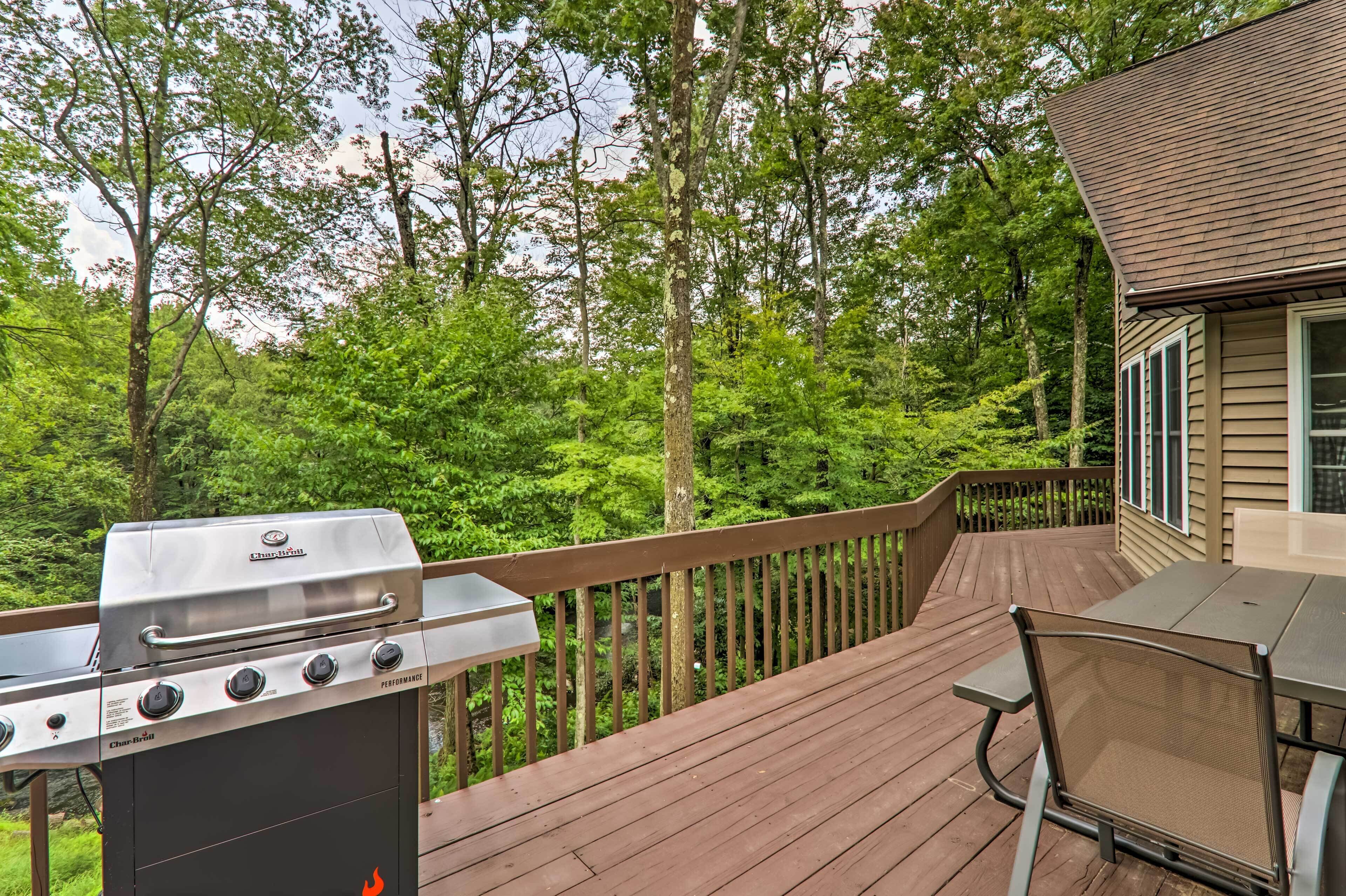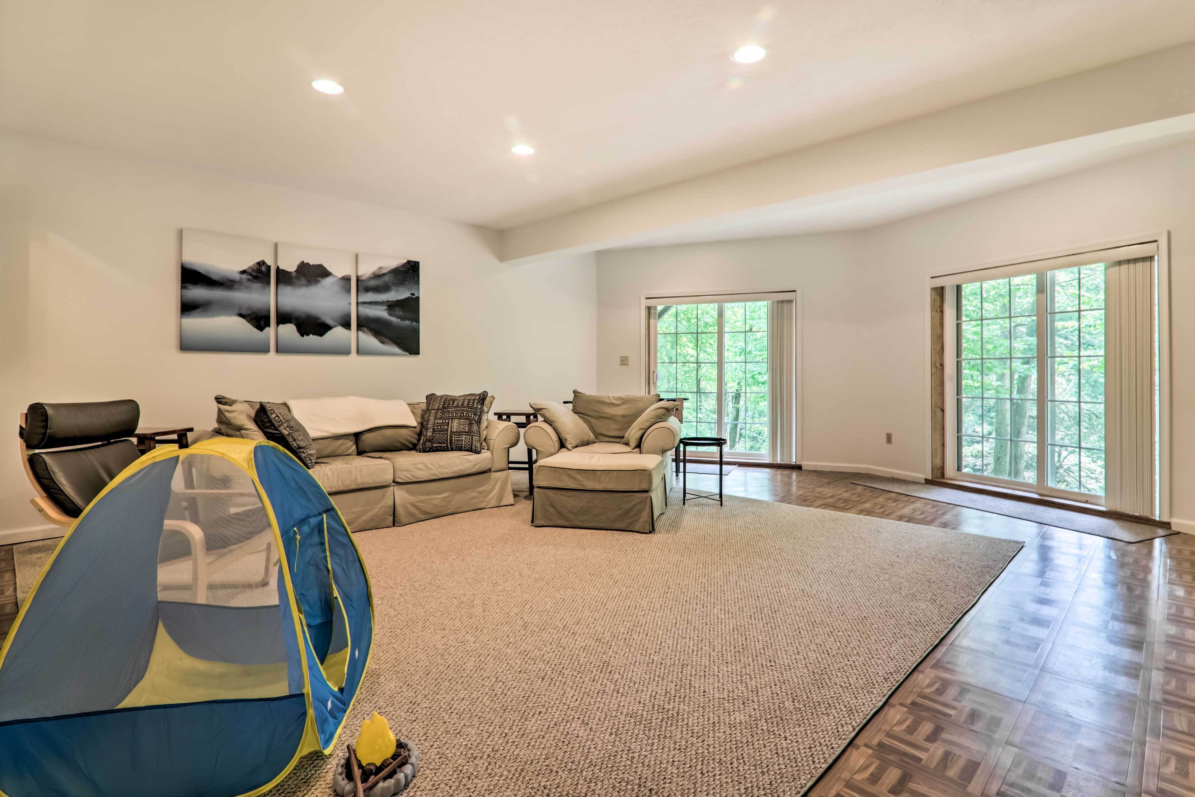 Big Bass Lake House w/ Grill - Steps to River! Dip your toes in the water and let the current wash your worries away at this Gouldsboro vacation rental, better known as 'Riverview.’ Located in the Big Bass Lakes community, this impressive 7-bedroom, 4-bathroom house offers ample entertainment for kids and adults alike. With 3 Smart TVs, tons of board games, a foosball table, a riverfront fire pit,...