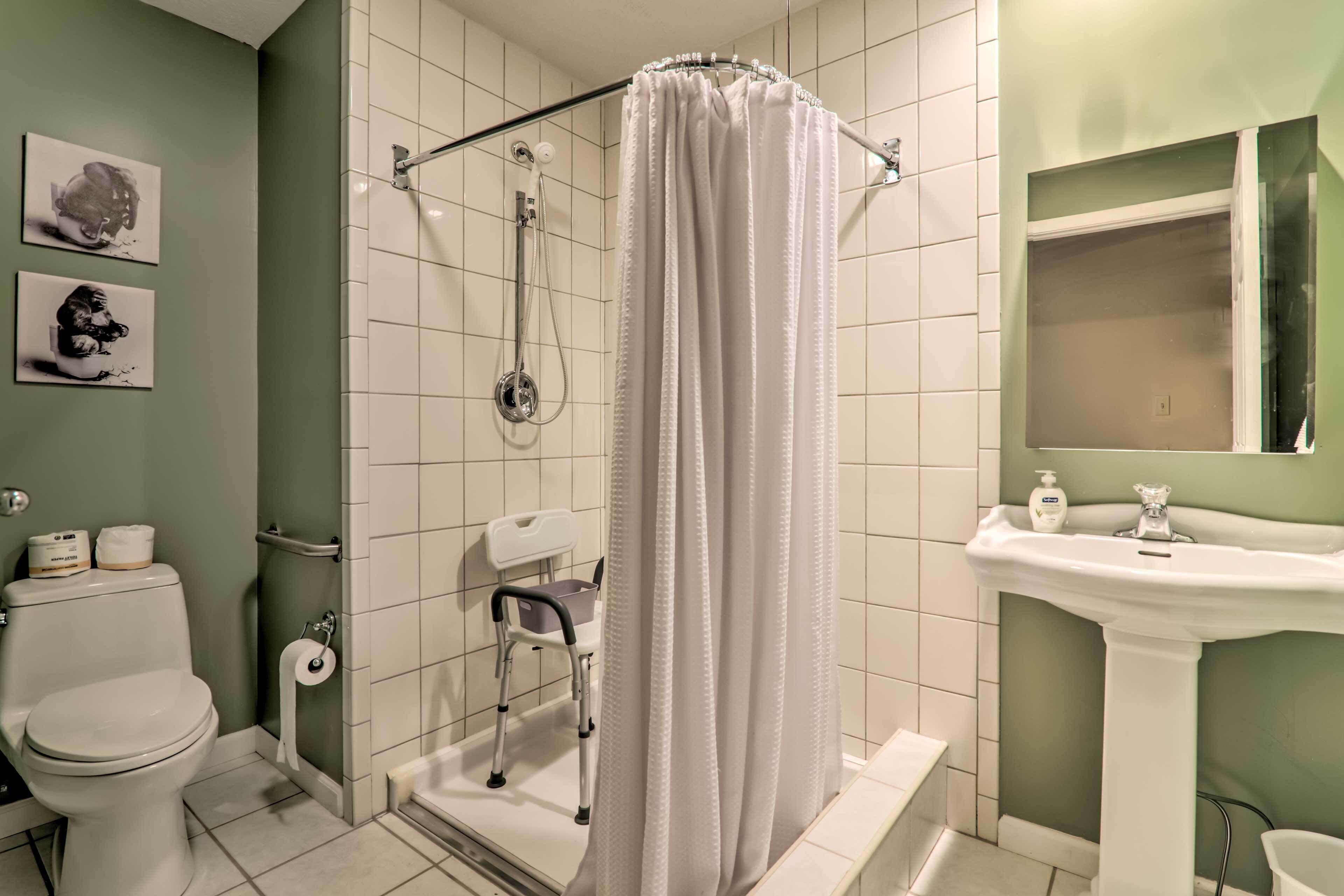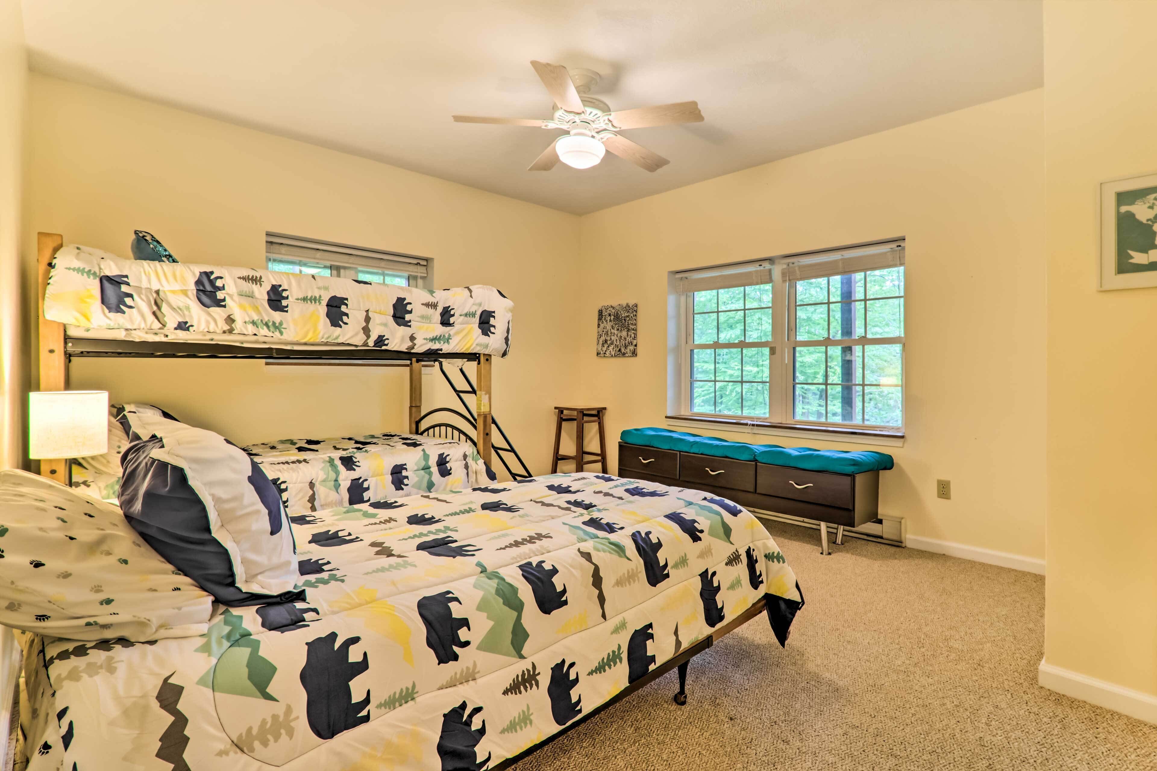 Big Bass Lake House w/ Grill - Steps to River! Dip your toes in the water and let the current wash your worries away at this Gouldsboro vacation rental, better known as 'Riverview.’ Located in the Big Bass Lakes community, this impressive 7-bedroom, 4-bathroom house offers ample entertainment for kids and adults alike. With 3 Smart TVs, tons of board games, a foosball table, a riverfront fire pit, and a spacious deck perfect for family potlucks, you'll have everything you need for memory-making and merriment with the people you love most!-- THE PROPERTY --3,908 Sq Ft | Game Room | Roll-In Shower | Gated CommunityMulti-generational families can enjoy quality time together surrounded by lush trees and easy access to a wide variety of outdoor excitement, including Tobyhanna State Park and Stillwater Lake at this vacation rental!Bedroom 1: King Bed | Bedroom 2: King Bed | Bedroom 3: King Bed | Bedroom 4: 2 Queen Beds | Bedroom 5: Queen Bed | Bedroom 6: Twin Bunk Bed, Twin Bed | Bedroom 7: Twin Bunk BedCOMMUNITY AMENITIES: Basketball court, tennis court, recreation center, fitness center, indoor & outdoor poolsOUTDOOR LIVING: Spacious yard, wraparound deck, dining set, fire pit, gas grill, smoker, enclosed porchINDOOR LIVING: 3 Smart TVs, Smart speaker, board games, books, foosball table, en-suite bathroom, dining table, workspace, fireplaceKITCHEN: Fully equipped, drip coffee maker, blender, teapot, toaster, cooking utensils, pots & pans, Crock-Pot, microwave, dishware & flatware, breakfast barGENERAL: Free WiFi, ceiling fans, portable A/C, complimentary toiletries, towels/linens, washer/dryer, beach gear, hair dryerFAQ: Stairs optional, bedroom & bathroom on 1st floor, 4 external security cameras (facing out), grab rails in bathroomPARKING: Gravel driveway (7 vehicles)-- THE LOCATION --OUTDOOR ADVENTURE: Lehigh River (on-site), Gouldsboro State Park (3.8 miles), Tobyhanna State Park (12.4 miles), Stillwater Lake (15.9 miles), Promised Land State Park (20.7 miles), Jack Frost Ski Resort (23.8 miles), Big Pocono State Park (24.4 miles), Delaware Water Gap National Recreation Area (34.6 miles), Shawnee Mountain Ski Area (38.3 miles), Hickory Run State Park (41.0 miles)LOCAL HOT SPOTS: Kalahari Resorts Poconos (16.5 miles), Great Wolf Lodge Water Park | Pocono Mountains (22.2 miles), Camelback Lodge & Indoor Waterpark (22.4 miles), Pocono Raceway (23.9 miles), The Shoppes at American Candle (24.3 miles)WATERFALLS: Shohola Falls (37.4 miles), Dingmans Falls (45.3 miles), Bushkill Falls (46.3 miles), Raymondskill Falls (47.6 miles)AIRPORTS: Wilkes-Barre Scranton International Airport (21.4 miles), Lehigh Valley International Airport (58.8 miles)-- REST EASY WITH US --Evolve makes it easy to find and book properties you’ll never want to leave. You can relax knowing that our properties will always be ready for you and that we’ll answer the phone 24/7. Even better, if anything is off about your stay, we’ll make it right. You can count on our homes and our people to make you feel welcome--because we know what vacation means to you.-- POLICIES --- No smoking- No pets allowed- No events, parties, or large gatherings- Must be at least 25 years old to book- Additional fees and taxes may apply- Photo ID may be required upon check-in- NOTE: Due to HOA restrictions, the max occupancy for this property is 12 guests- NOTE: Your safety matters. This property features 4 exterior security cameras located at each entrance. Camera 1 faces the driveway, camera 2 faces the main entrance, camera 3 faces the back deck entrance, and camera 4 faces the lower-level entrance. They do not look into any interior spaces. The cameras record video and sound when activated by motion. They will record when it first senses motion and 30 seconds after the last motion is detected
