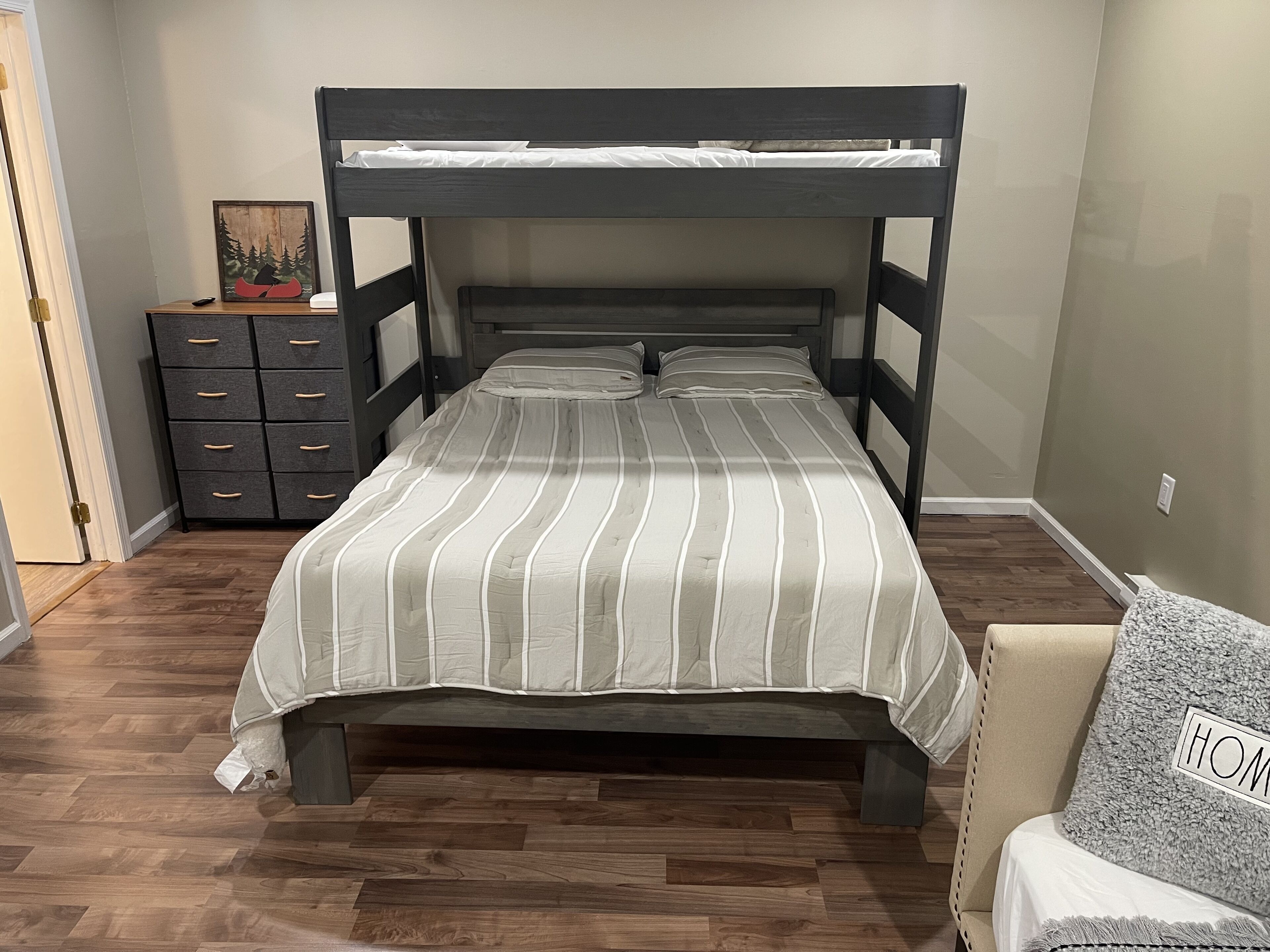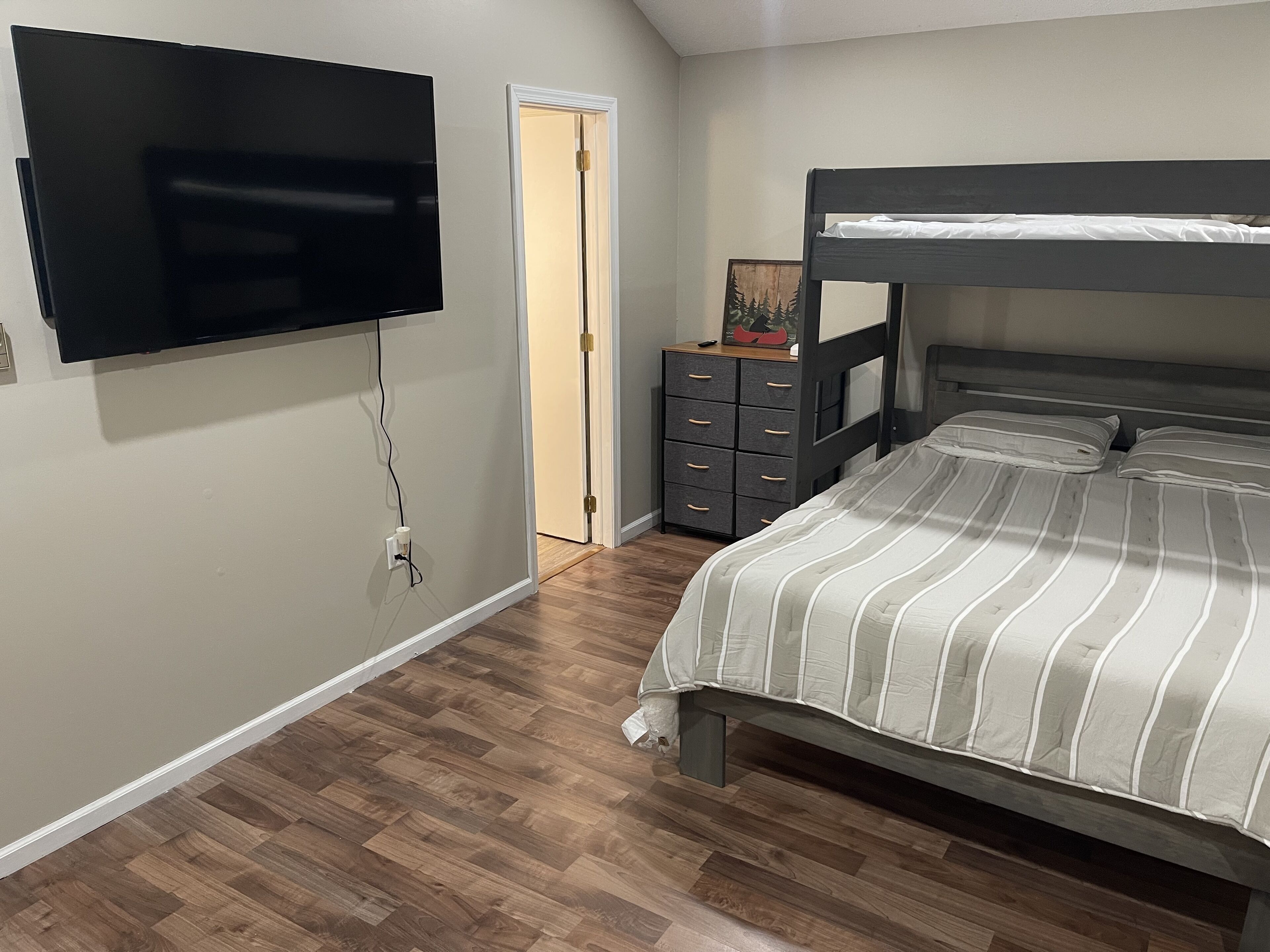 Cozy, Relaxing, Getaway house in Big Bass community Poconos-3 mins walk to lake Relax and escape to this cozy getaway in the Poconos.Our home includes:Adjustable base bedsFireplaceBbq grillFirepit Washer/dryerPrivate Gated communityCommunity lakes, pools, courts, and more.For a list of amenities visit bblca.com