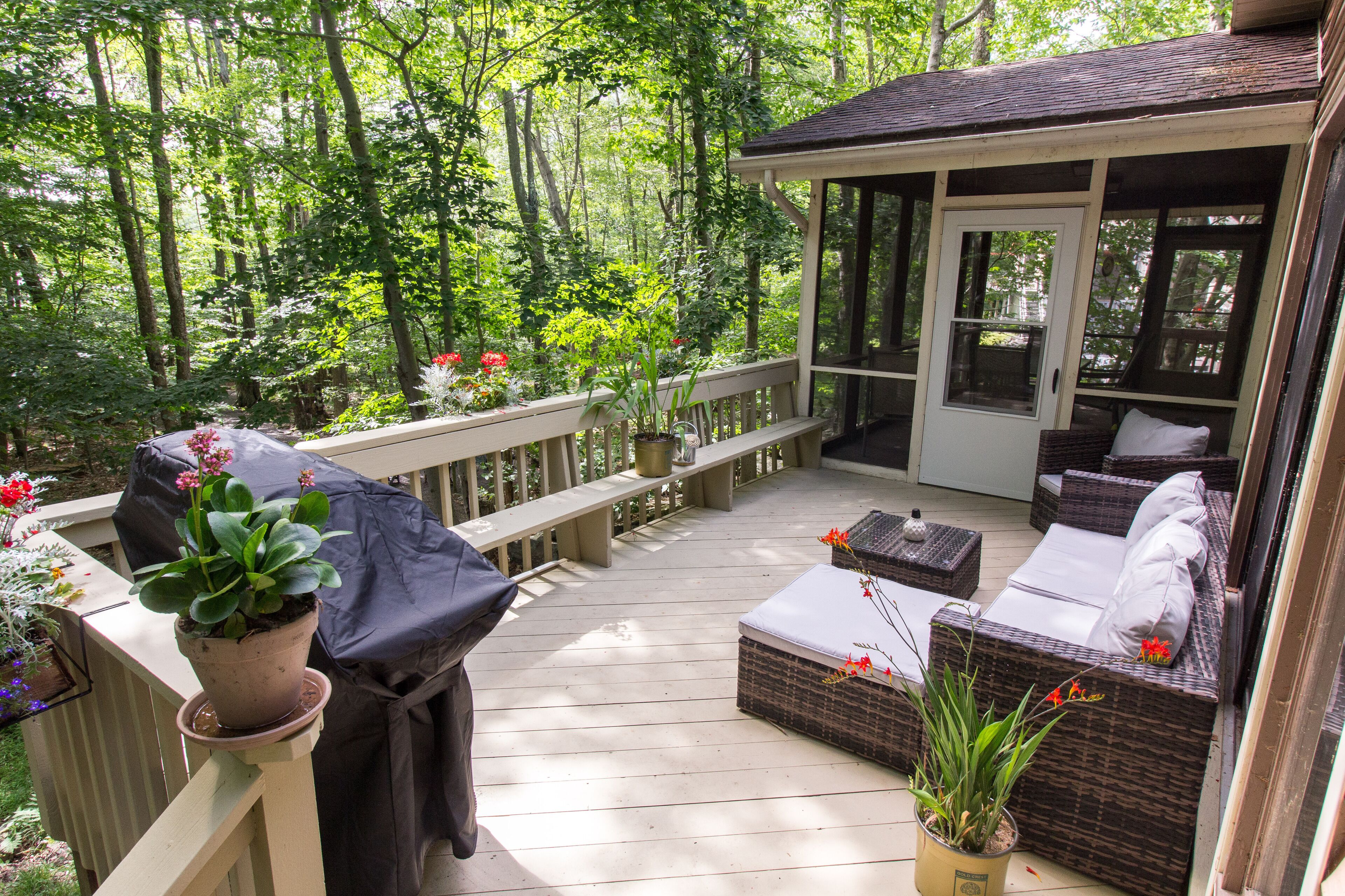 Lakefront Cabin in Poconos Mountain Resort Welcome to our spacious lakefront 4 bedroom, 3 full bath mountain retreat! Our vacation home is in a gold star resort with outdoor and indoor pools, 2 lakes, beaches, playgrounds, beach volleyball, basketball, tennis and more. It features an open concept design, fireplace, large deck with grill, firepit, and private dock with kayaks and canoe. Conveniently located in the heart of the Poconos, close to State Park hikes, Ski Resorts, Kalahari water park, Casinos and more!