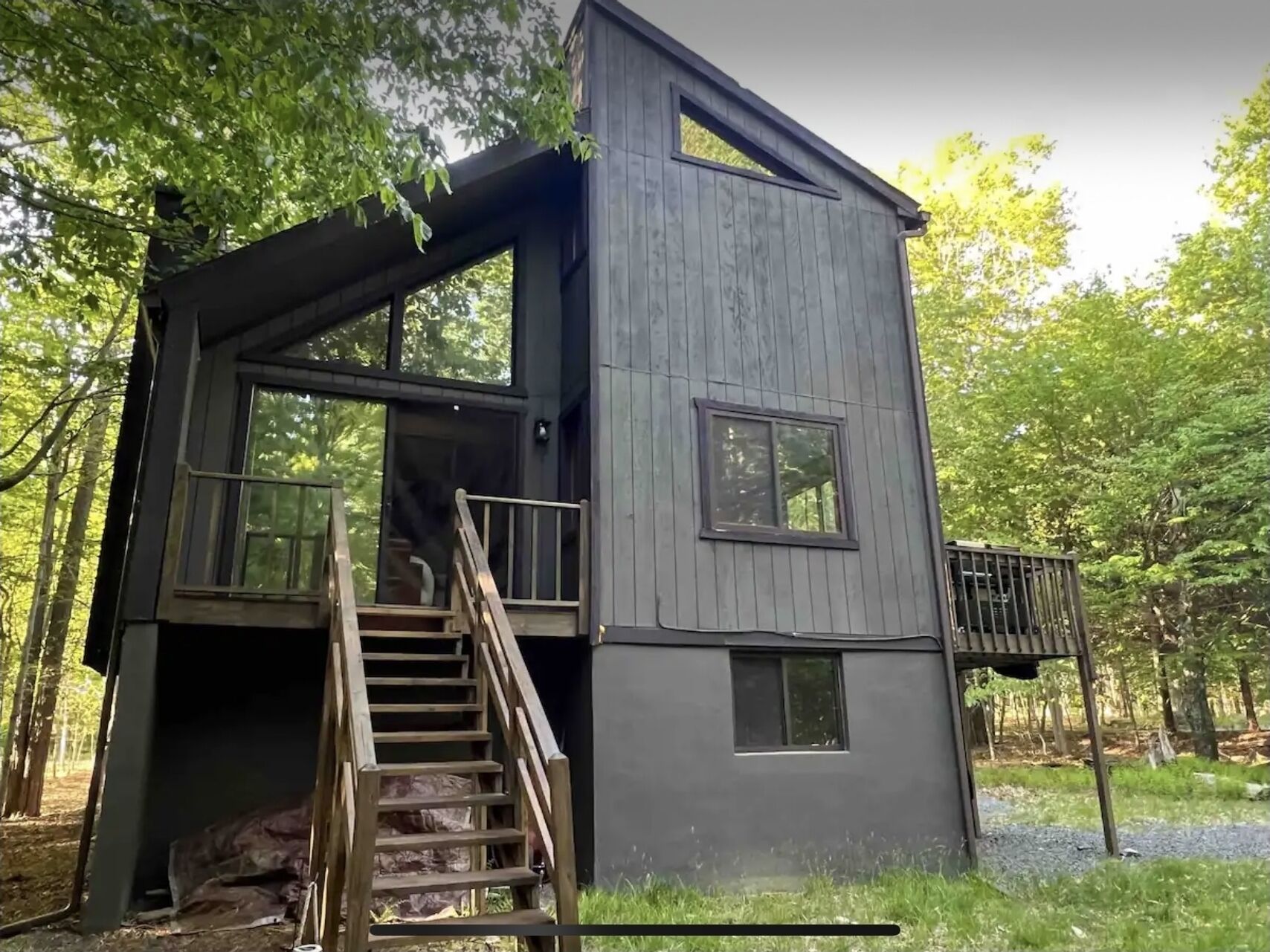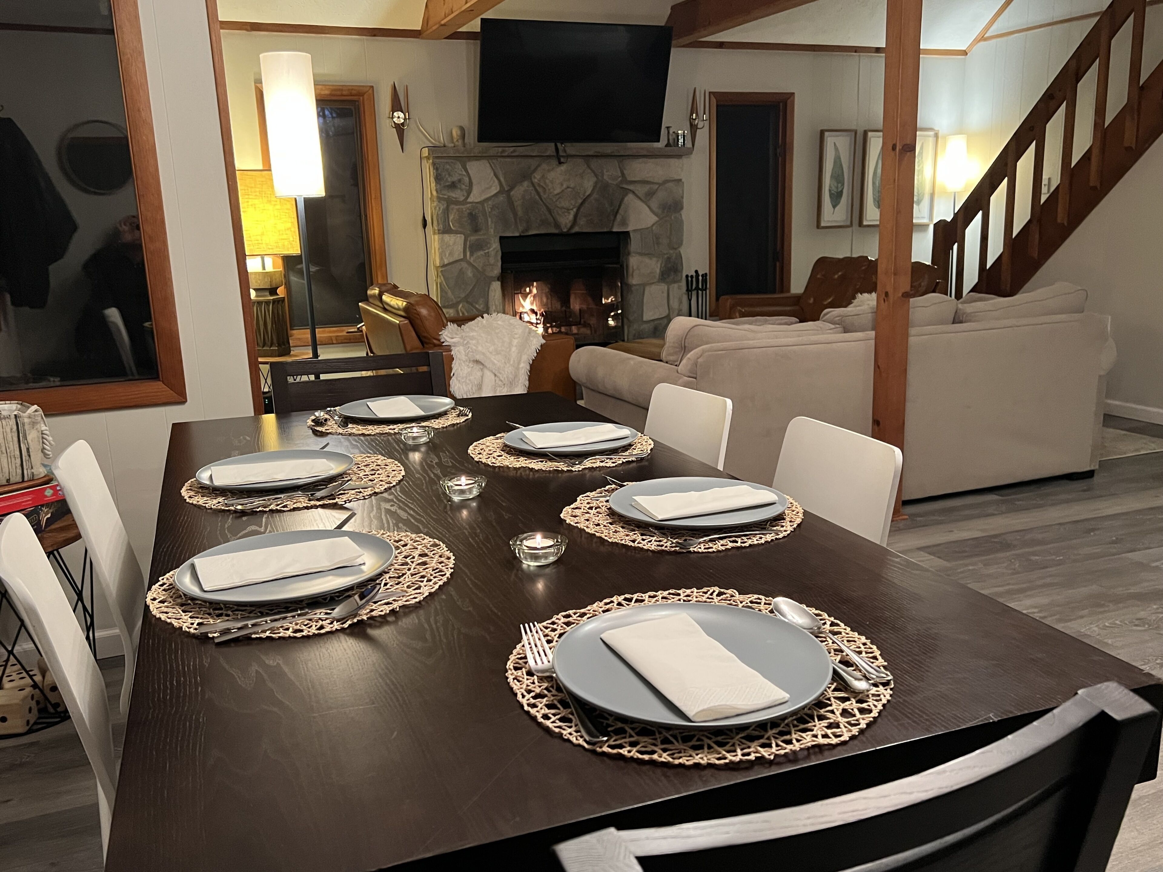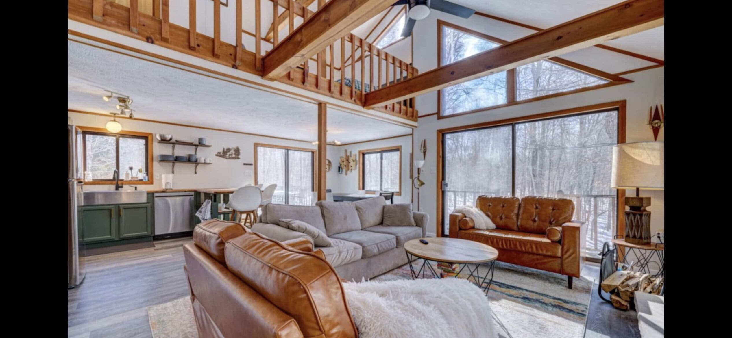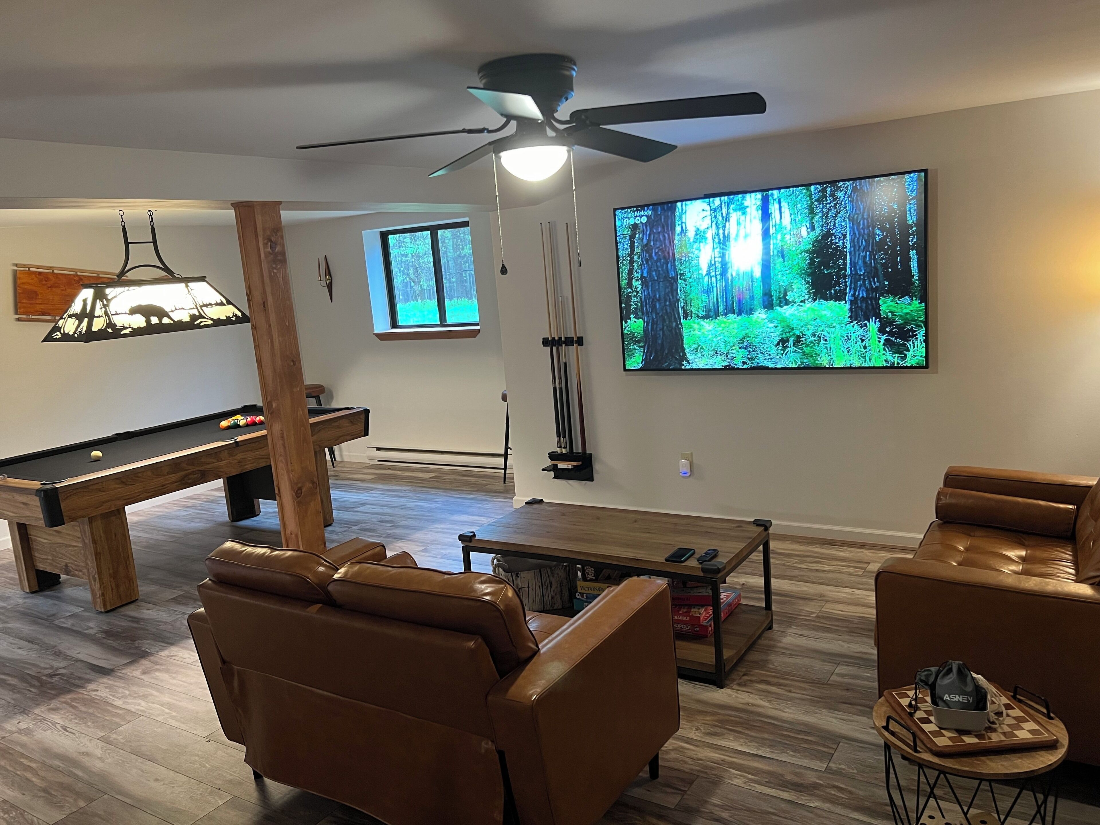 Wooded Retreat in Poconos Mountain Resort w/ Firepit and Kayaks! Experience outdoor life in the Poconos from our stylish Cabin! Located in Big Bass Lake, one of the best amenity-filled resort communities with 3 lakes, 2 beaches, playgrounds, a clubhouse complex w/ pool, splash pad, tennis, and basketball court. For winter the season, near the sledding and tubing hill, there’s an indoor clubhouse featuring a gym, sauna, fireside lounge, and large indoor pool. Ski resorts, several beautiful state parks, casino, Kalahari, and so much more are a short trip!