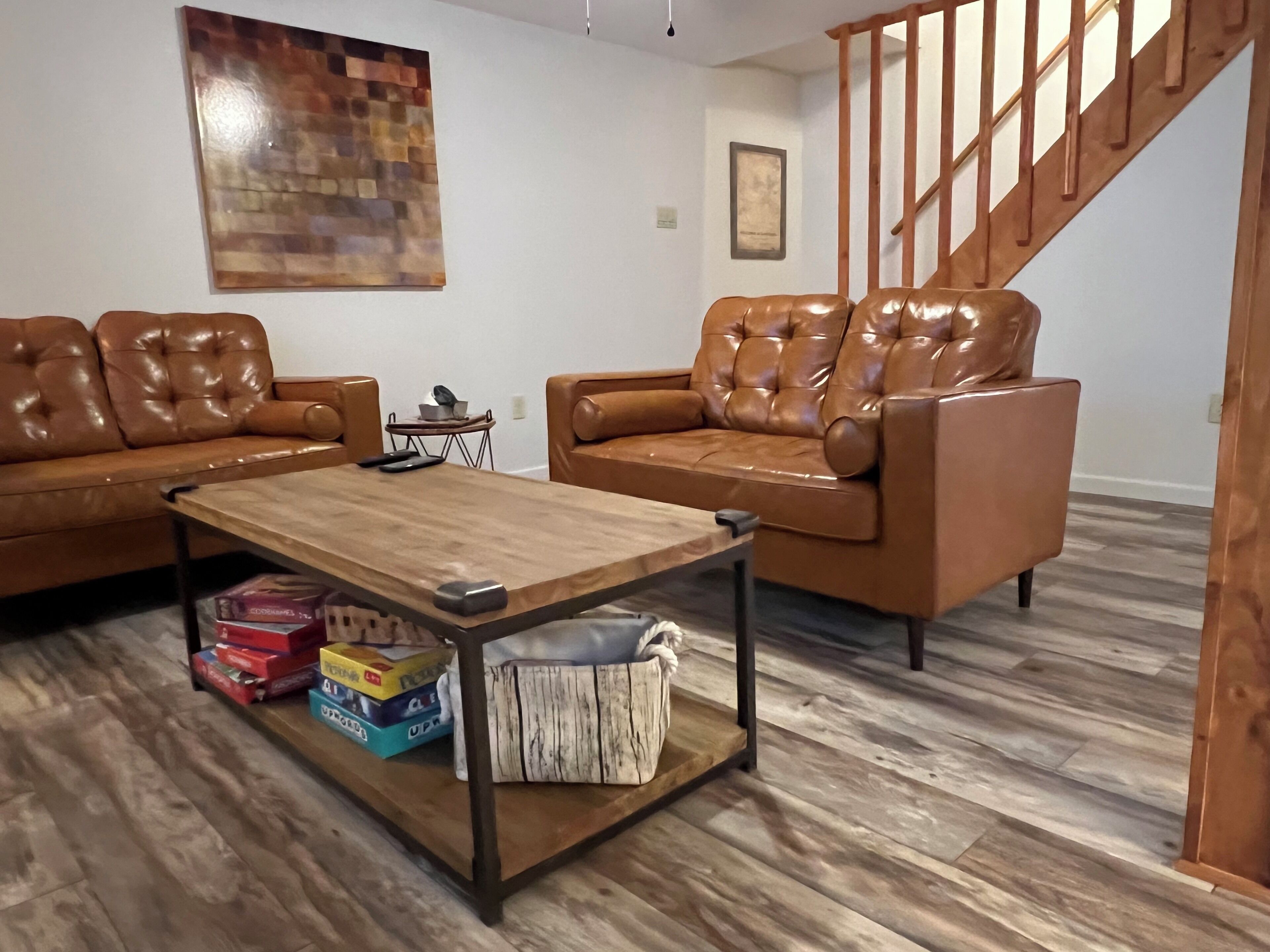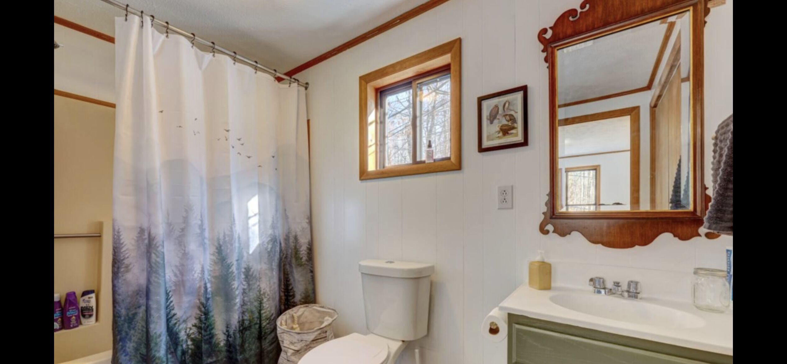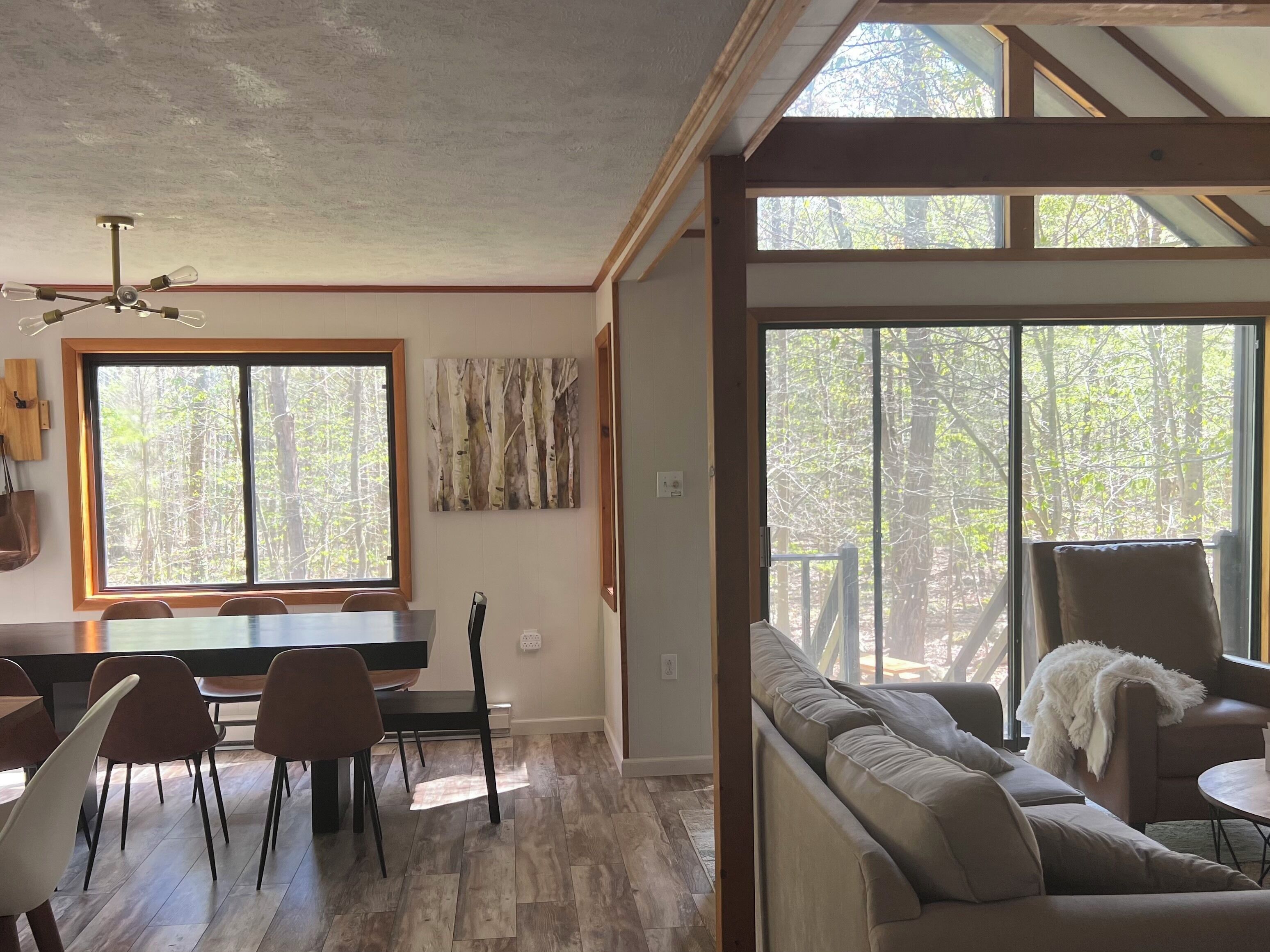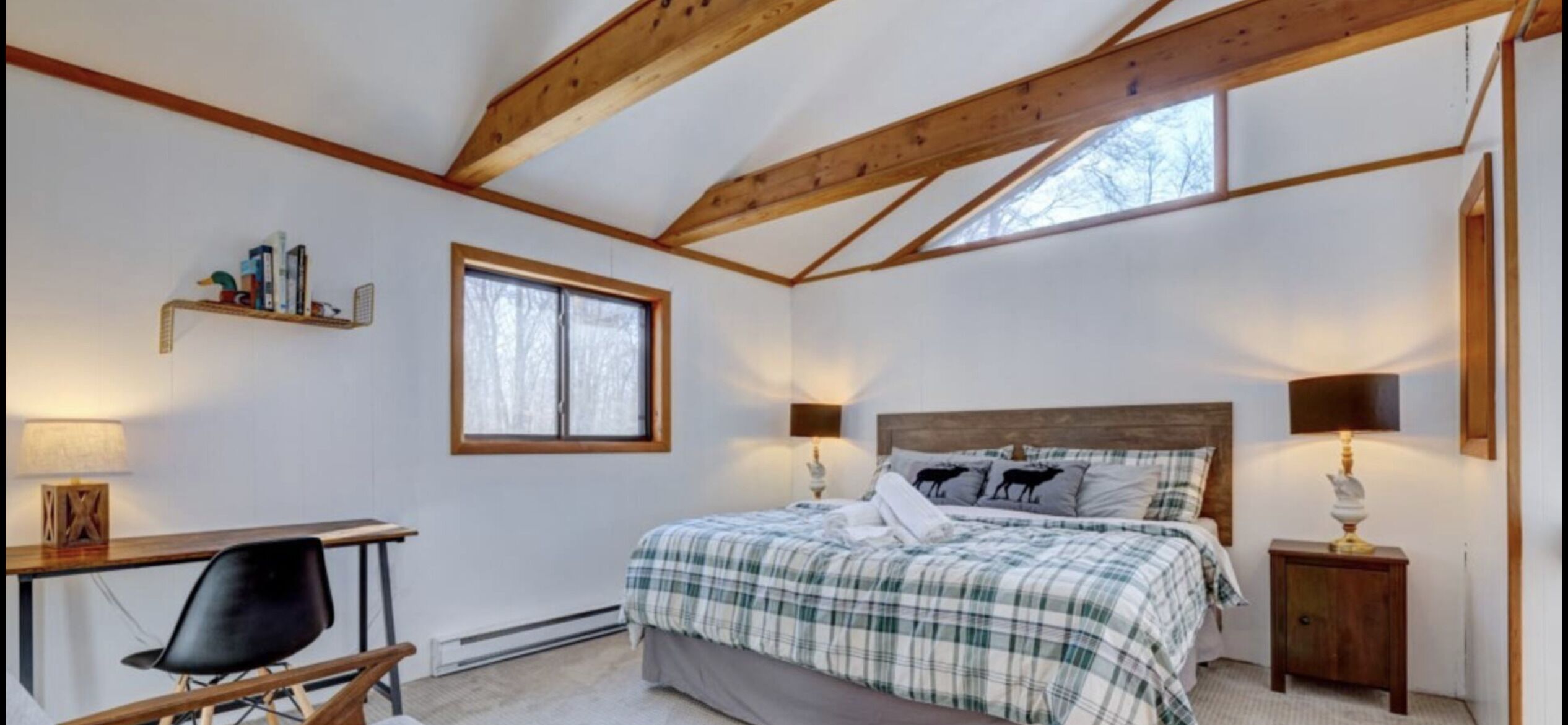 Wooded Retreat in Poconos Mountain Resort w/ Firepit and Kayaks! Experience outdoor life in the Poconos from our stylish Cabin! Located in Big Bass Lake, one of the best amenity-filled resort communities with 3 lakes, 2 beaches, playgrounds, a clubhouse complex w/ pool, splash pad, tennis, and basketball court. For winter the season, near the sledding and tubing hill, there’s an indoor clubhouse featuring a gym, sauna, fireside lounge, and large indoor pool. Ski resorts, several beautiful state parks, casino, Kalahari, and so much more are a short trip!