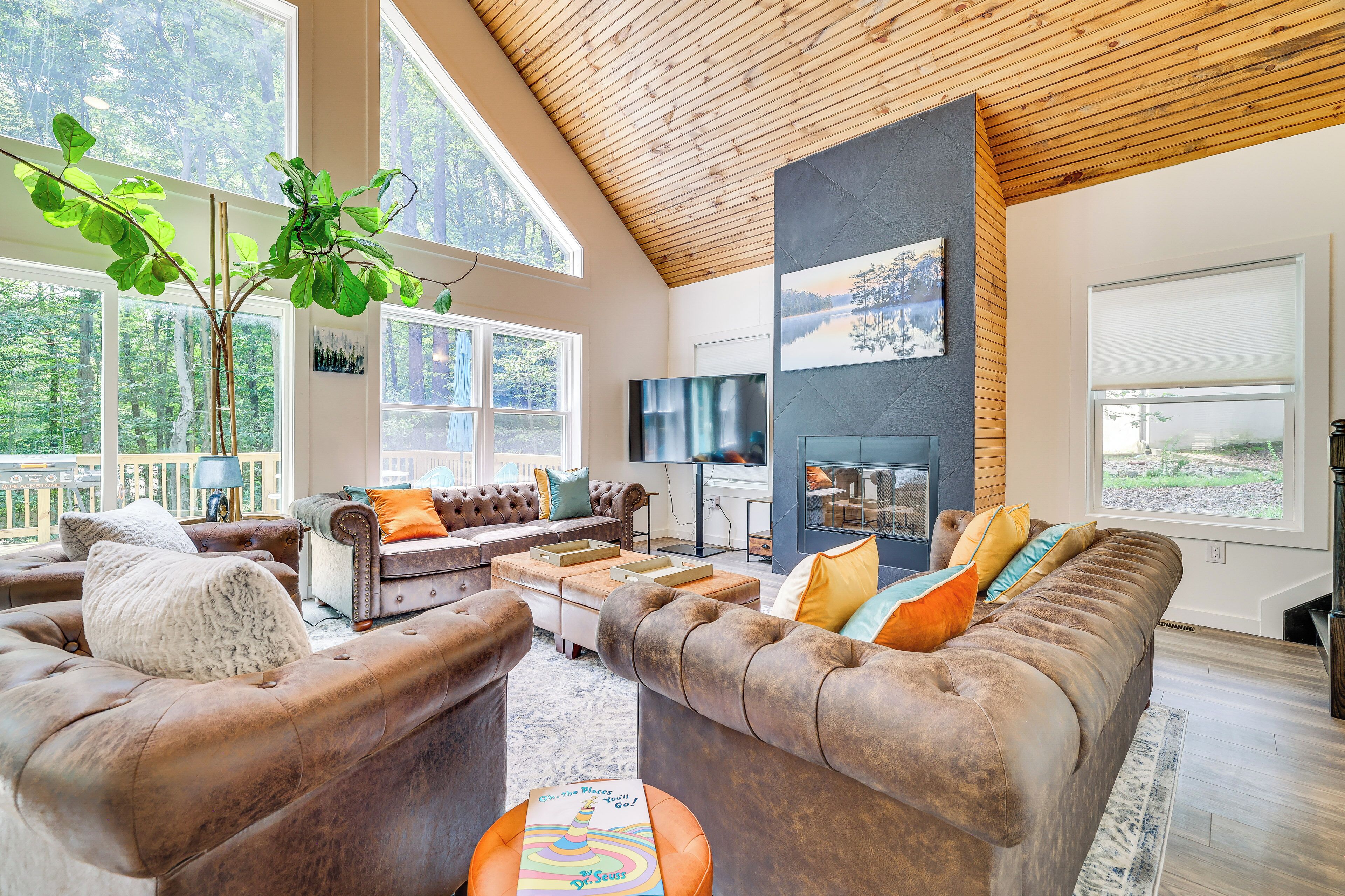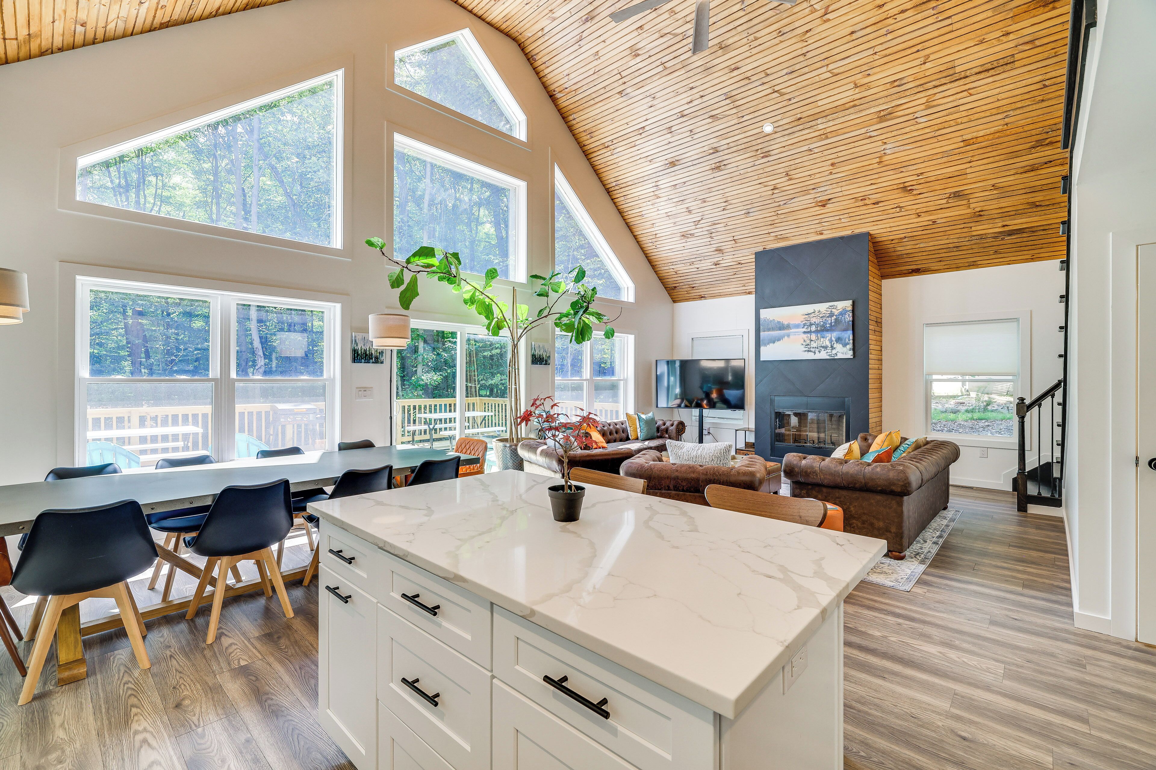 Poconos Getaway w/ Indoor & Outdoor Pool Access! Discover the best of the Poconos from this spacious Gouldsboro home — it’s close to adventures the whole family can enjoy! You’ll be a short drive away from outdoor activities like hiking in Tobyhanna State Park and skiing at Camelback Ski Resort. Plus, you’ll have optional access to Big Bass Lake amenities, including beach access and all-season po...