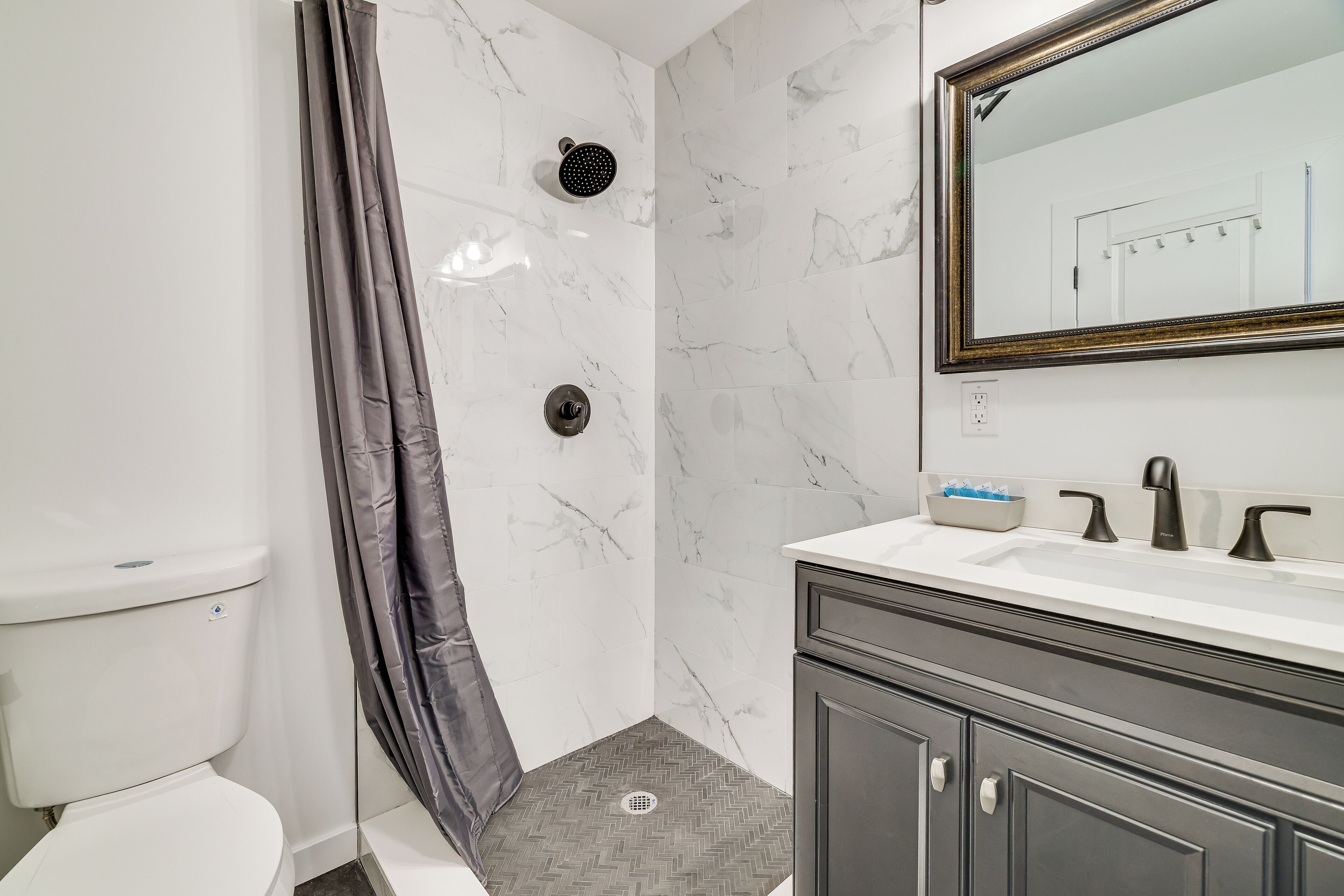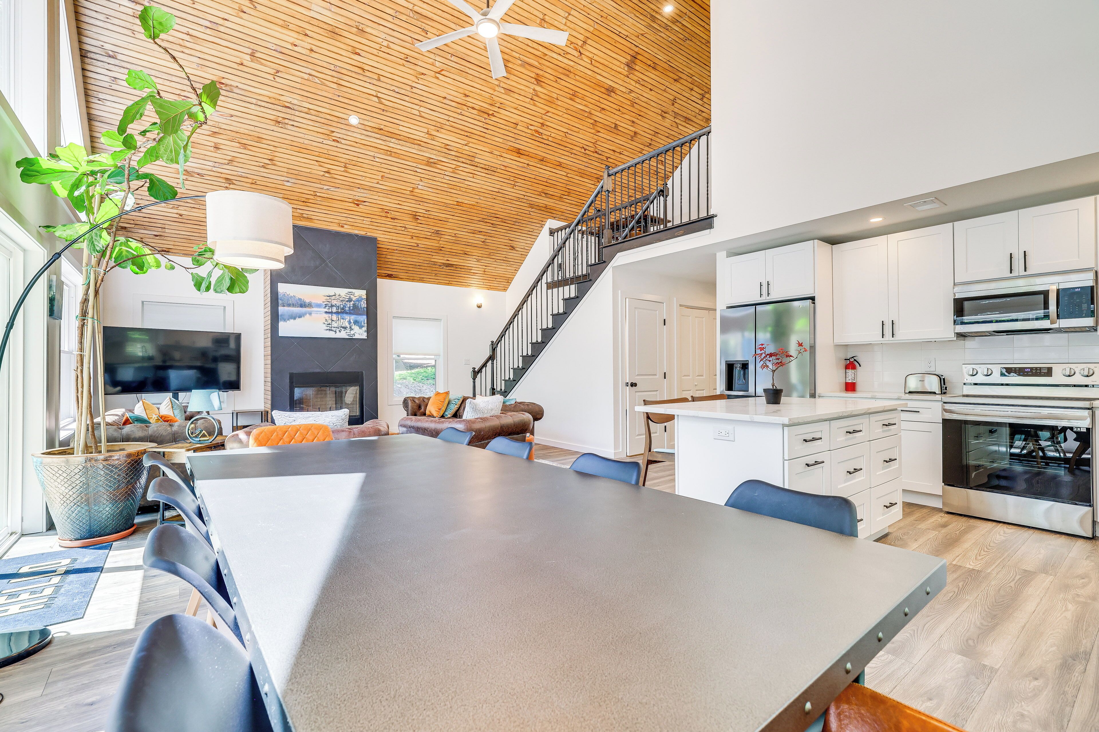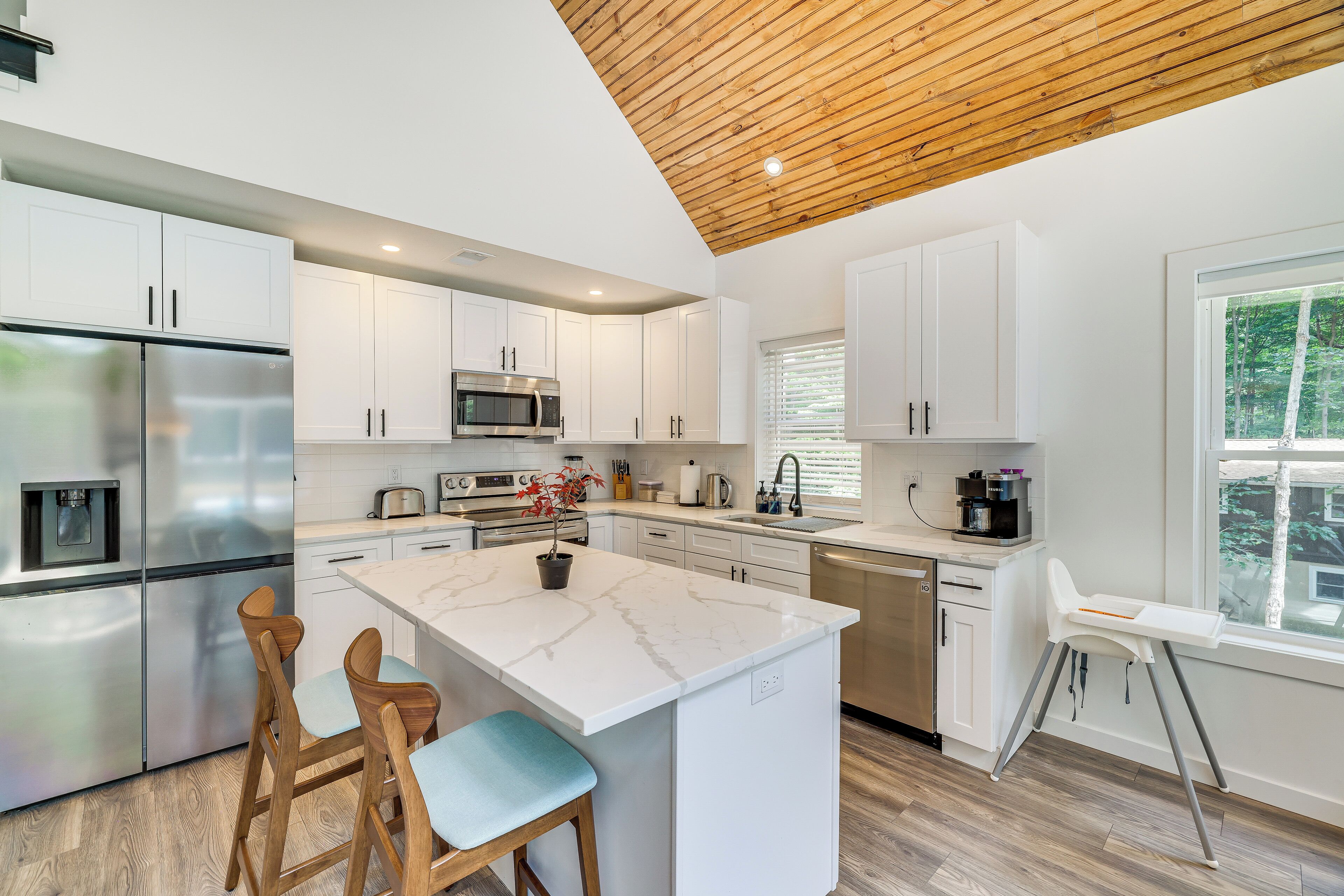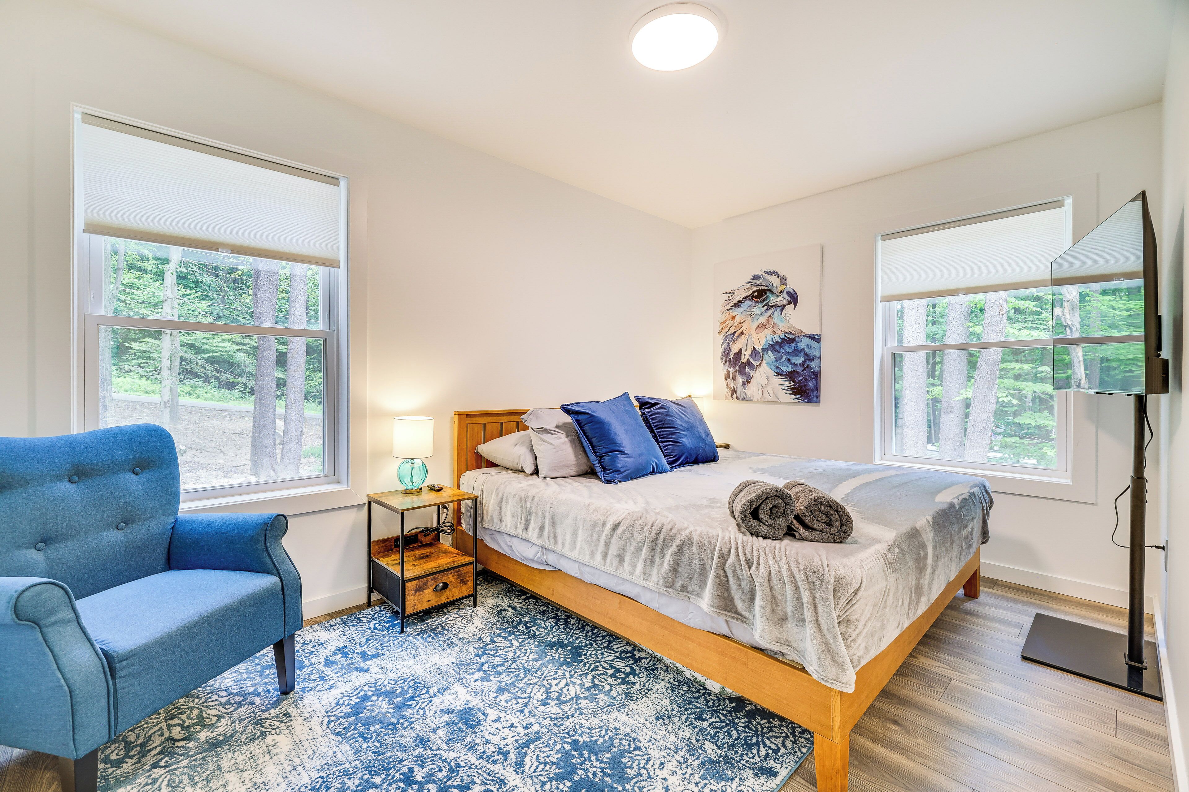 Poconos Getaway w/ Indoor & Outdoor Pool Access! Discover the best of the Poconos from this spacious Gouldsboro home — it’s close to adventures the whole family can enjoy! You’ll be a short drive away from outdoor activities like hiking in Tobyhanna State Park and skiing at Camelback Ski Resort. Plus, you’ll have optional access to Big Bass Lake amenities, including beach access and all-season pools! When you’re ready to relax, return to the 5-bedroom, 4-bathroom vacation rental for a barbecue on the deck and s’mores by the campfire.-- THE PROPERTY --Community Amenities Available w/ On-Site Fee | Furnished Deck | Shuffleboard Table | Gas Grill (Propane Provided)Bedroom 1: King Bed | Bedroom 2: King Bed | Bedroom 3: Twin/Queen Bunk Bed | Bedroom 4: Twin/Queen Bunk Bed | Bedroom 5: King Bed | Additional Sleeping: Pack ‘n PlayBIG BASS LAKE AMENITIES (w/ fee): Beach & lake access, indoor pool, outdoor poolINDOOR LIVING: Smart TVs, board games, dining table, breakfast bar, high chair, fireplace (decorative only), workout roomOUTDOOR LIVING: Picnic table, shade umbrellas, fire pit w/ seating (wood not provided), private backyard, hot tubKITCHEN: Dishwasher, stove/oven, refrigerator, microwave, cooking basics, dishware & flatware, dual Keurig, toaster, blender, spices, trash bags & paper towelsGENERAL: Free WiFi, central A/C & heating, complimentary toiletries, linens & towels, beach towels, in-home laundry, hair dryer, hangers, keyless entry, gated communitySUITABILITY: Stairs required for access, 3-story homeFAQ: Quiet hours (10:00 PM-9:00 AM), 2 exterior security cameras (facing out), closets not availablePARKING: Driveway (5 vehicles), no street parking-- THE LOCATION --POCONOS HOTSPOTS: Kalahari Indoor Waterpark (17 miles), Great Wolf Lodge (21 miles), Pocono Premium Outlets (21 miles), Pocono Raceway (23 miles), Camelbeach Outdoor Waterpark (24 miles)EXPLORE OUTDOORS: Gouldsboro State Park (3 miles), Tobyhanna State Park (12 miles), Promised Land State Park (20 miles), Delaware Water Gap (35 miles)HIT THE SLOPES: Montage Mountain Resorts (21 miles), Camelback Ski Resort (23 miles), Jack Frost Ski Resort (23 miles), Big Boulder Mountain (26 miles), Shawnee Mountain Ski Area (39 miles), Ski Big Bear at Masthope Mountain (46 miles)AIRPORT: Wilkes-Barre Scranton International Airport (25 miles)-- REST EASY WITH US --Evolve makes it easy to find and book properties you’ll never want to leave. You can relax knowing that our properties will always be ready for you and that we’ll answer the phone 24/7. Even better, if anything is off about your stay, we’ll make it right. You can count on our homes and our people to make you feel welcome--because we know what vacation means to you.-- POLICIES --- No smoking- No pets allowed- No events, parties, or large gatherings- Must be at least 25 years old to book- Additional fees and taxes may apply- Photo ID may be required upon check-in- NOTE: This property requires stairs for access- NOTE: Please observe quiet hours from 10:00 PM to 9:00 AM- NOTE: The closets are currently unavailable for guest use- NOTE: The fireplace is decorative only- NOTE: Use of fireworks is not permitted- NOTE: Your safety matters. This property features 2 exterior security cameras: 1 doorbell camera is on the front door facing the exterior front entry, and 1 floodlight camera is on the front of the house facing the driveway. The cameras are outward facing and do not look into interior spaces. The cameras record video and sound for 15-20 seconds when motion is detected- NOTE: Big Bass Lake community amenities are available for a fee paid upon arrival- NOTE: The HOA requires 2 registration forms that must be submitted at least 3 days before your arrival. More information will be provided after booking