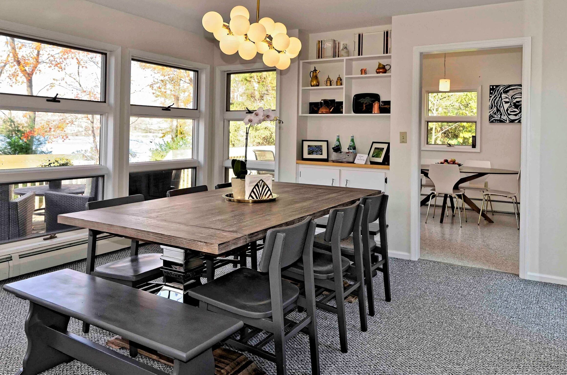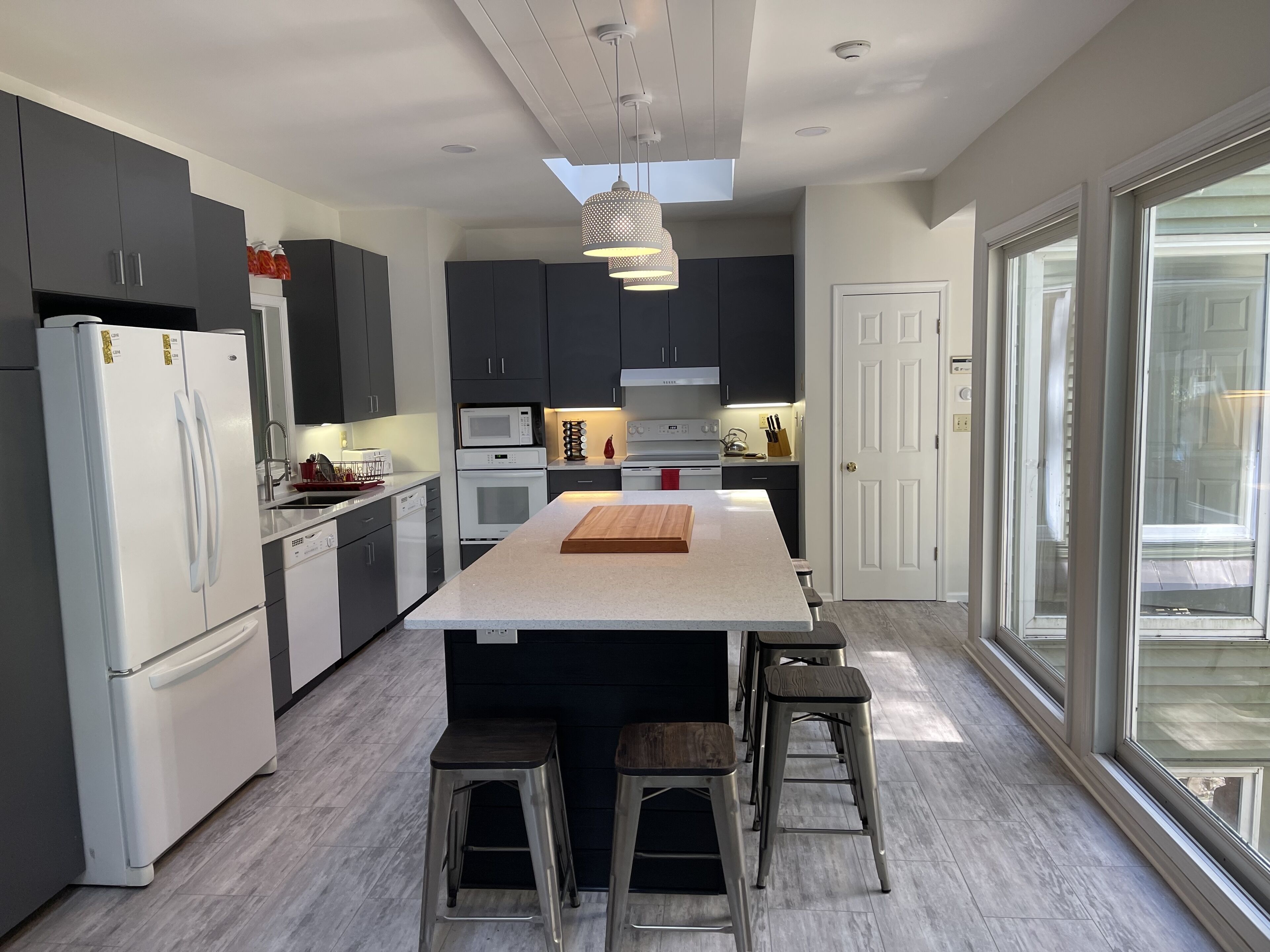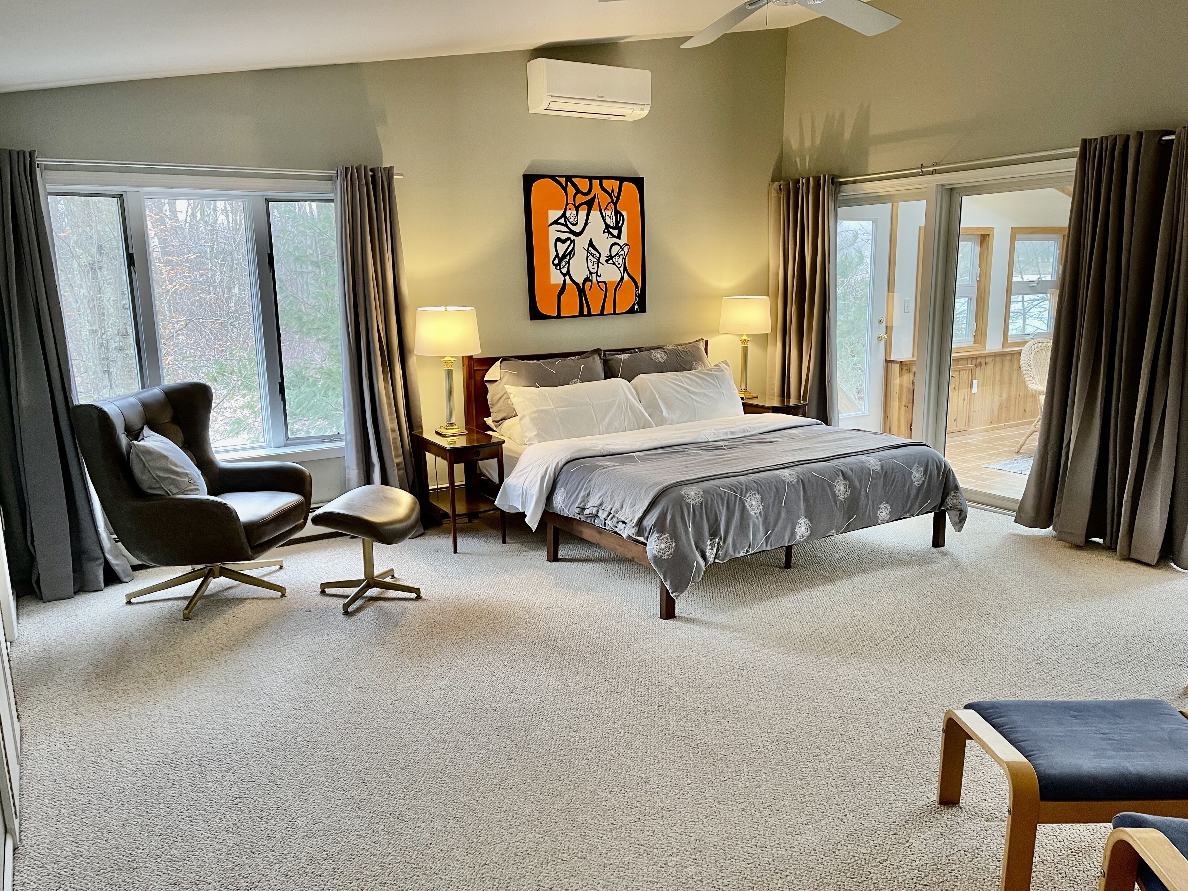 Lake Front in Poconos: Hot Tub / Sauna / Game Room / Kayaks / Private Beach Larsen Lake House- Enjoy your stay in this custom built lakefront home, including 5 comfortable bedrooms and 4 full bathrooms with something for everyone: kayaks, paddle boat, hot tub, sauna, pool table, shuffle board table, ping pong, house-wide Sonos system and large screen Smart TV with Apple TV. Take in extraordinary views from the vaulted living room with floor to ceiling windows overlooking the private dock and beach. Each floor is flooded with light by sky lights and a 2 story glass atrium & waterfall.Located in the premier community of Big Bass Lake, Larsen Lake House is situated on a quiet cul-de-sac with breathtaking views of the lake. The house features an exclusive art collection curated by NYC artist @GDMArt. The game room includes gas fireplace, pool table, shuffle board, wet bar and a room exclusively reserved for family ping pong tournaments. Bedrooms combine luxurious mattresses with non-allergen duvets and pillows for a restful night's sleep. All linens have been chosen with care (for comfort) and are provided for all guests, including beach towels. If you wish to do laundry during your stay, washer, dryer, detergent, iron and ironing board are all included.If you’re looking for an active day, try out our kayaks, paddle board, and pedal boat. If you love to fish, we have a rowboat with electric outboard motor that’s perfect for a leisurely day on the water. If all you want to do is relax, take in the scenery from our private beach steps away from the back door. We even have your morning exercise routine covered – take a morning run on the treadmill overlooking the lake or grab a yoga mat and head out to the dock for your sunrise practice.The spacious kitchen boasts two dishwashers, two full-size ovens, prep sink, loads of counter space and ample pantry. In addition to the the refrigerator in the kitchen, there is an also a full-size refrigerator in the game room wet bar. To learn more about the property contact us or find us on other platforms.