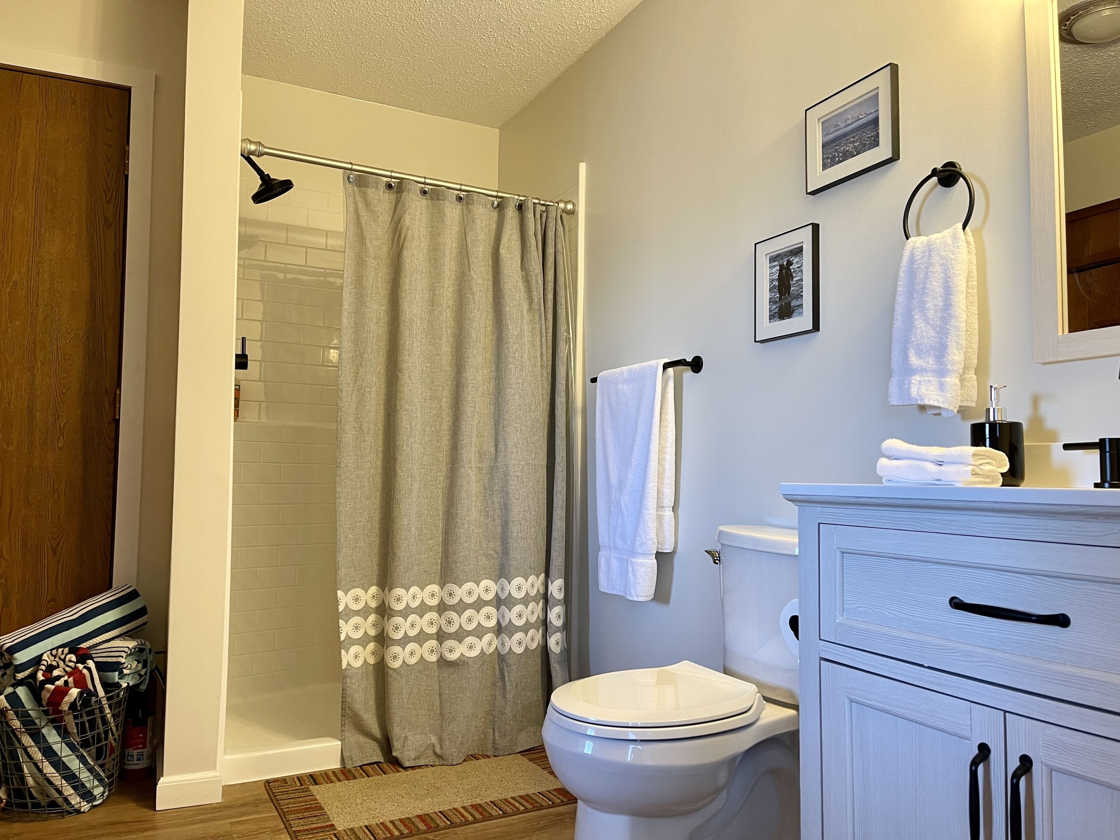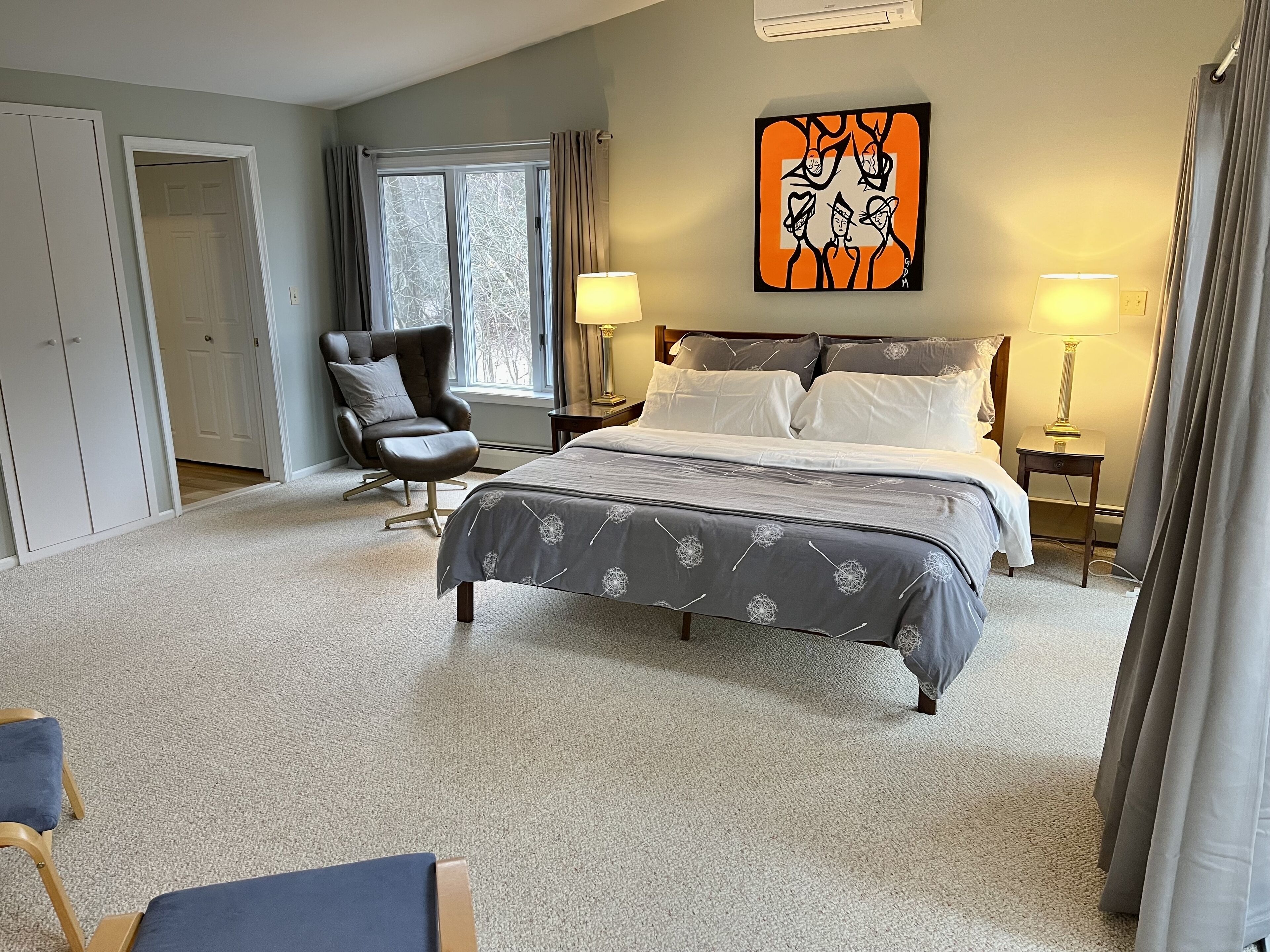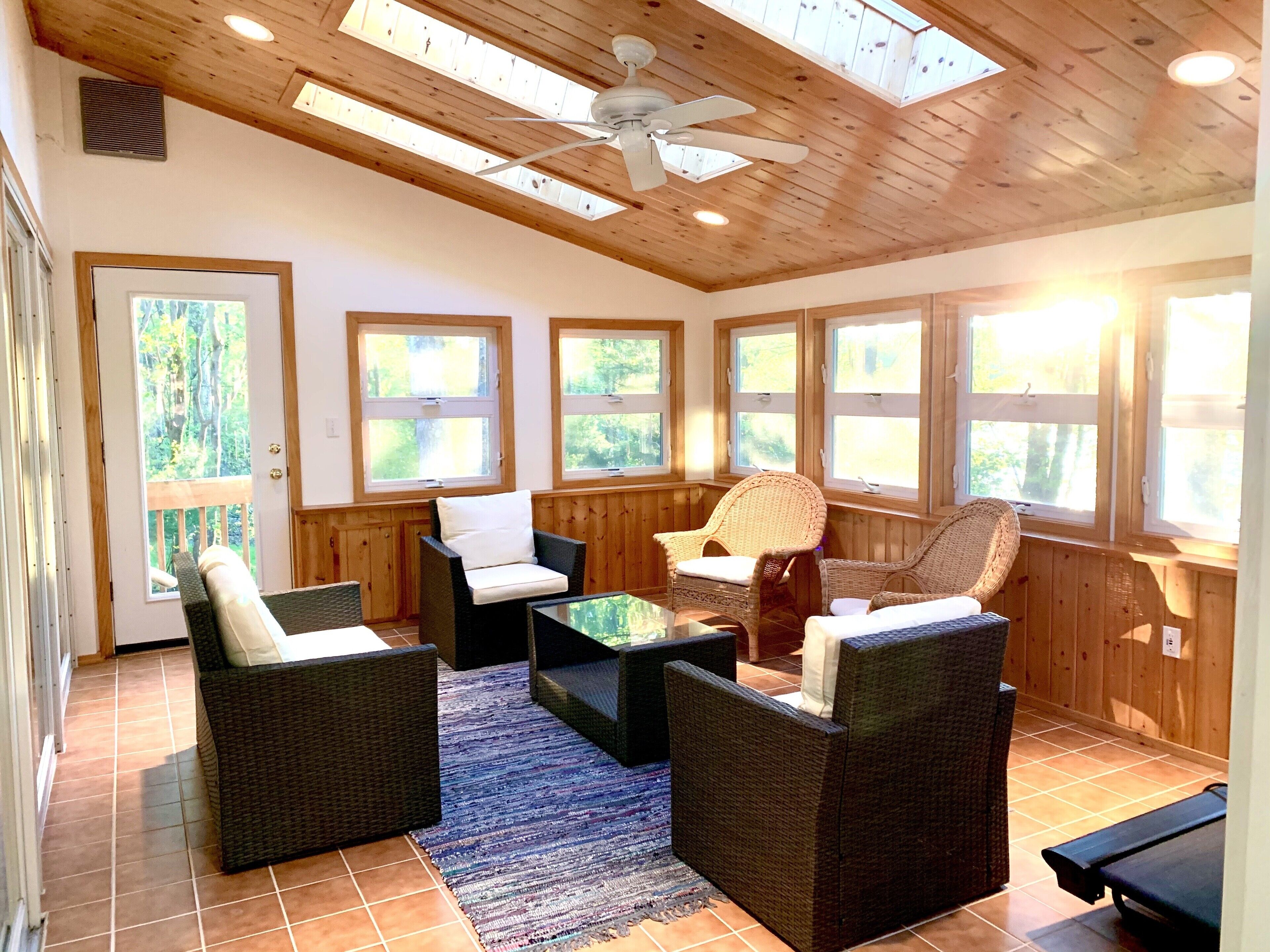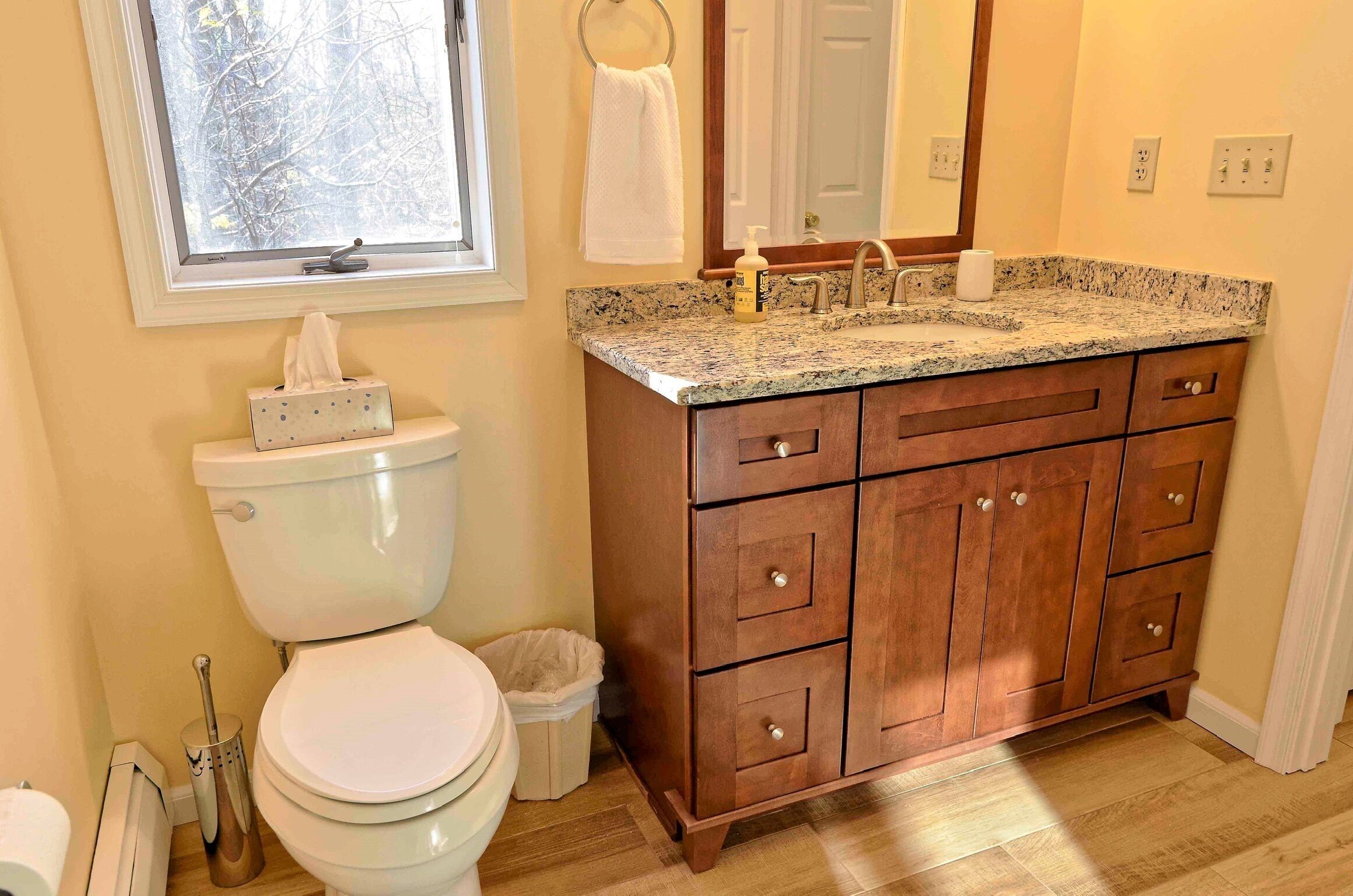 Lake Front in Poconos: Hot Tub / Sauna / Game Room / Kayaks / Private Beach Larsen Lake House- Enjoy your stay in this custom built lakefront home, including 5 comfortable bedrooms and 4 full bathrooms with something for everyone: kayaks, paddle boat, hot tub, sauna, pool table, shuffle board table, ping pong, house-wide Sonos system and large screen Smart TV with Apple TV. Take in extraordinary views from the vaulted living room with floor to ceiling windows overlooking the private dock and beach. Each floor is flooded with light by sky lights and a 2 story glass atrium & waterfall.Located in the premier community of Big Bass Lake, Larsen Lake House is situated on a quiet cul-de-sac with breathtaking views of the lake. The house features an exclusive art collection curated by NYC artist @GDMArt. The game room includes gas fireplace, pool table, shuffle board, wet bar and a room exclusively reserved for family ping pong tournaments. Bedrooms combine luxurious mattresses with non-allergen duvets and pillows for a restful night's sleep. All linens have been chosen with care (for comfort) and are provided for all guests, including beach towels. If you wish to do laundry during your stay, washer, dryer, detergent, iron and ironing board are all included.If you’re looking for an active day, try out our kayaks, paddle board, and pedal boat. If you love to fish, we have a rowboat with electric outboard motor that’s perfect for a leisurely day on the water. If all you want to do is relax, take in the scenery from our private beach steps away from the back door. We even have your morning exercise routine covered – take a morning run on the treadmill overlooking the lake or grab a yoga mat and head out to the dock for your sunrise practice.The spacious kitchen boasts two dishwashers, two full-size ovens, prep sink, loads of counter space and ample pantry. In addition to the the refrigerator in the kitchen, there is an also a full-size refrigerator in the game room wet bar. To learn more about the property contact us or find us on other platforms.