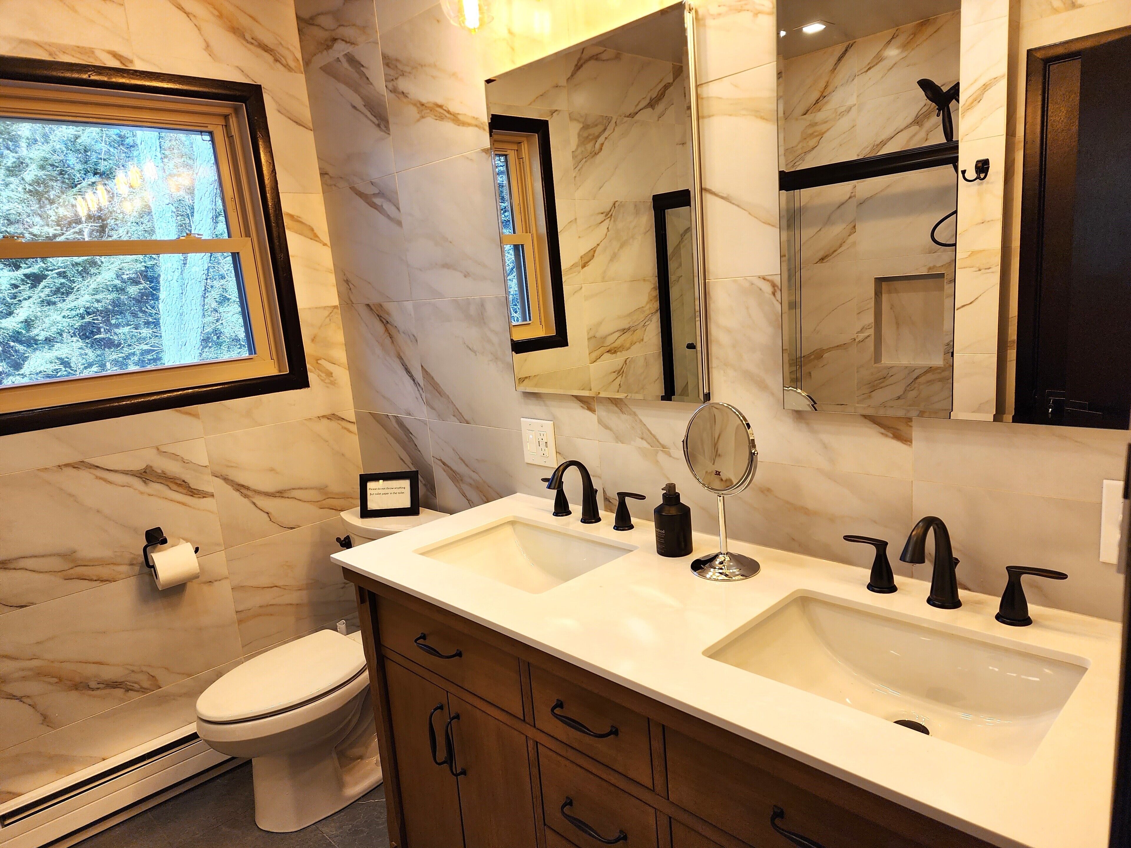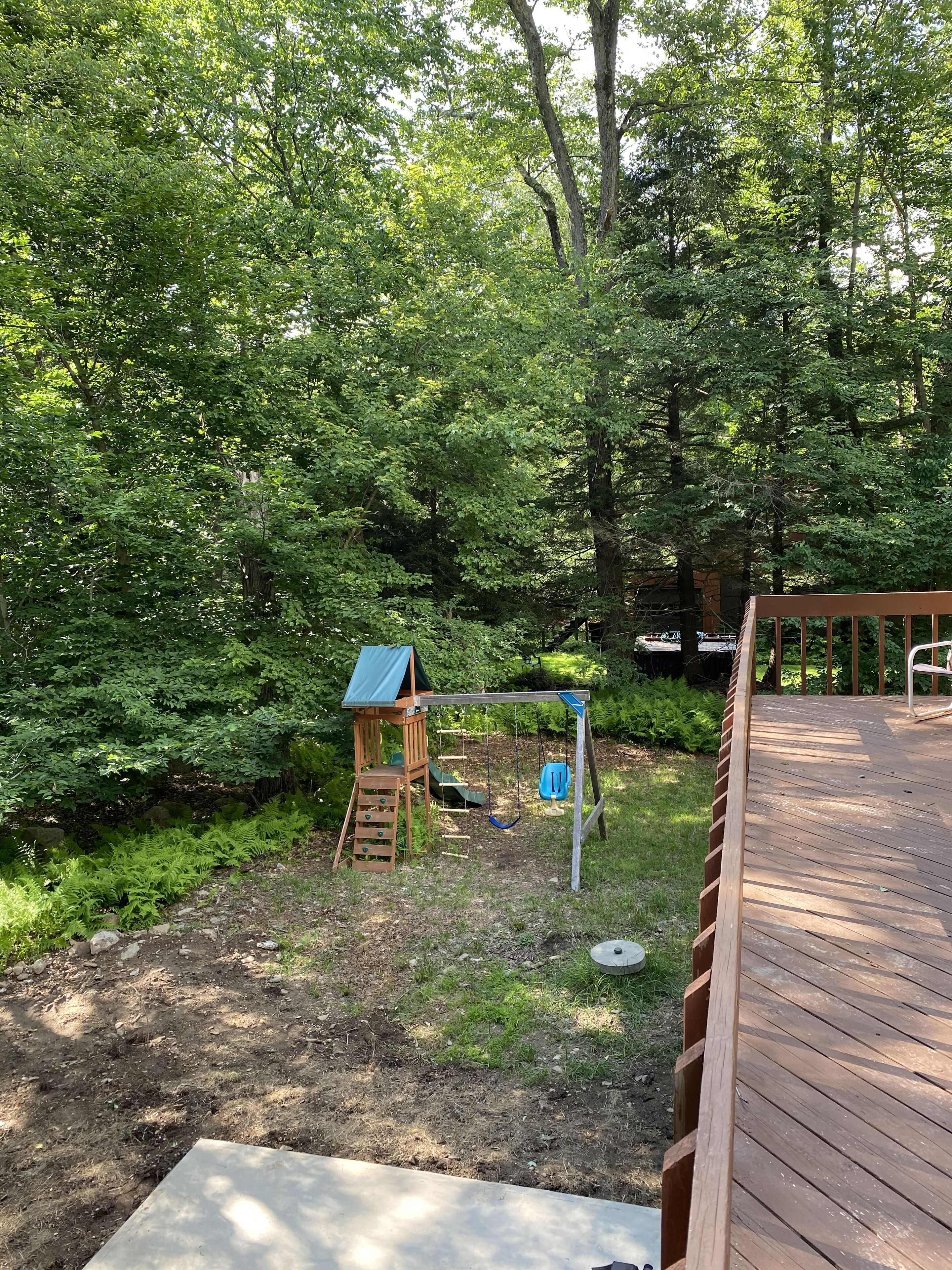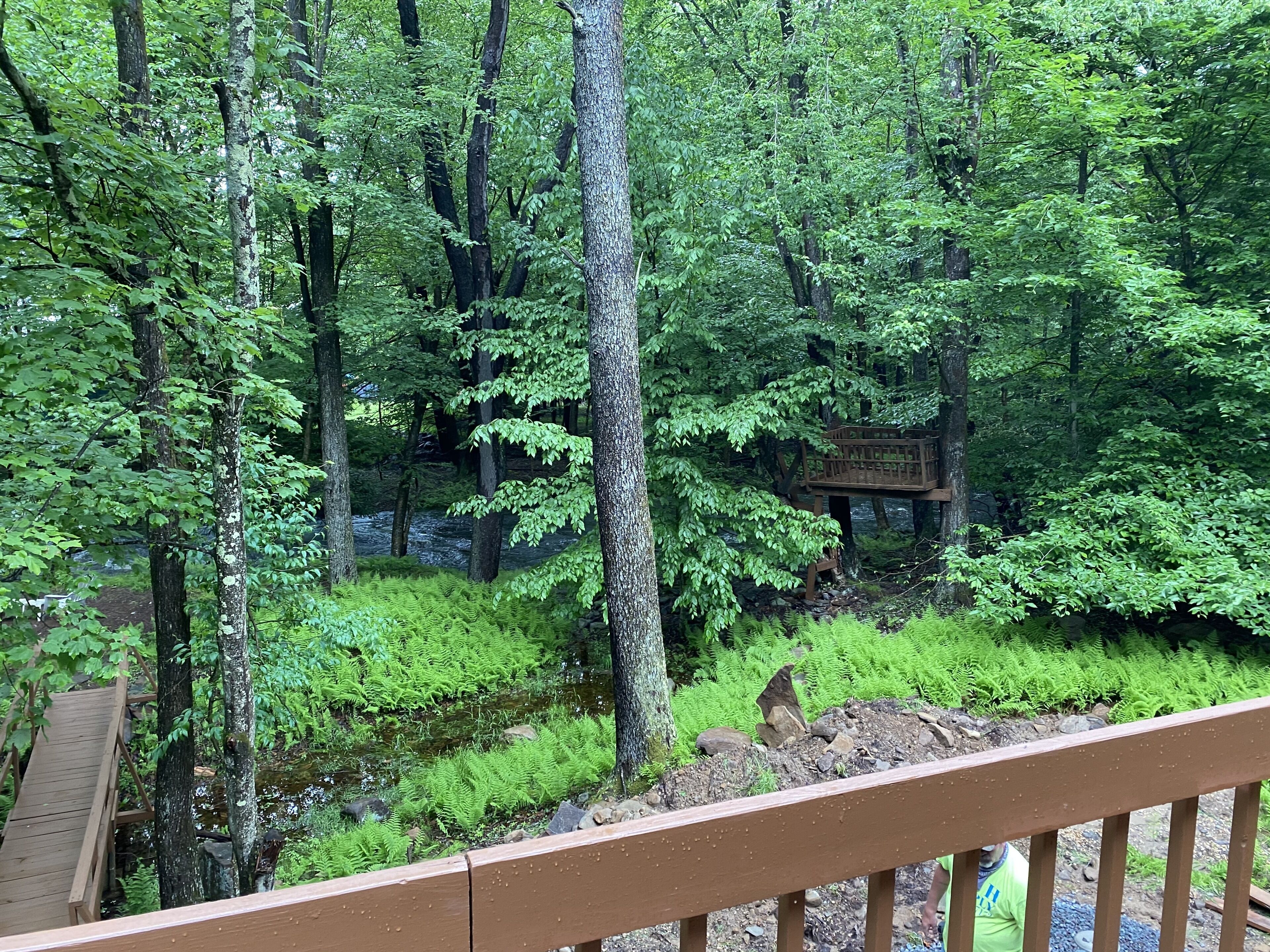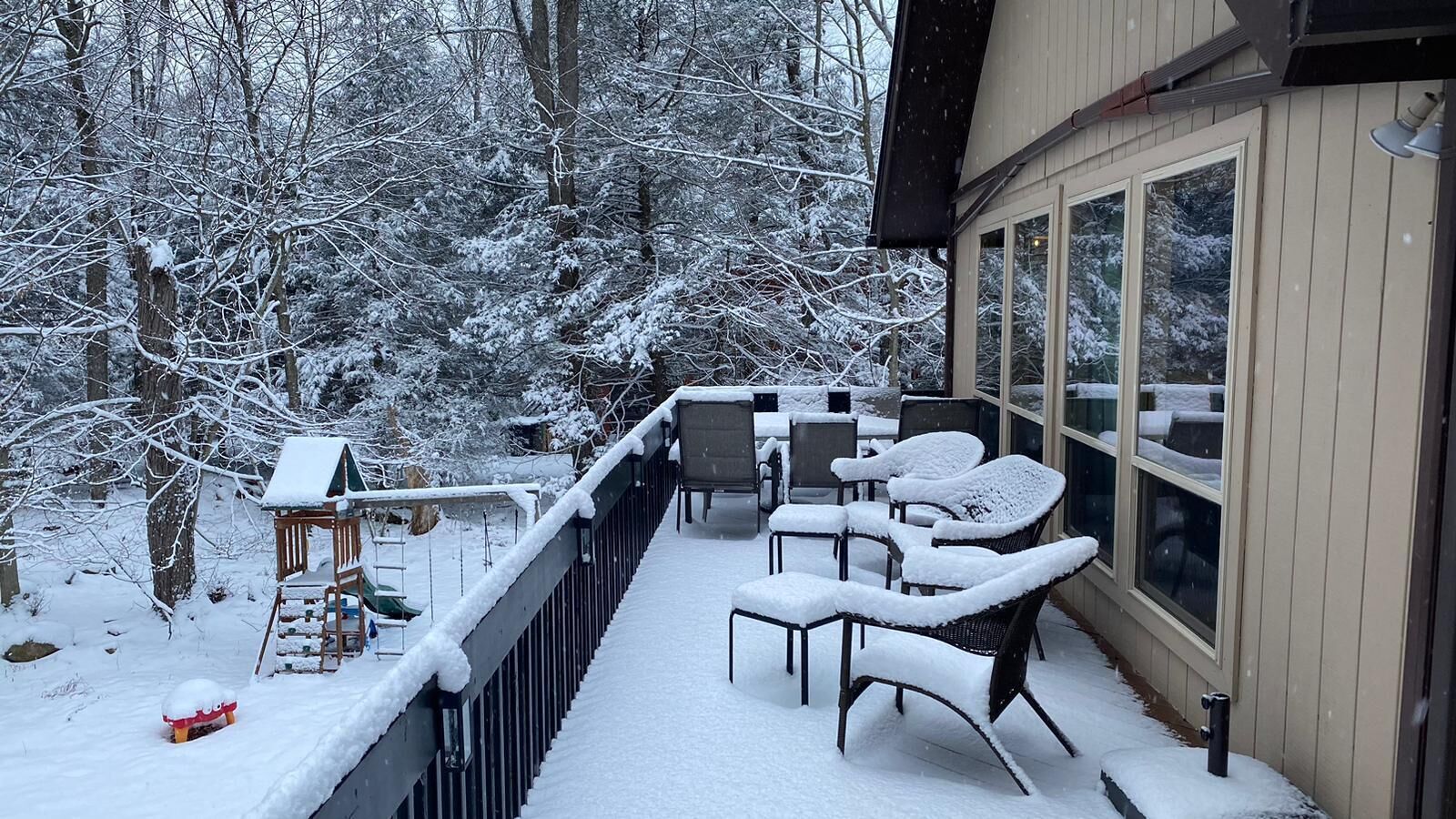 Cozy Chalet with hot tub & Lehigh River in backyard BigBass Lake Pocono Mountain Cozy, spacious and inviting chalet house facing the woods in Pocono PA in Big Bass Lake gated community (2000 sq. ft). Beginning of Lehigh River running through the backyard.While this house can accommodate up to 14 people comfortably, community allows max 12. Includes swing set in the backyard.Located 25 minutes away from Camelback ski and water park, Mount Airy Casino Resort and 15 min from Kalahari Water resorts. Big Boulder and Jack Frost mountains are just 35 minutes away.Screen room with dining table, wood burning fireplace.Bicycles may be provided upon acceptance of the use terms.Please note, that due to Corona virus regulations, community amenities may have additional restrictions. Please also make sure to check PA travel restrictions and requirements before you go.New for VRBO, however we are a Superhost with a lot of rentals and a 5 star feedback at Airbnb.
