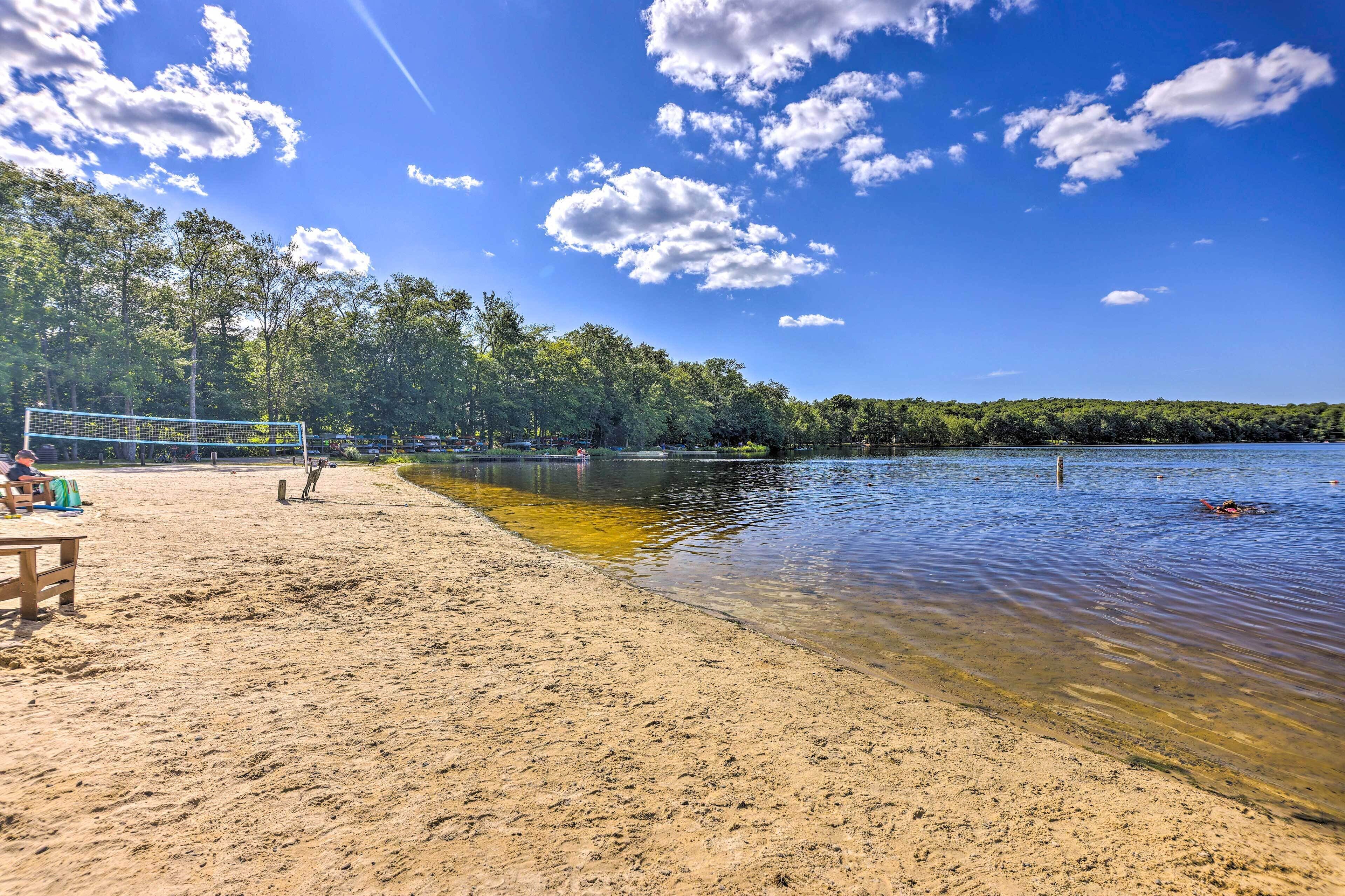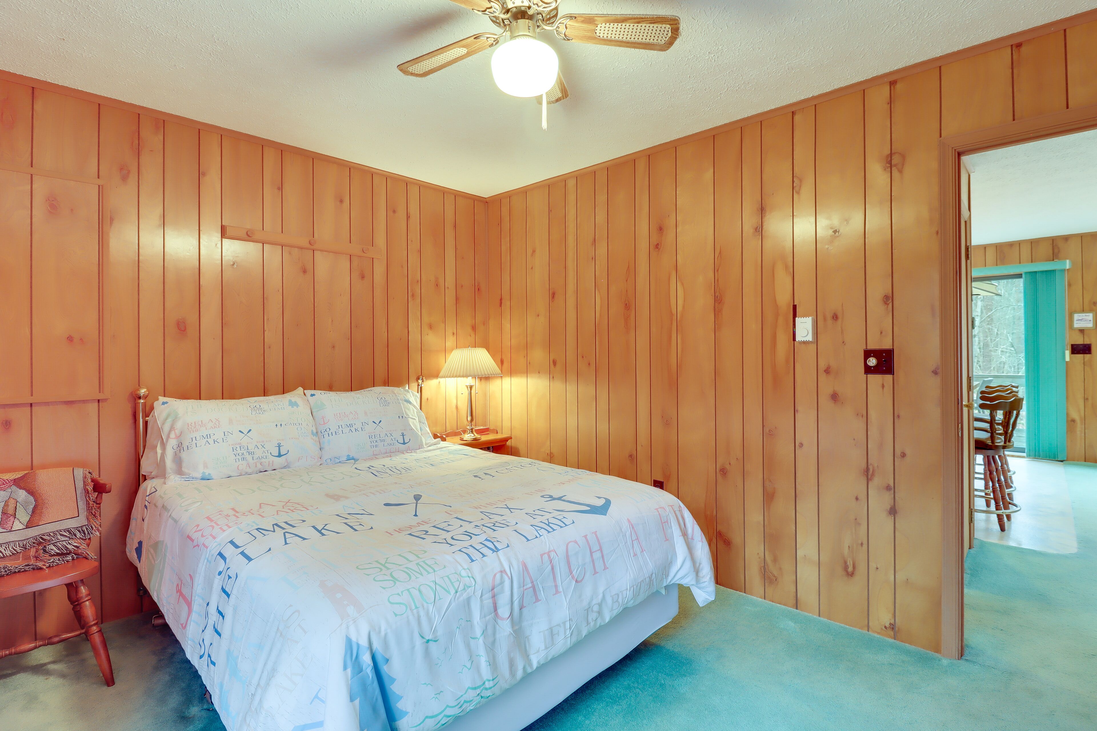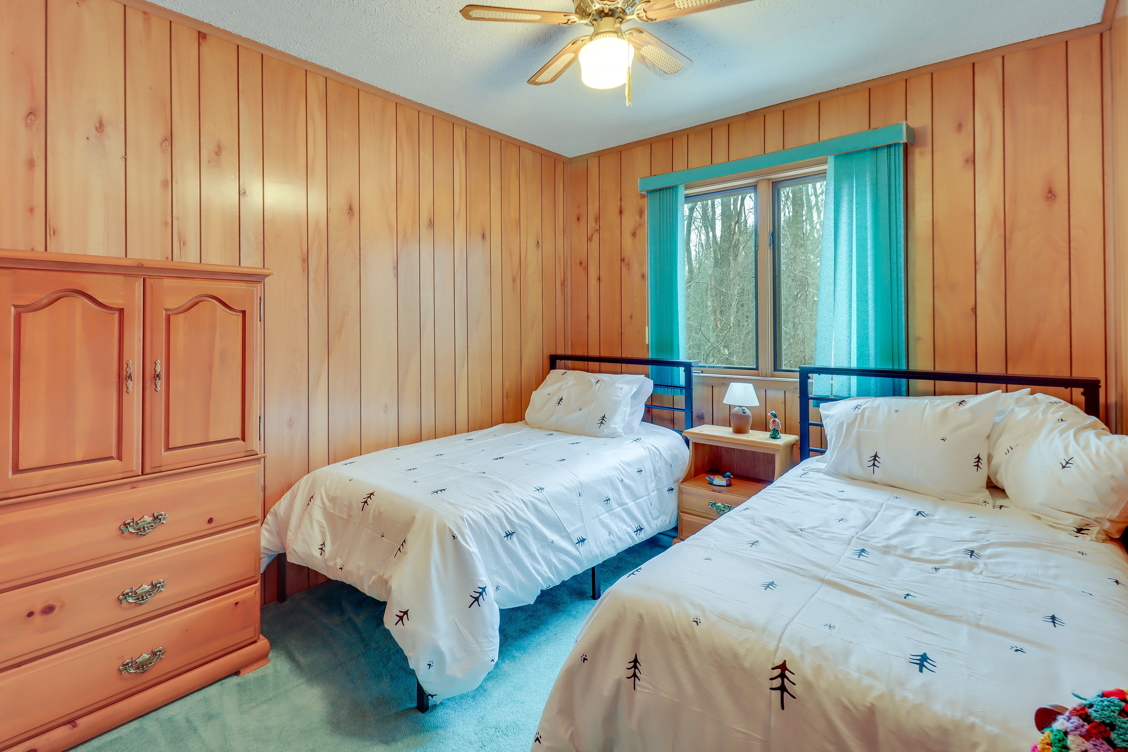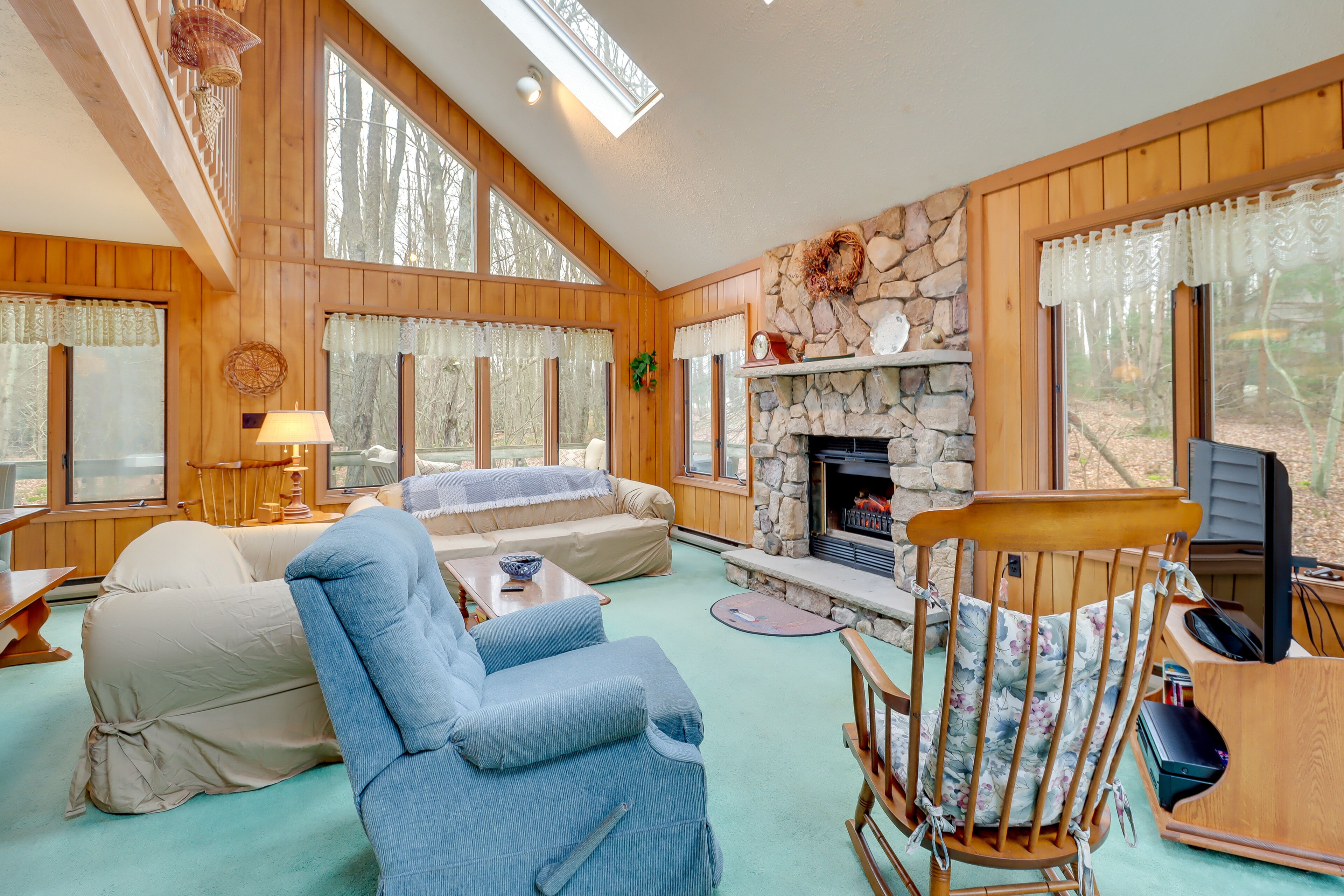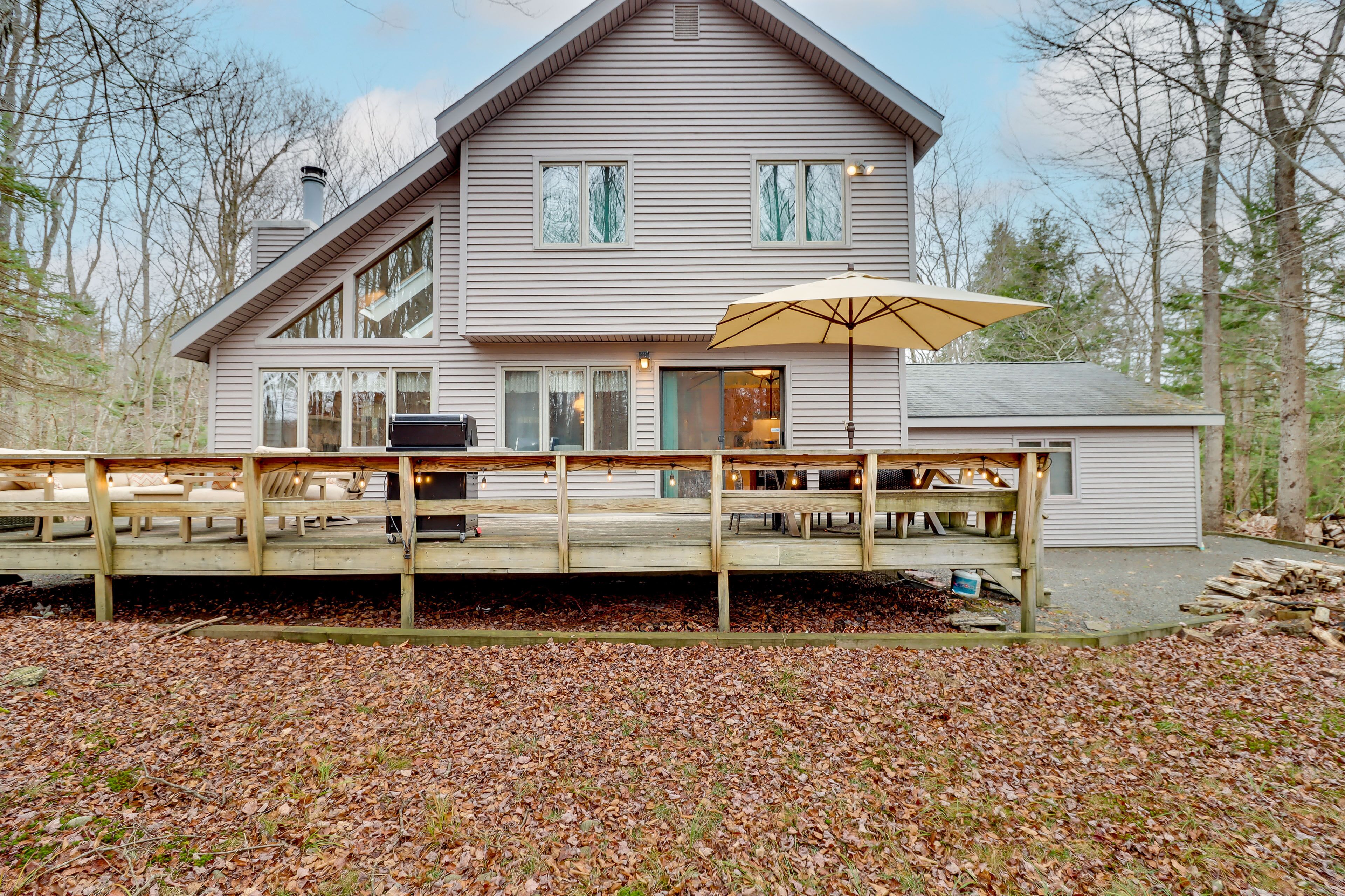 Family-Friendly Home in Big Bass Lake Community! Pack your bags and head to Gouldsboro for an epic adventure! This 3-bedroom, 2-bathroom vacation rental, situated in the family-friendly Big Bass Lake community, offers guests access to beaches, lake activities, and pools. Unwind on the furnished deck, fire up the grill for a cookout, or get cozy indoors for family game night. With watersports, hiking, and more close by in Tobyhanna State Park, this ideally located home is the perfect base for your Gouldsboro getaway.-- THE PROPERTY --2 Public Boat Docks Nearby | ~23 Mi to Camelback Ski Resort | Gated CommunityBedroom 1: Queen Bed | Bedroom 2: Queen Bed | Bedroom 3: 2 Twin Beds | Loft: Full Sleeper SofaBIG BASS LAKE [addt’l fees paid on-site]: Clubhouse, indoor pool, outdoor pool w/ children’s splash pad, tennis courts, basketball court, 2 lakefront beaches w/ kayak + paddleboard rentals, fitness center, playgroundMAIN FEATURES: Furnished deck, gas grill, Smart TV, fireplace (decorative only), board gamesKITCHEN: Dishwasher, stove/oven, refrigerator, coffee maker, cooking basics, dishware + flatware, trash bags + paper towelsGENERAL: Free WiFi, central heating, stackable washer + dryer, linens/towels, ceiling fansFAQ: 2 exterior security cameras (facing out), no A/CACCESSIBILITY: 2-story home, 5 steps to enter, bedroom & bathroom on 1st floorPARKING: Driveway (3 vehicles), parking passes provided-- THE LOCATION --FAMILY FUN: Kalahari Indoor Waterpark (15 miles), Great Wolf Lodge Water Park | Pocono Mountains (17 miles), Camelback Resort (22 miles), Camelback Ski Resort (23 miles), Blue Mountain Resort (47 miles) SCENIC SPOTS: Gouldsboro State Park (1 mile), Tobyhanna State Park (10 miles), Promised Land State Park (18 miles), Big Boulder Mountain (31 miles), Raymondskill Falls (44 miles), Bushkill Falls (45 miles) RETAIL THERAPY: Pocono Premium Outlets (22 miles), The Shoppes at American Candle (25 miles) AIRPORTS: Wilkes-Barre Scranton International Airport (28 miles), Lehigh Valley International Airport (58 miles)-- REST EASY WITH US --Evolve makes it easy to find and book properties you'll never want to leave. You can relax knowing that our properties will always be ready for you and that we'll answer the phone 24/7. Even better, if anything is off about your stay, we'll make it right. You can count on our homes and our people to make you feel welcome — because we know what vacation means to you.-- POLICIES --- No smoking- No pets allowed- No events, parties, or large gatherings- Must be at least 25 years old to book- Additional fees and taxes may apply- Photo ID may be required upon check-in- NOTE: Your safety matters. This property features 2 exterior security cameras: 1 camera is located in the front yard facing out, and 1 camera is in the backyard facing out. The cameras are outward facing and do not look into interior spaces. The cameras record video and sound when activated by motion- NOTE: This 2-story home requires 5 steps to enter and additional steps to access the 2nd-floor bedrooms and loft- NOTE: This home is located in a secure, gated, private community. After booking, you will need to fill out a rental registration form which includes contact and guest information. This information must be completed at least 5 days before your check-in date. The name of each guest must be included on the registration form and match their photo ID. Each guest must bring a photo ID to present upon arrival at the gated entrance. Anyone not listed on the registration form or who does not have a photo ID will not be permitted to pass the security booth and may not enter the Big Bass Lake community. Failure to provide this information in the required timeframe will result in an additional $50 registration fee due on-site- NOTE: If the number of guests changes from what is listed on your registration, you are required to fill out a change form and pay a $15 change fee due on-site- NOTE: To access the community amenities, there is an optional $8/day/person fee ($10 on weekends) that must be paid upon arrival. There is a 2nd option to purchase a weekly pass for $35 ($50 on holiday weeks), which may be picked up at the Big Bass Administration Office. This applies to every guest above the age of 6- NOTE: Please be aware that some community amenities are seasonal and may not be open during your stay- NOTE: The fireplace is decorative only and not for guest use- NOTE: The property has ceiling fans but does not offer air conditioning