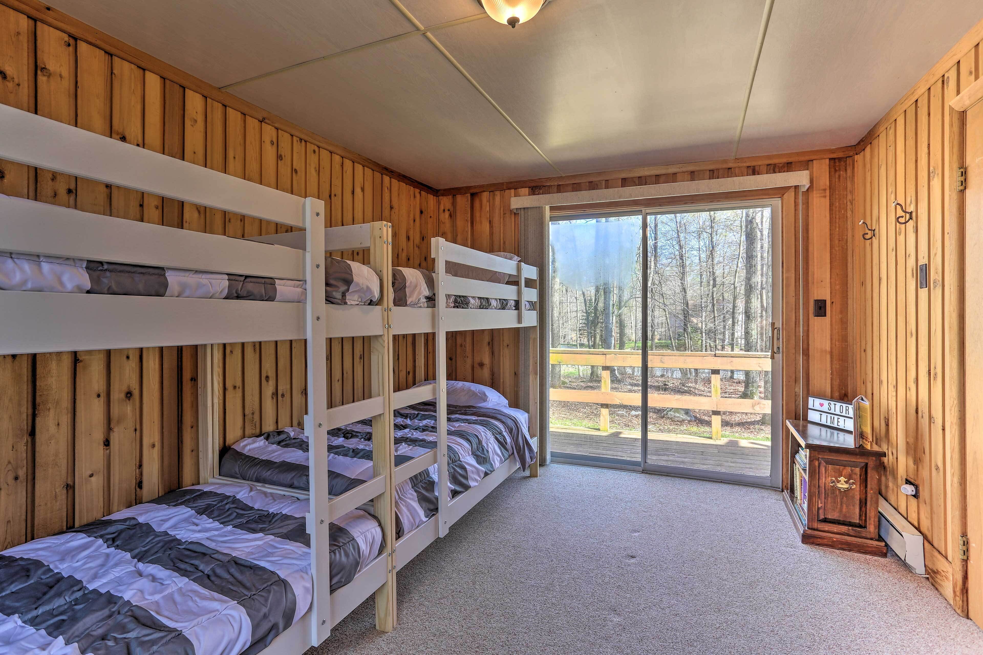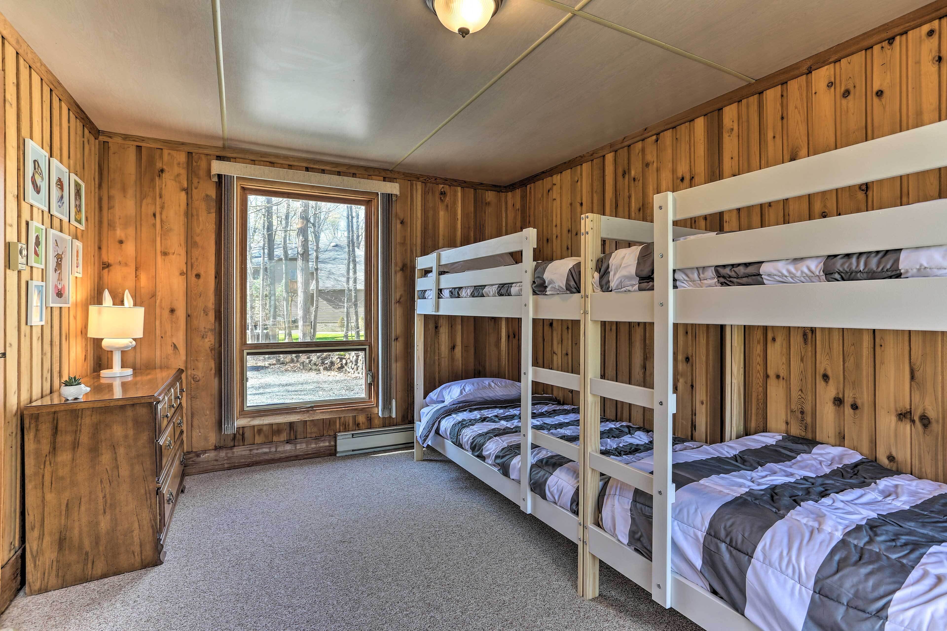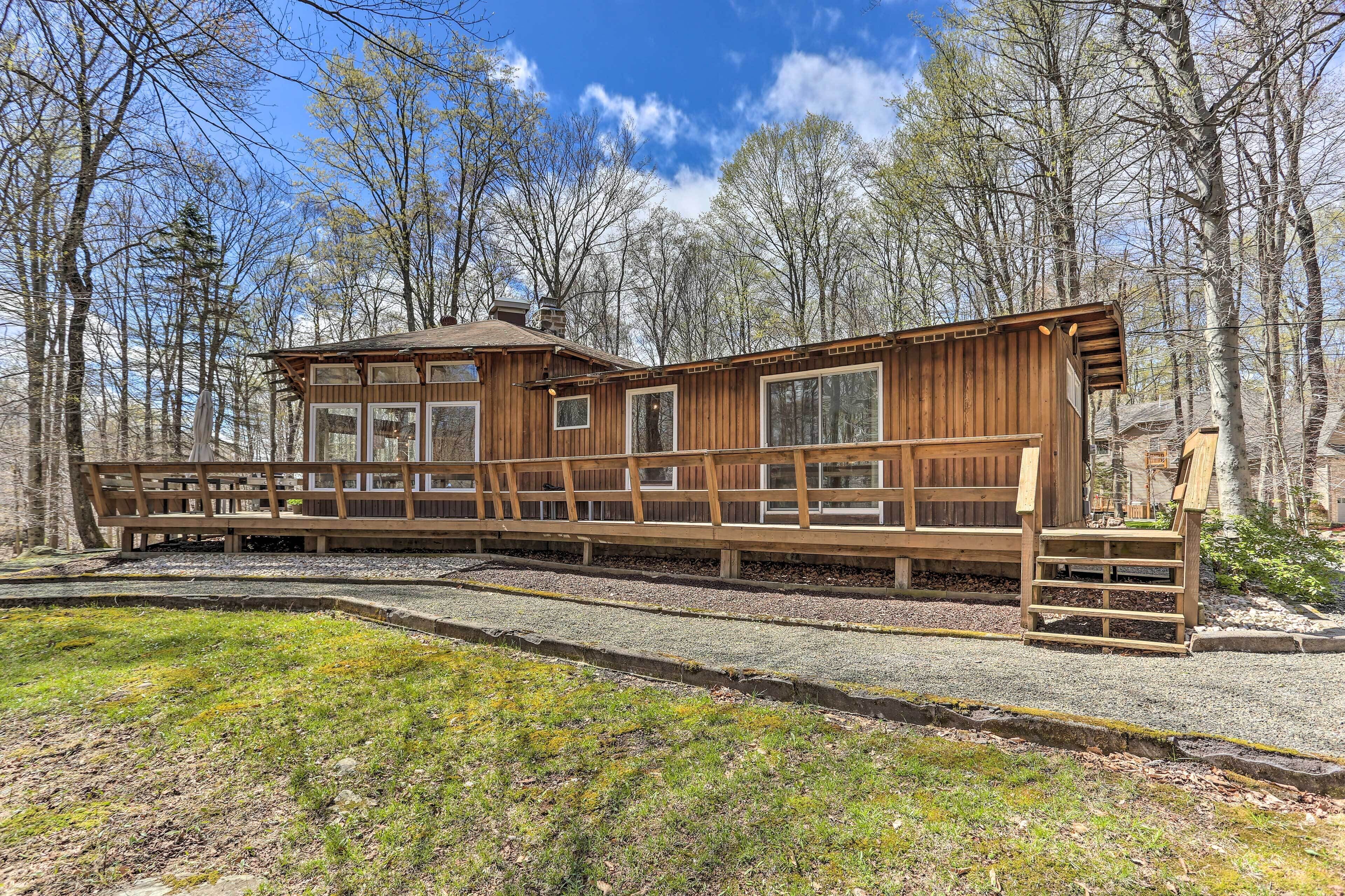Family Home w/ Deck, Walk to Big Bass Lake! Make your next family vacation a trip to remember by visiting Big Bass Lake! Guests of this cabin community can enjoy private access to 2 lakes with beaches, an outdoor pool, tennis courts, and more (additional fee required). When you’re not taking advantage of these action-packed amenities, relax at the Gouldsboro vacation rental complete with 4 bedrooms, 2 baths, a fire pit, and 1-acre yard for kids and pets to explore. With state parks, ski resorts, and water parks nearby, the fun is endless!-- THE PROPERTY --*NOTE: Access to Big Bass Lake, Larsen Lake, and all community amenities require an additional fee, which will be paid on-site*Pet Friendly | Free WiFi | Off-Street ParkingBedroom 1: King Bed | Bedroom 2: Queen Bed | Bedroom 3: Queen Bed | Bedroom 4: 2 Twin Bunk Beds | Additional Sleeping: Queen Air Mattress (Available Upon Request) | Additional Sleeping: Pack 'n PlayCOMMUNITY AMENITIES (additional fee required, paid on-site): Access to beaches on Big Bass Lake and Larsen Lake, clubhouse w/ outdoor pool, tennis courts, basketball courts, playground, gym, recreation center w/ indoor poolINDOOR LIVING: Smart TV w/ streaming apps, wood-burning stove (firewood not provided), piano, guitar, checkers board, laptop-friendly desk, heated closet for ski supplies w/ yard gamesOUTDOOR LIVING: Private 1-acre lot, wraparound deck, gas grill, fire pit, outdoor dining areaKITCHEN: Fully equipped, coffee grinder, standard drip coffee maker, Keurig coffee maker, tea kettle, slow cooker, high chairGENERAL: Gated entry, washer/dryer, iron/board, linens/towels, basic toiletriesFAQ: 2 exterior security cameras (facing out), pet fee (paid pre-trip)PARKING: Driveway (5 vehicles), trailer parking available-- THE LOCATION --LAKES: Big Bass Lake (0.5 miles), Larsen Lake (2.2 miles), Gouldsboro Lake (3.7 miles)OUTDOOR ACTIVITY: Gouldsboro State Park (3.2 miles), Tobyhanna State Park (10.1 miles), Pinchot State Forest (10.8 miles), State Game Lands Number 312 (5.9 miles)WINTER RECREATION: Jack Frost Ski Resort (22.5 miles), Big Boulder Ski Area (31.3 miles), Camelback Mountain Resort (22.6 miles), Blue Mountain Resort (49.2 miles)WATER PARKS: Great Wolf Lodge (23.1 miles), Kalahari Water Park (15.7 miles), Camelbeach Mountain Waterpark (22.6 miles)AIRPORT: Wilkes-Barre/Scranton International Airport (21.8 miles)-- REST EASY WITH US --Evolve makes it easy to find and book properties you'll never want to leave. You can relax knowing that our properties will always be ready for you and that we'll answer the phone 24/7. Even better, if anything is off about your stay, we'll make it right. You can count on our homes and our people to make you feel welcome — because we know what vacation means to you.-- POLICIES --- No smoking - Pet friendly with a $50 fee (+ fees & taxes)- No events, parties, or large gatherings allowed- Must be at least 25 years old to book- Additional fees and taxes may apply- Photo ID may be required upon check-in- NOTE: Access to Big Bass Lake, Larsen Lake, and all community amenities will require additional guest passes, to be purchased on-site upon arrival- NOTE: Your safety matters. This property features 2 exterior security cameras located around the perimeter, all facing outward. They do not look into interior spaces- NOTE: No more than 12 people are allowed at the property at a time (day or night, regardless of age) per HOA restrictions- NOTE: There is no air conditioning in the home, but there is an attic fan available for use