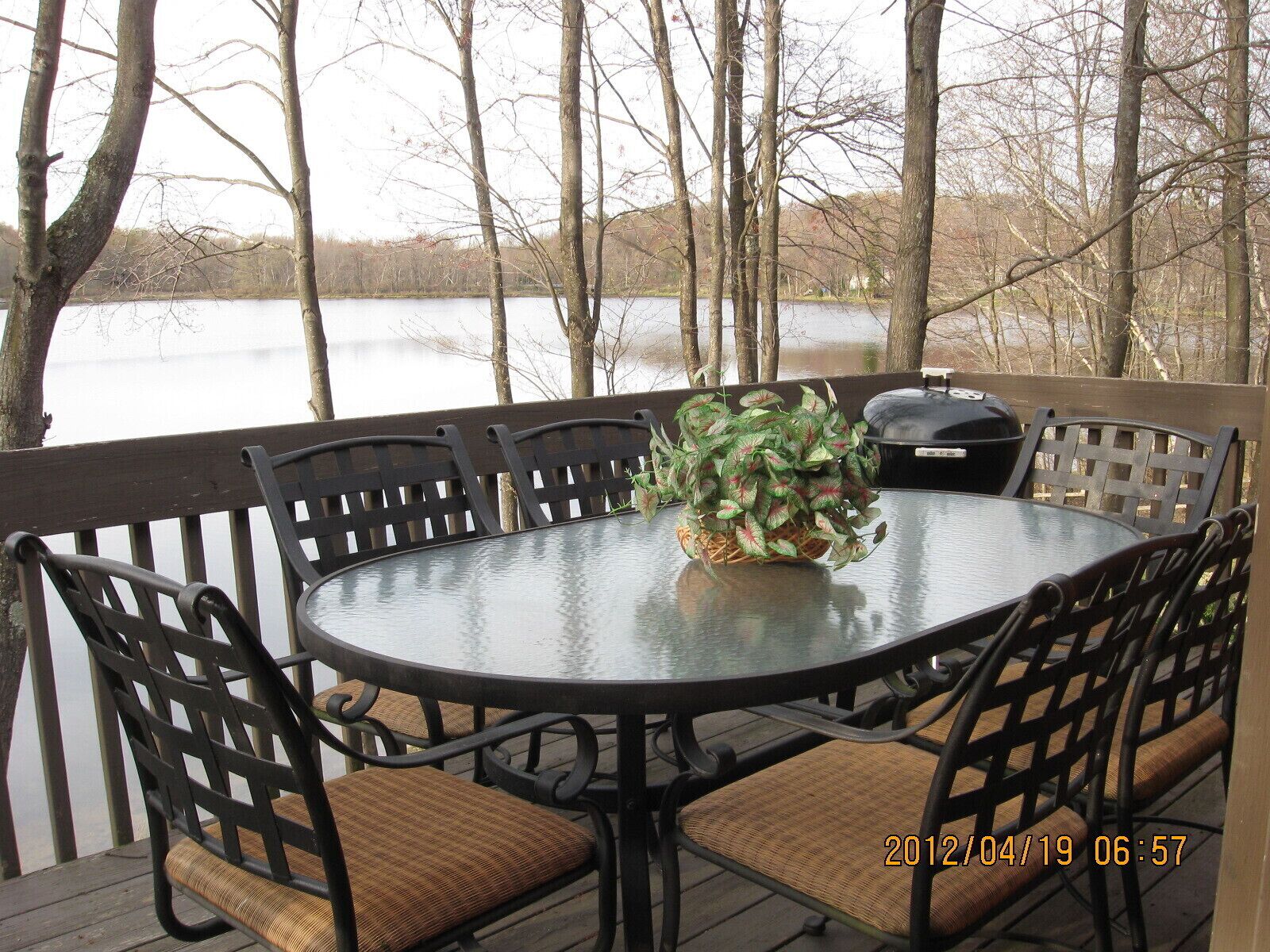 Lakefront Cabin 7 bedroom w/beach Pet Friendly Kayaks Wood Fire Pit LAKEFRONT WITH PRIVATE BEACHNOTE: ANY BOOKING REQUIRES AT LEAST 4 DAYS NOTICE PRIOR TO THE CHECK-IN DATE AS REQUIRED BY THE COMMUNITY IN WHICH THE HOUSE IS LOCATED.A separate linen fee is charged. It's paid only if you use the linen service.A separate pet fee is charged. The fee is charged only if you bring a pet or pets.Impressive 7 bedroom spacious lakefront home 2 full kitchens, 3 full baths, with a 4th bathroom on-suite, family room with VCR, DVD, stereo and flat screen HDTV with premium cable channels. 2 fireplaces. Sun room, 2.5 wooded acres on Lake Natalie in the premier Big Bass Lake Community in the heart of the Pocono's. Community has all amenities: indoor heated pool, outdoor Olympic size pool, tennis and basketball courts, hiking trails, and great golf courses and ski areas near by. Plenty of parking along with great shopping and dining. This house has it all and is a perfect vacation/weekend retreat destination all year around. Wireless internet. The house is about 15 minutes from Kalahari Waterpark, Mt. Airy Casino 12 miles, Camelback Resort, Ski Area and Waterpark 14 miles, Big Bass Lake 1/2 mile, Lake Natalie 150 feet, Montage Ski Resort 13 miles, Gouldsboro State Park 2 miles, Jack Frost Ski Area 13 miles, Jack Frost Resort 12 Miles,Pocono Raceway 12 miles, Wood Winery 7 miles, Lake Watawga 1 mile, Split Rock Water Park 14 miles, Arrowhead Lake 8 miles, Pocono Manor Golf 10 miles, Lake Naomi, 9 miles, Lake Wallenpaupak 16 miles, Aquatopia 14 miles, Big Boulder Ski Resort 15 miles, University of Scranton 15 miles, Pincrest Lake 10 miles, The Crossing Premium Outlet Shopping 13 miles, Claws and Paws Wild Animal Park 13 miles, Camelback Mountain Wild Adventures 15 miles - laser tag, rock climb, ziplines, waterpark. Promised Land State Park 20 miles - Hiking, pedal boating, kayaking. 84 Country Store 10 miles. Nay Aug Park 14 miles. Lahey Fun Park 28 miles - mini golf, go-cart, arcade. Summit Lane Bowling 25 miles - bowling, arcade. Skytop Lodge 35 miles - paintball, archery. Gouldsboro State Park 1 mile. Tobyhanna State Park 16 miles - swimming, fishing, boat rental. Kalahari Waterpark 25 miles.LINEN FEE and PET FEE are charged if applicableA MAXIMUM OF TWELVE (12) RENTERS AND GUESTS ARE PERMITTED.PETS ARE PERMITTED. A NON-REFUNDABLE PET FEE APPLIES.RENTED BY THE WEEK ONLY DURING THE SUMMER SEASON. OTHER TIMES A MINIMUM OF ONE NIGHT'S STAY IS REQUIRED UNLESS SPECIFIED BY THE OWNER.RATES QUOTED ARE FOR REGULAR SEASON MIDDAY AND WEEKEND RATES. RATES FOR HOLIDAY WEEKENDS AND HIGH SEASON SUCH AS SUMMER AND SKI SEASON WILL BE HIGHER. PLEASE CONTACT OWNER FOR AN EXACT QUOTE.Breathtaking lake views can be seen from the front of the house, both upper and lower levels. A separate utility room can accommodate skis, boots, life jackets, etc., for almost all of your favorite sporting activities. The house is perfect for multi-family vacationing.FIREWOOD IS NOT PROVIDED.Charcoal grill. CHARCOAL NOT PROVIDED.Use of these facilities requires a badge per person purchased through the Big Bass Lake Community Association. There is a fee for each badge. Shopping and restaurants are within minutes from the house.MUST BE AT LEAST 21 TO ENTER INTO AN AGREEMENTA MAXIMUM OF TWELVE (12) RENTERS AND GUESTS IS PERMITTED.. THIS INCLUDES CHILDREN OF ALL AGES.