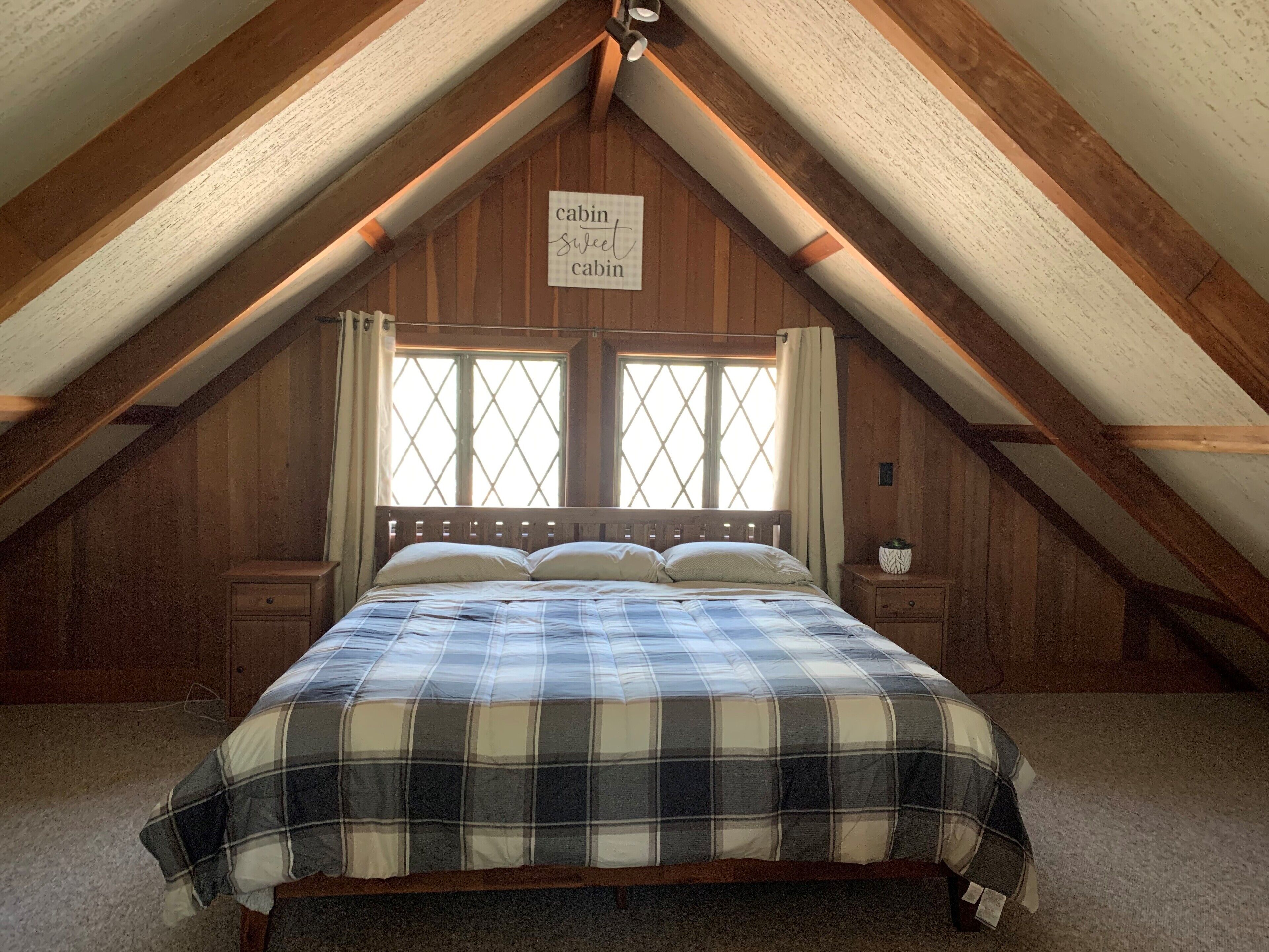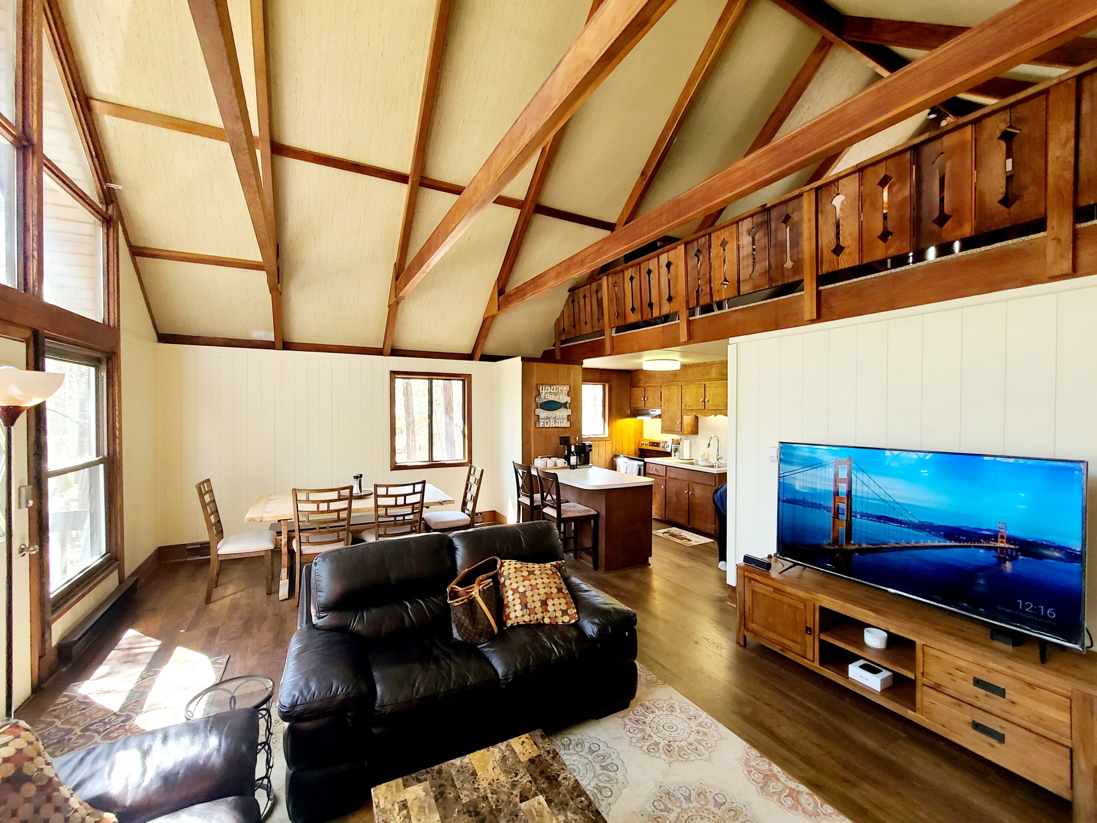 Cozy Cabin - Renovated 2021 - Big Bass Lake Charming and inviting chalet style house set far off the road in the gated community of Big Bass Lake. This house features 2 bedrooms plus a large loft with a King-sized bed. Bathrooms and flooring are brand new.Enjoy our spacious deck that runs the width of the home for morning coffee, afternoon relaxation, or a glass of wine at the end of the day. The...