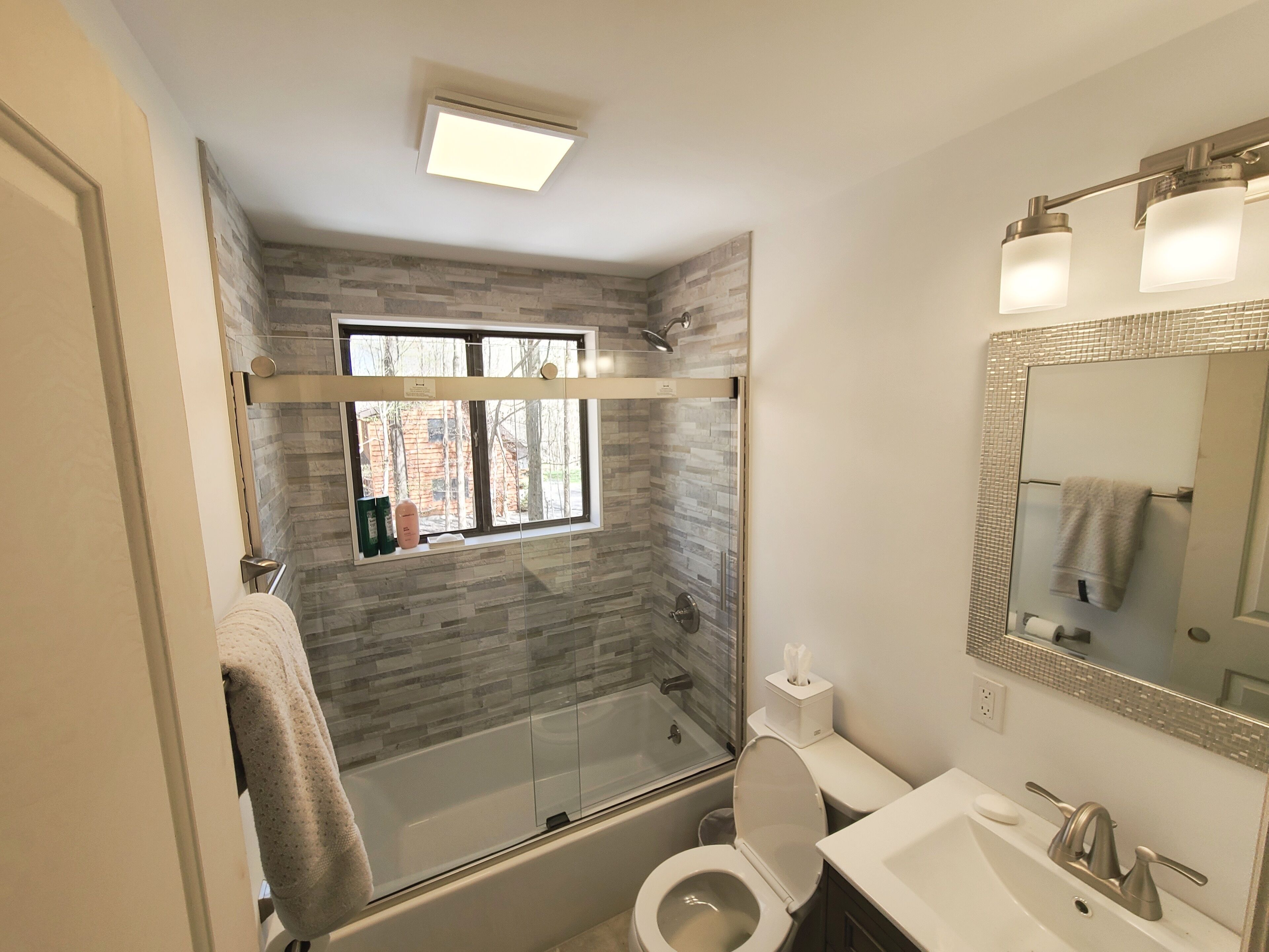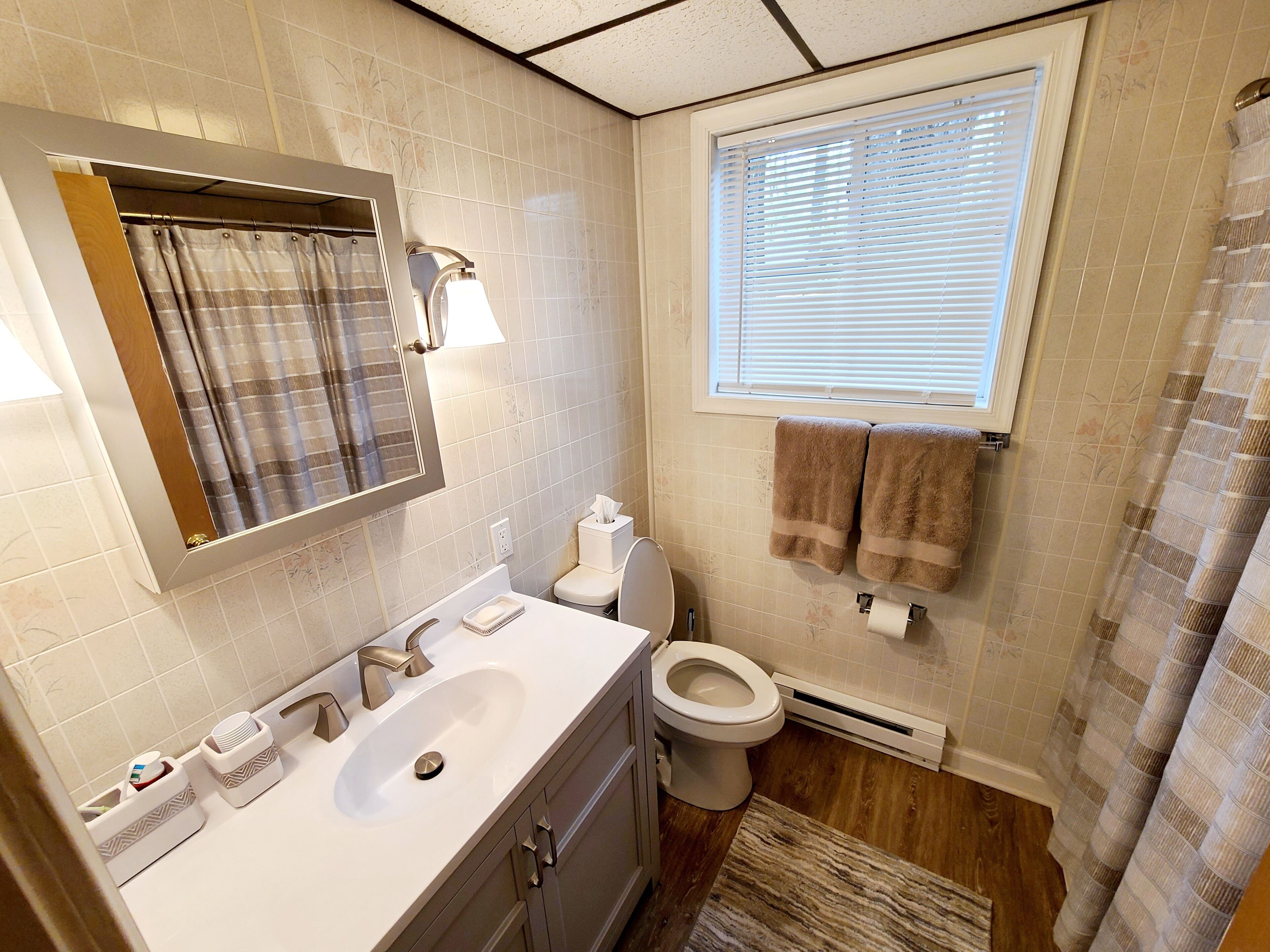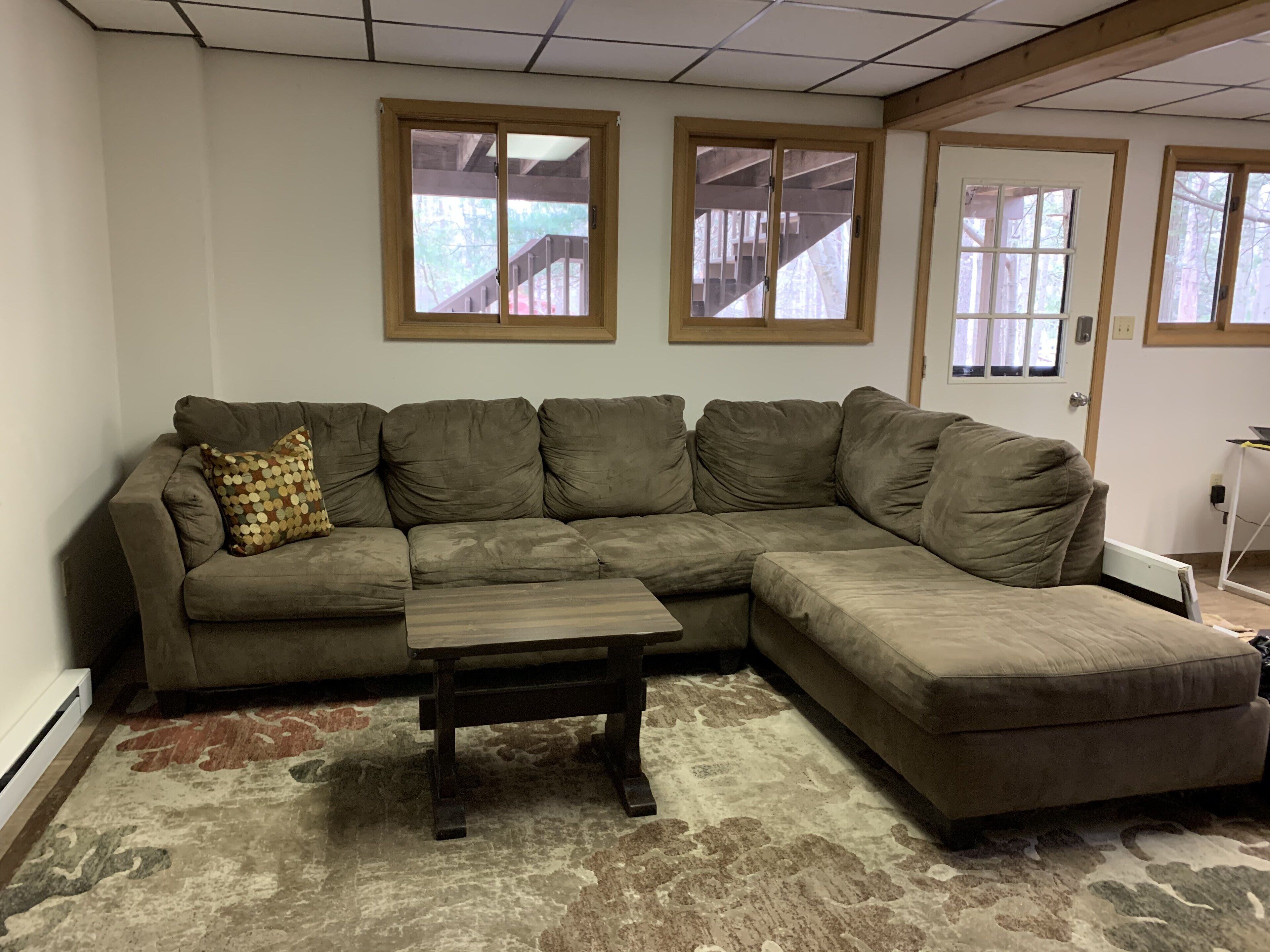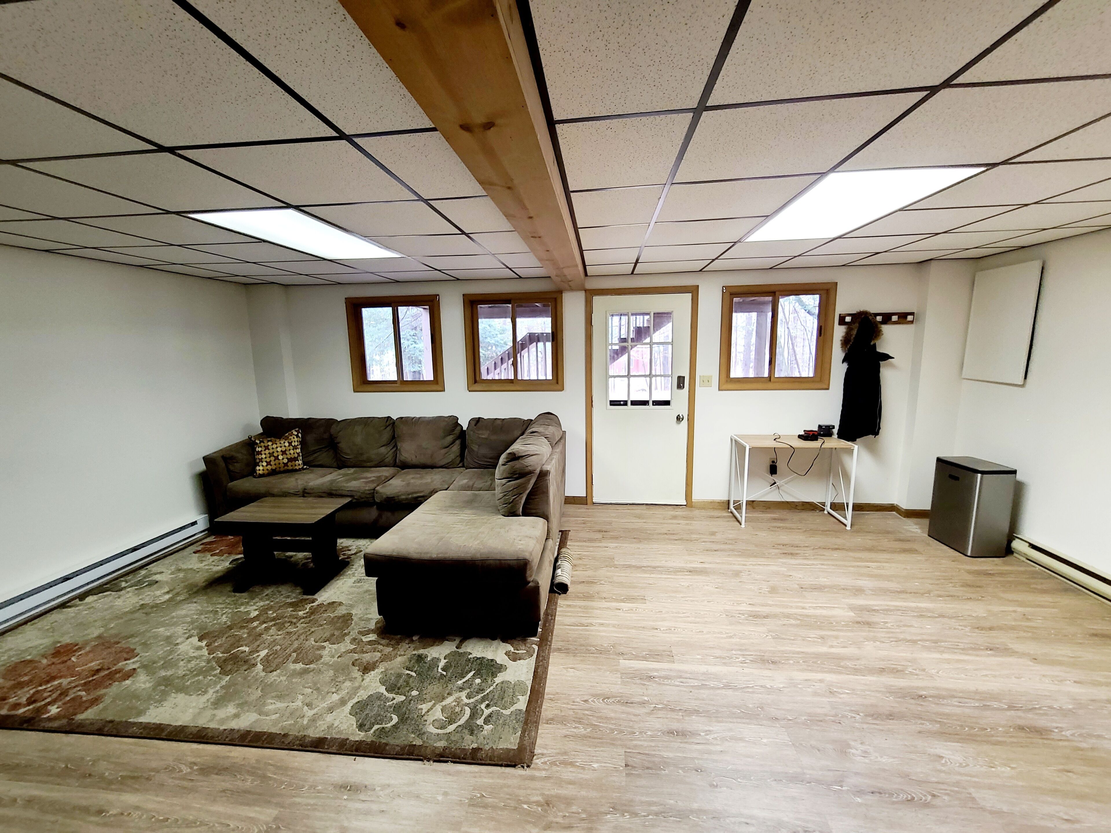Cozy Cabin - Renovated 2021 - Big Bass Lake Charming and inviting chalet style house set far off the road in the gated community of Big Bass Lake. This house features 2 bedrooms plus a large loft with a King-sized bed. Bathrooms and flooring are brand new.Enjoy our spacious deck that runs the width of the home for morning coffee, afternoon relaxation, or a glass of wine at the end of the day. The Kitchen is equipped with all of your favorite essentials to entertain or prepare a home cooked meal. Chalet has access to community amenities such as 2 beaches, indoor and outdoor pools, tennis courts, basketball courts and boat rentals. Camelback Resort and Kalahari Resort are only 25 and 15 minutes away, respectively. Gouldsboro State Park is within 2 miles with over 2,800 acres and countless hiking trails. After a day of exploring, return home to unwind in front of the stone fireplace and large Smart TV. There is a second living room downstairs with couches and a Smart TV to enjoy as well. With activities available in all seasons, your stay at our home will be one for the books!The RoomsBedroom 1: Queen BedBedroom 2: Bunk Beds (Full Bottom) + Trundle BedBedroom 3 (Loft): King Bed Things to note: - Linens will not be provided, but we would be happy to organize Pocono Linen Rental if you wish which delivers right to your door day of arrival for a charge of $55- Bath towels will be available -In order to use Big Bass Lake Community amenities, there is a $6 fee per person per day that you will pay at the administration office, clubhouse or recreation center. Children under 7 are free with a paying adult. -Rental requires a completed application for Big Bass Lake detailing all guests for access through gated security.