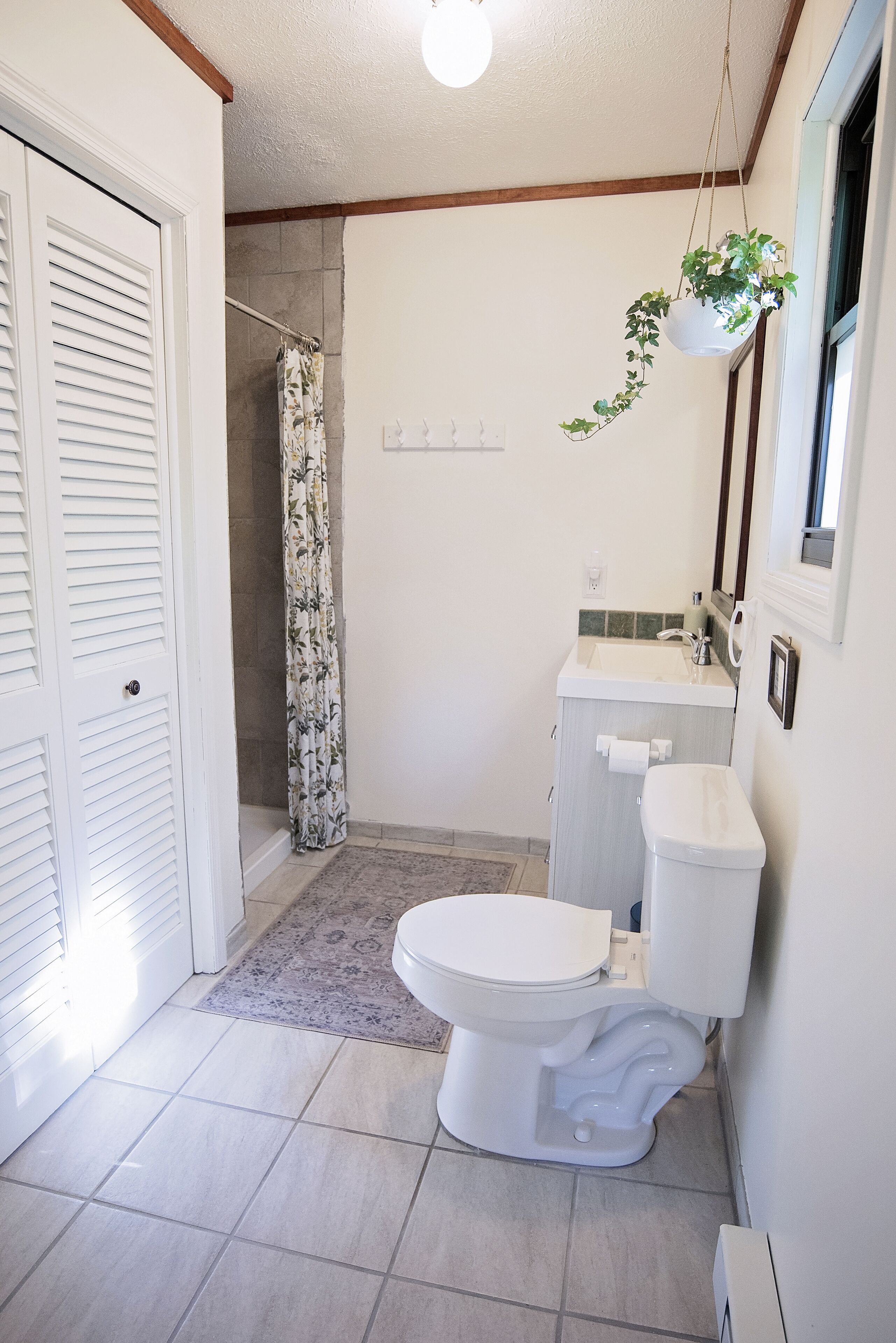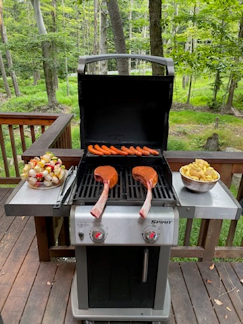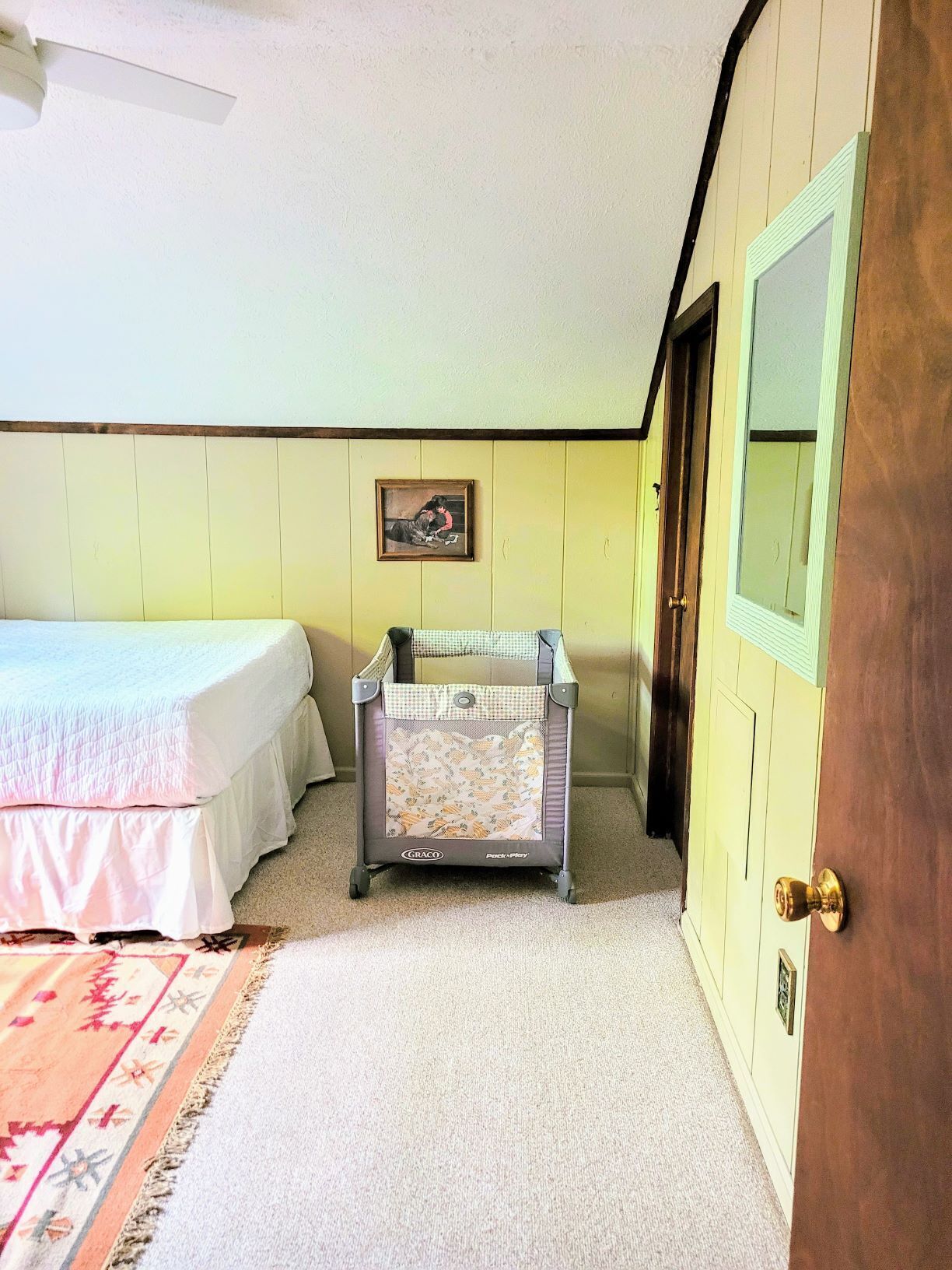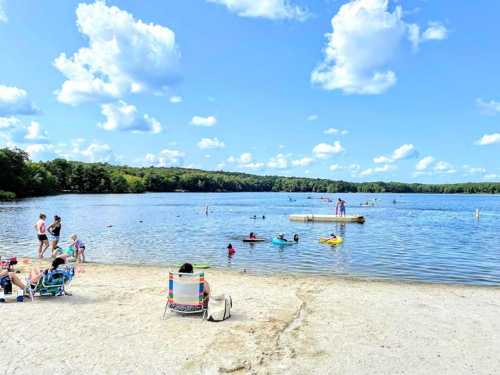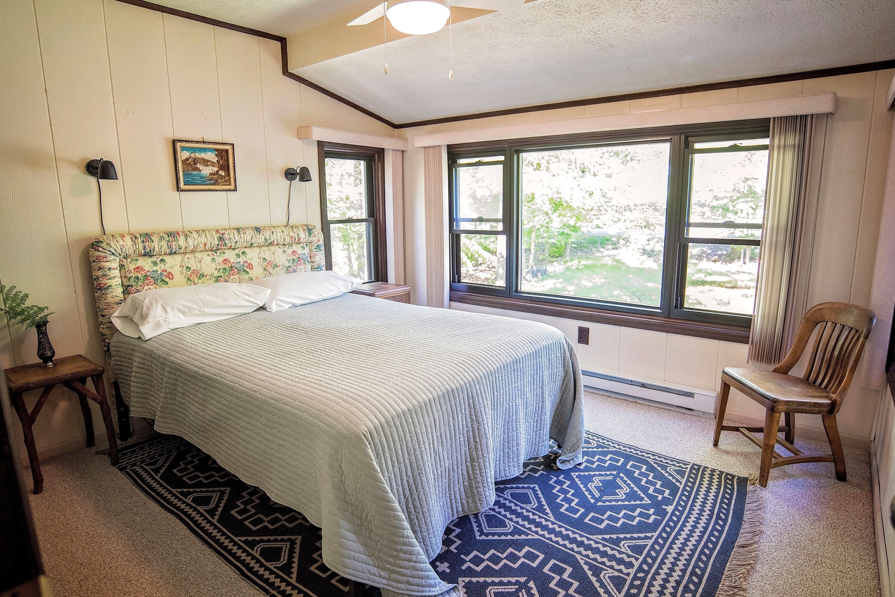 Bohemian Cabin in the Woods by the Lake Nestled among tall trees and wild flowers, in the family-friendly, gated Poconos resort community of Big Bass Lake, sits our Bohemian cabin. The Community: Our cabin is steps away from the heated outdoor pool, splash pad, tennis courts, basketball courts, playground, and a great restaurant/grill. The Clubhouse includes billiards, shuffleboard, and table tennis. Our cabin is a short walk from Big Bass Lake, a clean swimming and boating/fishing lake, the largest of our community's 3 lakes. It includes bbq grills and playground right on the guarded beach. Larsen Lake is also nearby and offers a playground, tennis courts, and a basketball court. by the beach. Family-friendly events, activities, and live music all summer long make it so that it's difficult to leave the community. Our Community also boasts a large baseball/soccer field, bocce courts, and frisbee golf. In winter, a 5 min. drive to our Recreation Center offers an indoor pool and sauna, along with tubing hills. The Cabin: Beautifully appointed cabin, filled with light and original art, features an expansive deck and a built-in firepit. Our house is family friendly, equipped with scooters, a tricycle, beach toys, basketball, and a game cabinet with games for young and old. We have a high chair and a Pack N' Play for your little one. Our kitchen is fully stocked with cooking supplies and new appliances, across from a long kitchen table and counter seating. On the deck is a Weber grill and sturdy modern patio furniture. From the deck you'll see every form of wildlife in the Poconos (except fish-you'll have to walk to the lake for that). Soft cotton linens give our cabin a touch of luxury and strong internet and WiFi make it perfect for movie nights and remote working. In winter, our fireplace is easy to turn on and will keep you cozy, while it snows and snows and snows....