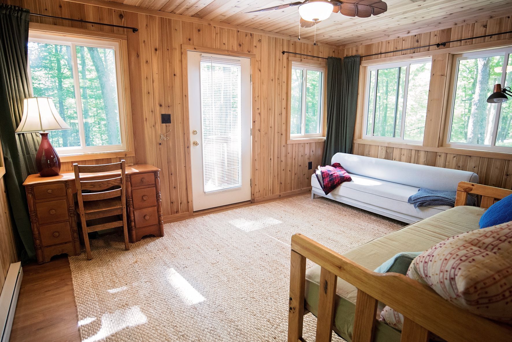 Bohemian Cabin in the Woods by the Lake Nestled among tall trees and wild flowers, in the family-friendly, gated Poconos resort community of Big Bass Lake, sits our Bohemian cabin. The Community: Our cabin is steps away from the heated outdoor pool, splash pad, tennis courts, basketball courts, playground, and a great restaurant/grill. The Clubhouse includes billiards, shuffleboard, and ta...