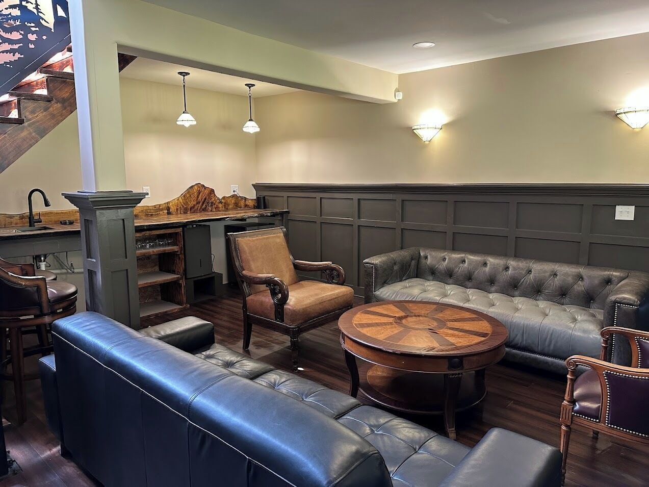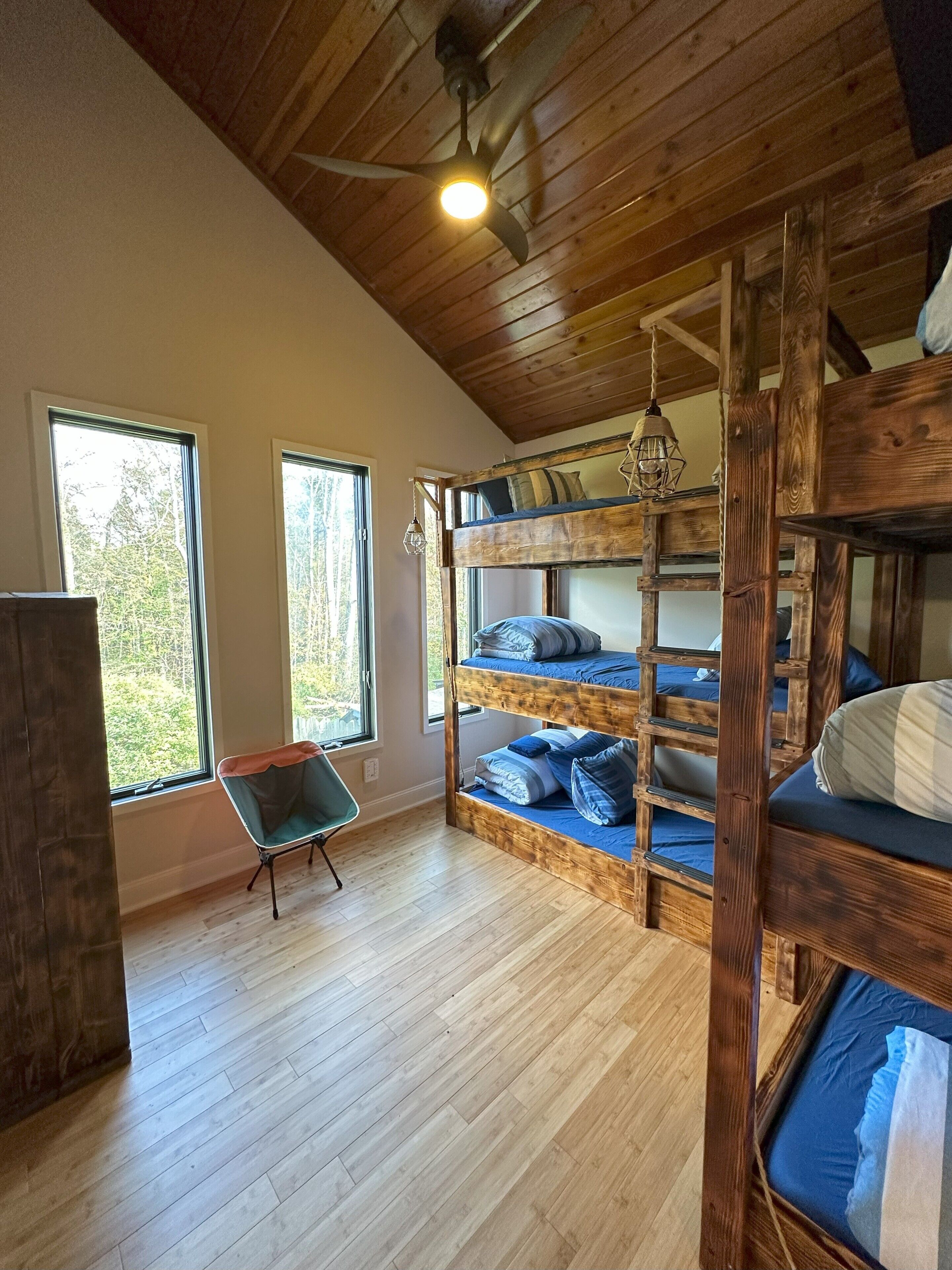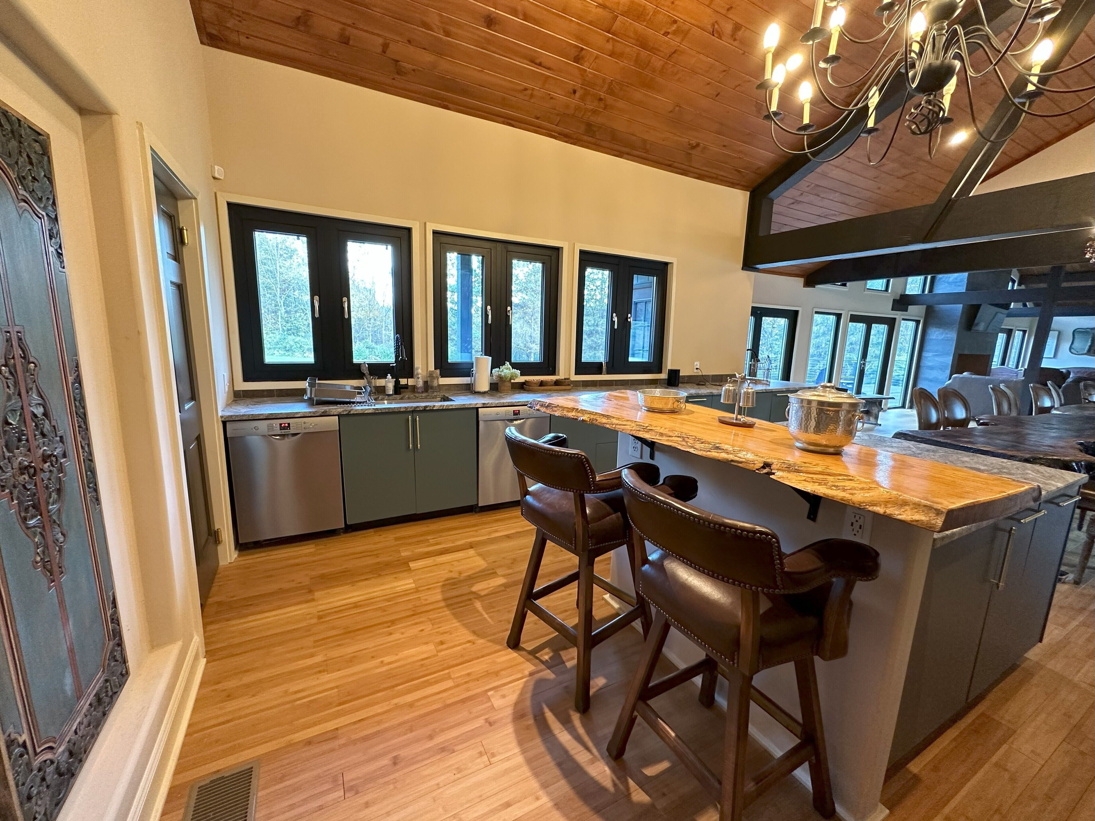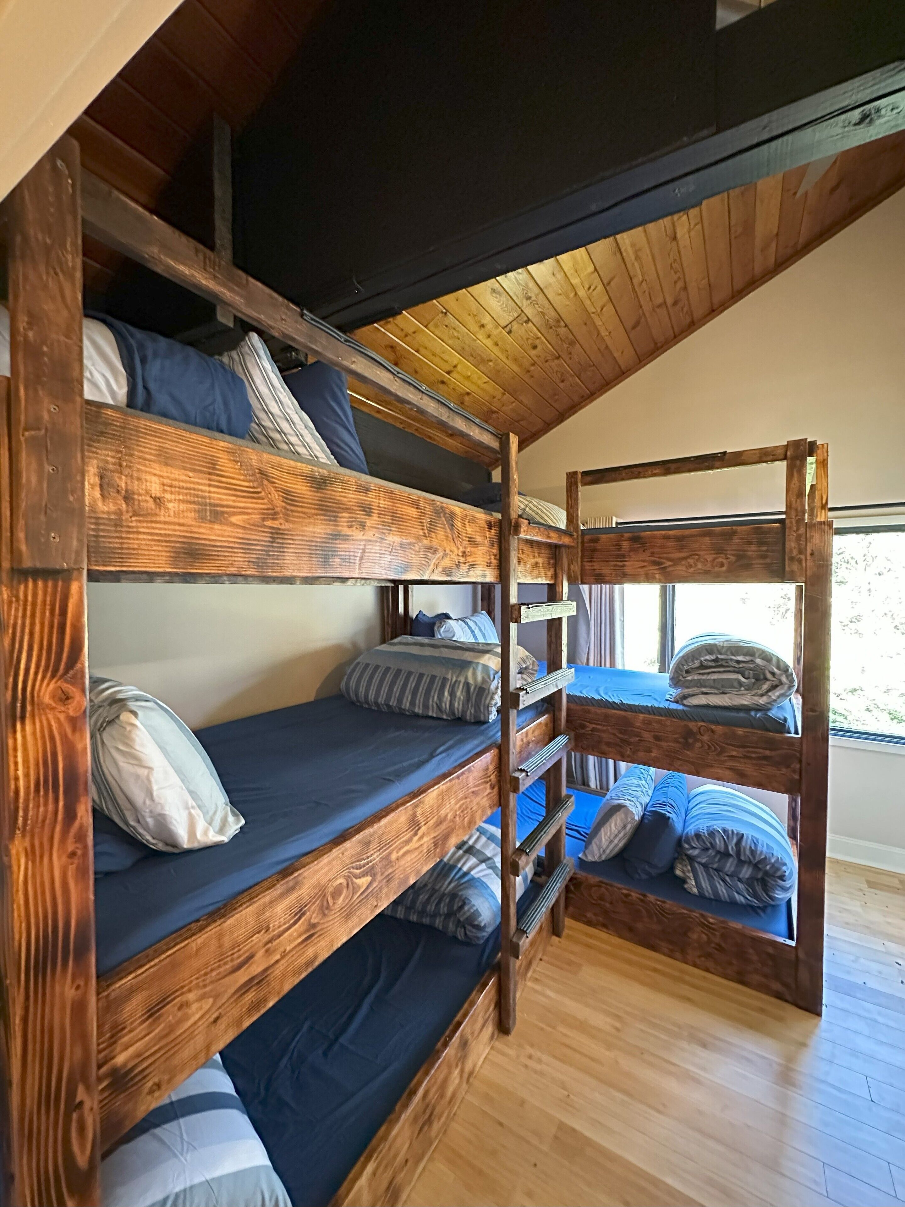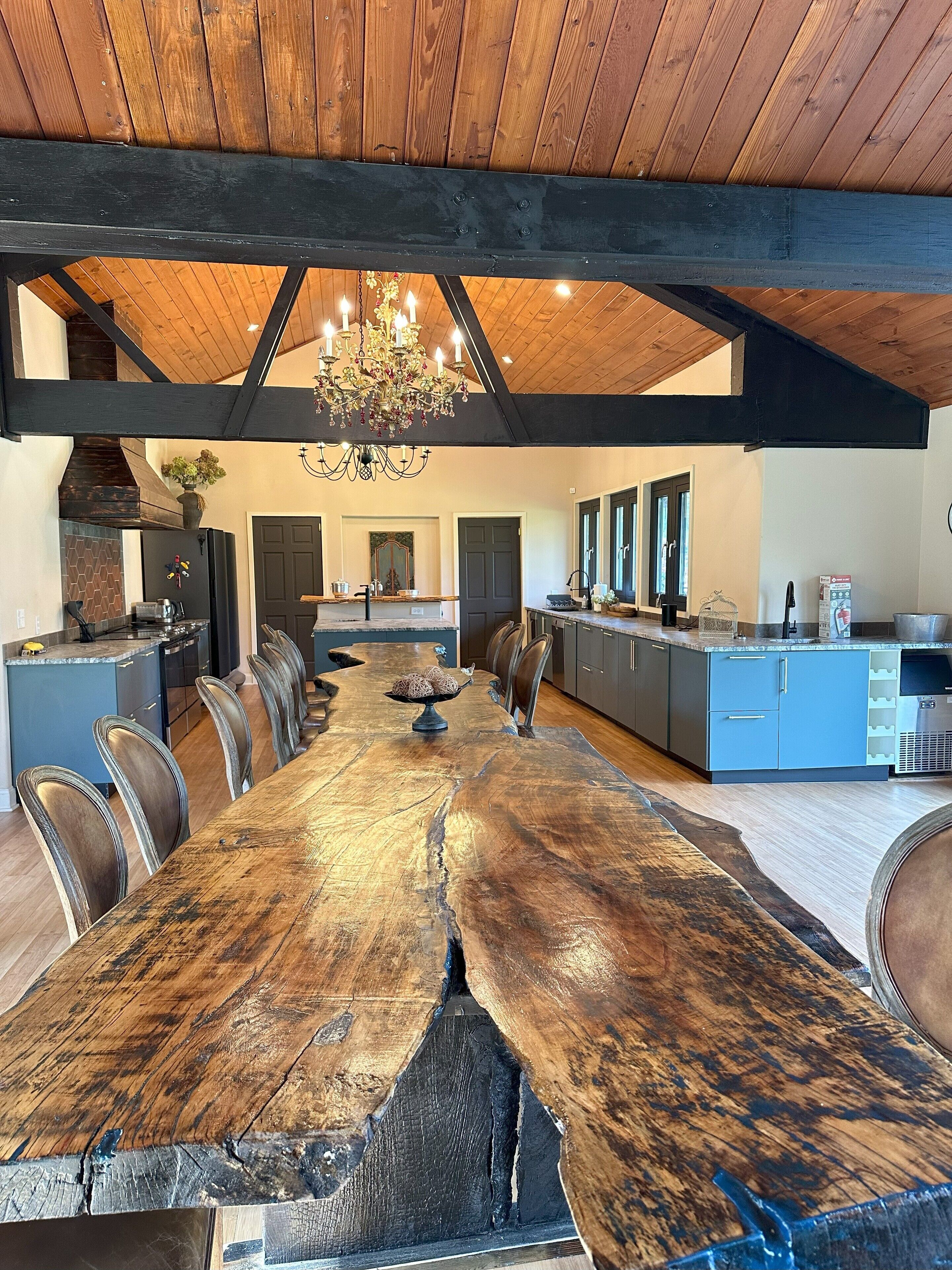 Otter Lodge - Private Pond! French country elegance meets rustic Pennsylvania charm!Located on 16+ acres, Otter Lodge is the perfect multi-family vacation destination! Over 7000 sq ft, the lodge boasts 8 bedrooms & 8.5 baths (including a handicapped friendly ensuite & elevator). A 1/2 acre pond provides fishing & boating for adventurers, while the home theater, game room & whiskey lounge provide indoor fun!Lake Tobyhanna, Lake Wallenpaupack, the Promised Land, Skytop resort & ski resorts are only 10-20 minutes away.The spaceThe Otter Lodge provides a retreat for multiple families to gather and create cherished memories. Whether you are generations of a single family, a group of friends, or celebrating a special event; Otter Lodge provides so many ways for you to engage each other and the world around you! Explore the 16 acre property, boat on the pond, teach the kids how to fish, tell stories around the fire, play games, or journey outside of the property to find your own adventure!Book 7 days and receive a 10% discount!We want to make your stay as carefree as possible, so we supply most everything you will need, including:• Bedroom Essentials: Each bedroom contains linens, a comforter, and pillows. There is also a ceiling fan and closet with ample space for hanging & folded clothes. A desk, chair and free wi-fi are provided to allow ‘work from home’ in all bedrooms (other than the children rooms).• Bathroom Essentials: Each bathroom contains towels and wash clothes, toilet paper (3 rolls), hair dryer, air freshener, hand soap, shampoo, conditioner and body wash. Note: The upstairs bathrooms include a shower only, but the downstairs bathroom contains a tub to bathe young children. Please do not leave children unattended!• Kitchen: Our well-appointed kitchen includes appliances and tools to feed and clean up a full house of 20+ guests! There are 2 electric ovens with stovetops, a full refrigerator and full freezer, 2 dishwashers, 3 sinks, an ice machine (up to 100 lbs of ice/day), microwave, air fryer, blender, 14 cup drip coffee machine, single use pod coffee machine, and tea kettle. We also provide dishware, utensils, cooking & baking supplies, an array of spices and much more. A full list of kitchen supplies will be provided after booking to help you plan your trip!• Our 20 foot live edge table allows families to dine together!• Whiskey Lounge: Seating for 8-10, beverage cooler, rocks glasses (12), sink w cutting board & glass washer.• Media Room: 90 inch SMART TV, reclining theater seats (8), full-size futons (2)• Fitness Room: Our fitness room is outfitted with rubber/foam flooring and wall mirrors, yoga mats (4), resistance bands (3), and jumping rope. We ask that you please do not wear shoes on the mats and monitor children.• Laundry room: You will find 2 washers and 2 dryers, laundry detergent, clothes hamper, first aid kit, fishing poles (5), a tackle box, paddle boat seats and anchor, life vests, and basic cleaning tools (broom, dustpan, vacuum)• Family Games: We provide a variety of board games suitable for all ages plus shuffleboard and billiards on the lower level.• Dog Wash: Dogs are part of our family too! So we want yours to be as comfortable as ours when they visit. If your fur-babies are like ours, they love to get muddy and smelly. For this reason, we’ve installed a dog wash. It has a separate entrance so muddy paws don’t get inside the house. Also included are shampoo/conditioner, drying towels (2), food & water bowls (2 each), and rosemary/mint spray to help prevent ticks. Please notify us of your pet(s) at time of booking. There is a $75/dog cleaning fee. Undeclared dogs and damage caused by pets will incur an additional $300 fee.Guest accessFront door key pad for self check-in.Gate access code provided just prior to arrival. Gate remote available during stay for easy in/out.Other things to noteMax Overnight Occupancy: 30 peopleMinimum Age to Rent: 25Available to host events such as wedding receptions, family reunions, corporate events/meetings, church retreats, etc* No smoking or vaping inside the home ** No Prom Parties ** No commercial photography or filming *Short-Term Rental Permit: 20240450