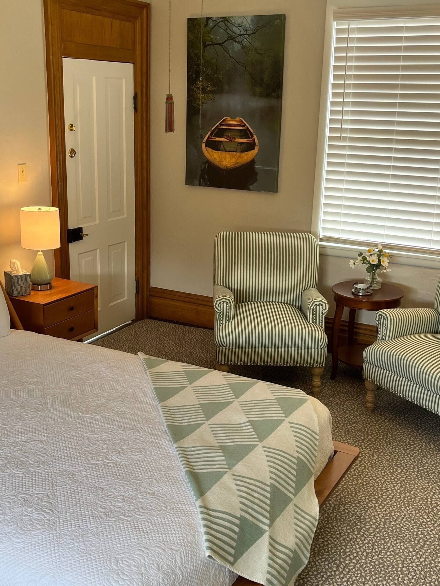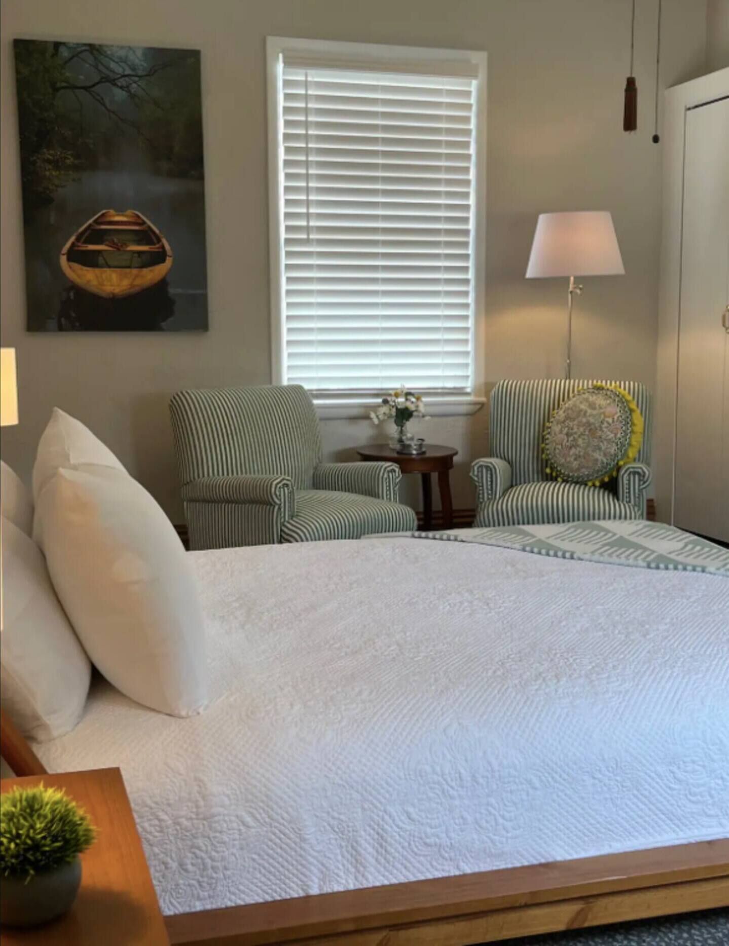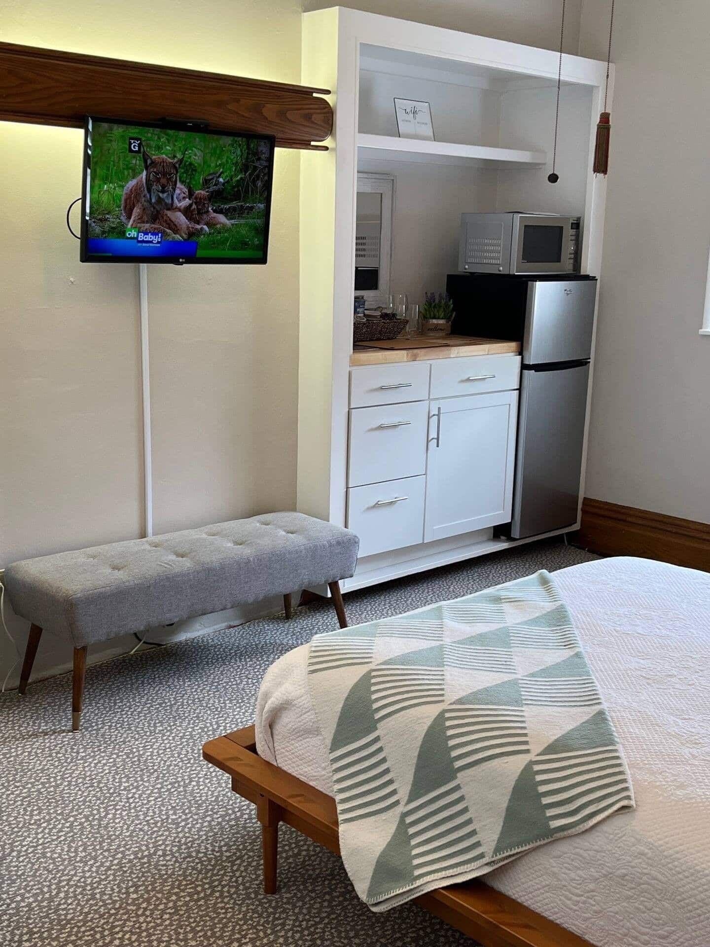 Superior comfort awaits you in this stylish suite walking distance to many shops and restaurants Superior comfort awaits you in this stylish suite within walking distance of dozens of shops and restaurants as well as nearby Laurel Highlands highlights like Fallingwater. Crisp organic cotton sheets and soft European blankets make this the perfect bed from which to recover from nearby mountain recreations of ALL of kinds. Come home to Ligonier, a charming village filled with unique shops and excellent dining. This unit has a kitchenette, private en-suite and a dedicated work area with desk.