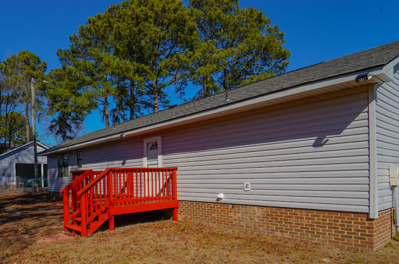 Home away from Home--Conveniently located in a quiet place This perfect home away from home is located in the Ravenwood Subdivision off Central Heights Road in Goldsboro NC. It has a new roof, new vinyl siding, and new lvp flooring, This house has 3 BRs/2 Full Baths, Laundry Room, and an Extra Room for exercising, office, or whatever you like. Kitchen comes w/microwave, coffee maker, pots/pans, toaster, frig, stove, dishes, and utensils. Ceiling fans in every room in the house. Fenced-in back yard and deck/patio. All utilities are included: electric, water, cable, internet & Wifi. Bathrooms have towels, wash cloths, hand soap, body wash, and shampoo for your convenience. Eastern Wayne Schools just down the road and minutes for SJAFB & the UNC Health Wayne Hospital. All essential conveniences such as gas, shopping centers, the mall, restaurants, entertainment just moments away.