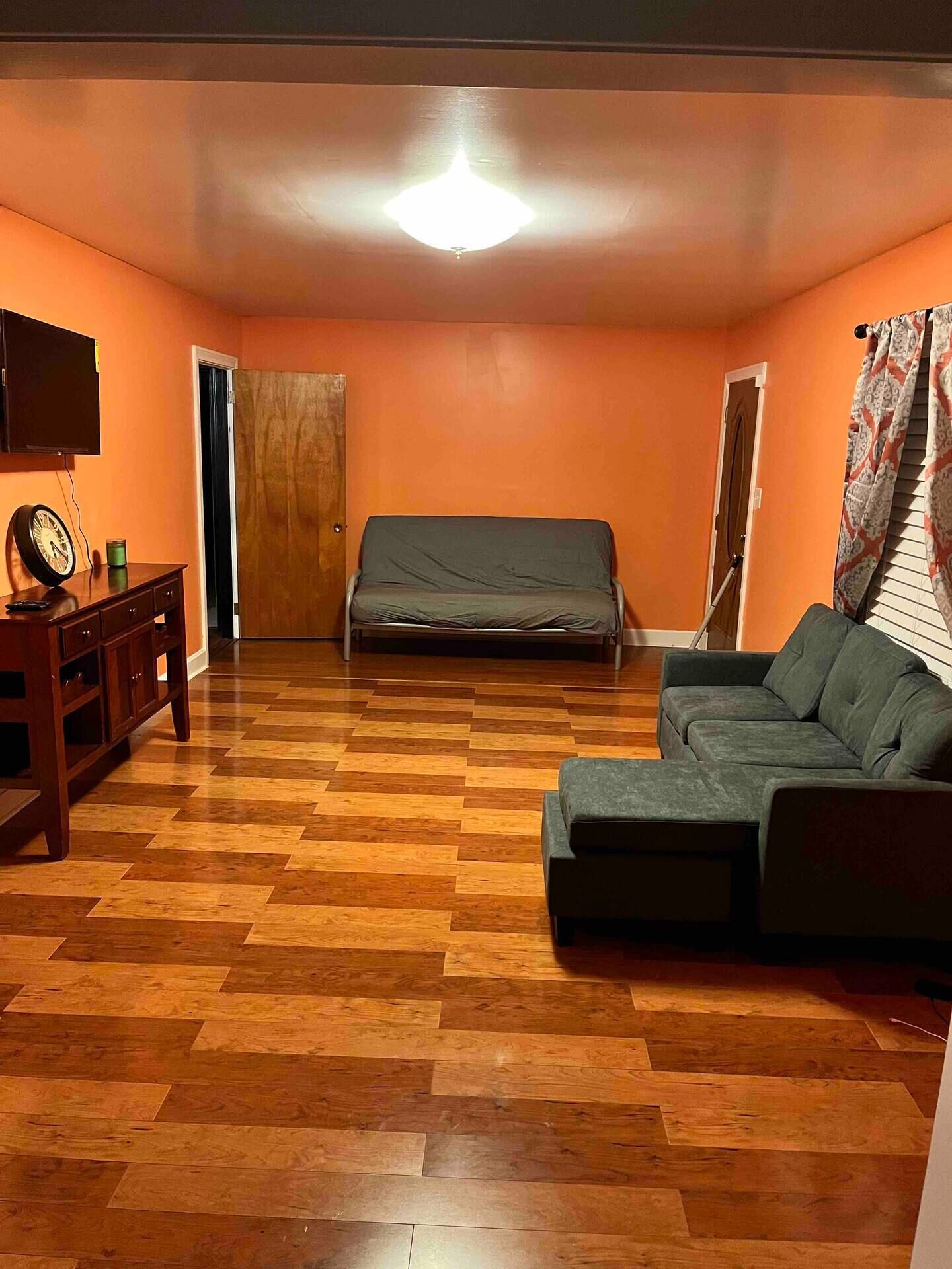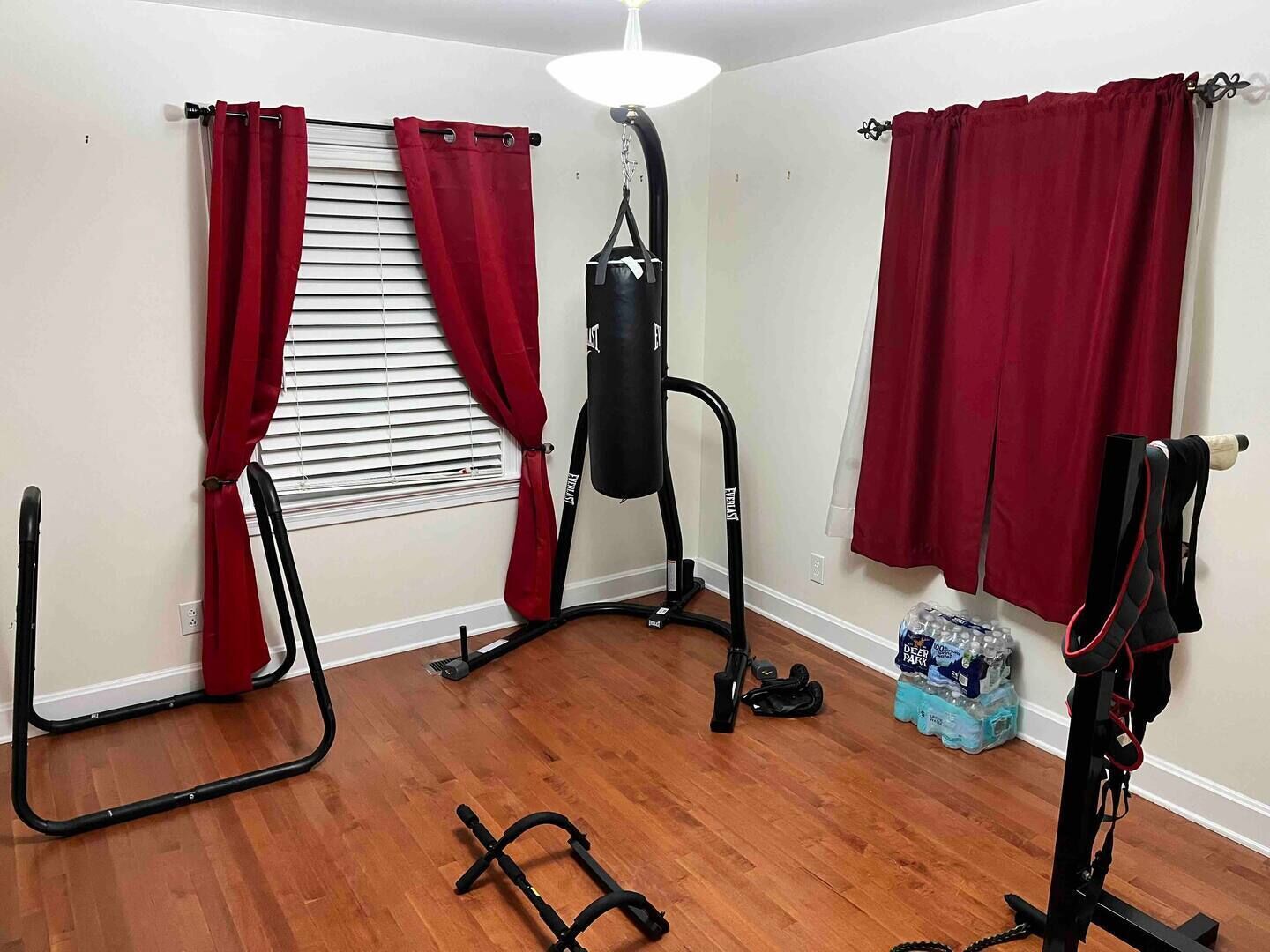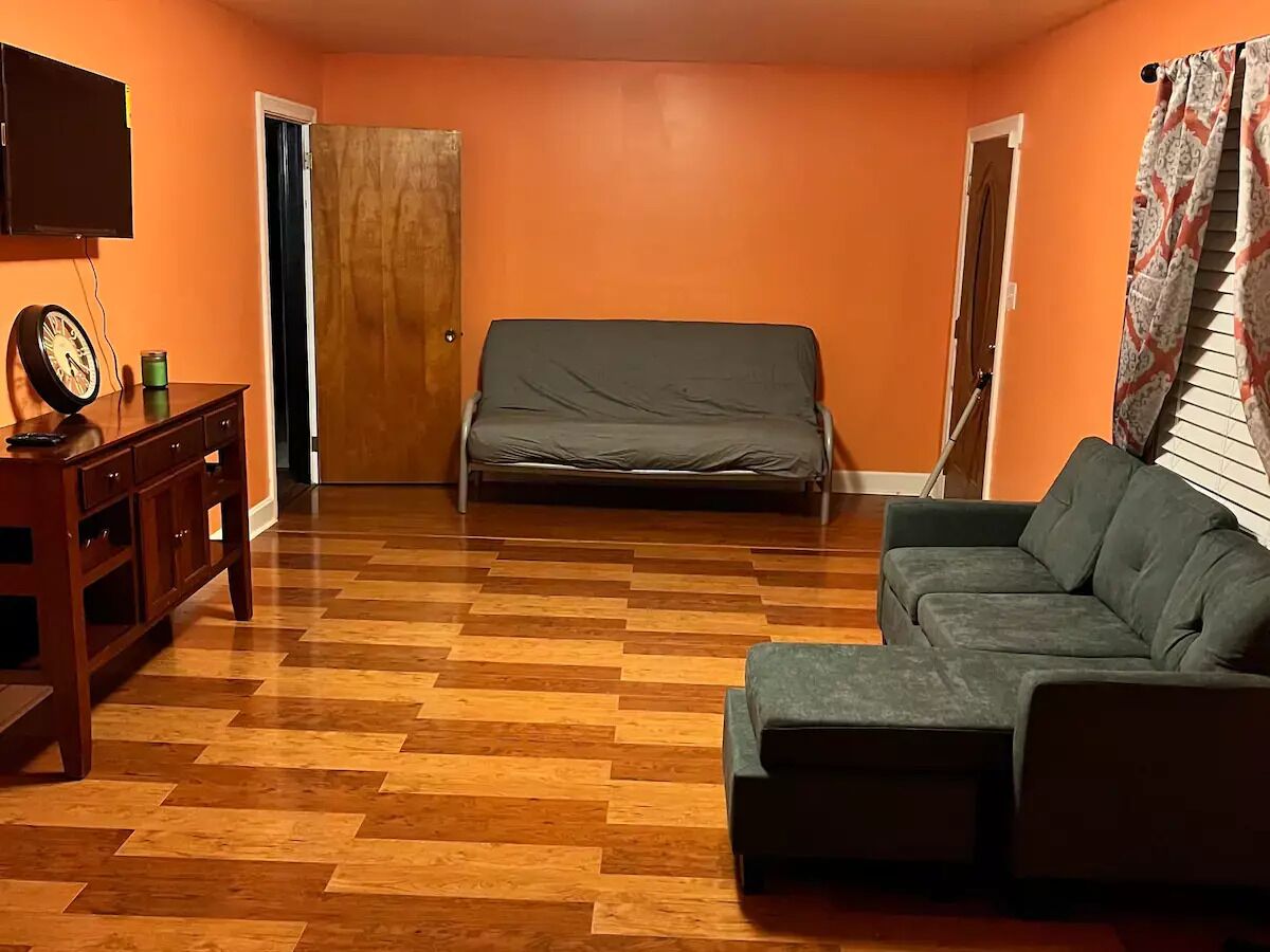 The Peach Palace This home is very warm and cozy. The bedrooms and living room are spacious. A small workout room to pump the muscles and get the blood flowing. It's in a very quiet neighborhood. There is a front yard and back yard. You have room to park your car as well.