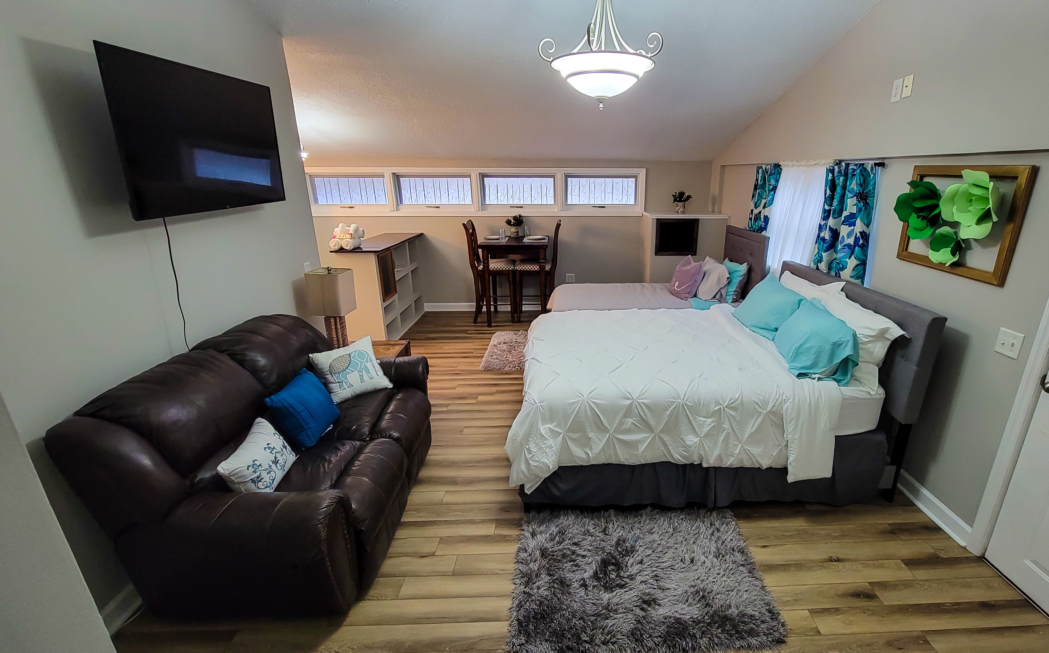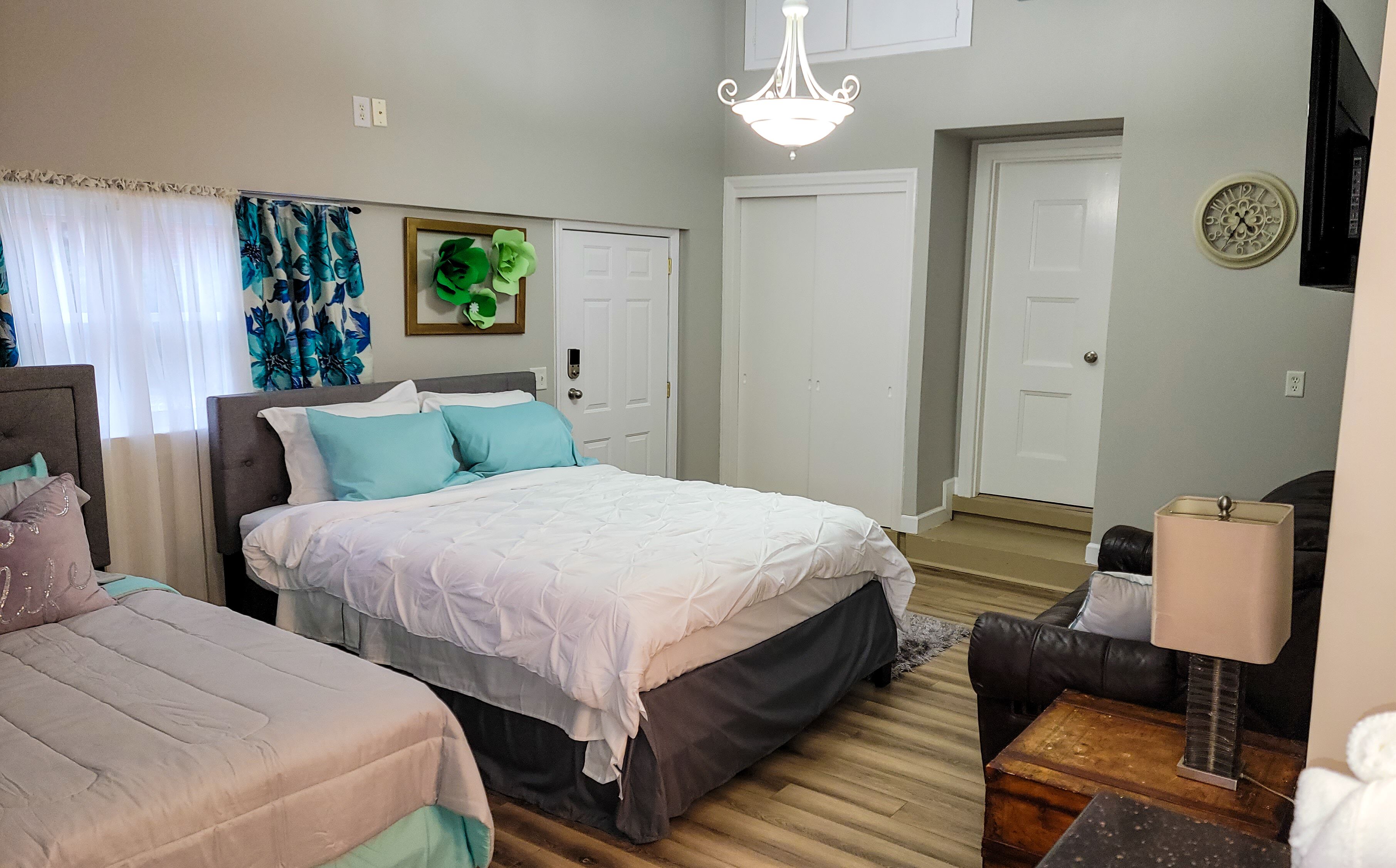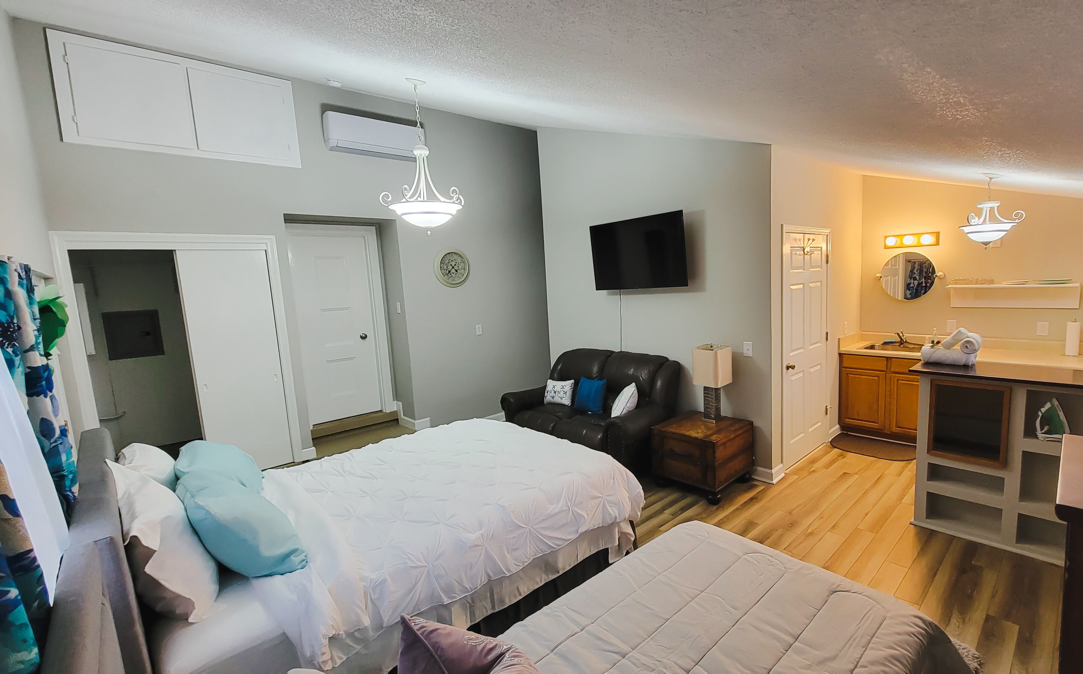 Renovated Suite with 1 queen bed and a Twin. Kitchen & bath for your privacy. Welcome to your private suite nestled on a quite street away from the hustling and bustling of hotel guests. This private suite is conveniently accessible to everything you need in town and it is within a short driving distance to shops and dinning in town.