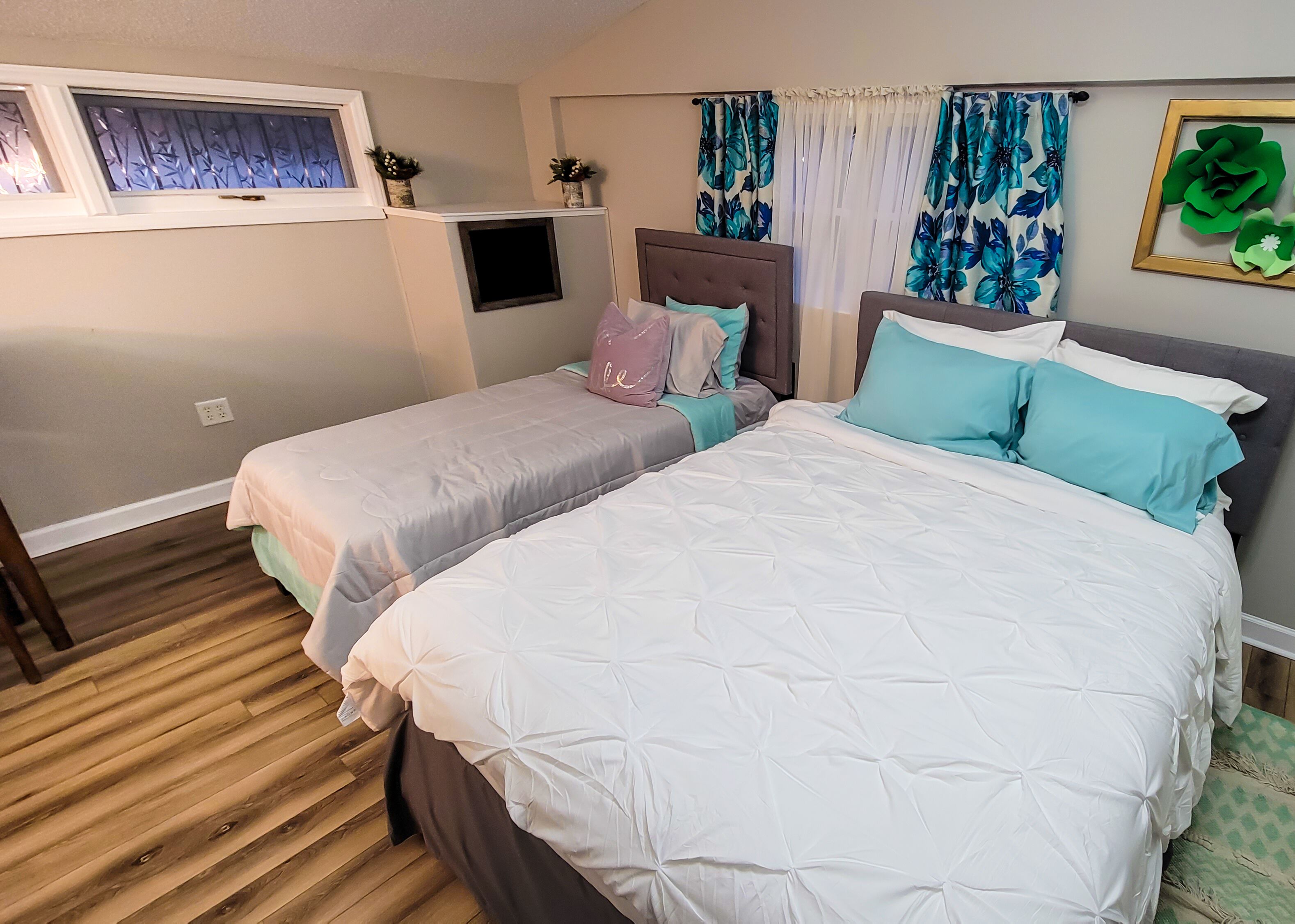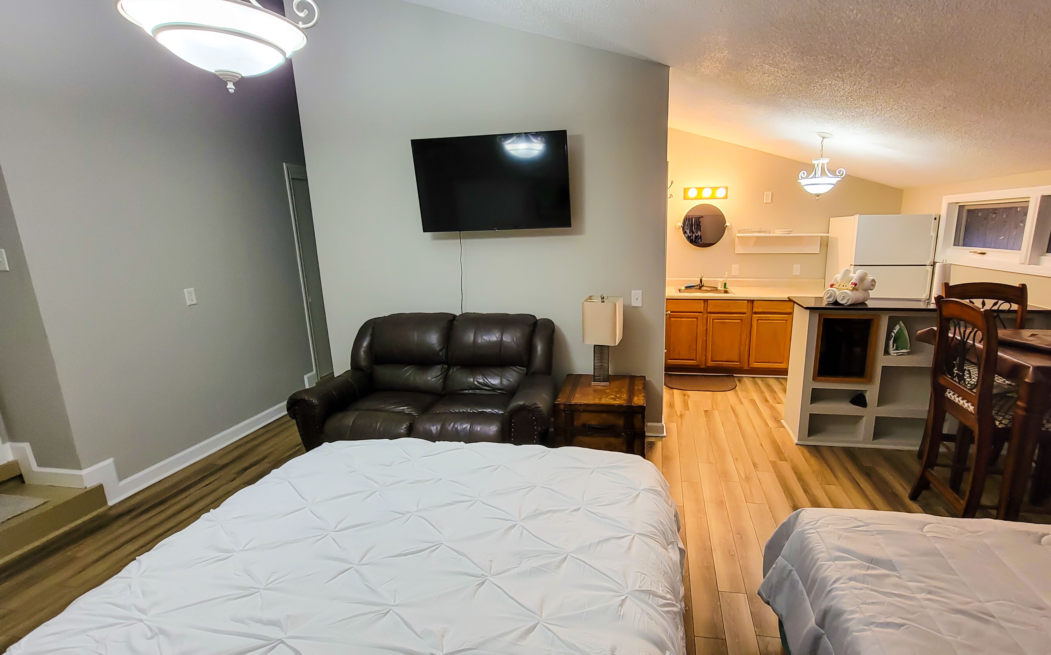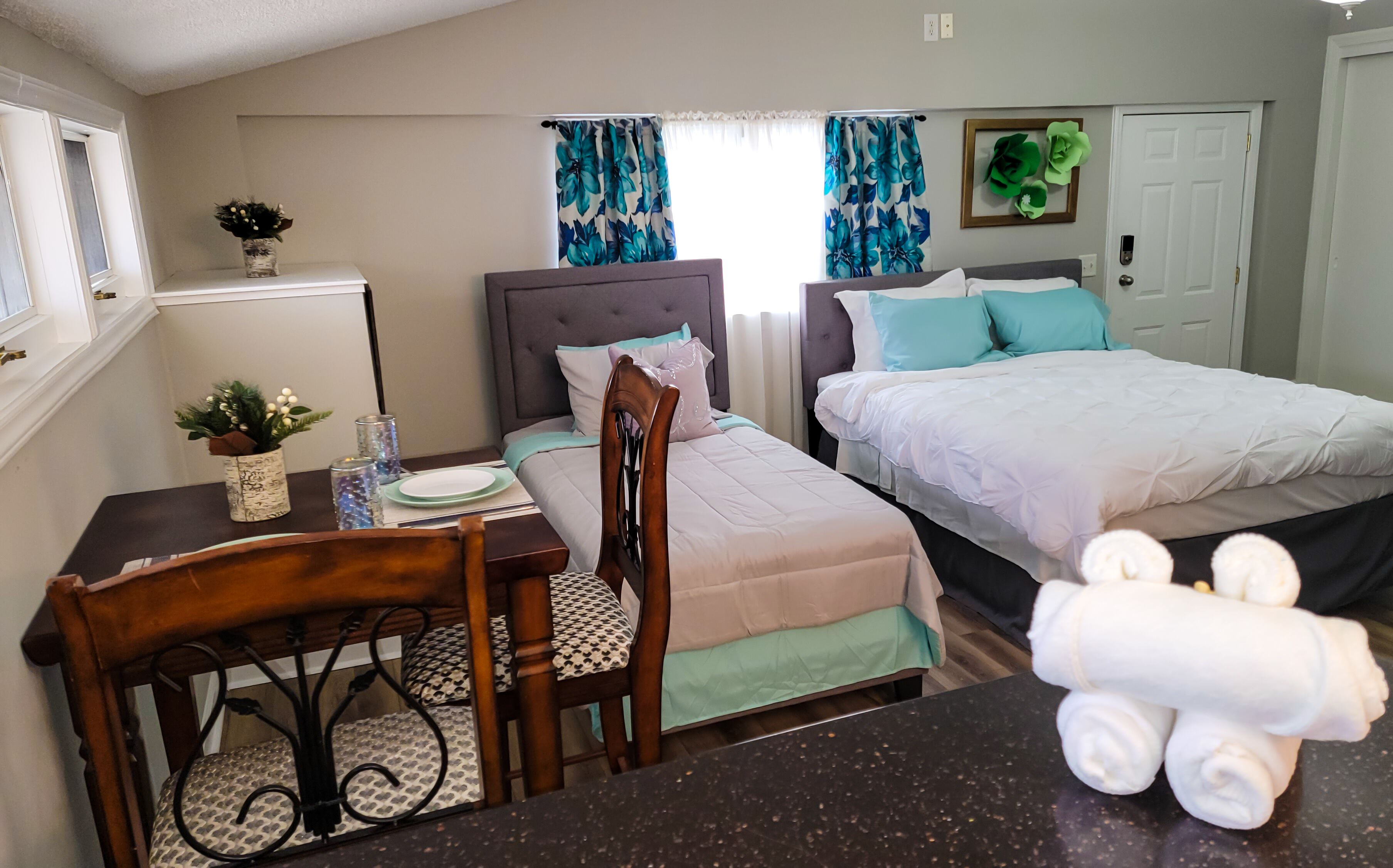Renovated Suite with 1 queen bed and a Twin. Kitchen & bath for your privacy.