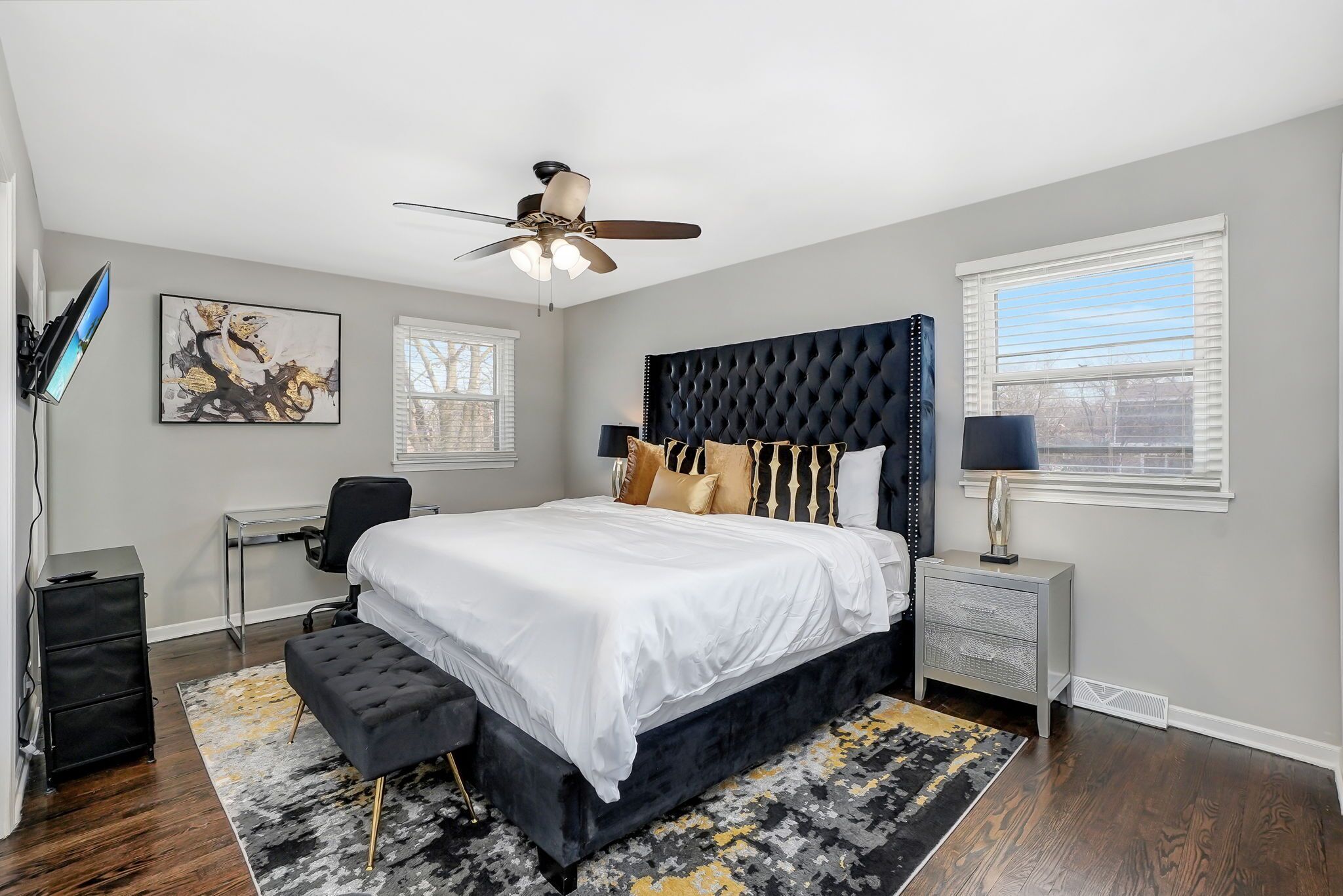 Homewood - Cherrywood Ln 2250 SF renovated unit in the South suburbs, and only 30 minutes south of Downtown Chicago! This property has 5 bedrooms, & 2.5 bathrooms. Master bedroom has a KING, 4 bedrooms have a Queen The living room has room for 1 air mattress (Total of 6 beds). Plenty of Kitchen utensils, all you need in a kitchen, including cooking spices and oils! Children friendly & lots of tech...