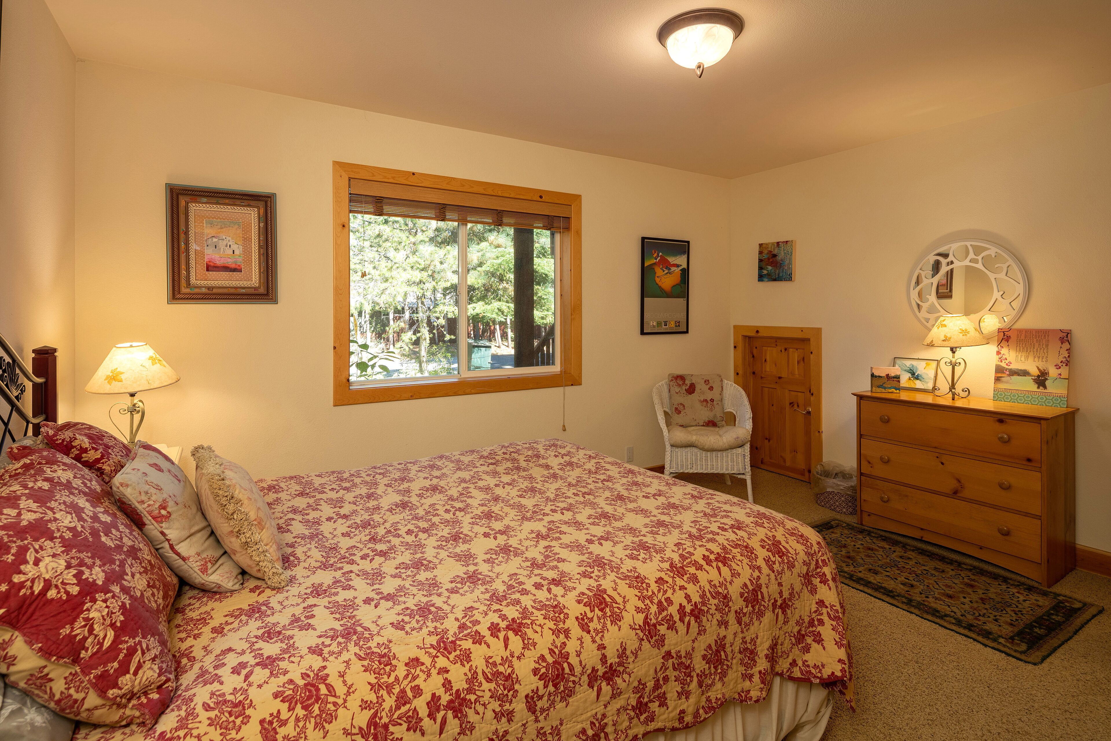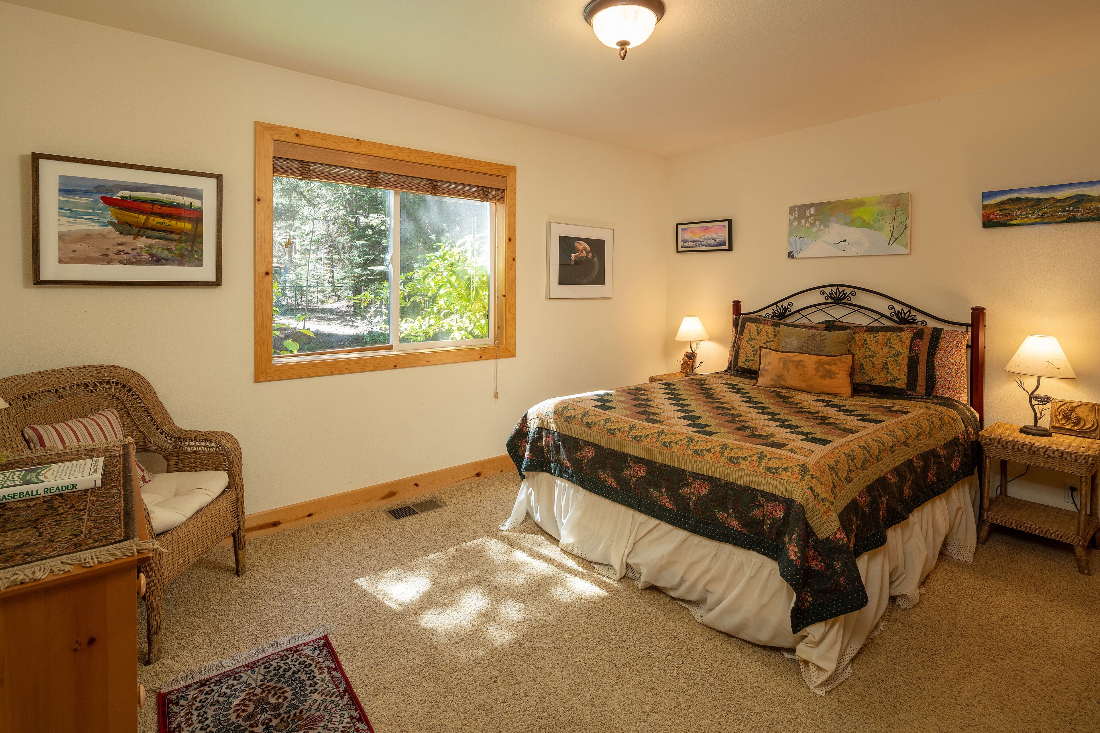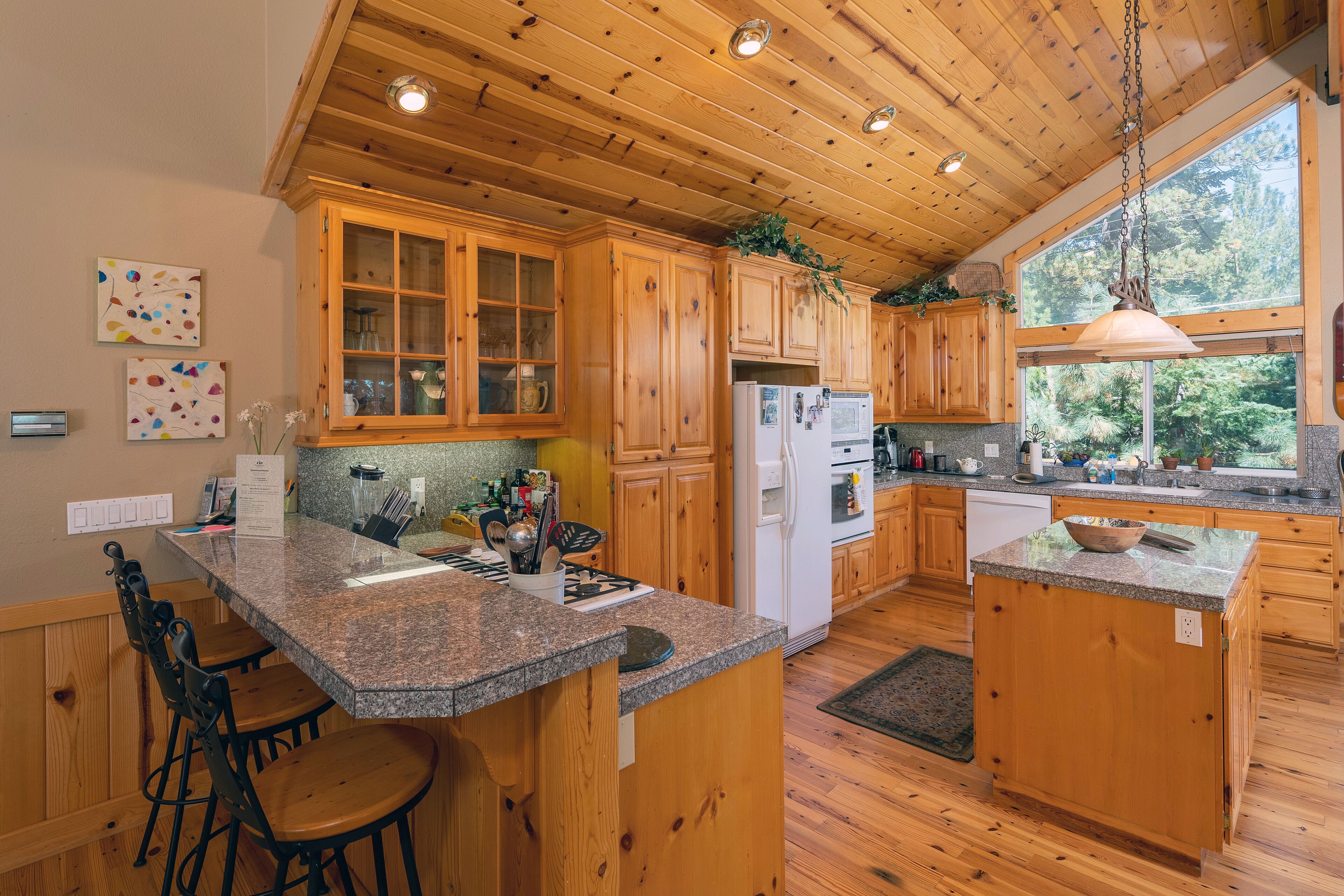 Homewood Heaven: Picturesque Classic Tahoe Cabin on West Shore ***PETS PROHIBITED**Peaceful, warm and open home in wonderful location. Custom mountain finishes include cathedral pine ceilings, pine trim throughout, gas fireplace surrounded by river rocks, granite counter tops in kitchen with island and separate counter for eating, natural autumn-color slate tile in bathrooms and many more lovely touches. Light pours in to this home from the front and the back both full of huge windows!Fantastic open floor plan/cathedral great room which includes beautiful, well-equipped kitchen, spacious living area and formal dining area. Separate large family room downstairs with a beautiful upright piano.Master bedroom off great room with King bed and TV, walk-in closet, huge armoire, private bath featuring jetted tub and separate shower. Powder room (1/2 bathroom) on same level for convenience as well.Second story decks off the front and back of house including a propane grill on the deck off of the kitchen available during summer months. Overlooking picturesque Tahoe National Forest in the back of the home.Downstairs, family room with table space for games or office, sofa-bed (Queen), TV, and sliding glass door to the forest. Two bedrooms each with Queen beds and large closet. Shared two-sink full bath. 2 car-garage and entrance directly into the house.Gorgeous home, like new! Enjoy lots of owners' unique and original art while you are nestled in nature. Not a peep from the highway! May the snow blanket you in this little slice of heaven.Bedrooms:Bedroom 1 - Upstairs Master, King BedBedroom 2 - Downstairs, Queen BedBedroom 3 - Downstairs, Queen BedMust be at least 25 years old to rent.Our properties do not have air conditioning.BBQs are not provided during winter months (November to Memorial Day) CHAINS OR SNOW TIRES ARE OFTEN REQUIRED IN WINTER. PLEASE BE SURE TO READ OUR WINTER DISCLOSURE, PROVIDED WITH A RENTAL CONTRACT ONCE A RESERVATION IS MADE.ON MARCH 11TH 2022, THE COUNTY OF PLACER IMPLEMENTED A NEW SHORT TERM RENTAL ORDINANCE WHICH IS VERY IMPORTANT FOR GUESTS TO ABIDE BY. FINES RANGE FROM $1,500- 5,000 AND CAN BE ISSUED TO GUESTS WHO ARE NOT IN COMPLIANCE. A FULL LIST OF RULES IS ATTACHED AS A PHOTO IN THIS LISTING. SOME HIGHLIGHTS INCLUDE: •QUIET HOURS ARE FROM 9PM TO 8AM. NO NOISE SHALL BE HEARD ACROSS PROPERTY LINES. NO OUTDOOR SPEAKERS OR AMPLIFIED SOUND ARE TO BE USED AT ANY TIME. •PARKING IS LIMITED TO THE FOLLOWING NUMBER OF SPACES: 4 - STREET PARKING IS PROHIBITED YEAR-ROUND.STR22-6139