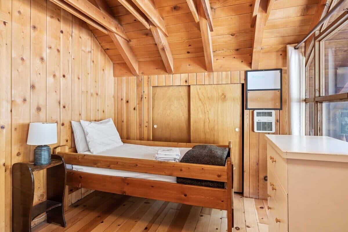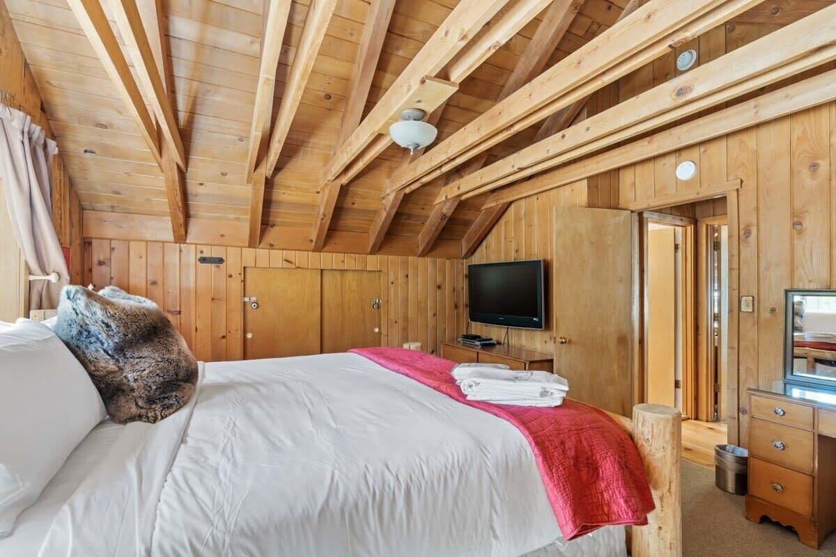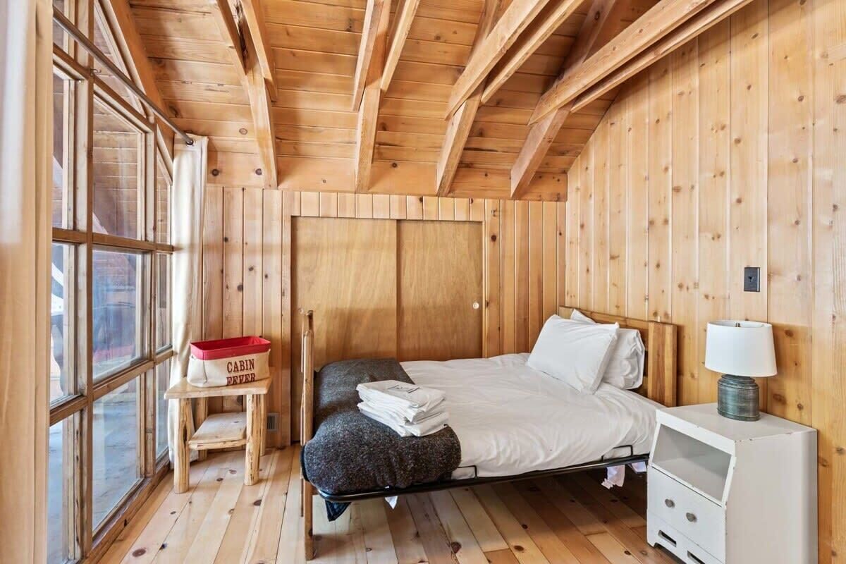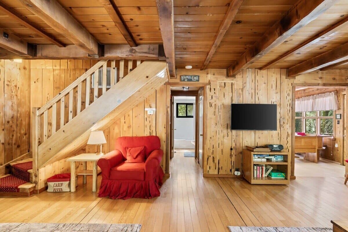 3BR Mountain Cabin Near Beach Slopes Summary:Escape to this classic 3-bedroom Tahoe cabin, a home brimming with rustic charm and all the comforts you need for a mountain retreat. Tucked away amidst the trees, you are just a 10-minute drive to the beach or city and less than 20 minutes from three ski resorts. Enjoy the convenience of being close to outdoor activities galore! Unwind in the spacious living room or bask in the sun on the inviting deck, the perfect abode to recharge after a day filled with adventure.The Space:Surrounded by trees in a tranquil setting, this charming three-bedroom, two-bathroom cabin has all the comforts you need for a mountain retreat for your group of up to 8. You will love looking out the large windows found throughout the home, filling the rooms with natural light and views overlooking the surrounding trees. Return to the home after a busy day of adventures where you will find a spacious kitchen and dining area, a large living room for socializing, cozy bedrooms, and a great private outdoor space.When you enter the home you will arrive at the bright and inviting living room where you will find a space filled with charm from the exposed wood beams lining the ceiling to the stone hearth wood fireplace. In the living room, you will find two 3-person couches, a loveseat, and a sofa chair. One of the couches doubles as a queen pull-out bed, providing additional sleeping accommodations if needed. The large room is a great, dynamic space for your group to socialize in while you warm up by the lovely fireplace. Or, enjoy a cozy movie night on the 44” TV while you snuggle up on the couches.Just off the living room is the fully equipped kitchen, where you will find everything you need to cook a great meal with your friends and family. The kitchen features a full range of appliances, spacious countertops, and a cozy dining space tucked next to a wall of windows. The dining table features bench seating with space for 6 and great views overlooking trees. A hallway off the living room leads to one full bathroom for shared use. This bright, all-white bathroom features a large single-sink vanity, under-the-sink cabinet space, and a shower/bathtub combo.When you are ready to settle in for the night, you will find three comfortable bedrooms in the home. The first bedroom is located downstairs in the hallway off the living room. This bedroom features a queen-size bed and beautiful floor-to-ceiling windows, making you feel as if you are sleeping outside under the trees. Head upstairs, and you will find two more bedrooms, providing a great separation of space between the bedrooms. The home’s master bedroom is located at the top of the stairs to the left and boasts a comfortable king-size bed in a log-bed frame, a cozy chair for reading, a mounted TV, and a large window overlooking the trees. The second upstairs bedroom features a full-size and a twin-size bed, making it a great room for families or little ones to share. A second full bathroom is comfortably located between the two upstairs bedrooms and features a large single-sink vanity with ample drawer storage space and a shower/bathtub combo.In the summer months, you will love utilizing the spacious wrap-around outdoor deck and private backyard. Sit outside at the bistro-style table with two chairs, or prepare a meal outside on the BBQ. The private backyard is perfect for those traveling with children, giving them an additional space to run and play while you relax on the deck.STR Permit Number: STR22-6798Guest Access:Guests will have access to the entire home and outdoor spaces, which include a private unfenced backyard. Guests will also have access to three parking places in the driveway in front of the home.The Neighborhood:Located on a quiet road surrounded by a beautiful forested area, this home is in an excellent location for enjoying everything Lake Tahoe has to offer. In the winter months the home places you near some of the best slopes in the area with both Alpine Meadows Ski Resort and Tahoe Ski Resort a 20-minute drive away, Tahoe Nordic Cross Country Center 15 minutes away, and Homewood Ski Resort just 6 minutes away. If you are looking for some great XC skiing or snowshoeing, you are just minutes away from the popular trails at Paige Meadows.During the summer months, head to Commons Beach, a popular four-acre beach and park less than 10 minutes away. Here you can rent any type of watercraft imaginable, and enjoy great swimming, and BBQ areas. Or, make a quick 5-minute drive up the road to the famous Sunnyside Restaurant and Marina, where you can find great food and watercraft rentals. You are also nearby the Lake Tahoe Bike Path, or if some high alpine hiking is what you are into, Paige Meadows is only an 8-minute drive up the hill where you will find beautiful meadows lined with a vast network of trails that connect you to the Pacific Crest Trail and the Tahoe Rim Trail.For those in your group looking for a little less outdoor time, Tahoe City is less than a 10-minute drive where you will find many cute boutique shops, a wide variety of bars and restaurants, farmers markets, and live music. When it comes to a great location for everything Lake Tahoe has to offer, this house cannot be beaten!Getting Around:Guests at this home can easily explore all the area has to offer even without a vehicle thanks to the public transportation TART stop that is just a few minutes walk from your front door! Less than half a mile from the home is the TART stop HWY 89 Timberland DR Lakeside which runs every hour. Be in Tahoe City with an under 10-minute bus ride and be able to easily connect to other routes taking you around the surrounding areas and to the ski resorts. For those with a vehicle, enjoy the home’s close driving proximity to Tahoe City where you can drive to in 8 minutes, and even use the FREE park-and-ride to reach locations such as Olympic Park and Northstar California Resort. With HWY 89 just minutes away, 
